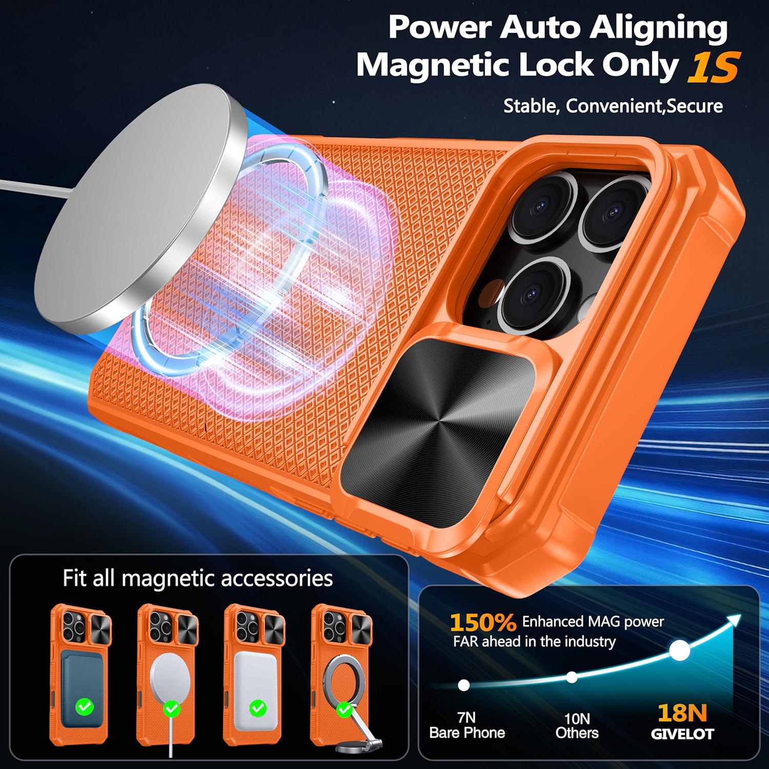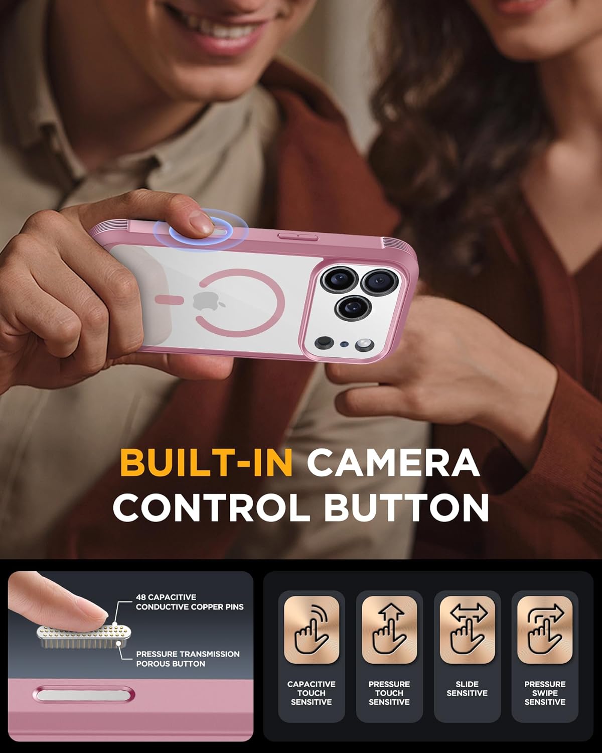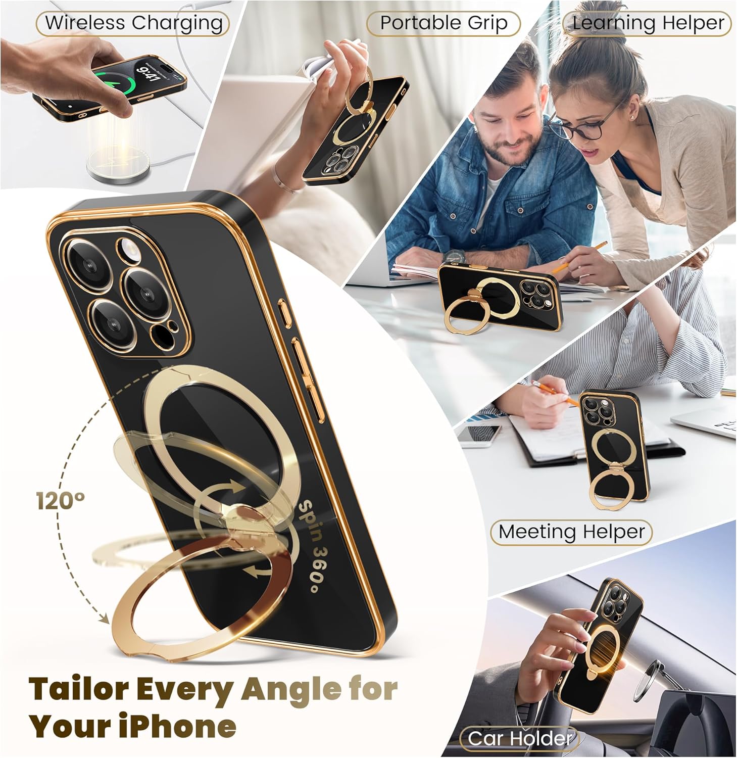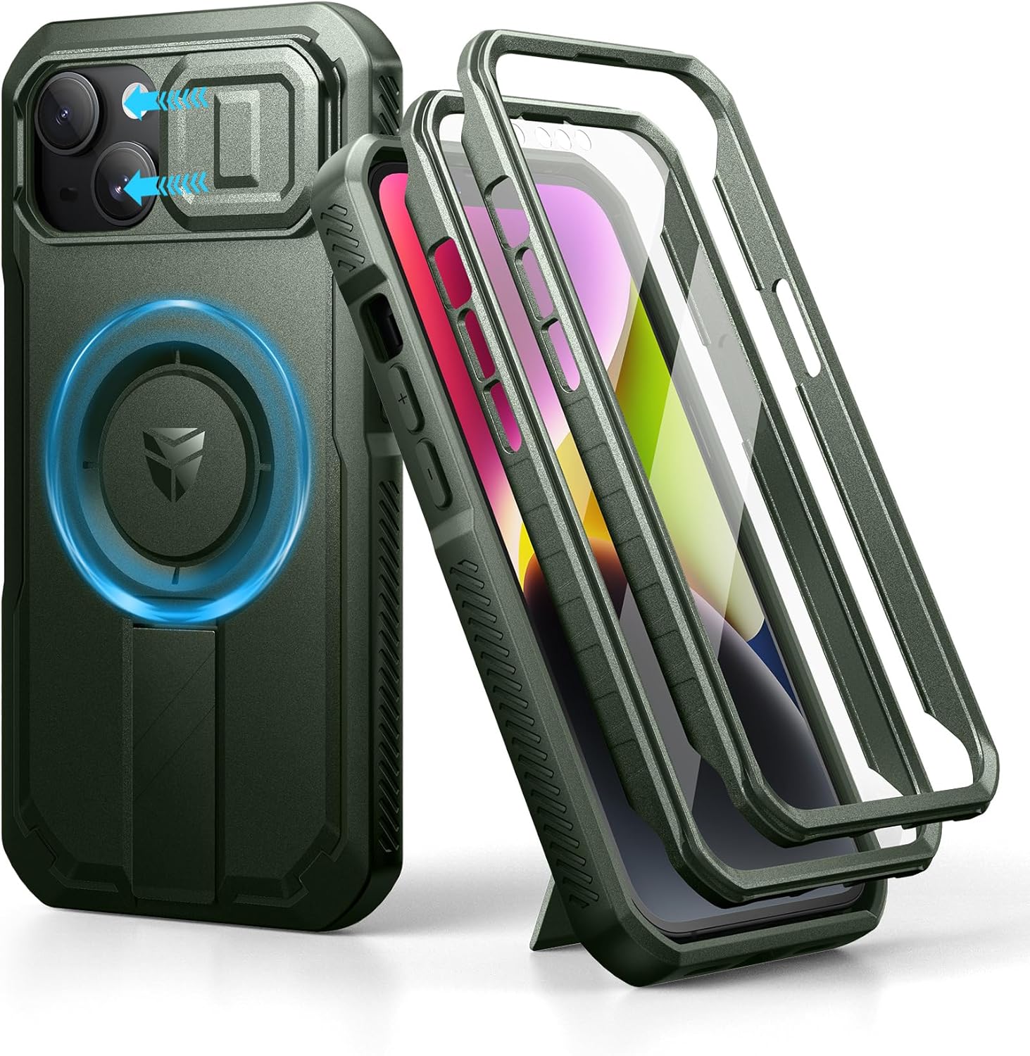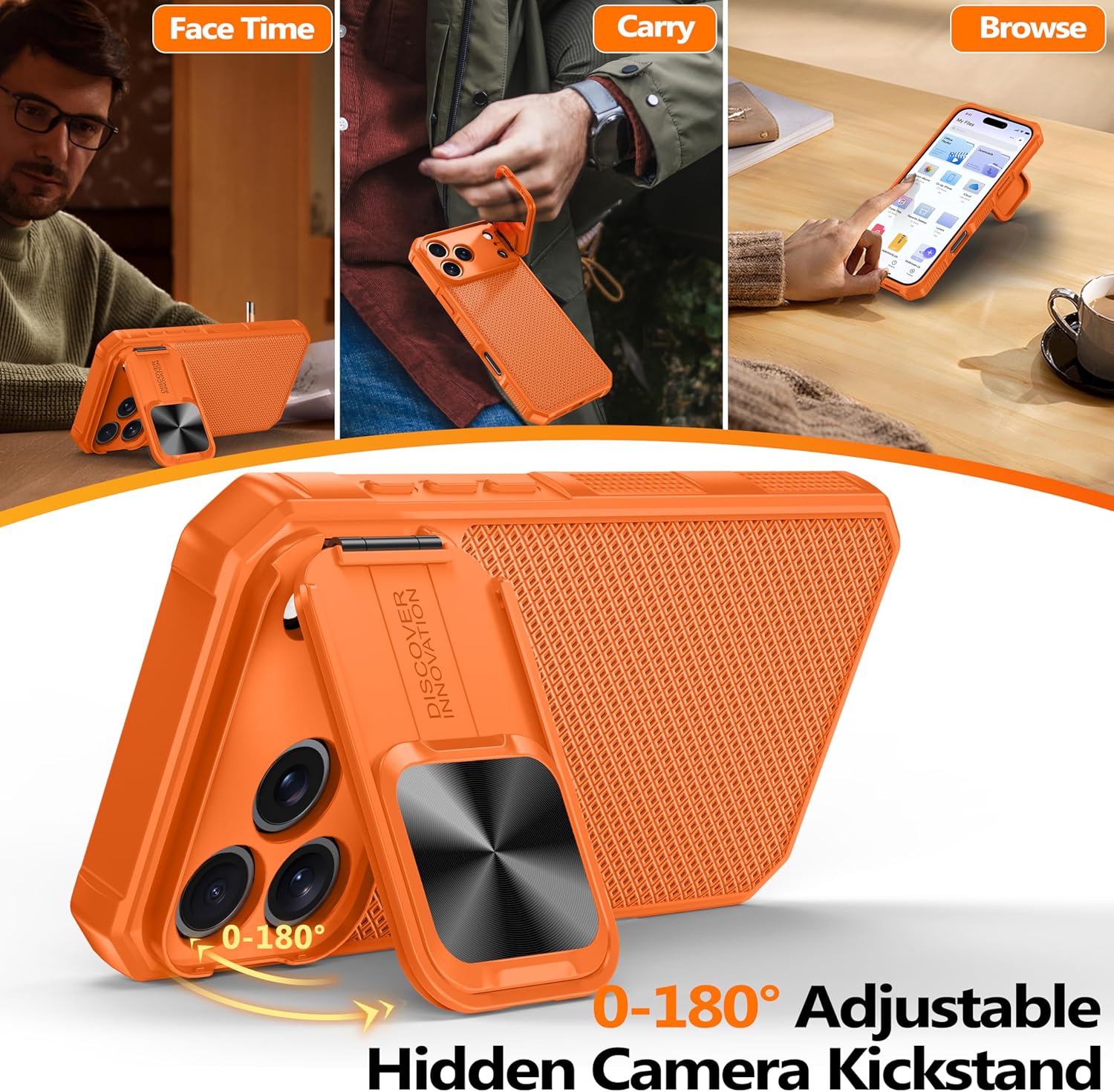 SURITCH 适用于 iPhone 16 Pro 手机壳,带滑动相机盖和可调节支架,兼容 MagSafe,防震防撞保护套,适用于 iPhone 16 Pro 6.3 英寸,黑色