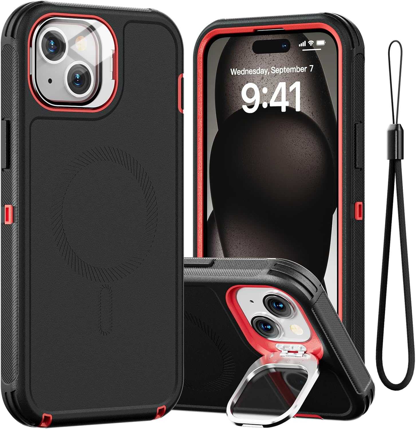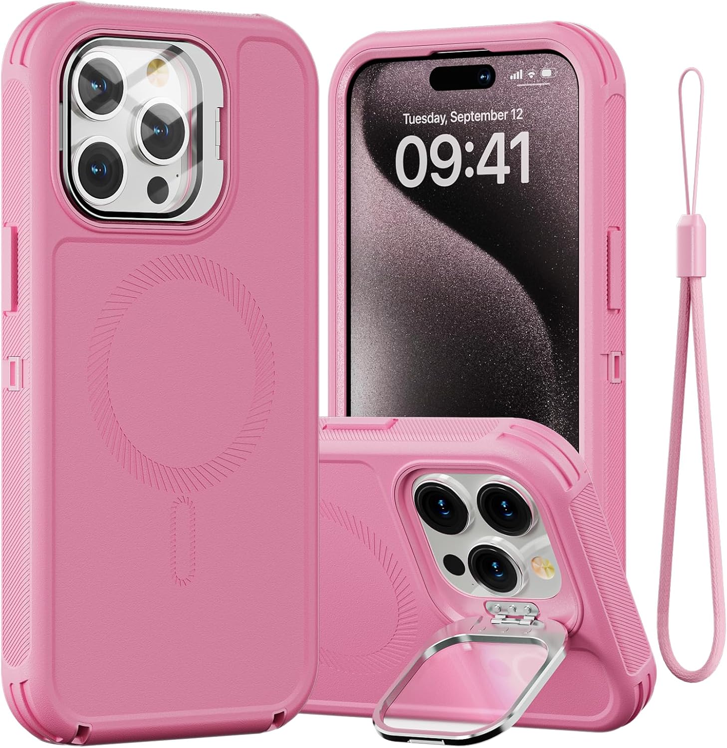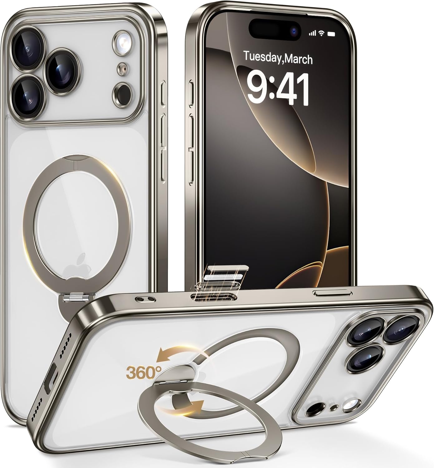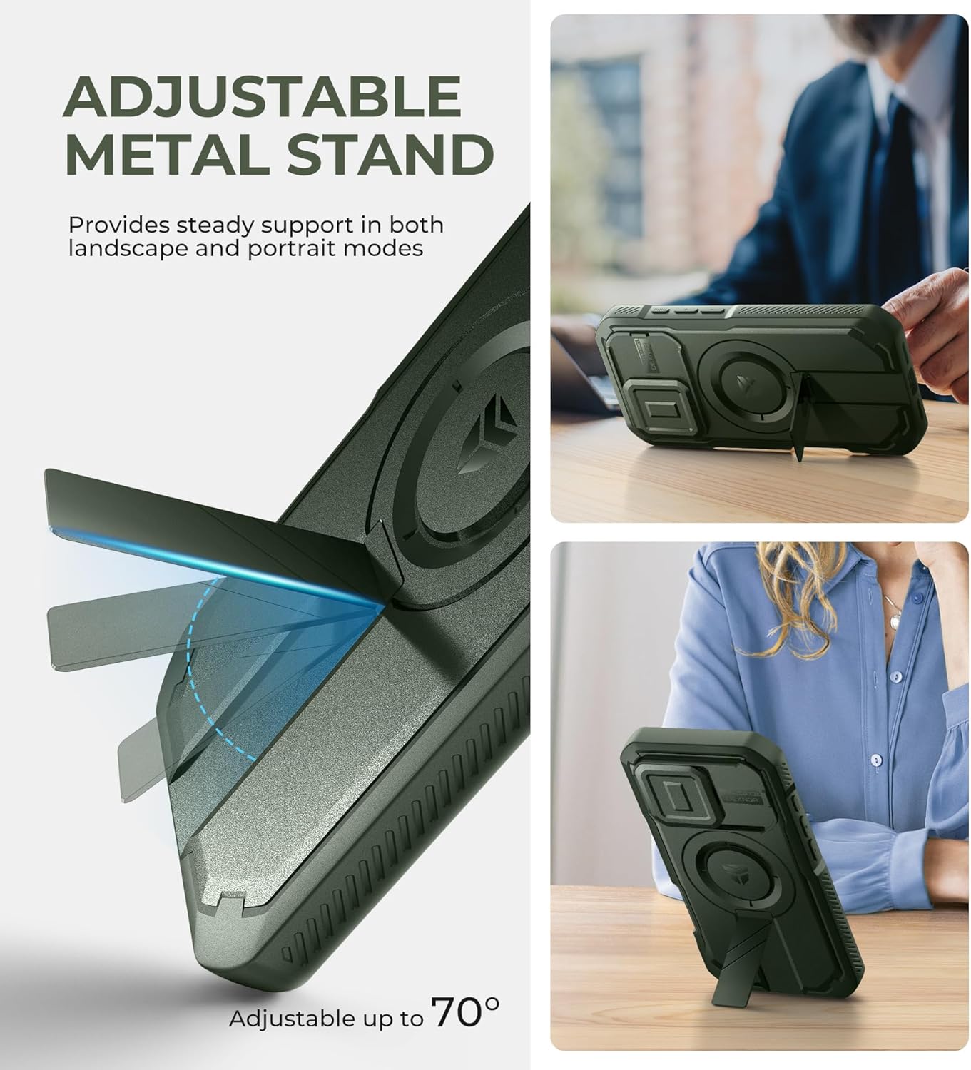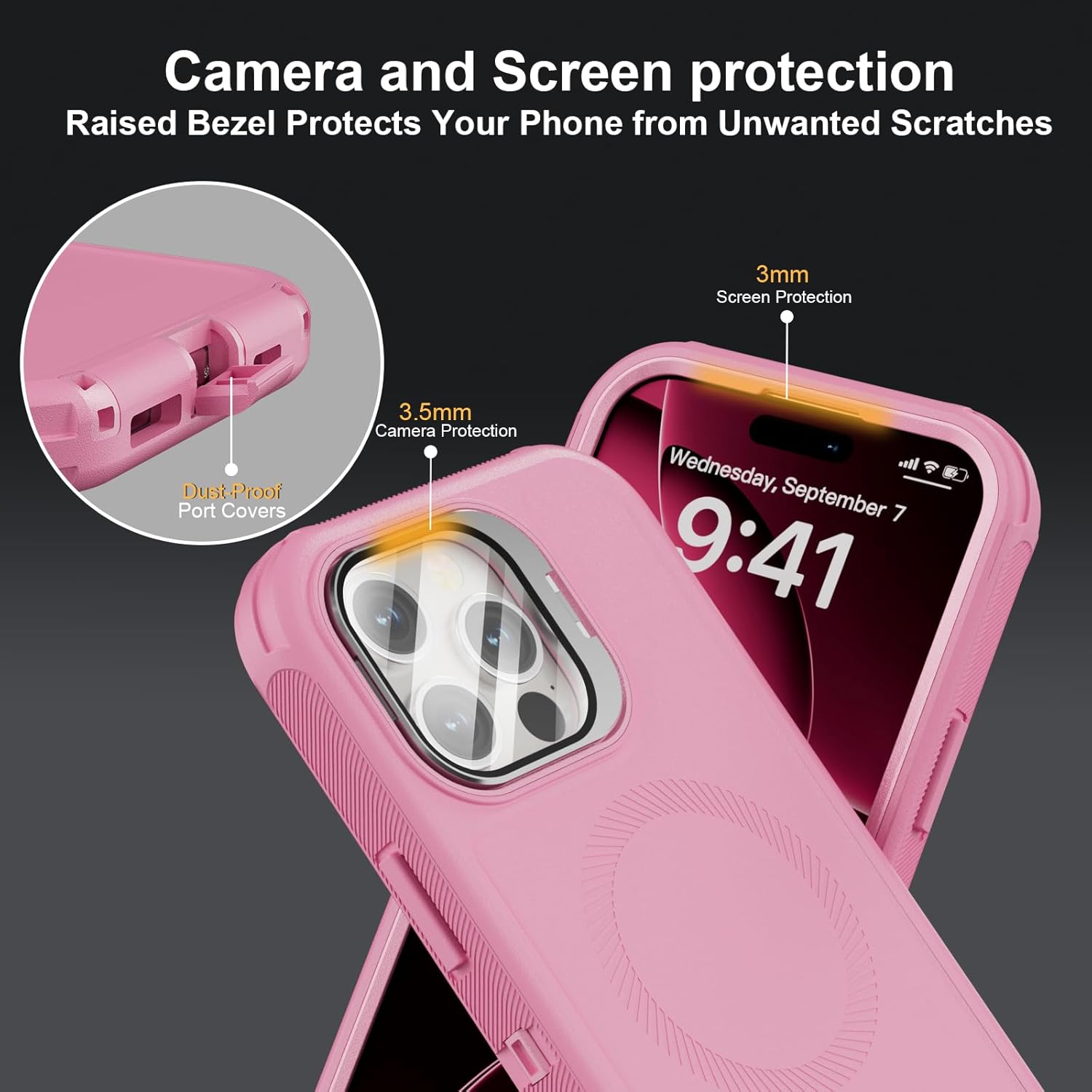 SURITCH 适用于 iPhone 16 Pro 手机壳,带滑动相机盖和可调节支架,兼容 MagSafe,防震防撞保护套,适用于 iPhone 16 Pro 6.3 英寸,黑色