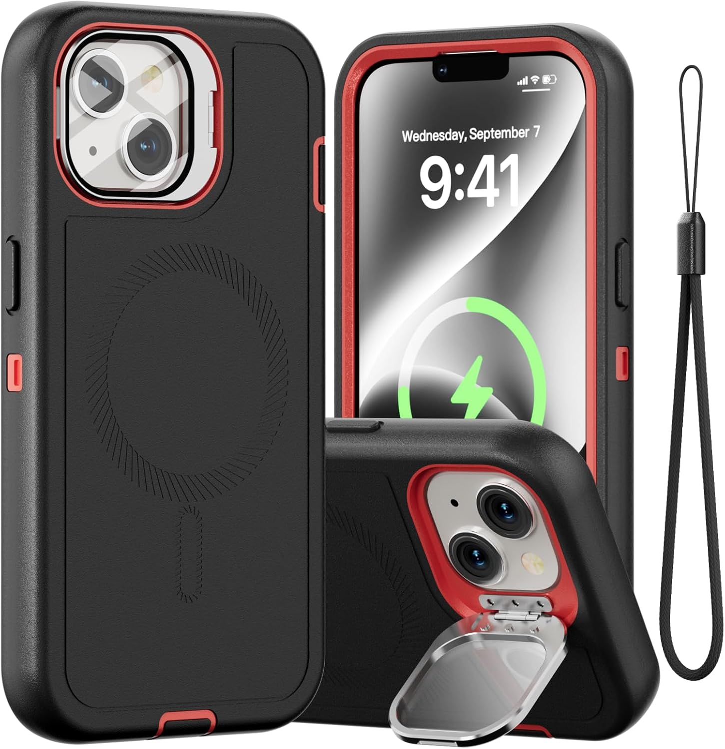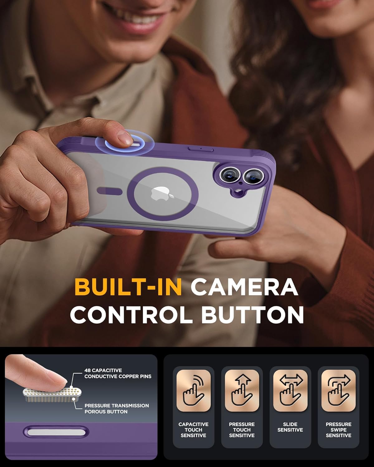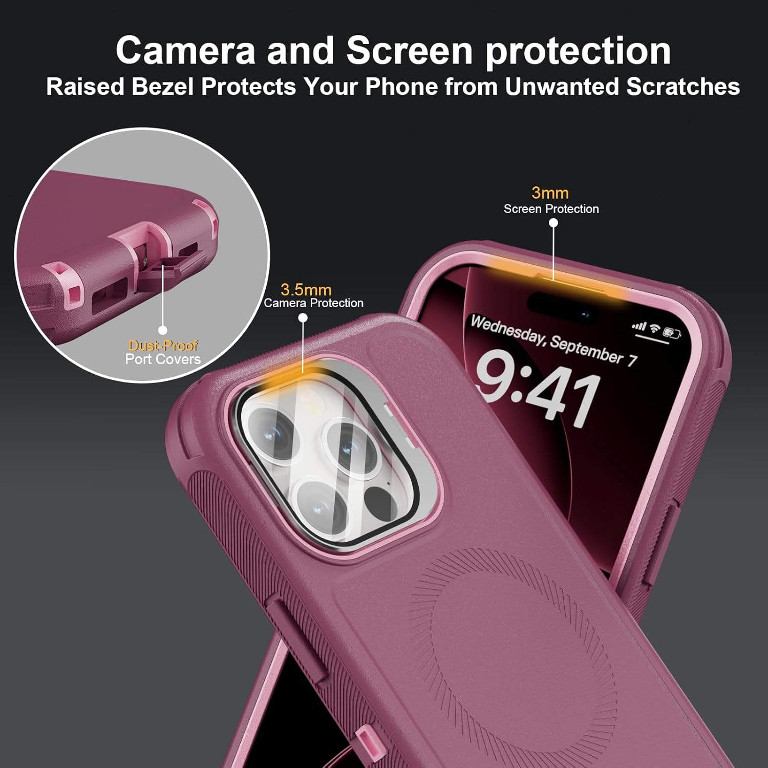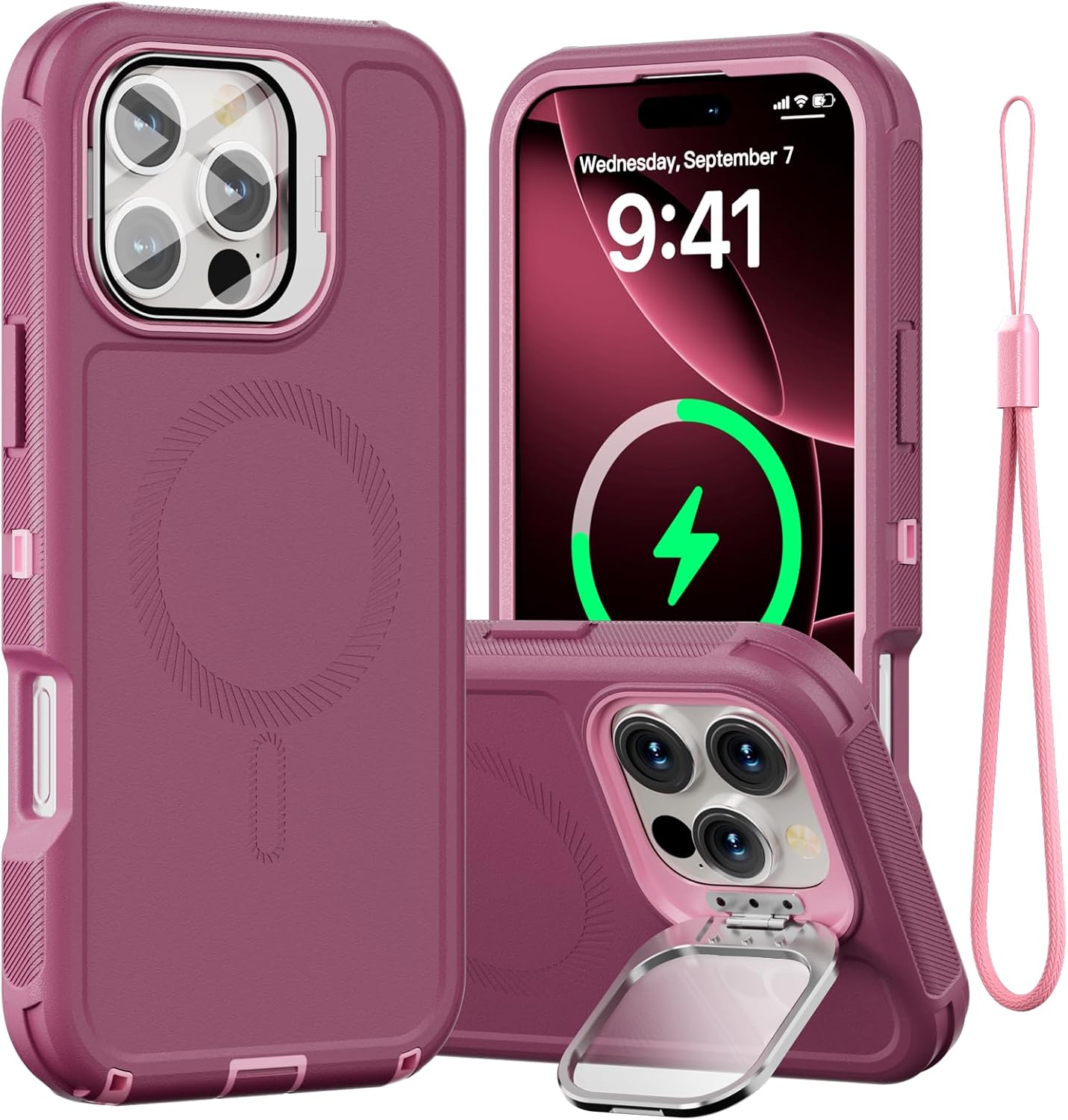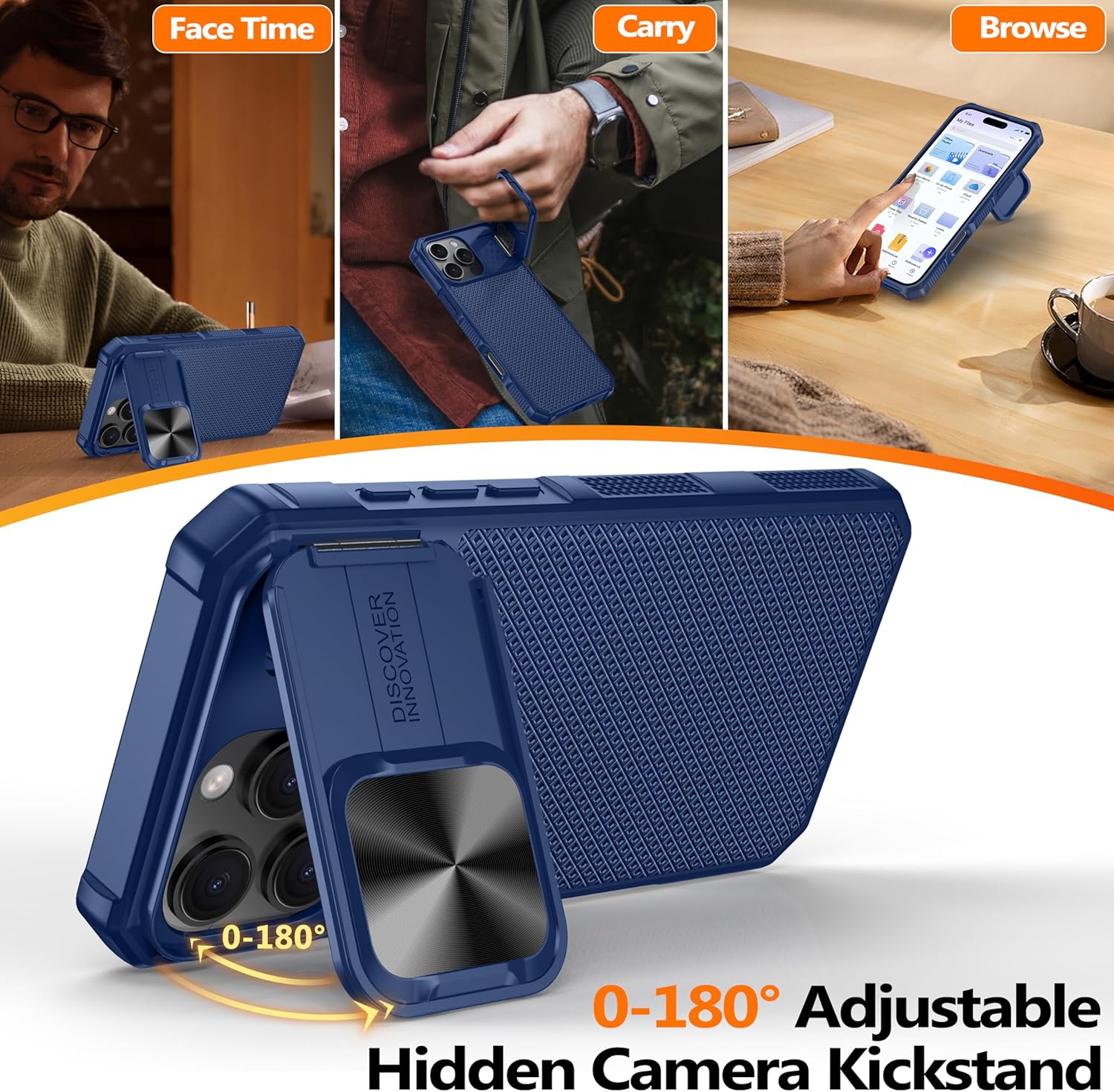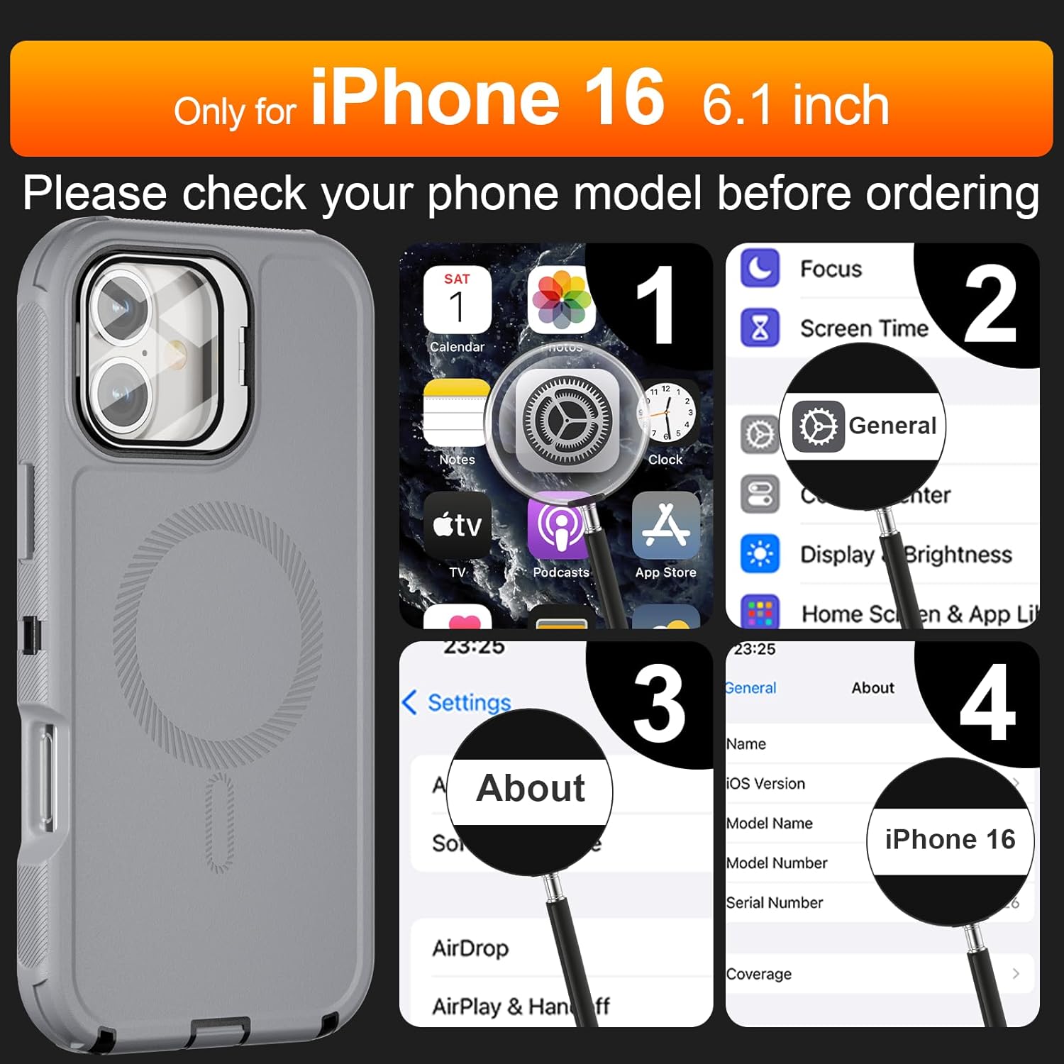 SURITCH 适用于 iPhone 16 Pro 手机壳,带滑动相机盖和可调节支架,兼容 MagSafe,防震防撞保护套,适用于 iPhone 16 Pro 6.3 英寸,黑色