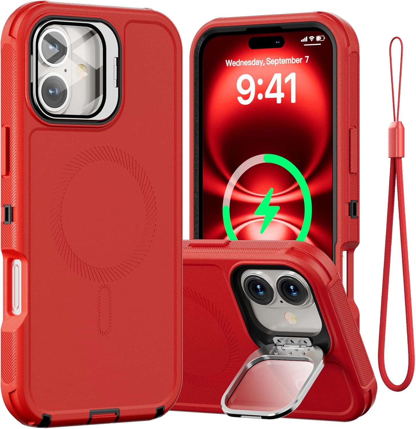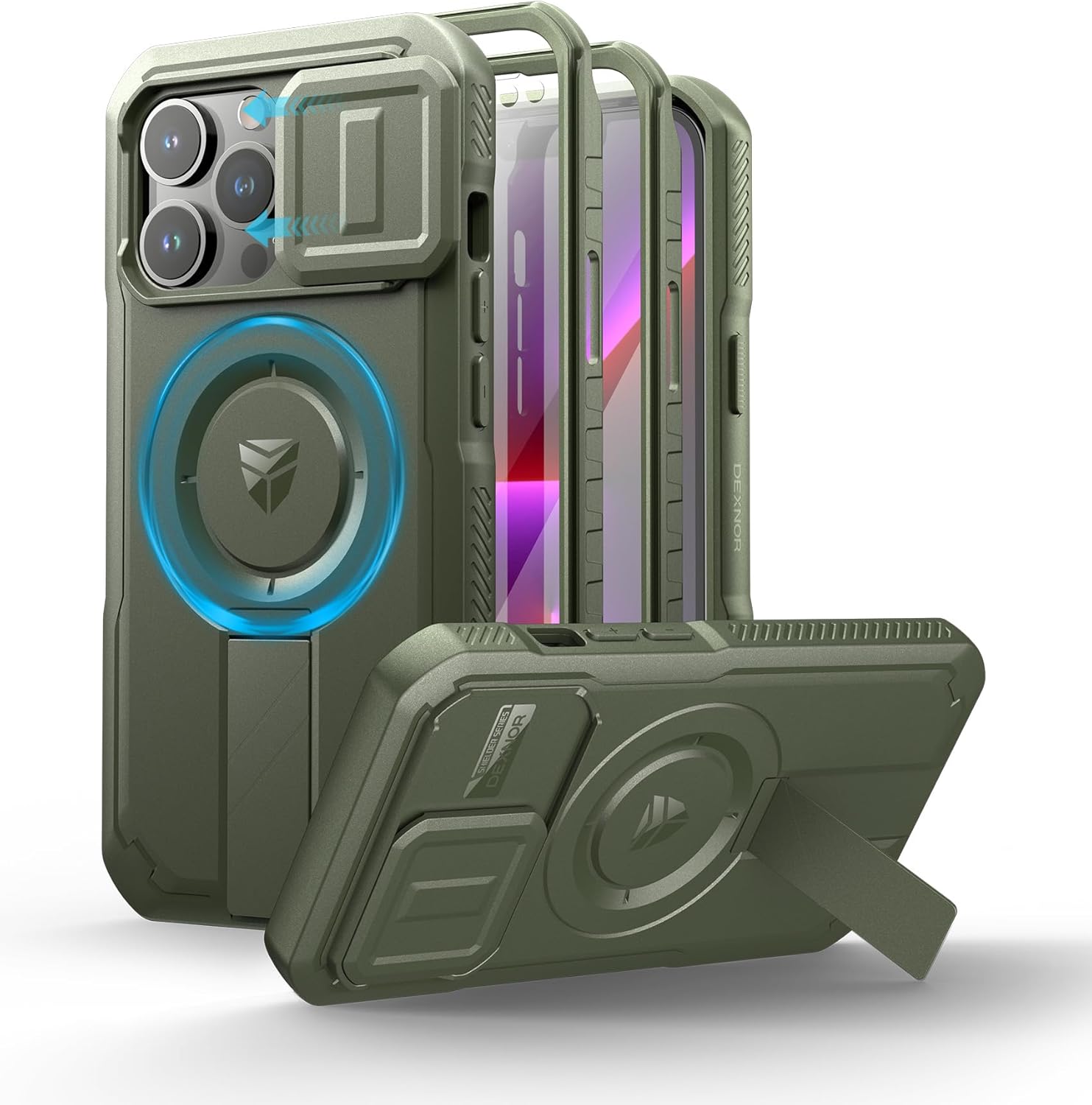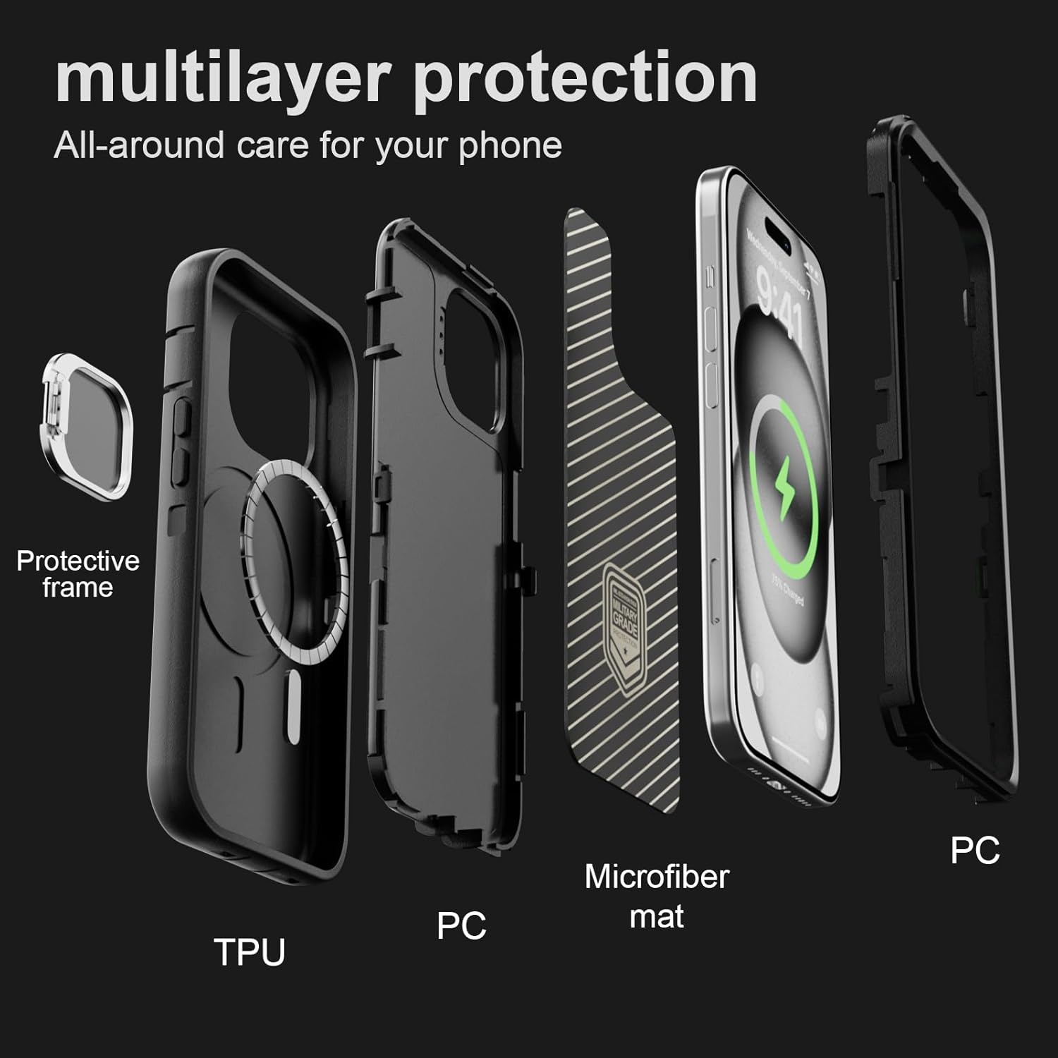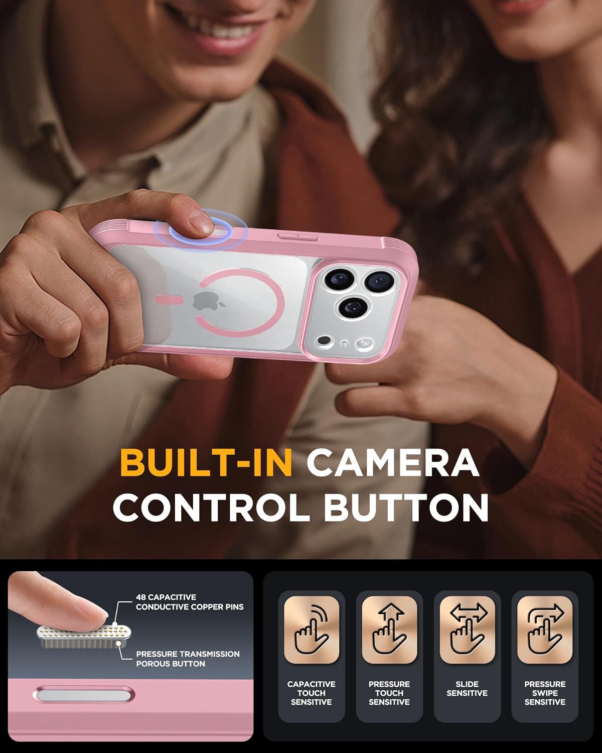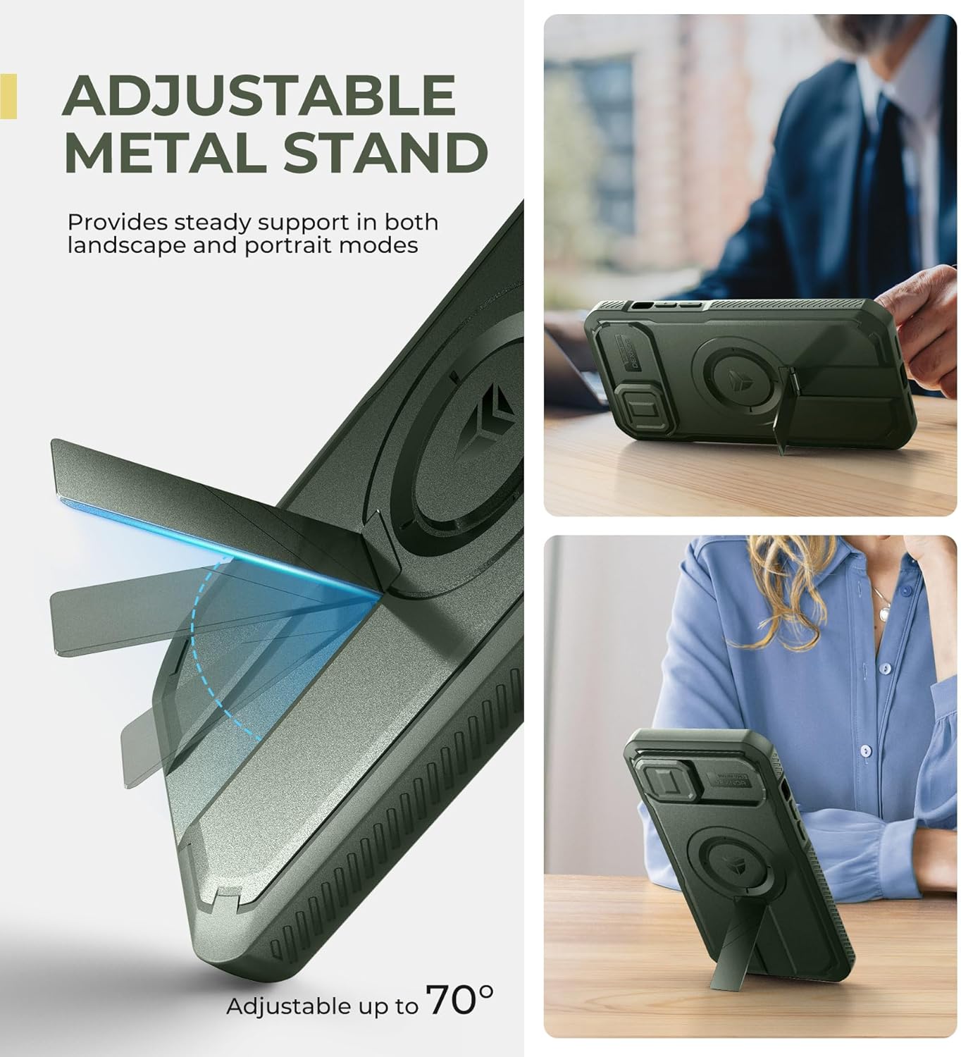 SURITCH 适用于 iPhone 16 Pro 手机壳,带滑动相机盖和可调节支架,兼容 MagSafe,防震防撞保护套,适用于 iPhone 16 Pro 6.3 英寸,黑色