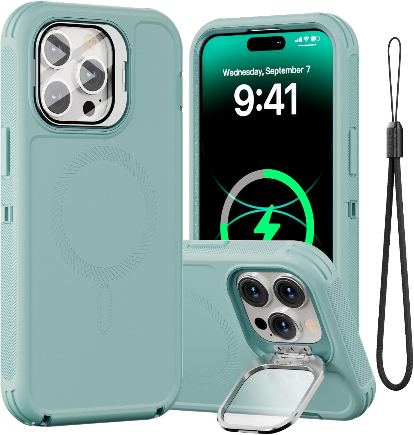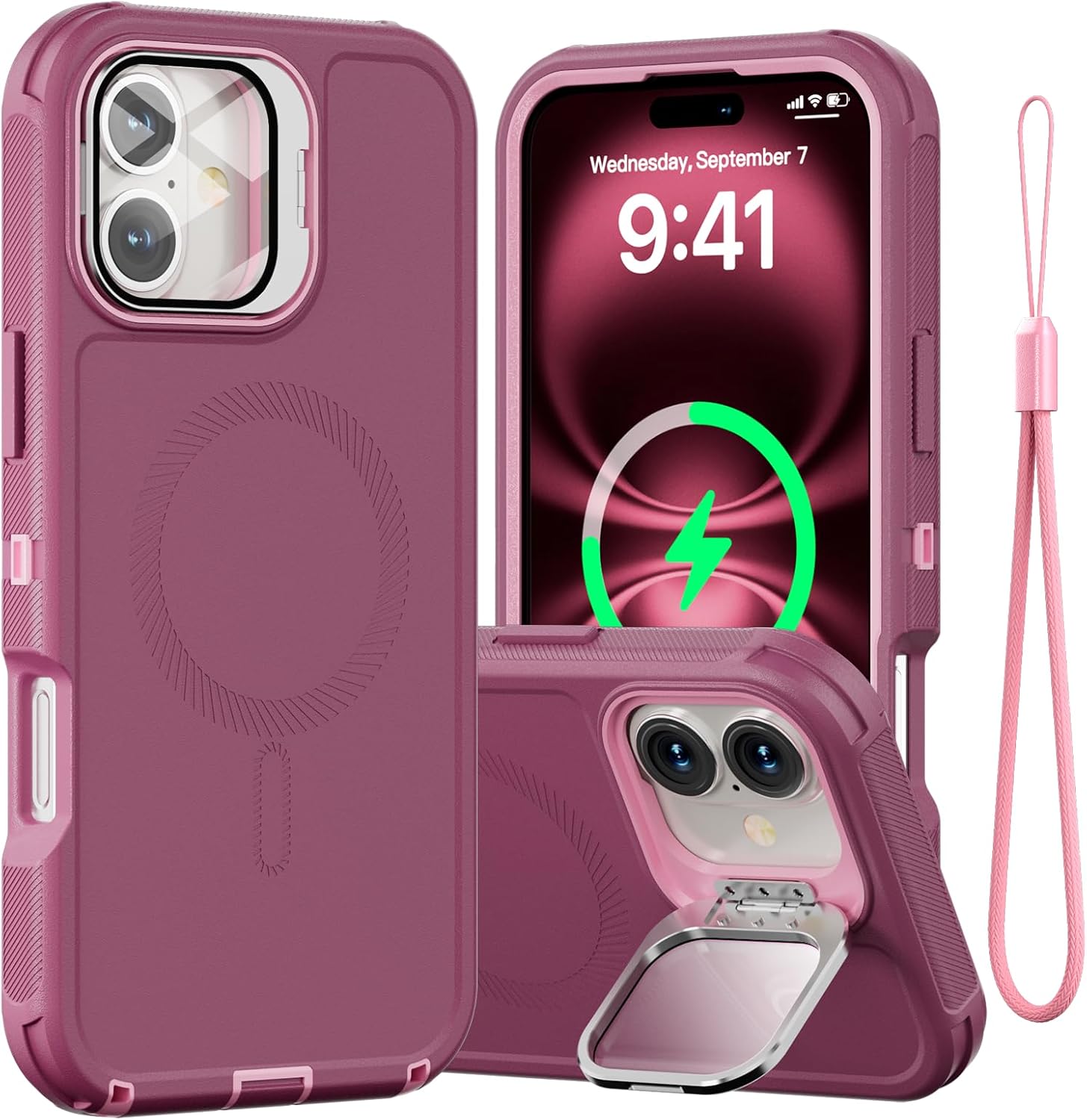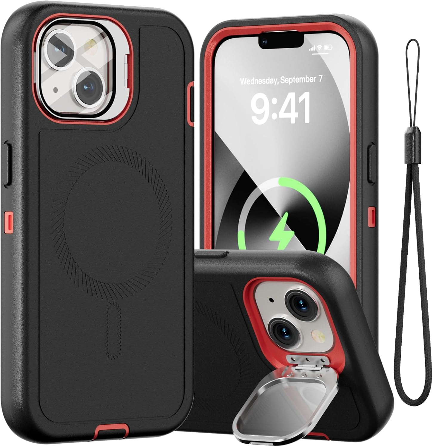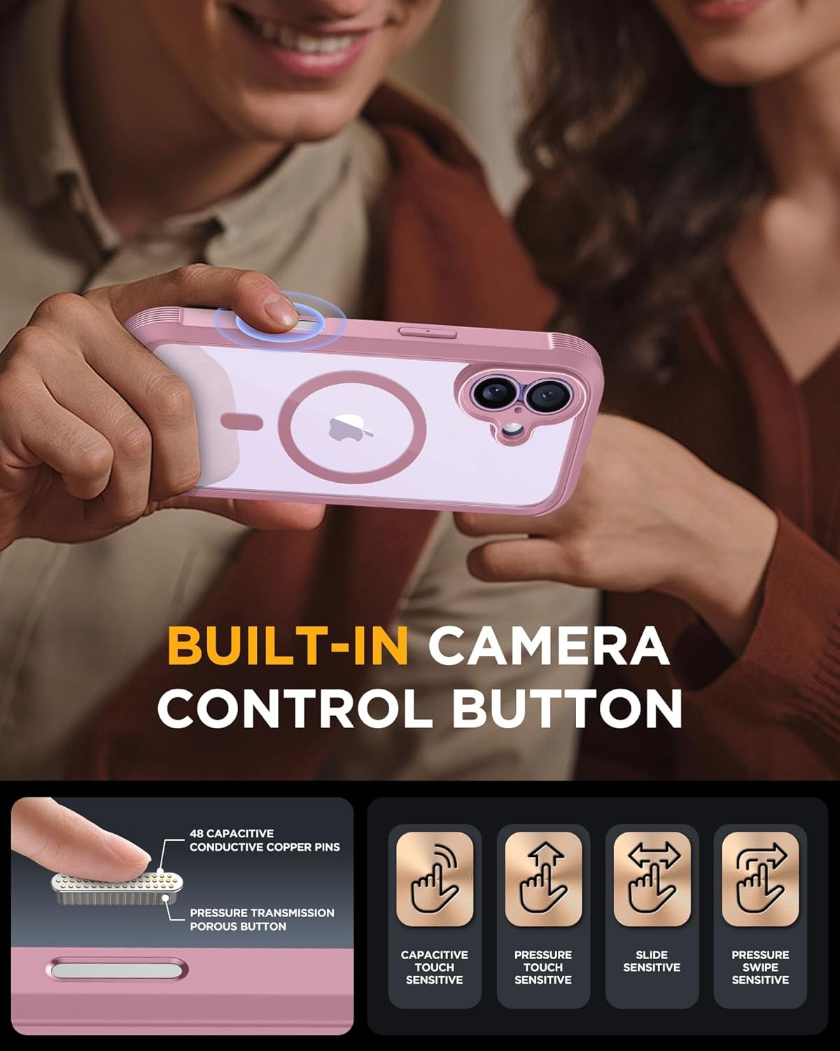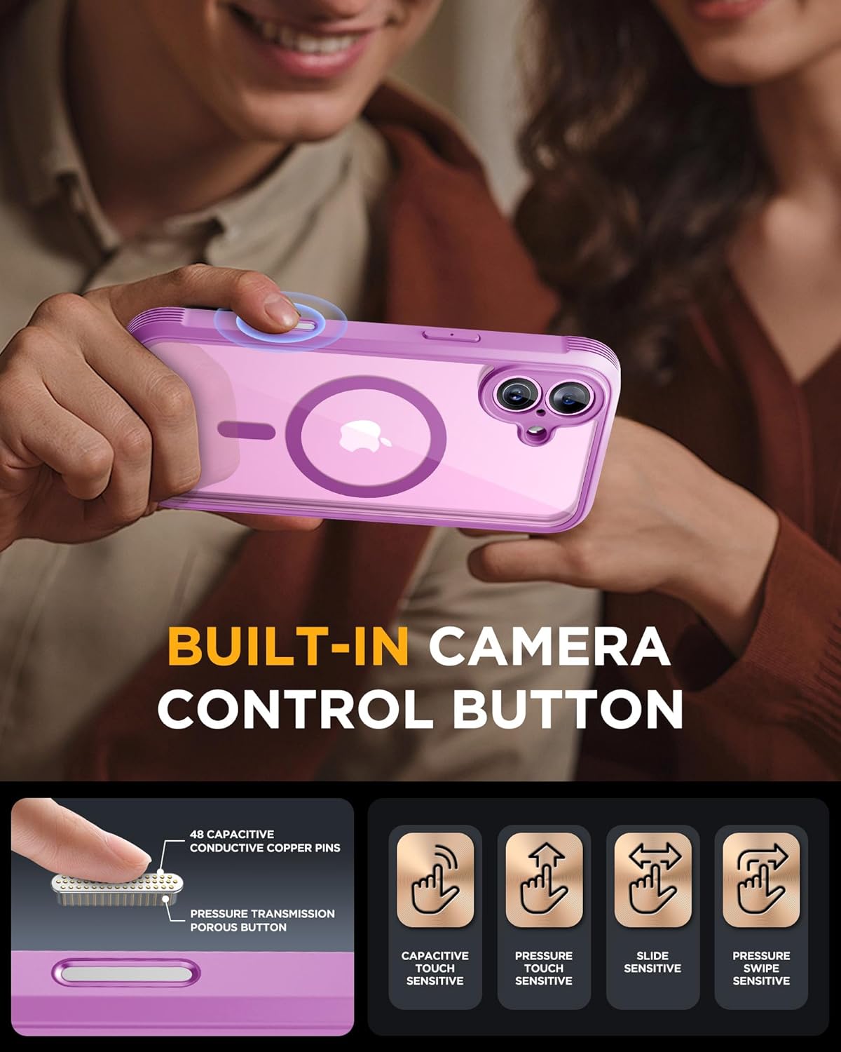 SURITCH 适用于 iPhone 16 Pro 手机壳,带滑动相机盖和可调节支架,兼容 MagSafe,防震防撞保护套,适用于 iPhone 16 Pro 6.3 英寸,黑色