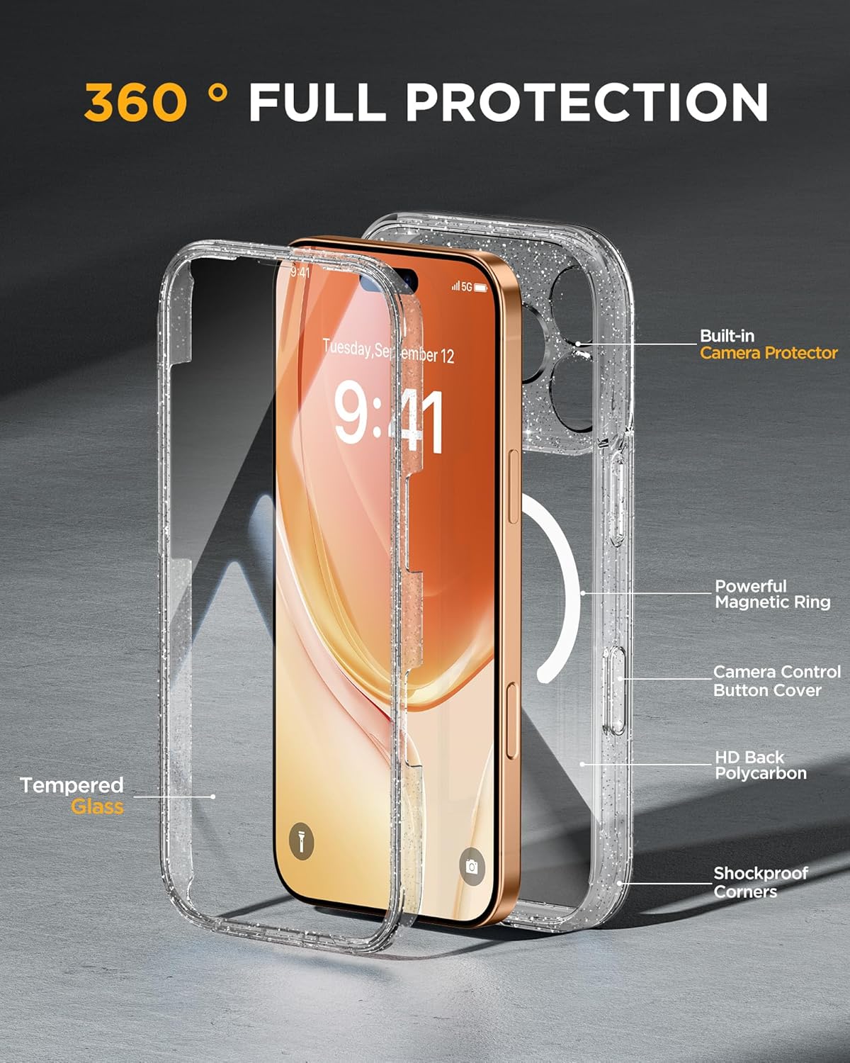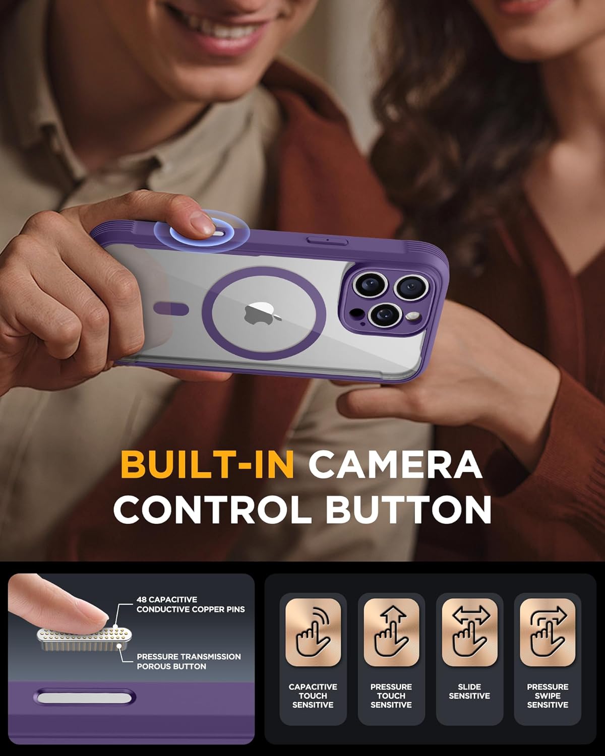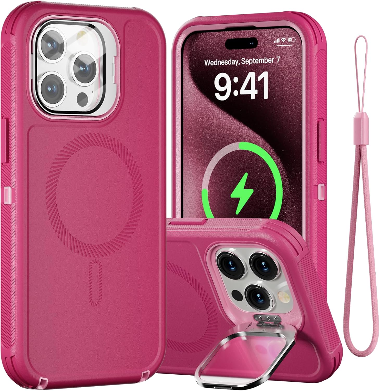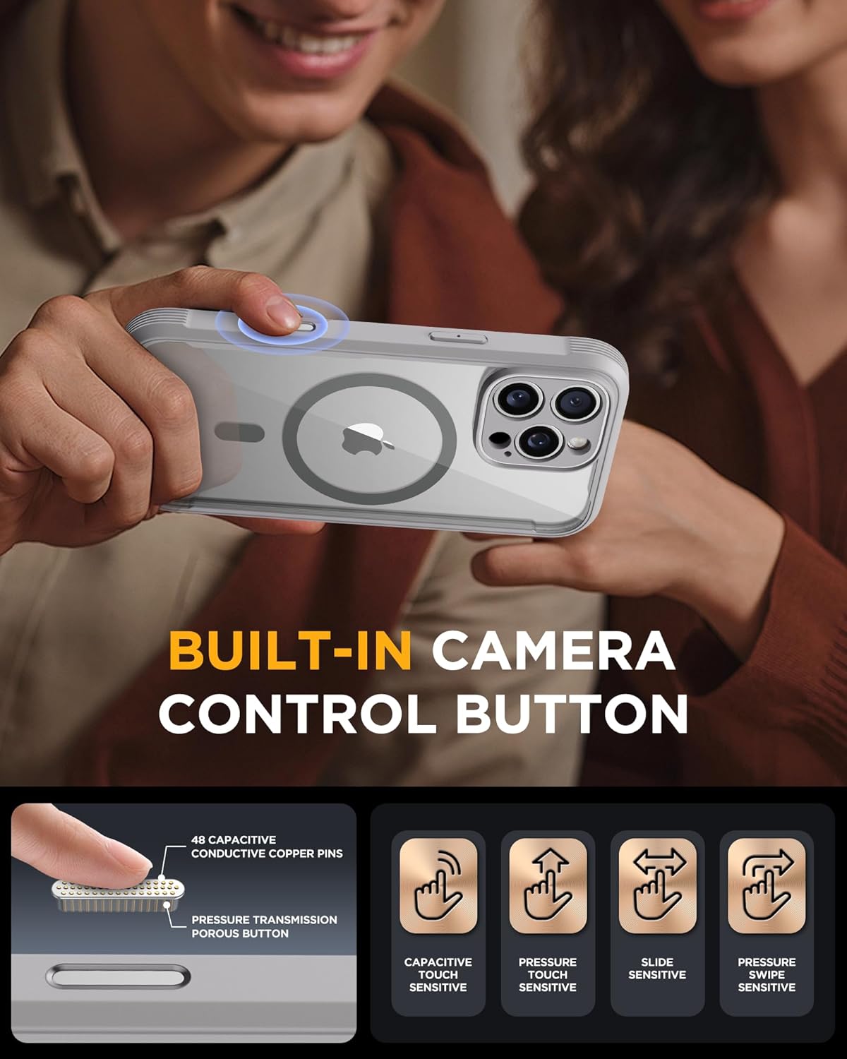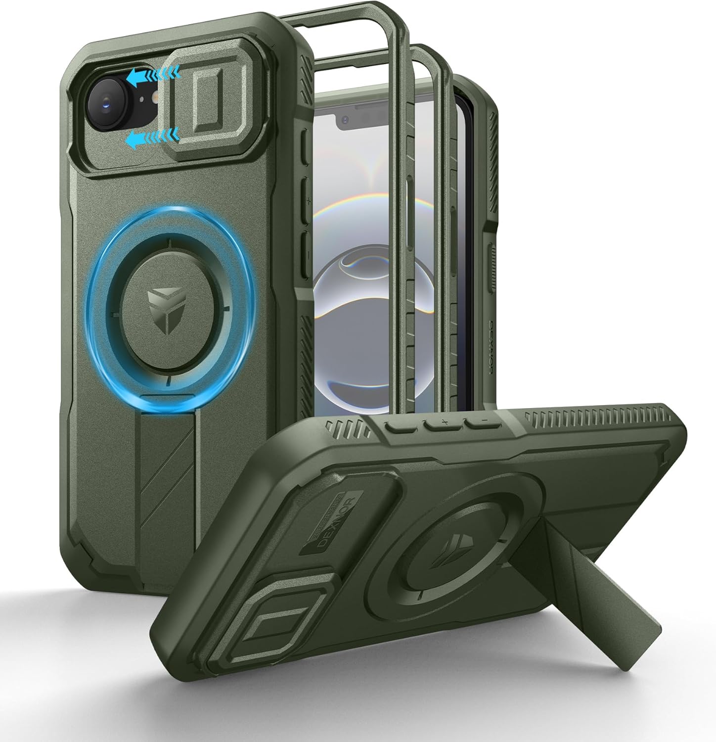 SURITCH 适用于 iPhone 16 Pro 手机壳,带滑动相机盖和可调节支架,兼容 MagSafe,防震防撞保护套,适用于 iPhone 16 Pro 6.3 英寸,黑色