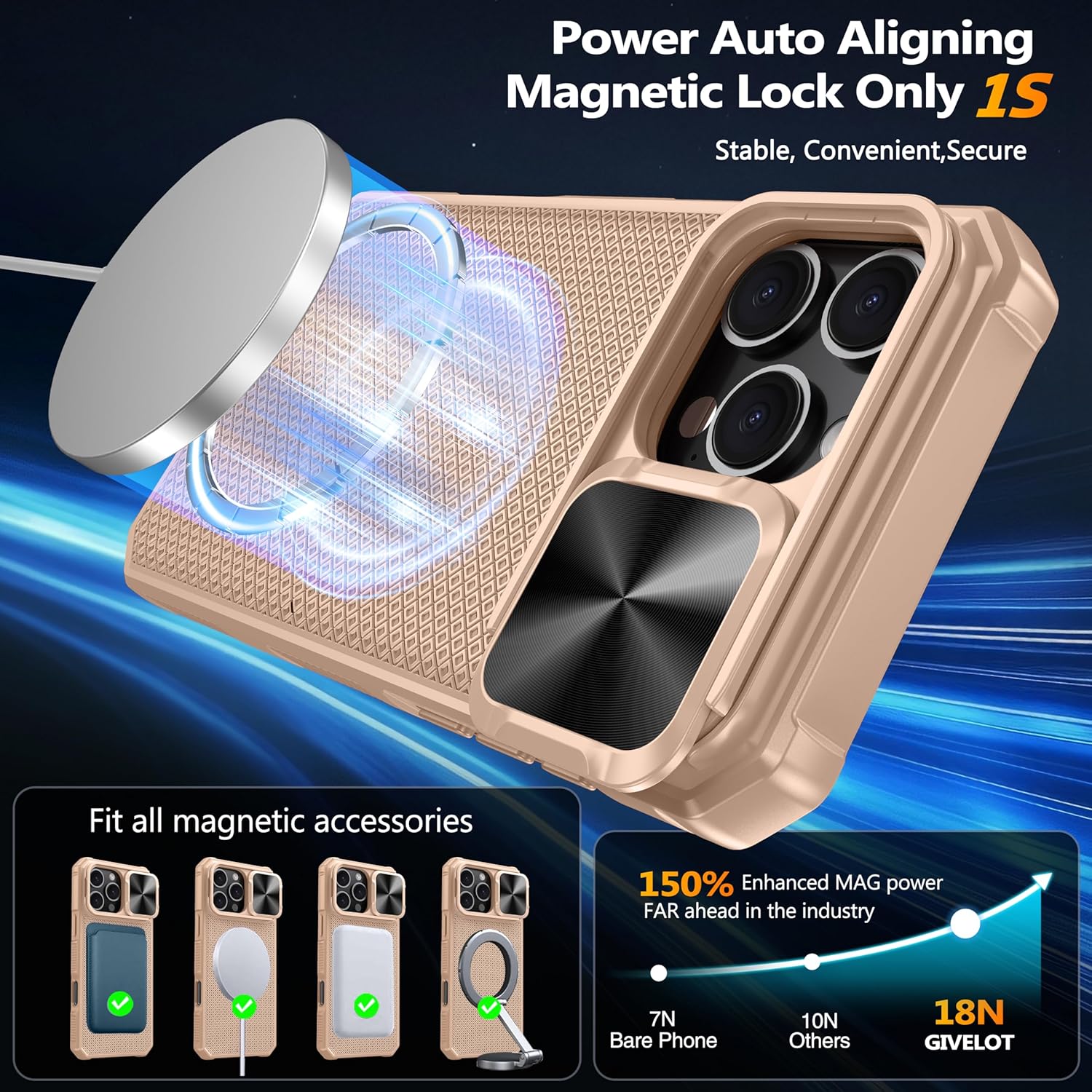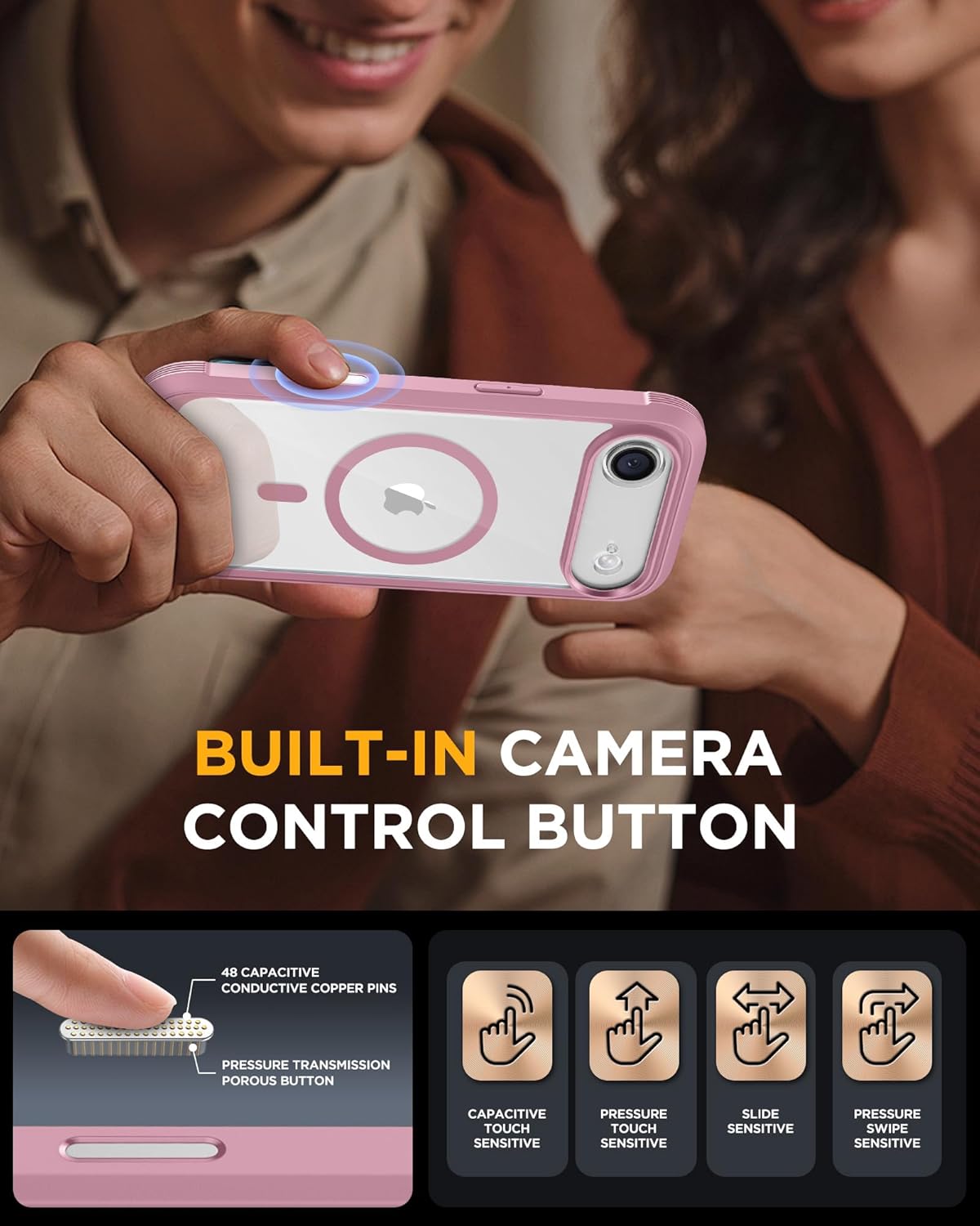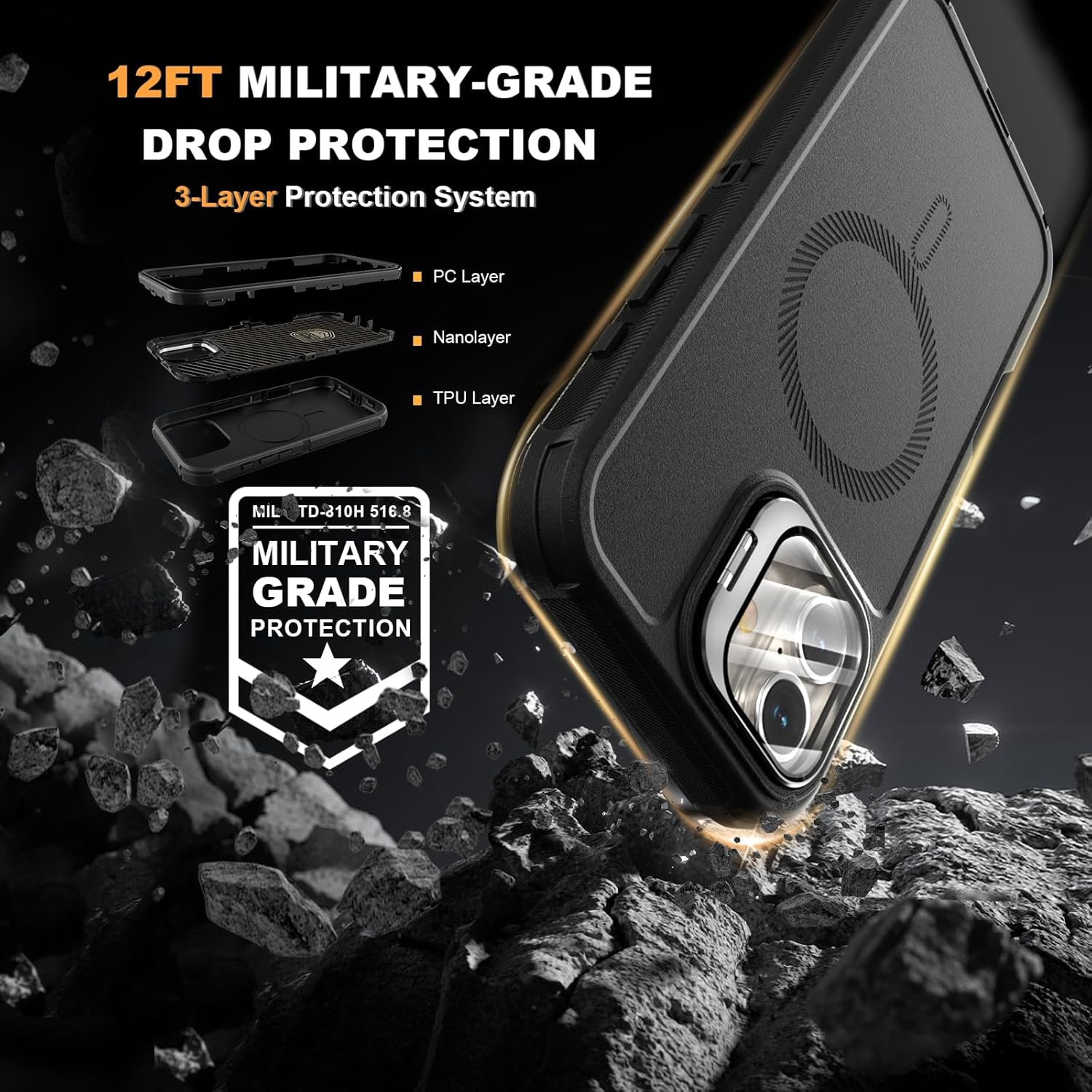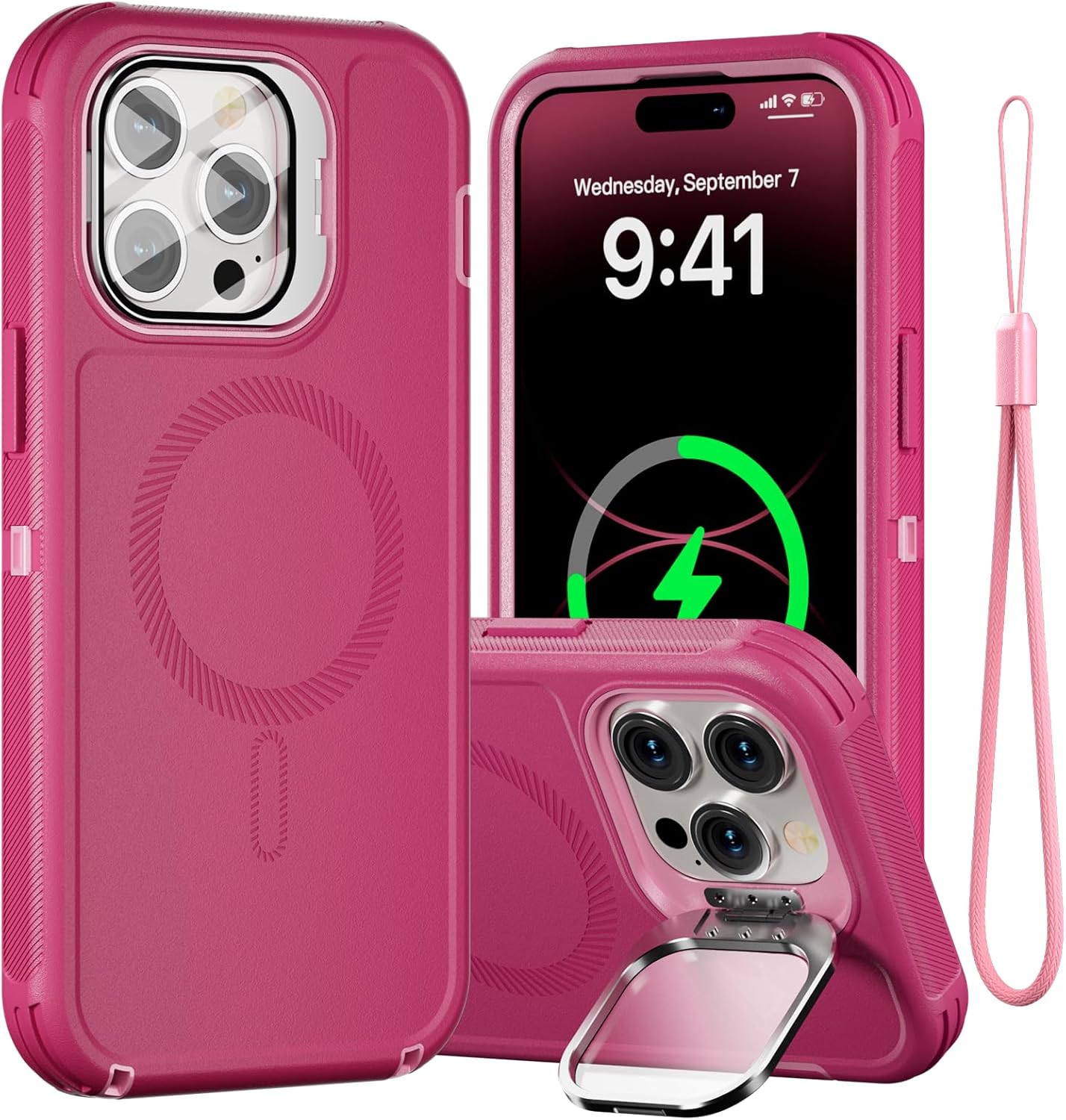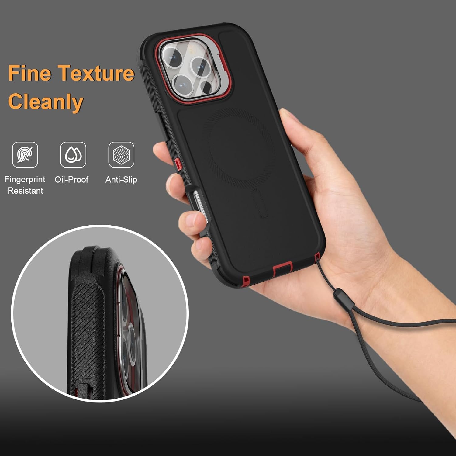 SURITCH 适用于 iPhone 16 Pro 手机壳,带滑动相机盖和可调节支架,兼容 MagSafe,防震防撞保护套,适用于 iPhone 16 Pro 6.3 英寸,黑色