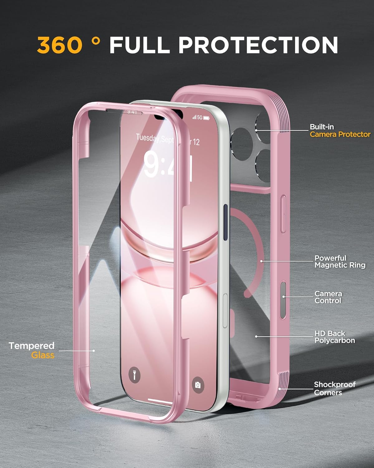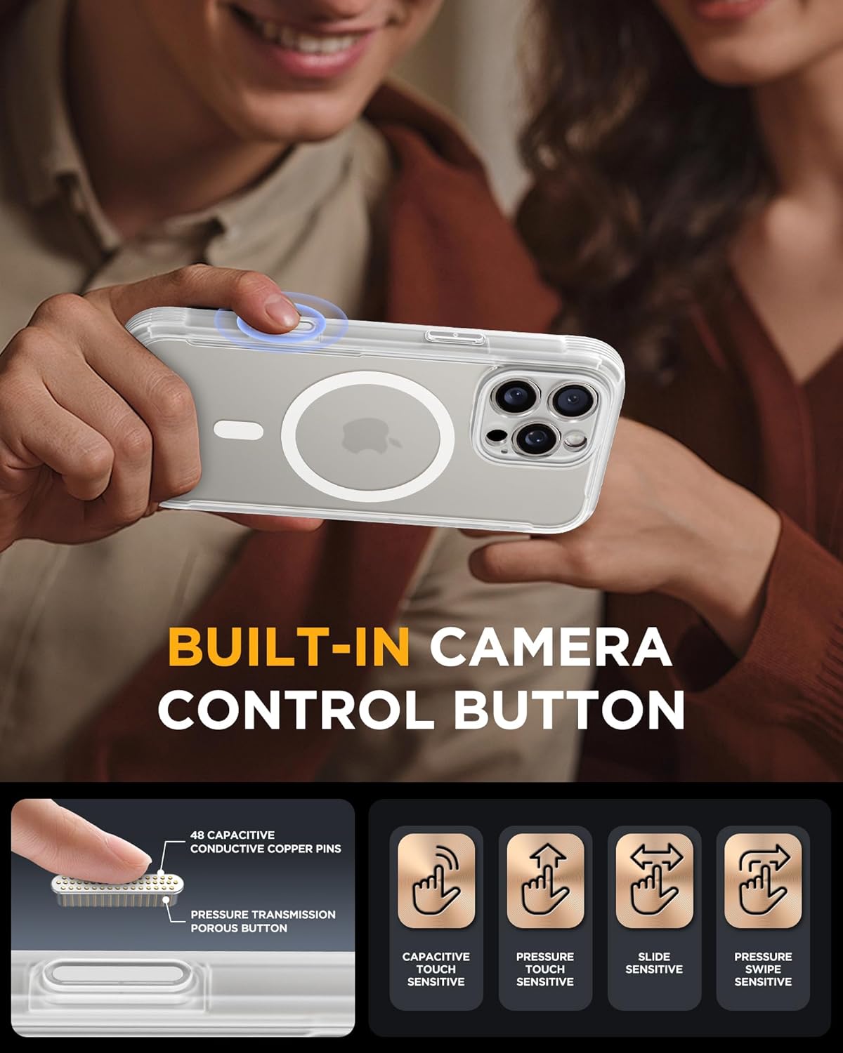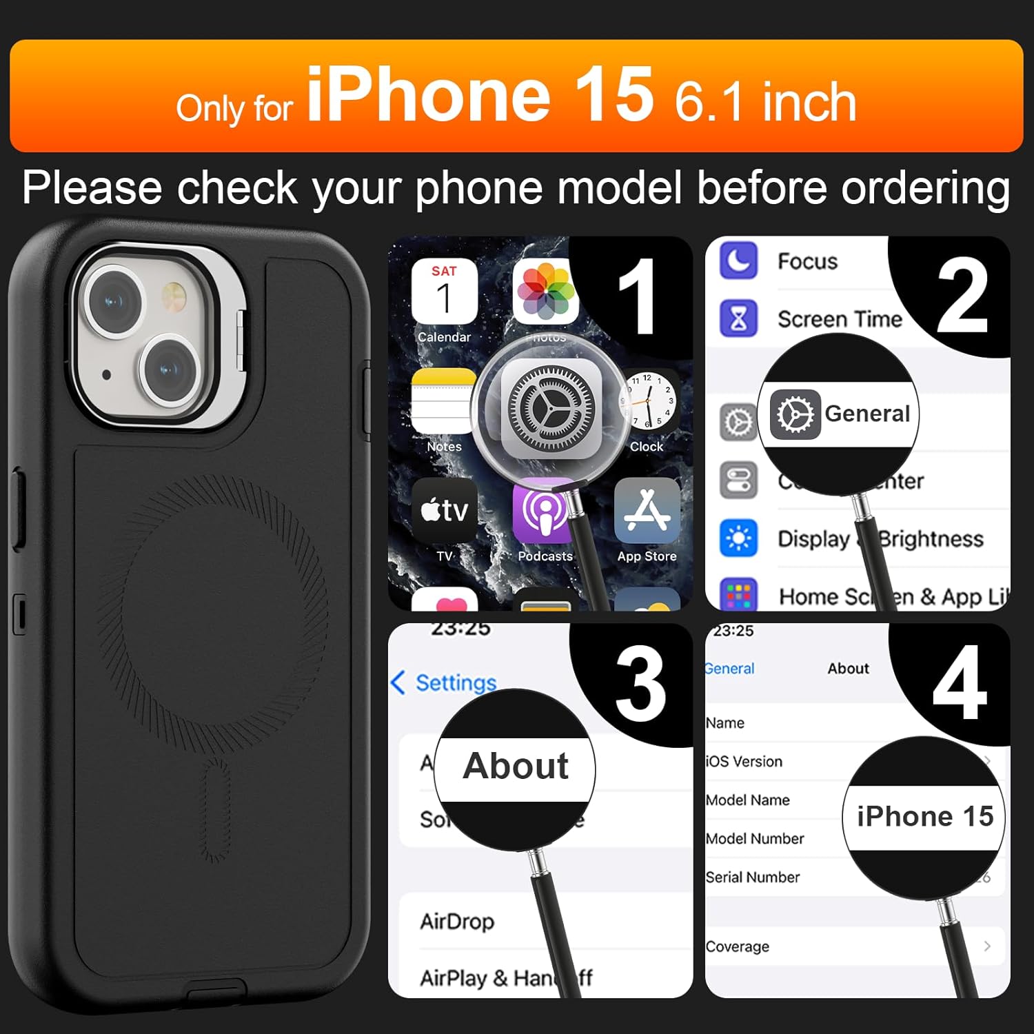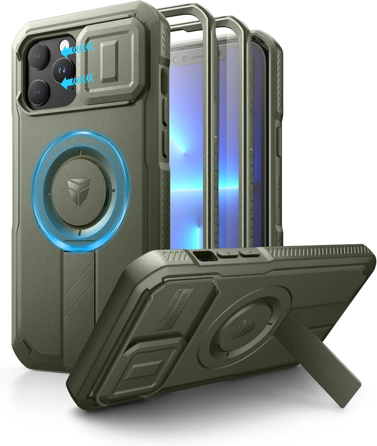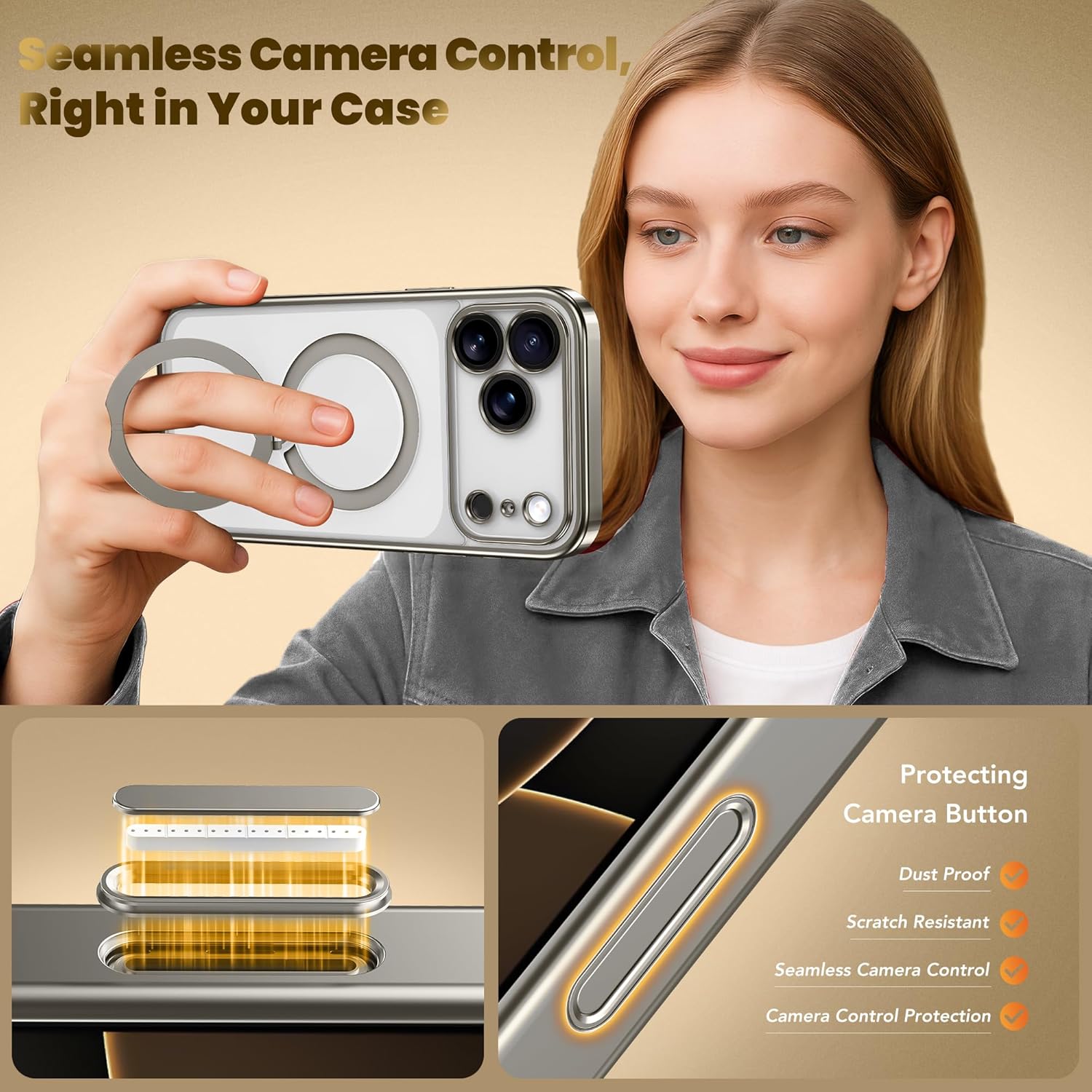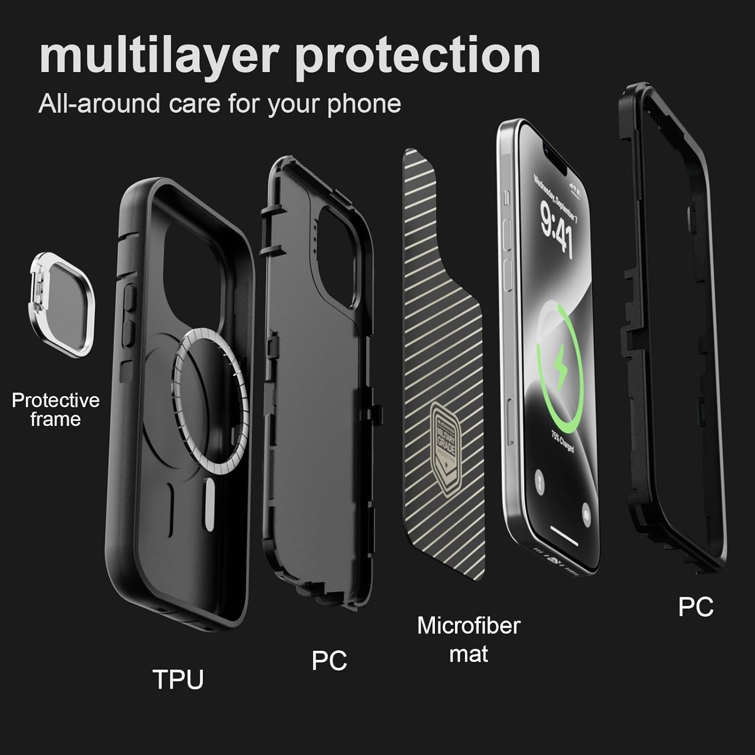 SURITCH 适用于 iPhone 16 Pro 手机壳,带滑动相机盖和可调节支架,兼容 MagSafe,防震防撞保护套,适用于 iPhone 16 Pro 6.3 英寸,黑色