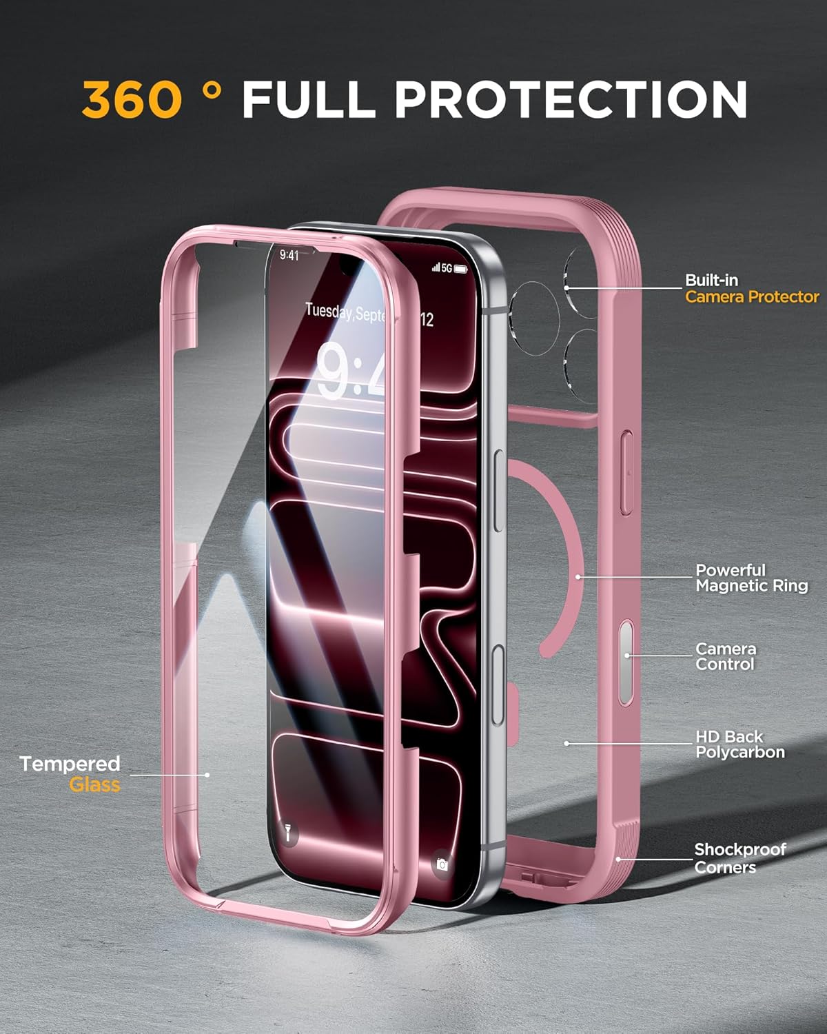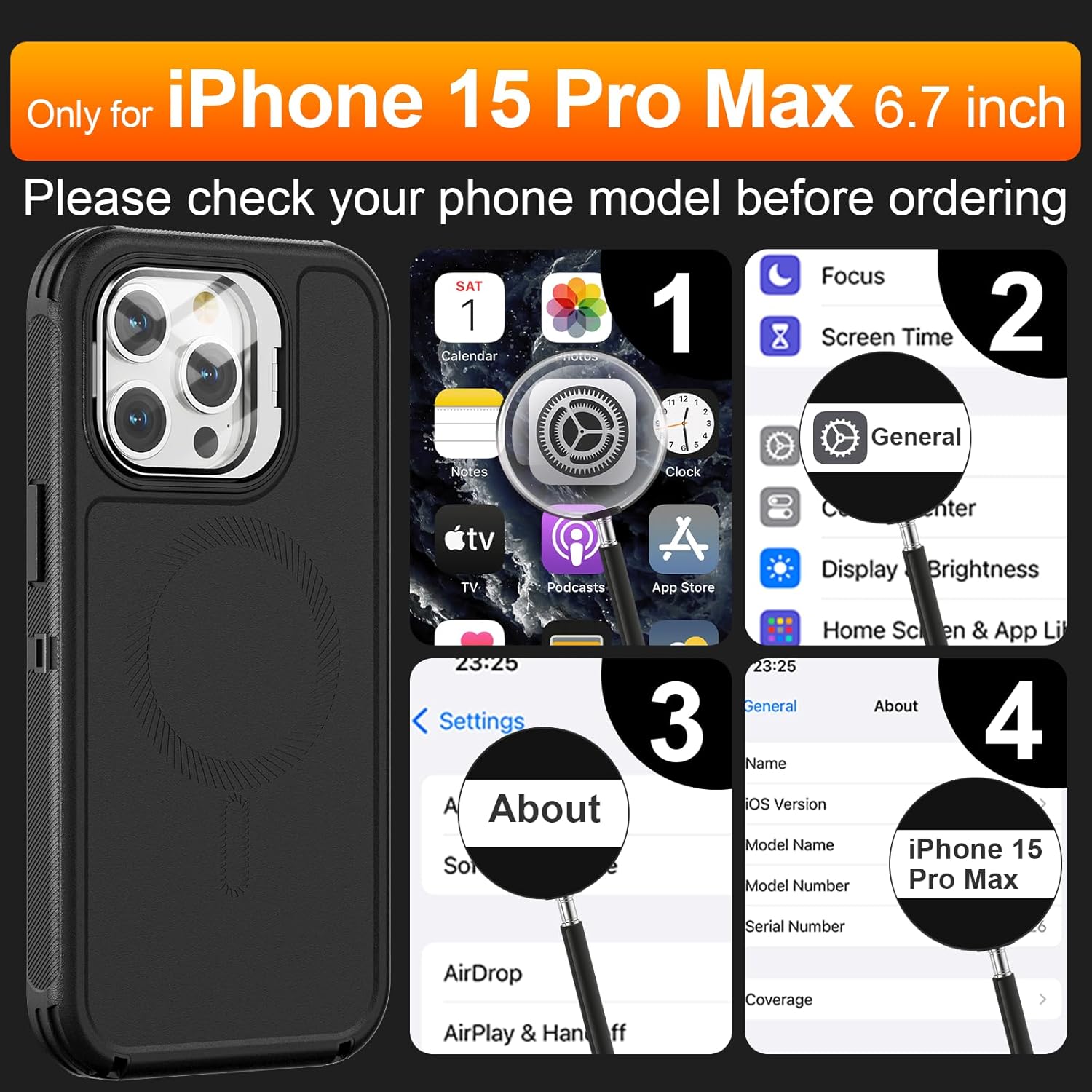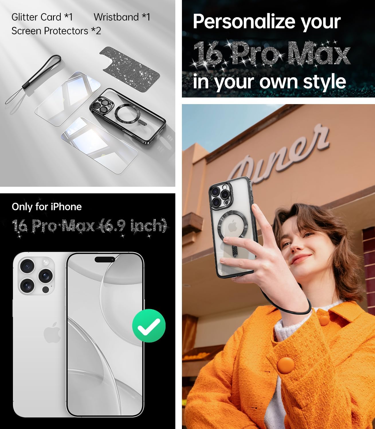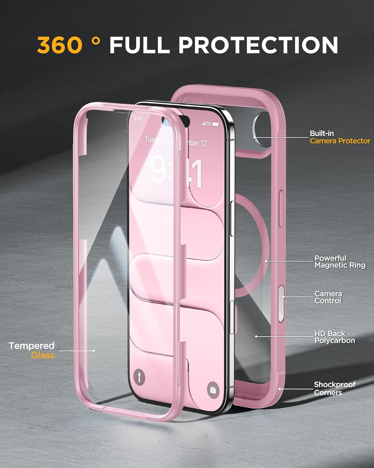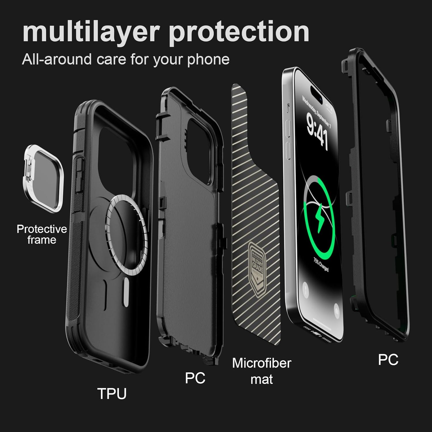 SURITCH 适用于 iPhone 16 Pro 手机壳,带滑动相机盖和可调节支架,兼容 MagSafe,防震防撞保护套,适用于 iPhone 16 Pro 6.3 英寸,黑色
