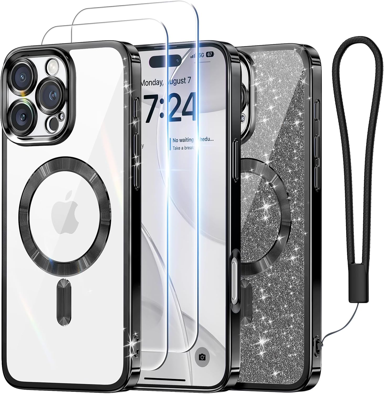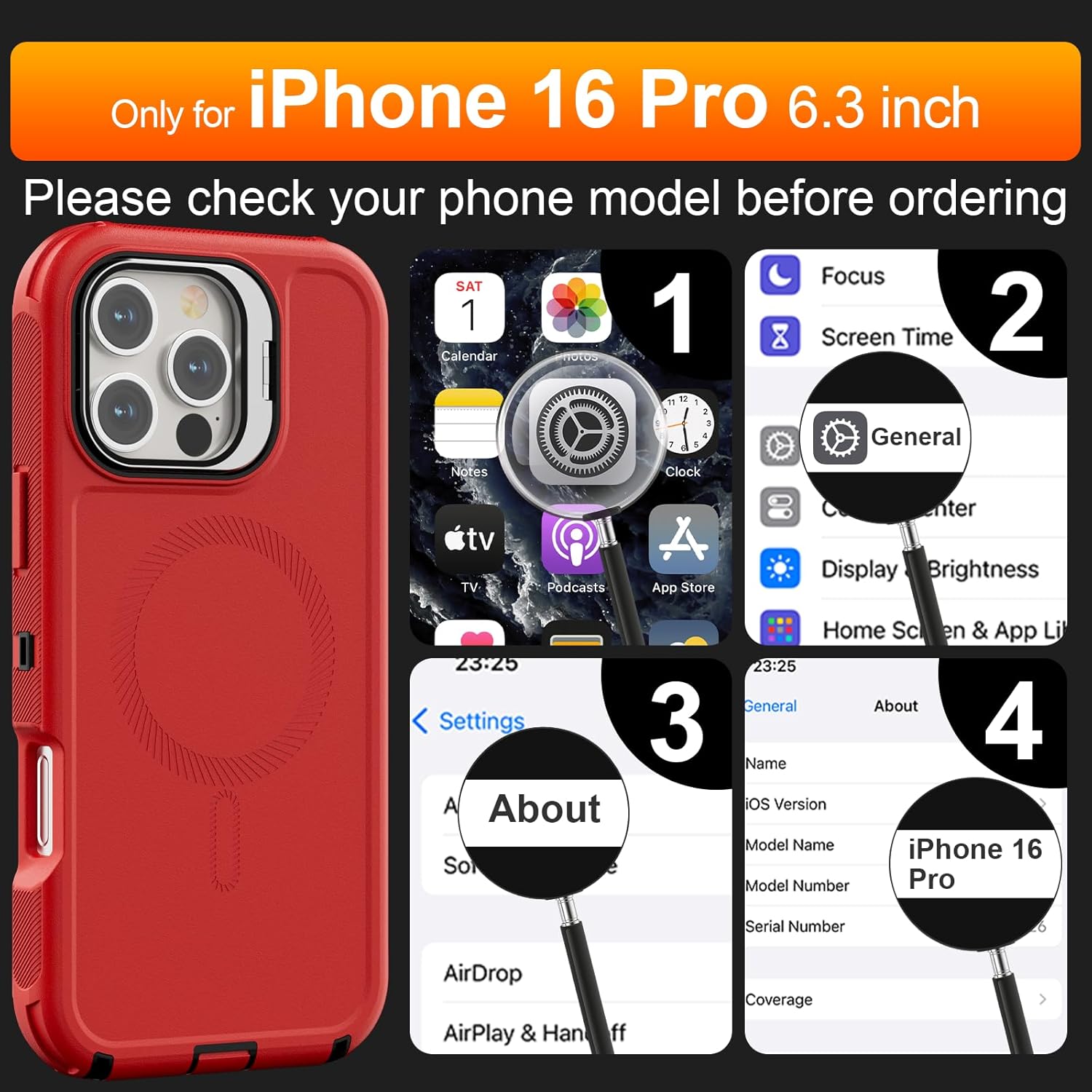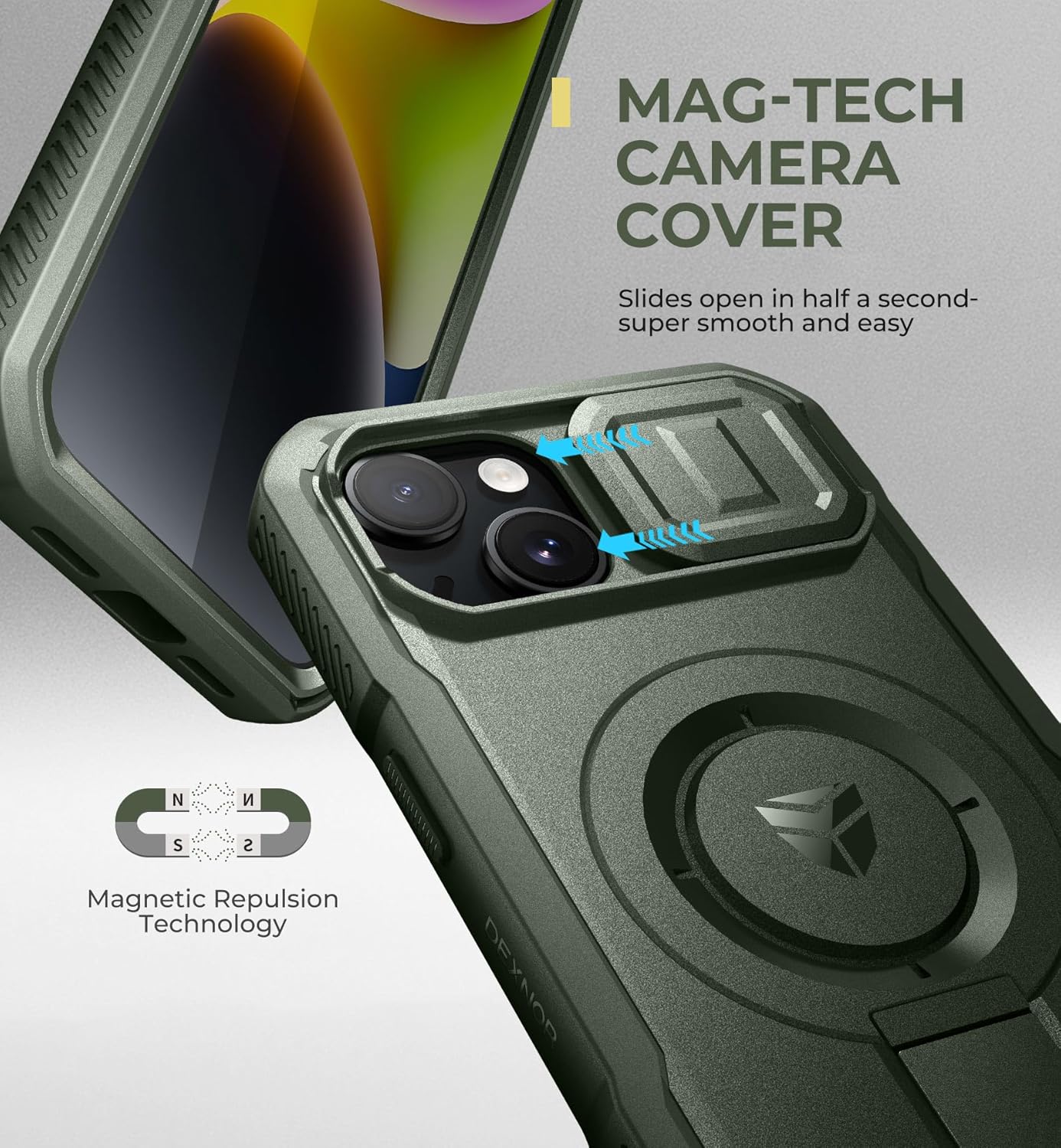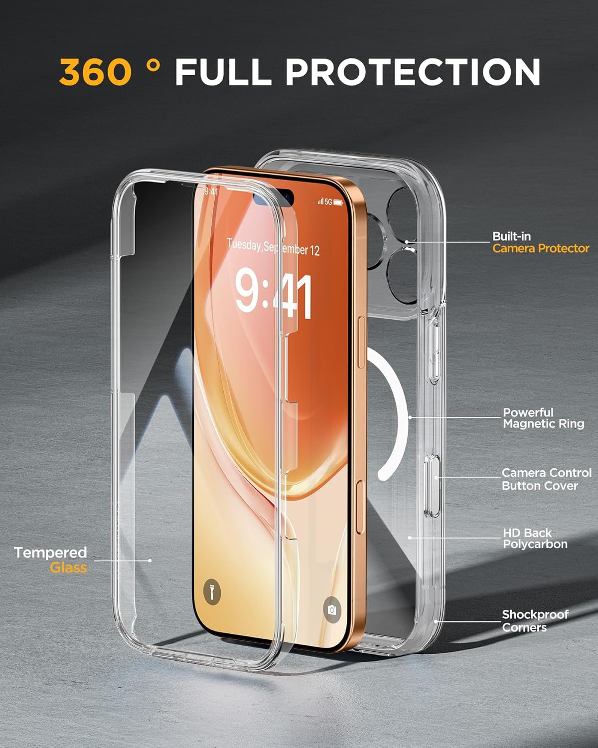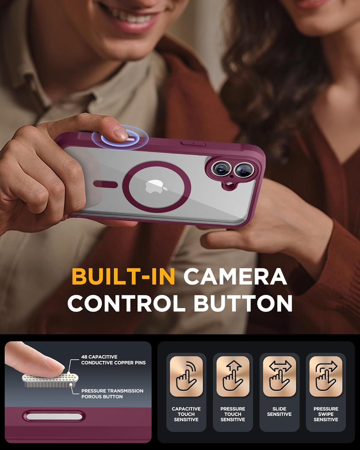 SURITCH 适用于 iPhone 16 Pro 手机壳,带滑动相机盖和可调节支架,兼容 MagSafe,防震防撞保护套,适用于 iPhone 16 Pro 6.3 英寸,黑色
