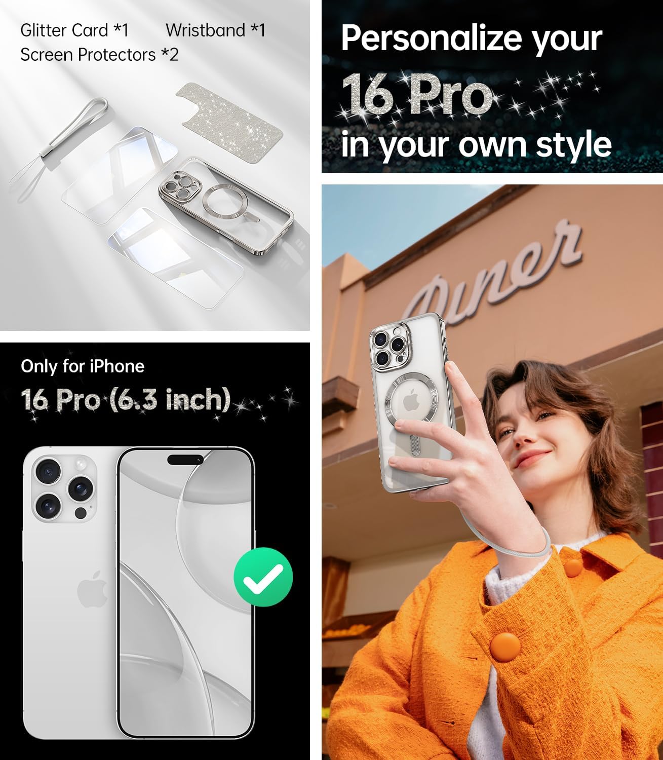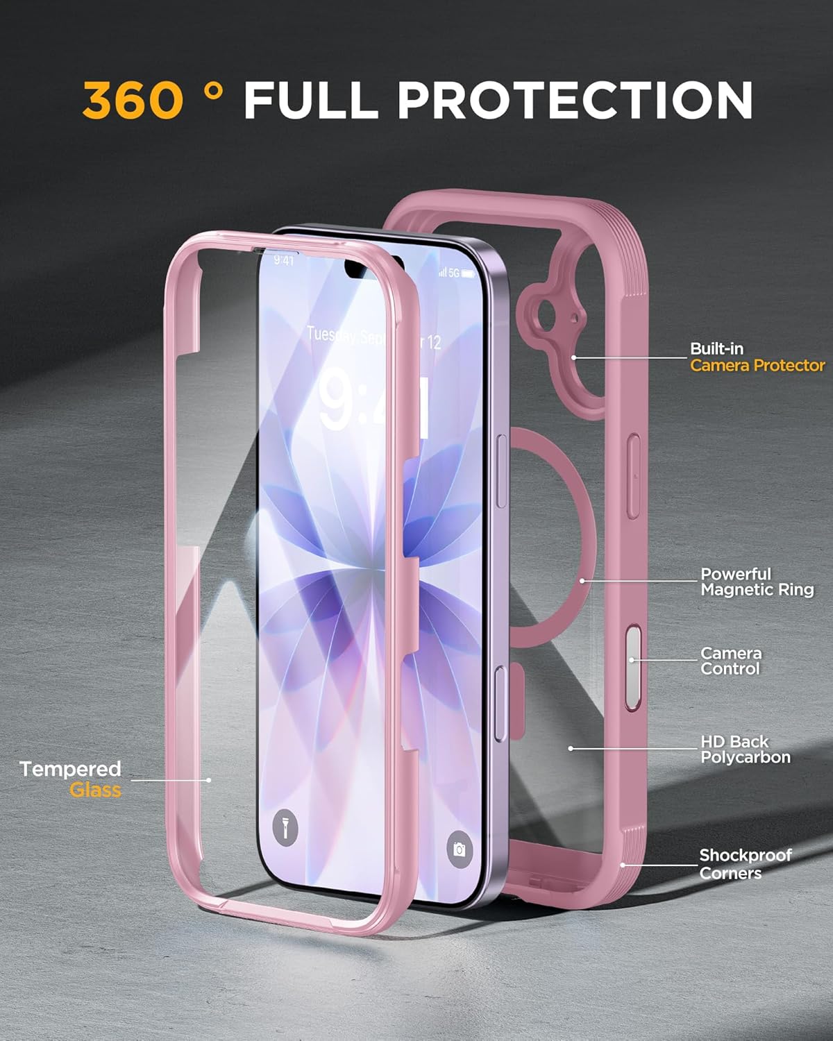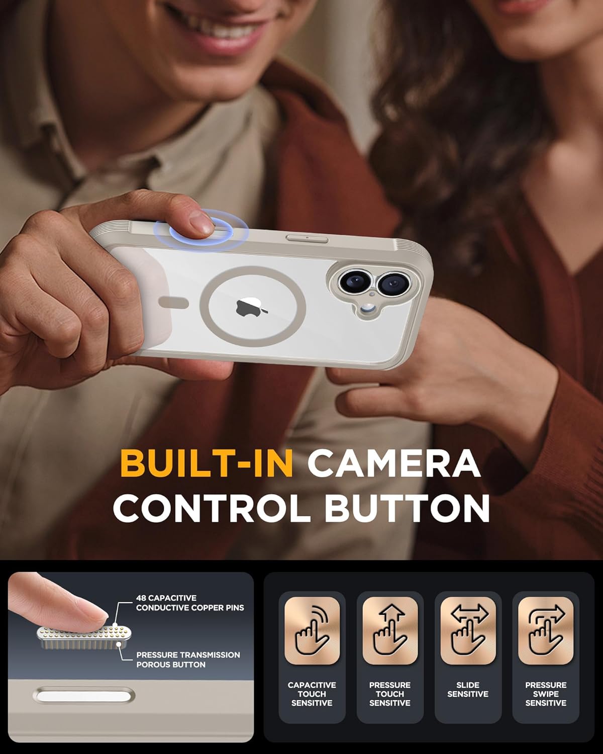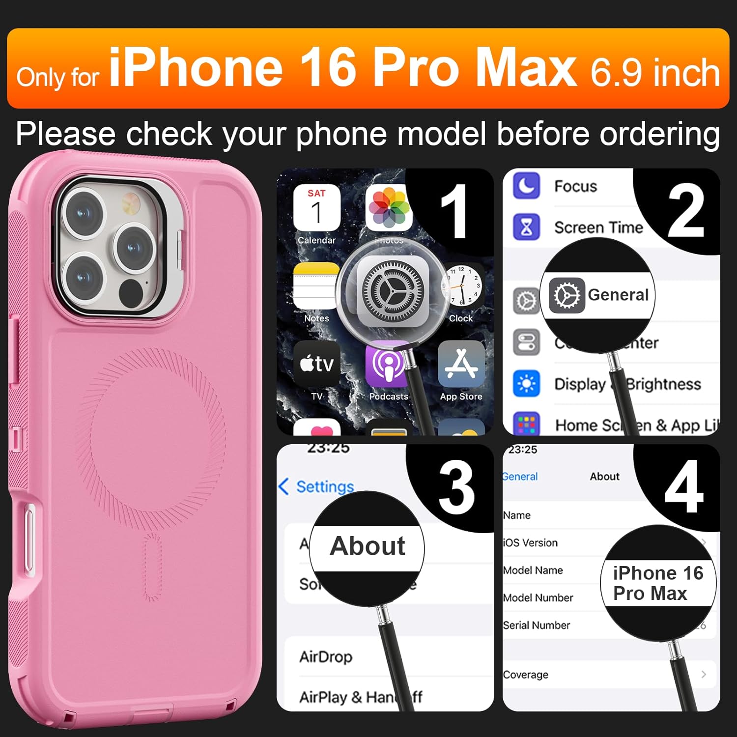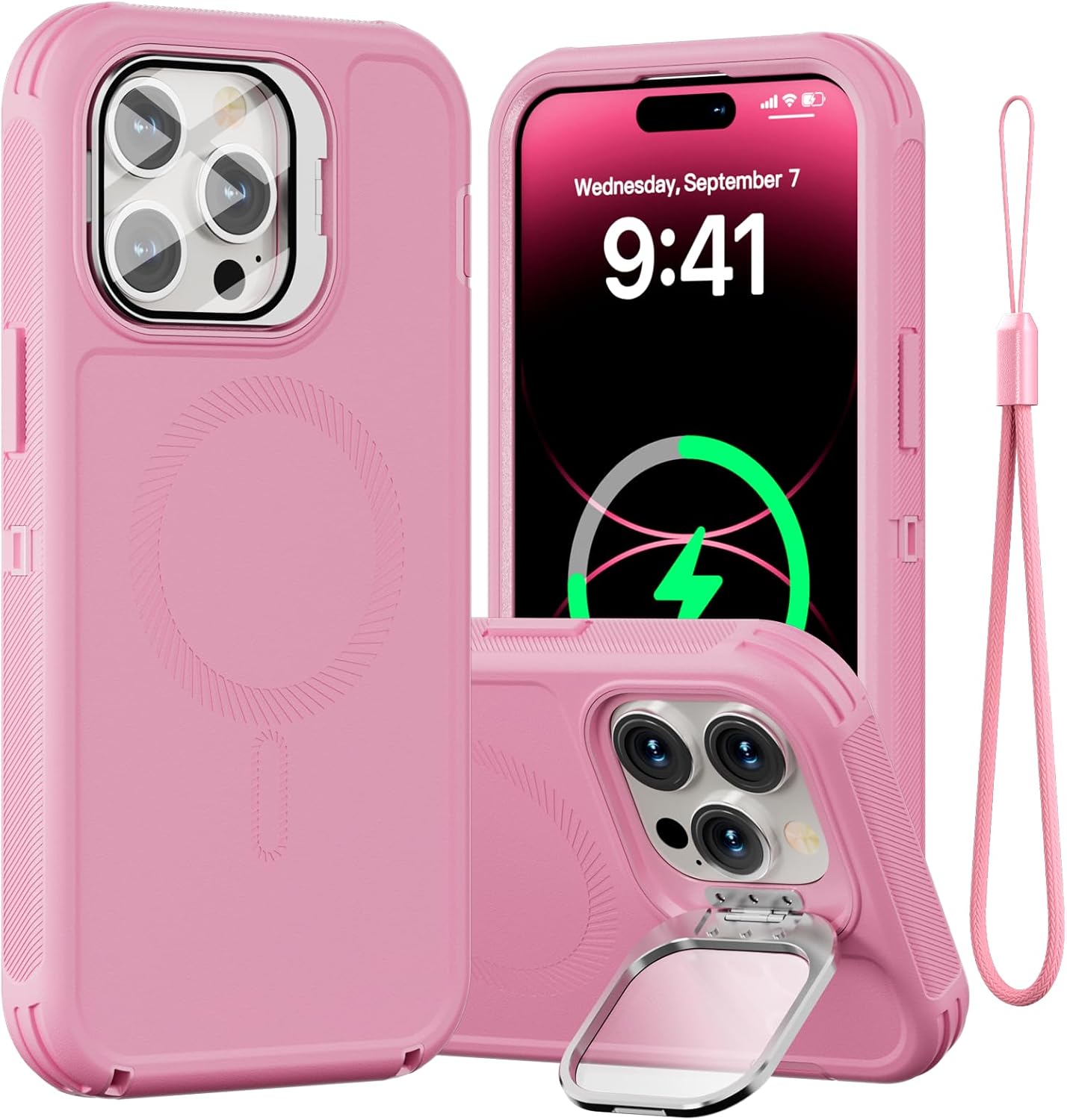 SURITCH 适用于 iPhone 16 Pro 手机壳,带滑动相机盖和可调节支架,兼容 MagSafe,防震防撞保护套,适用于 iPhone 16 Pro 6.3 英寸,黑色