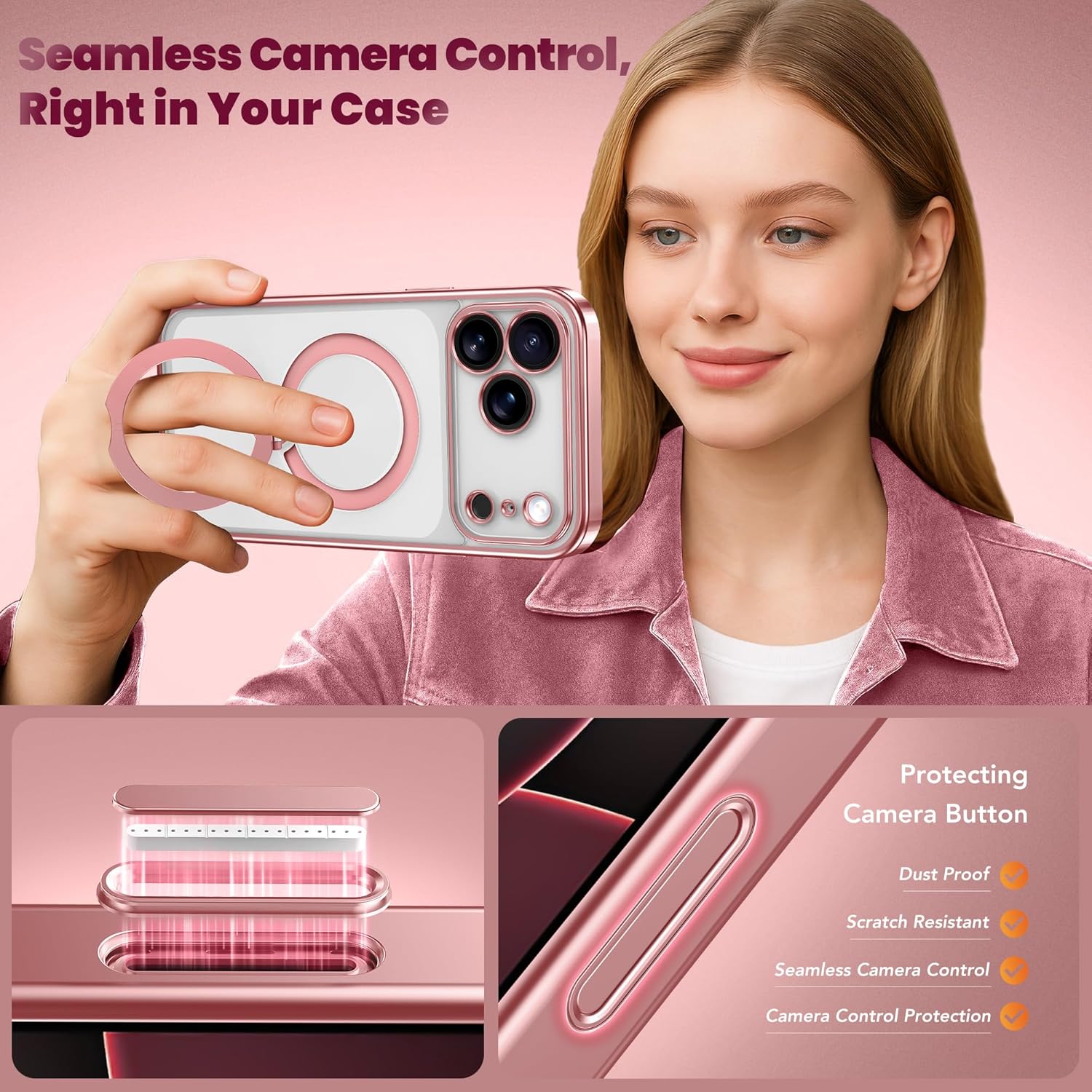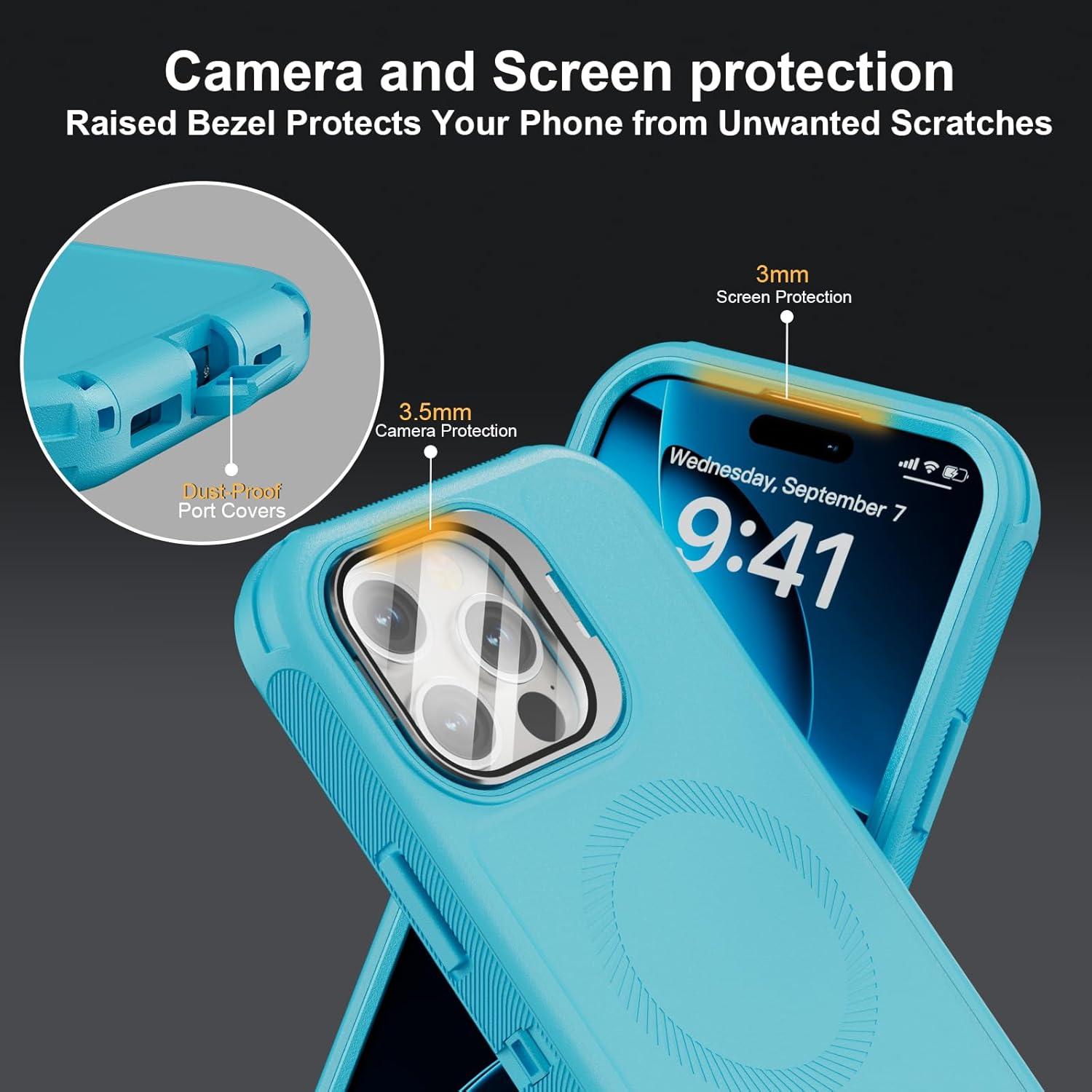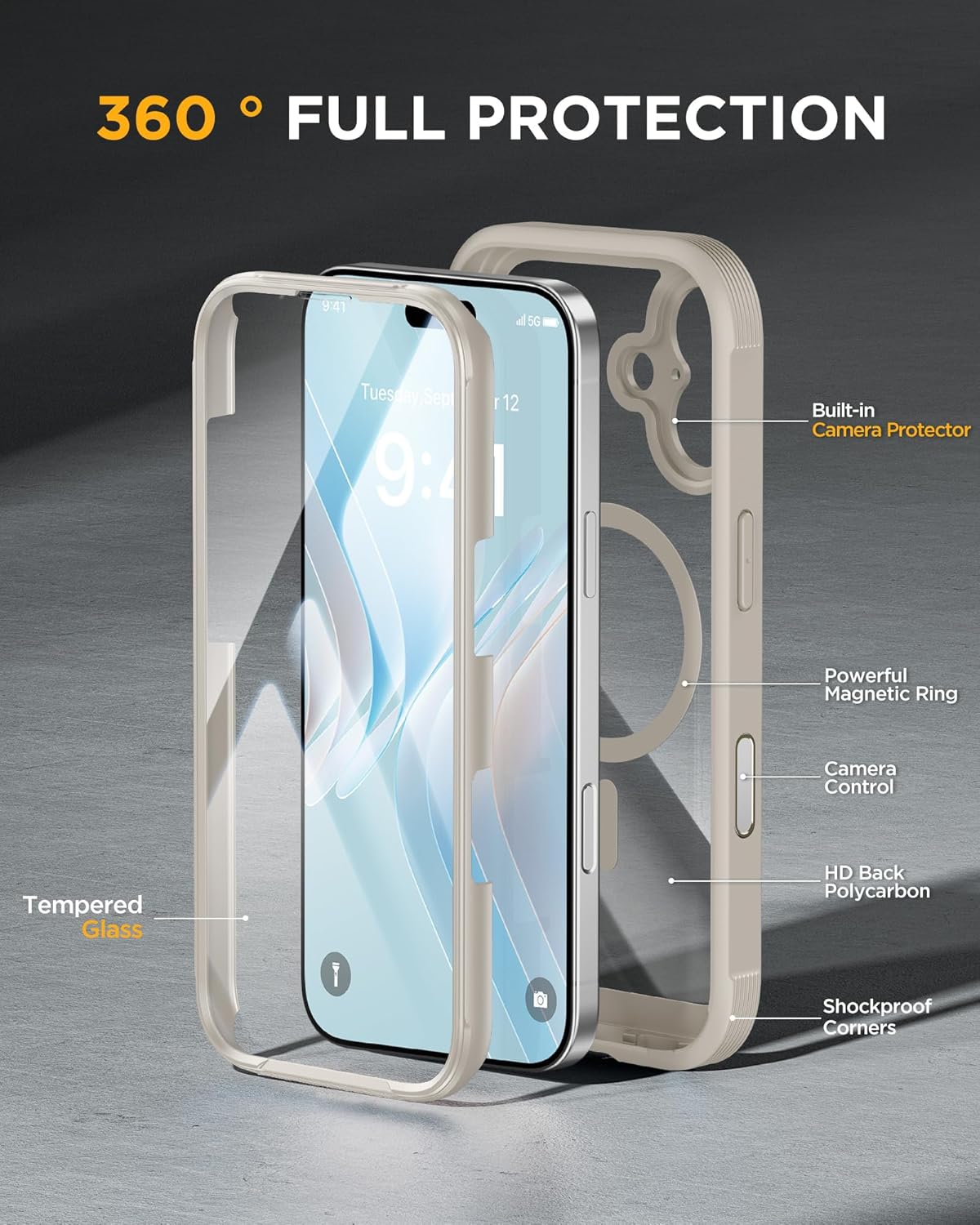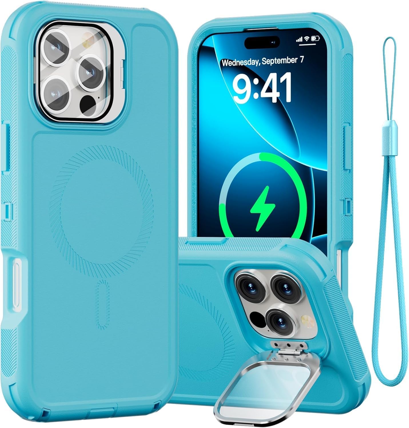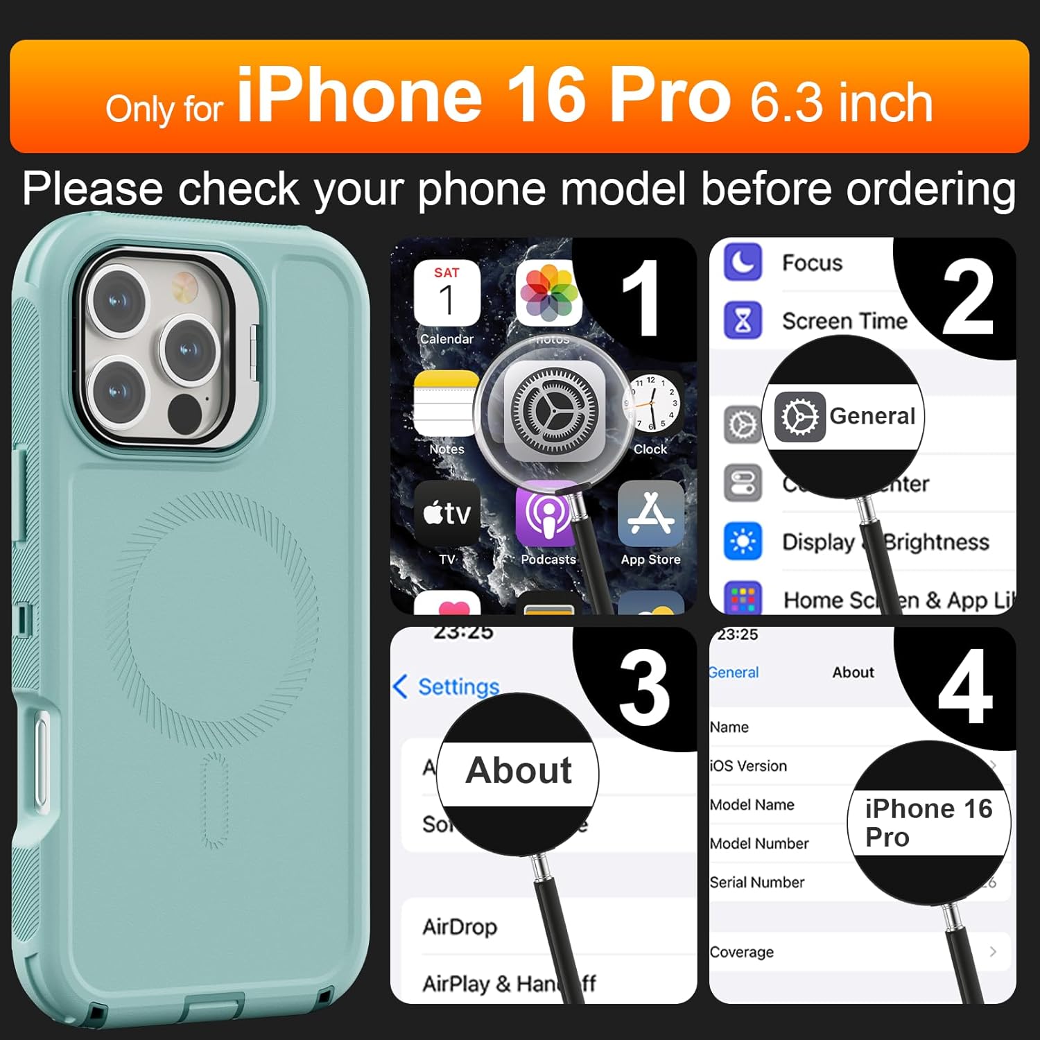 SURITCH 适用于 iPhone 16 Pro 手机壳,带滑动相机盖和可调节支架,兼容 MagSafe,防震防撞保护套,适用于 iPhone 16 Pro 6.3 英寸,黑色