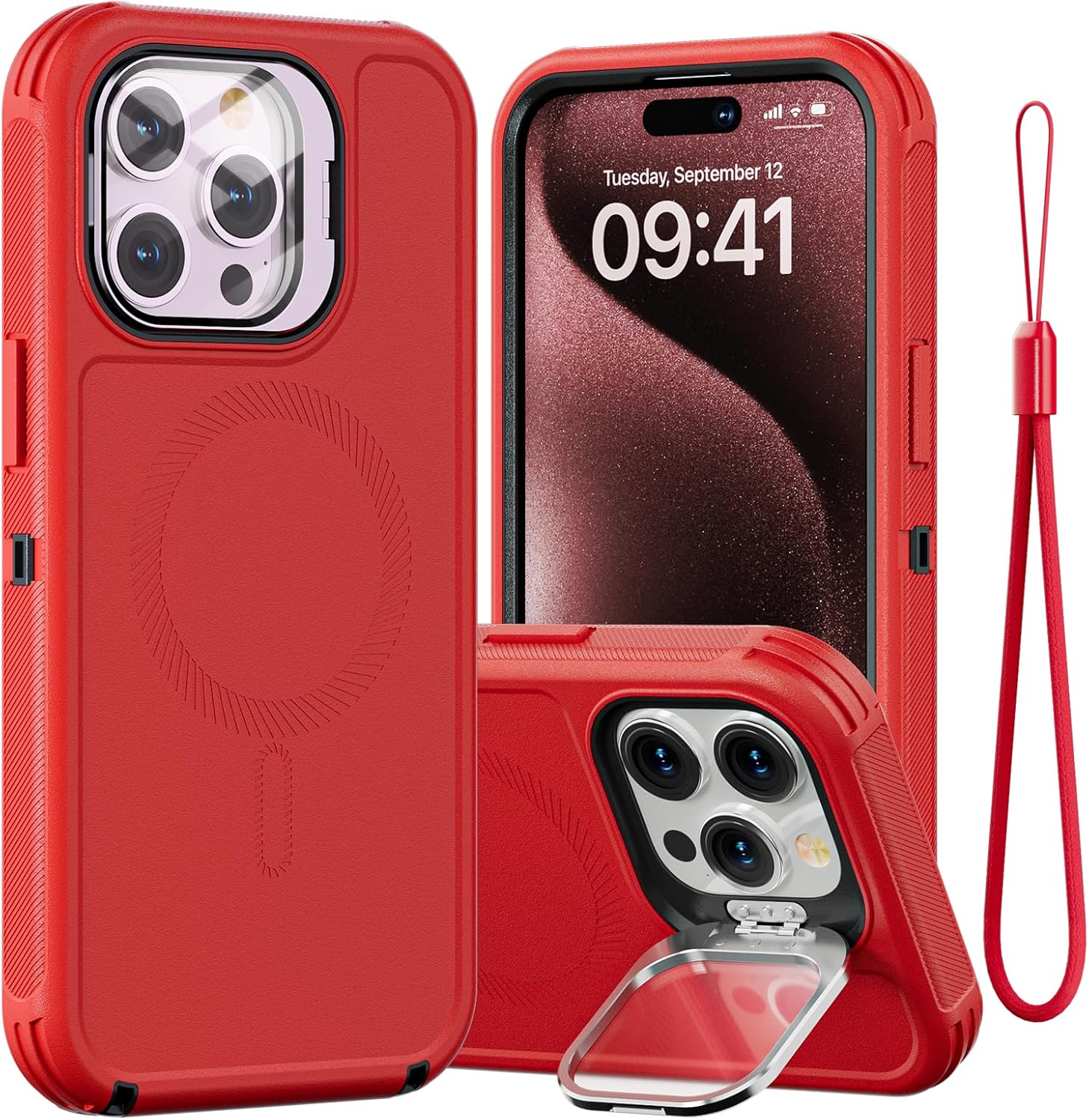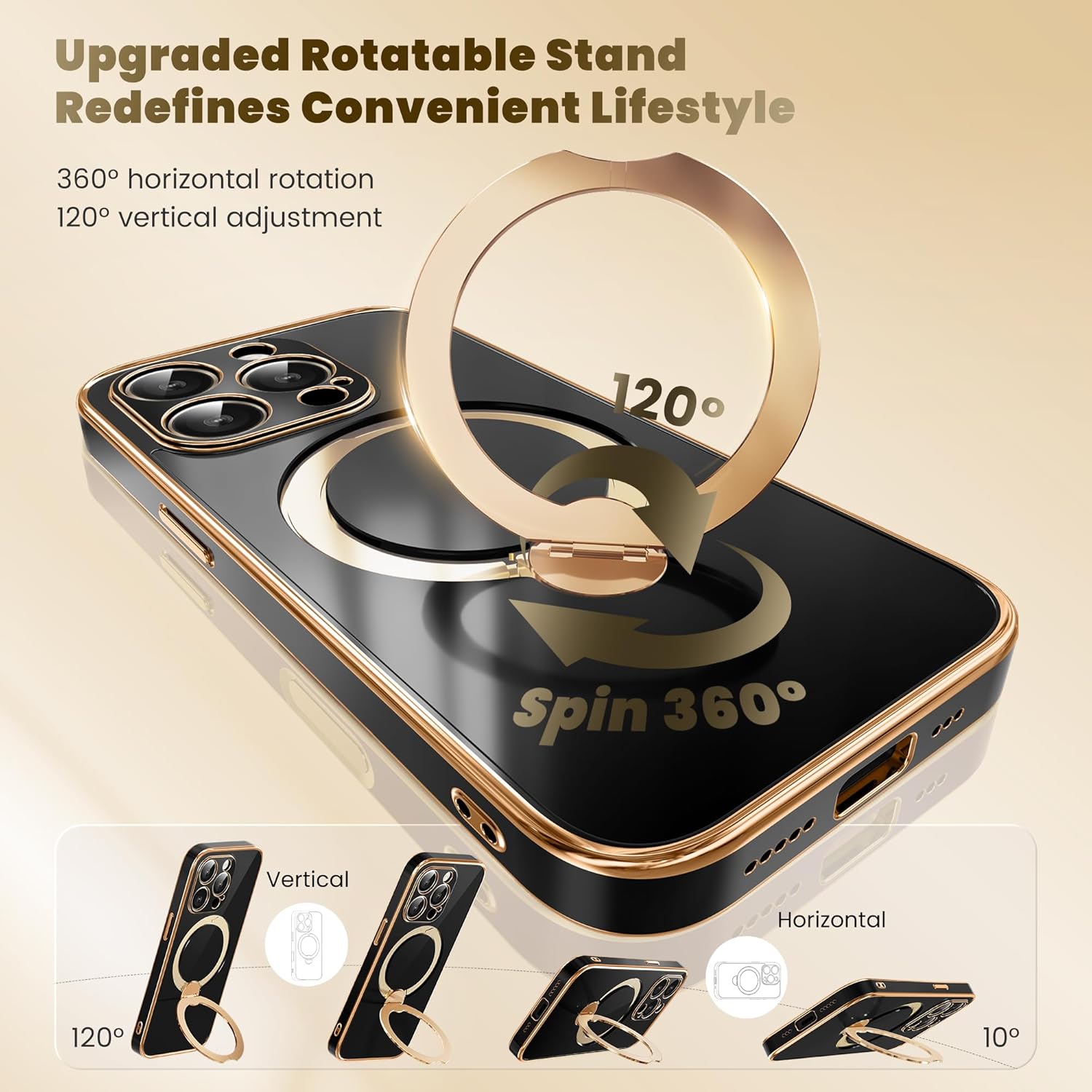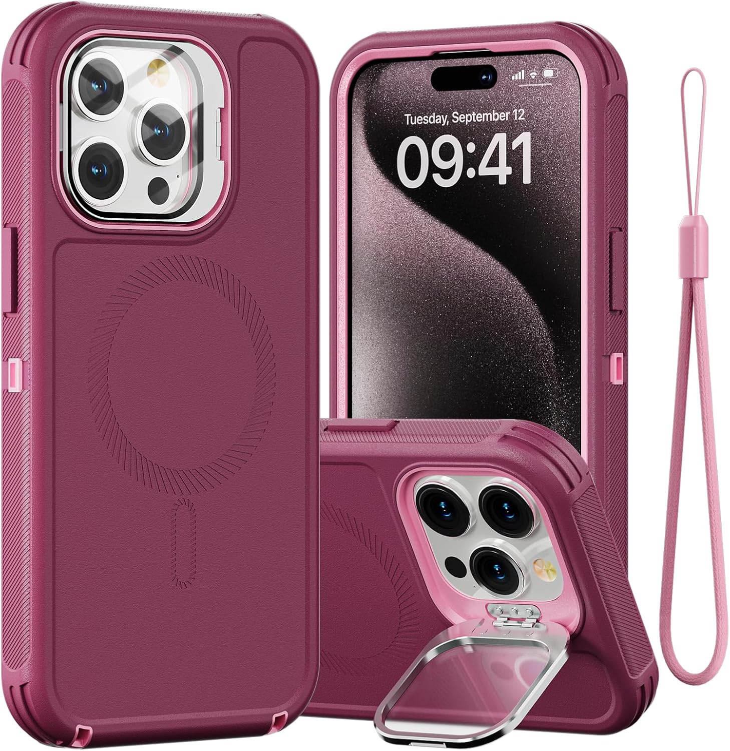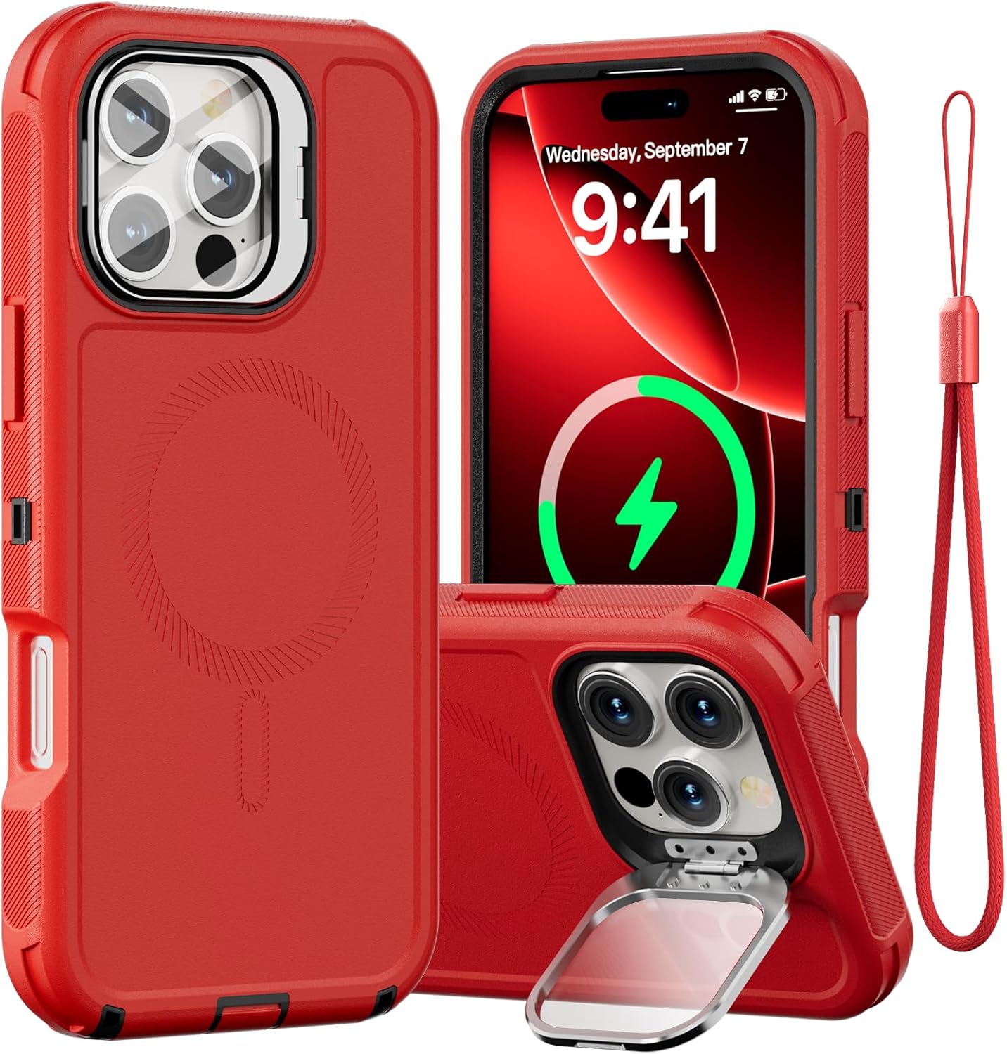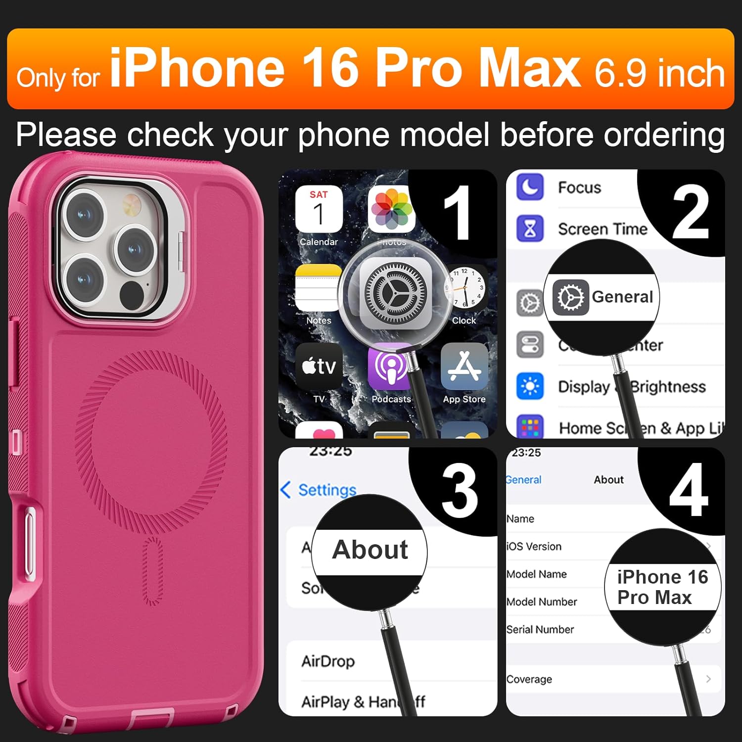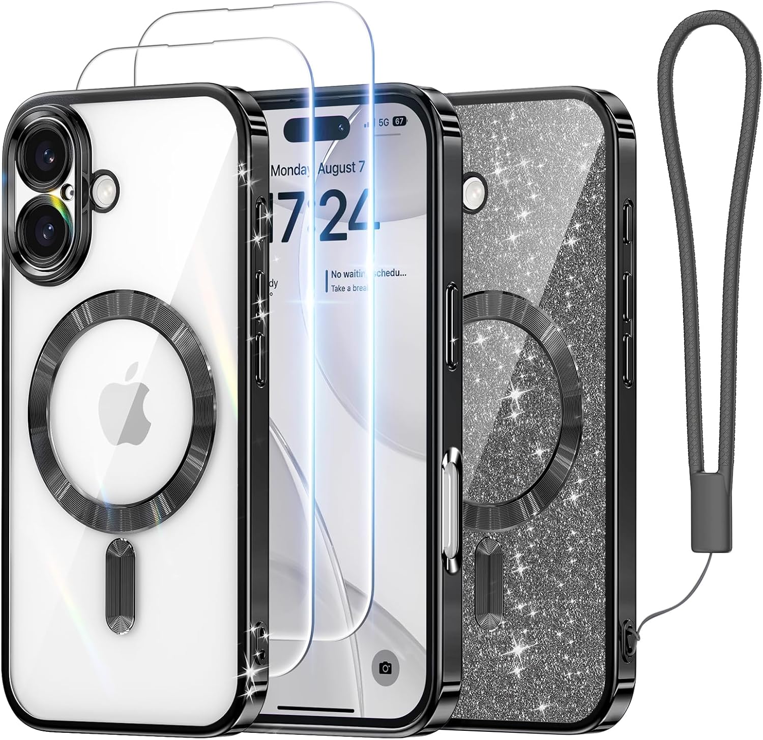 SURITCH 适用于 iPhone 16 Pro 手机壳,带滑动相机盖和可调节支架,兼容 MagSafe,防震防撞保护套,适用于 iPhone 16 Pro 6.3 英寸,黑色