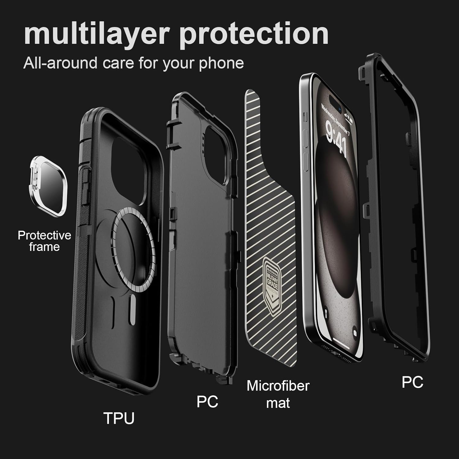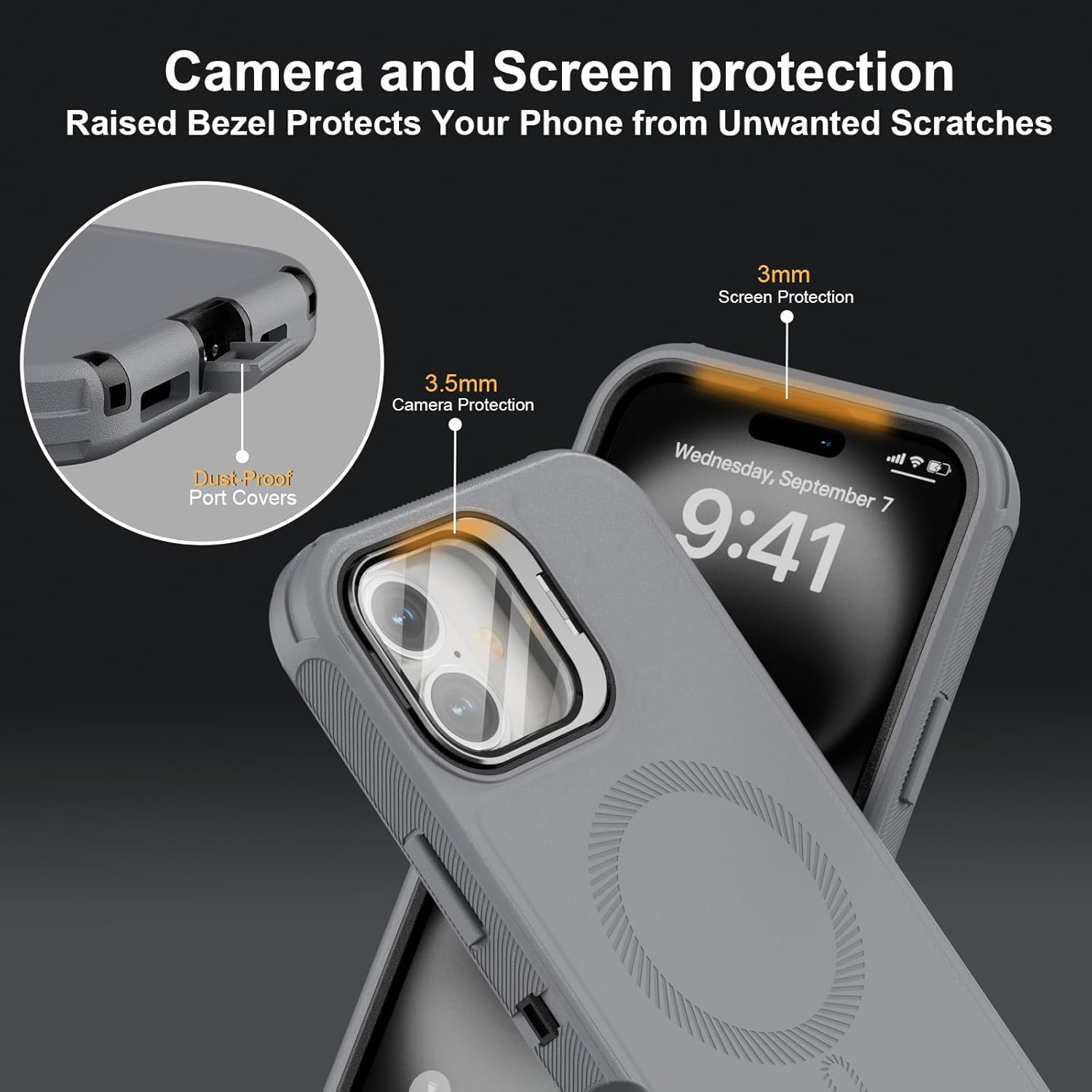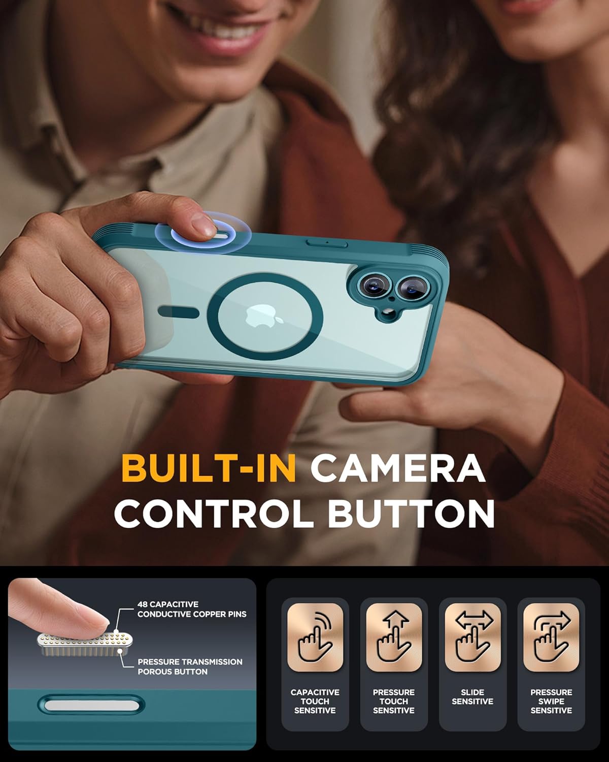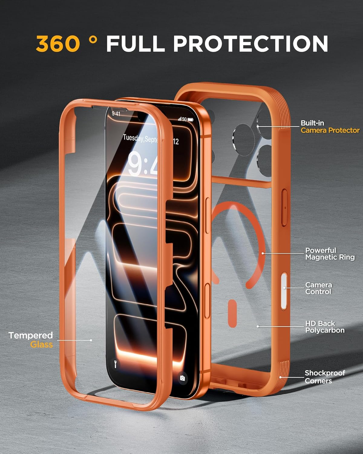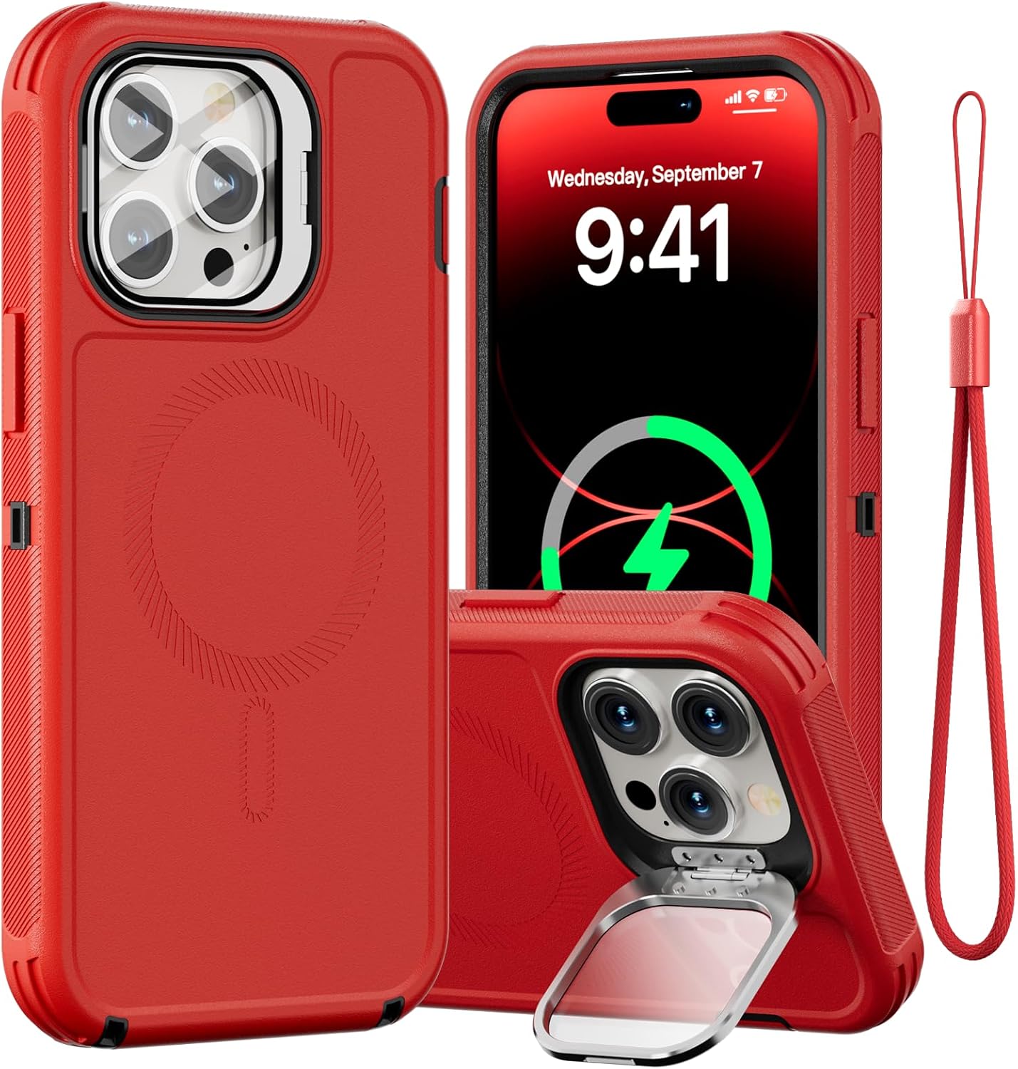SURITCH 适用于 iPhone 16 Pro 手机壳,带滑动相机盖和可调节支架,兼容 MagSafe,防震防撞保护套,适用于 iPhone 16 Pro 6.3 英寸,黑色