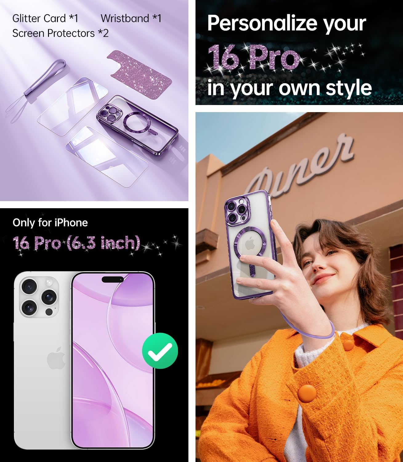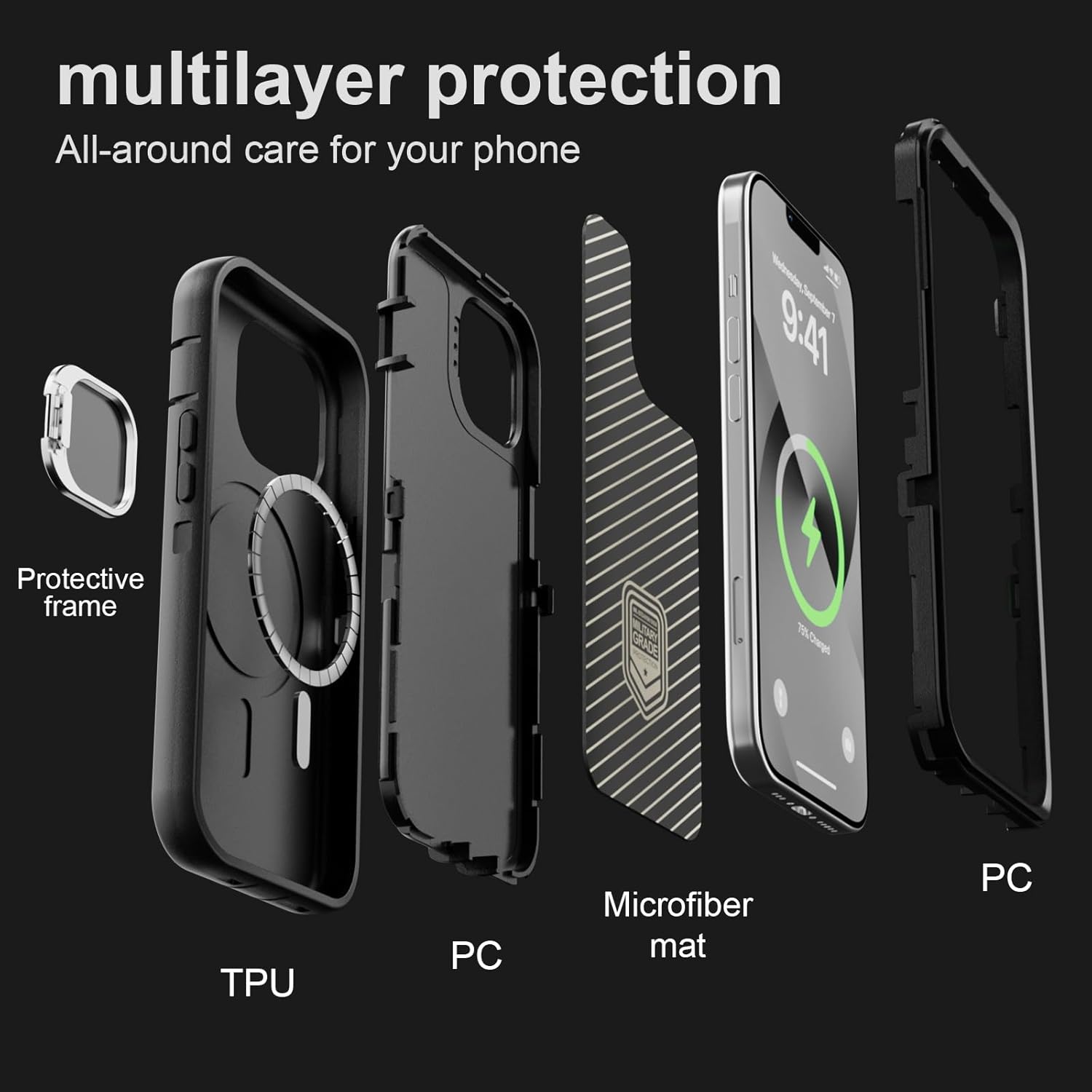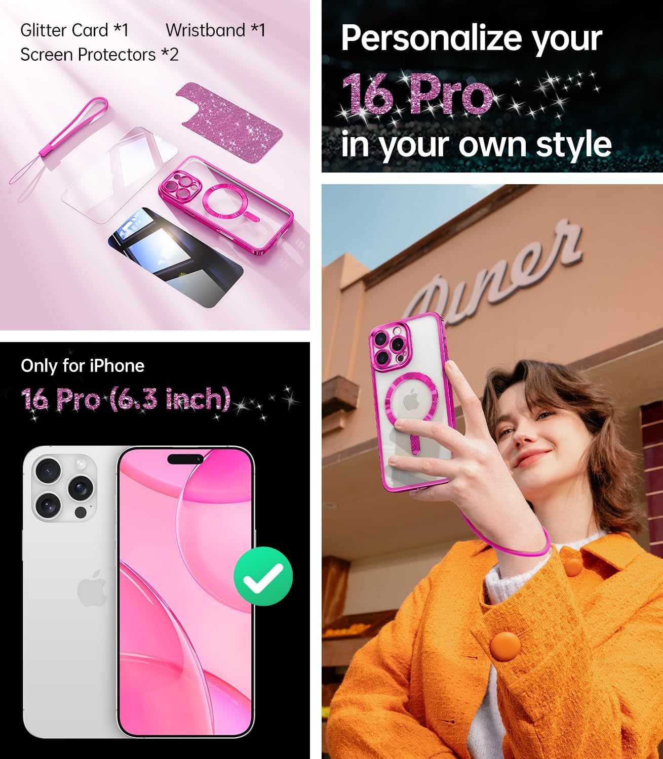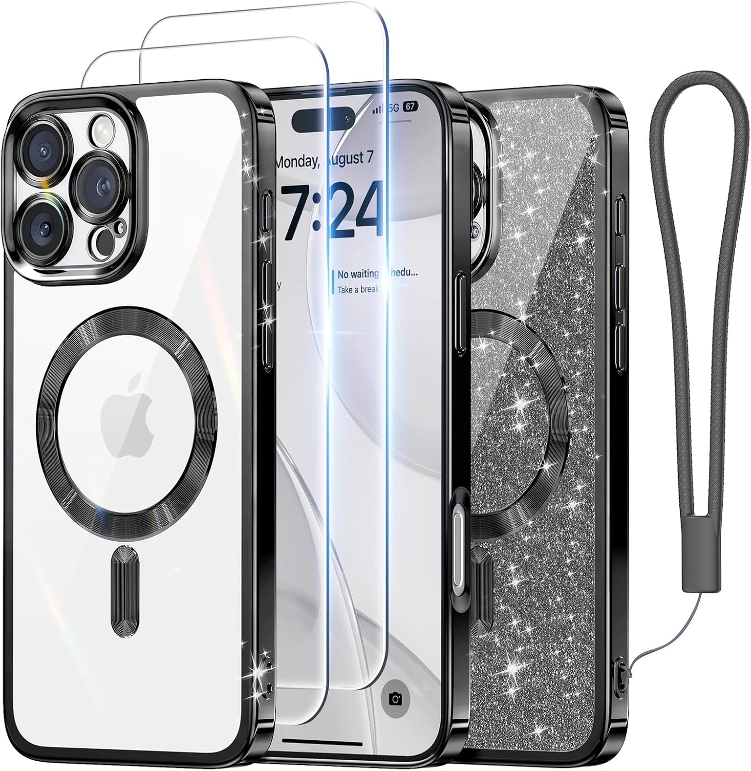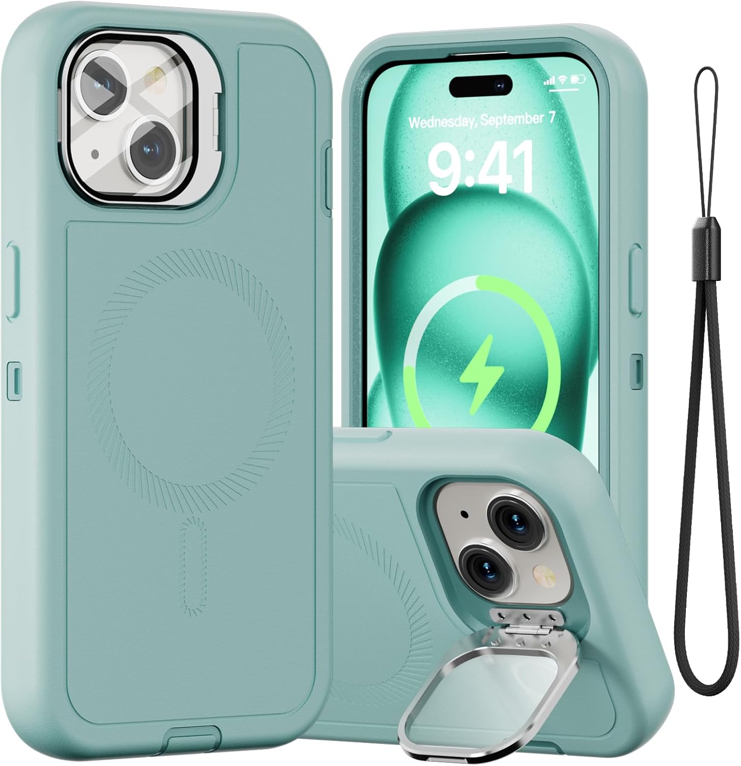 SURITCH 适用于 iPhone 16 Pro 手机壳,带滑动相机盖和可调节支架,兼容 MagSafe,防震防撞保护套,适用于 iPhone 16 Pro 6.3 英寸,黑色