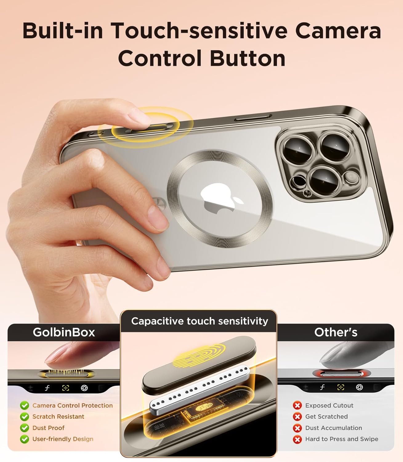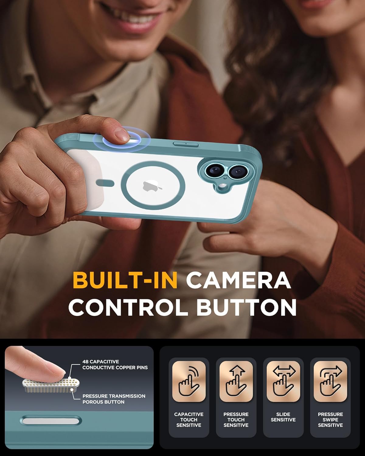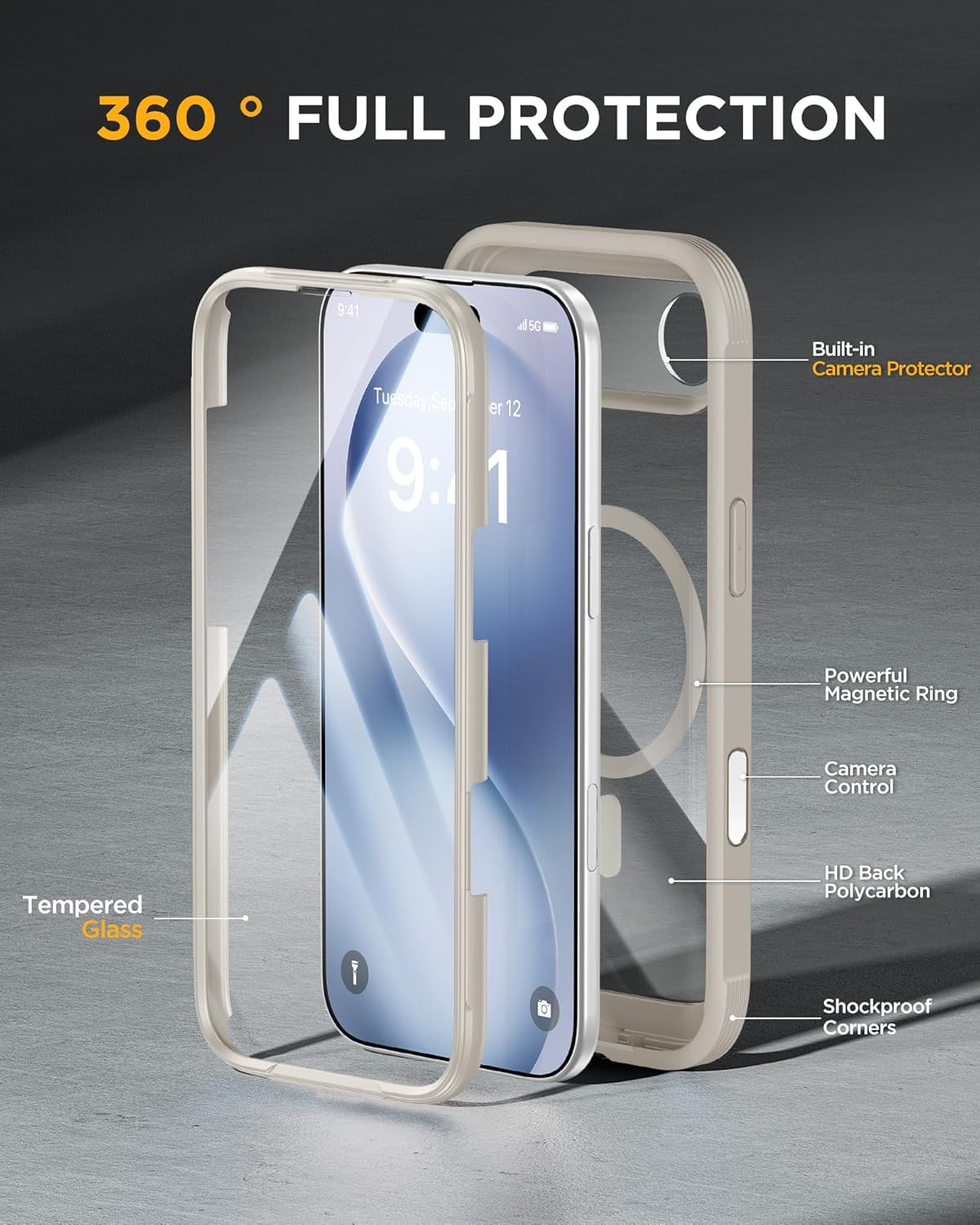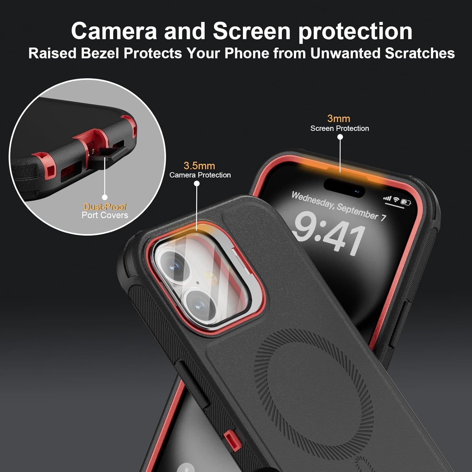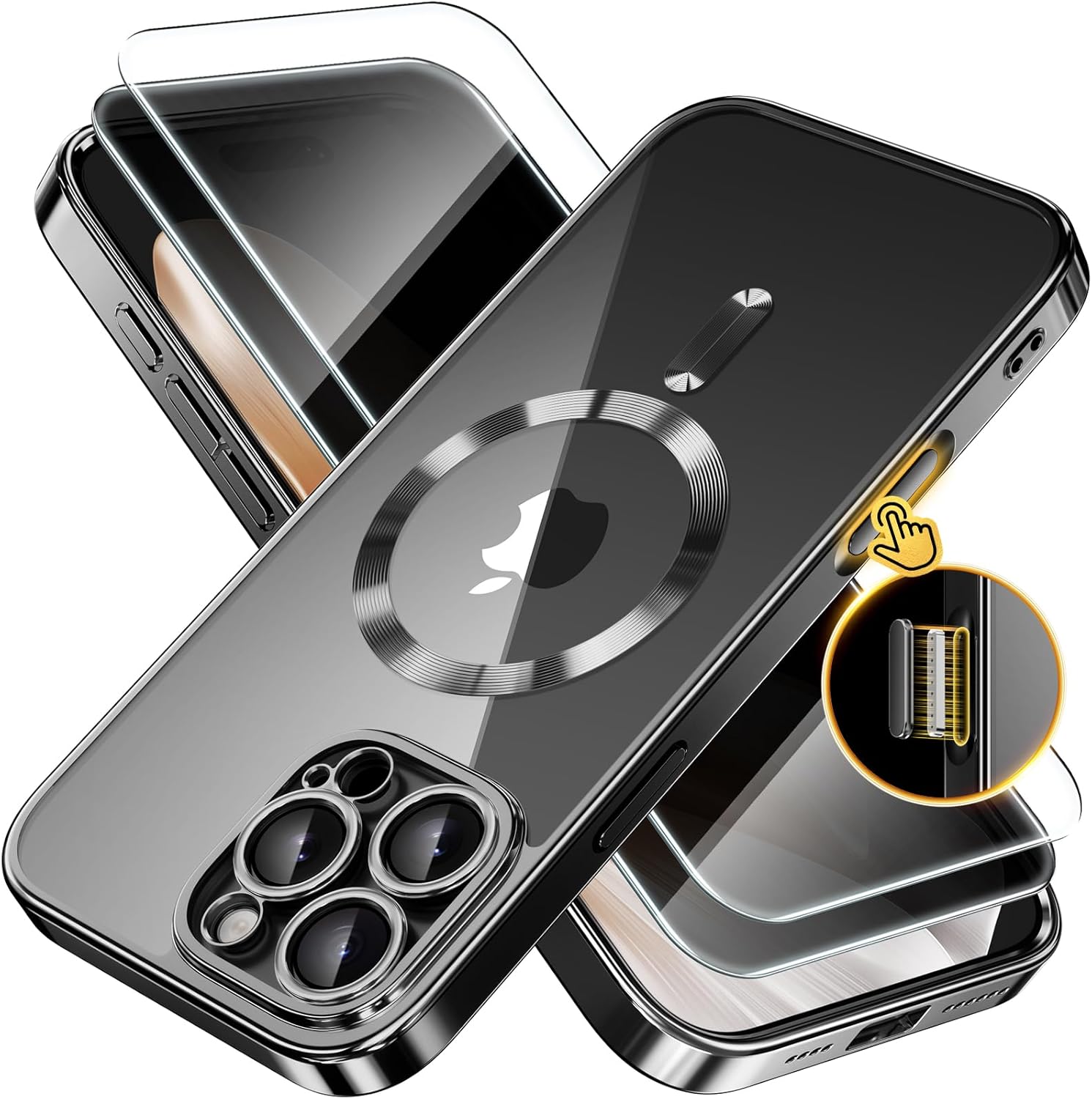 SURITCH 适用于 iPhone 16 Pro 手机壳,带滑动相机盖和可调节支架,兼容 MagSafe,防震防撞保护套,适用于 iPhone 16 Pro 6.3 英寸,黑色