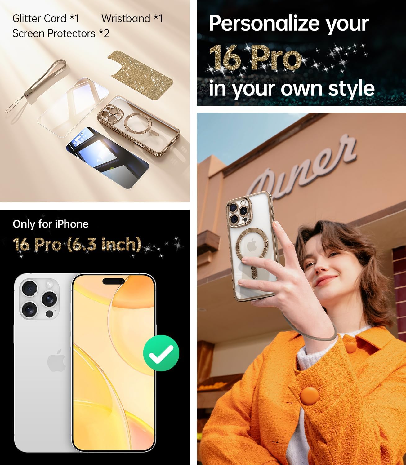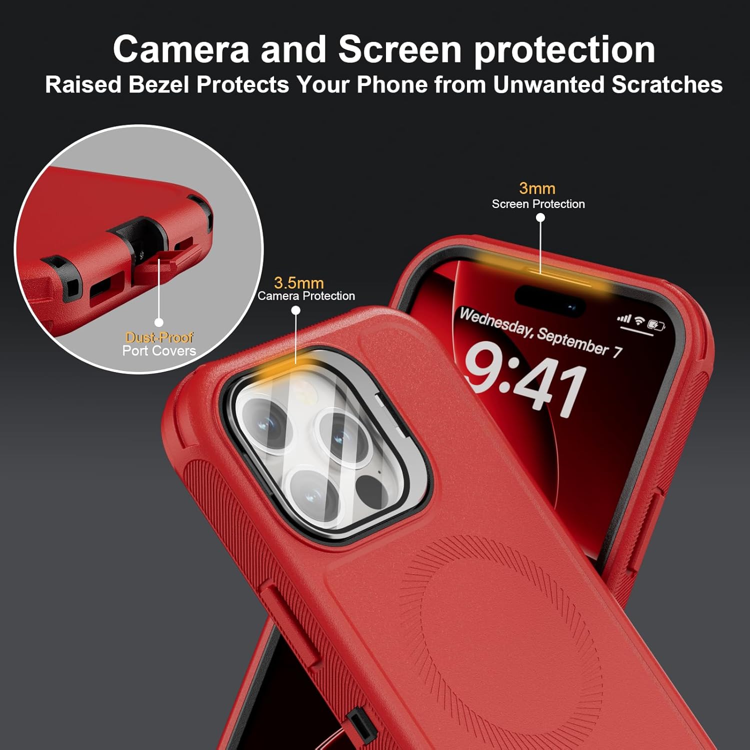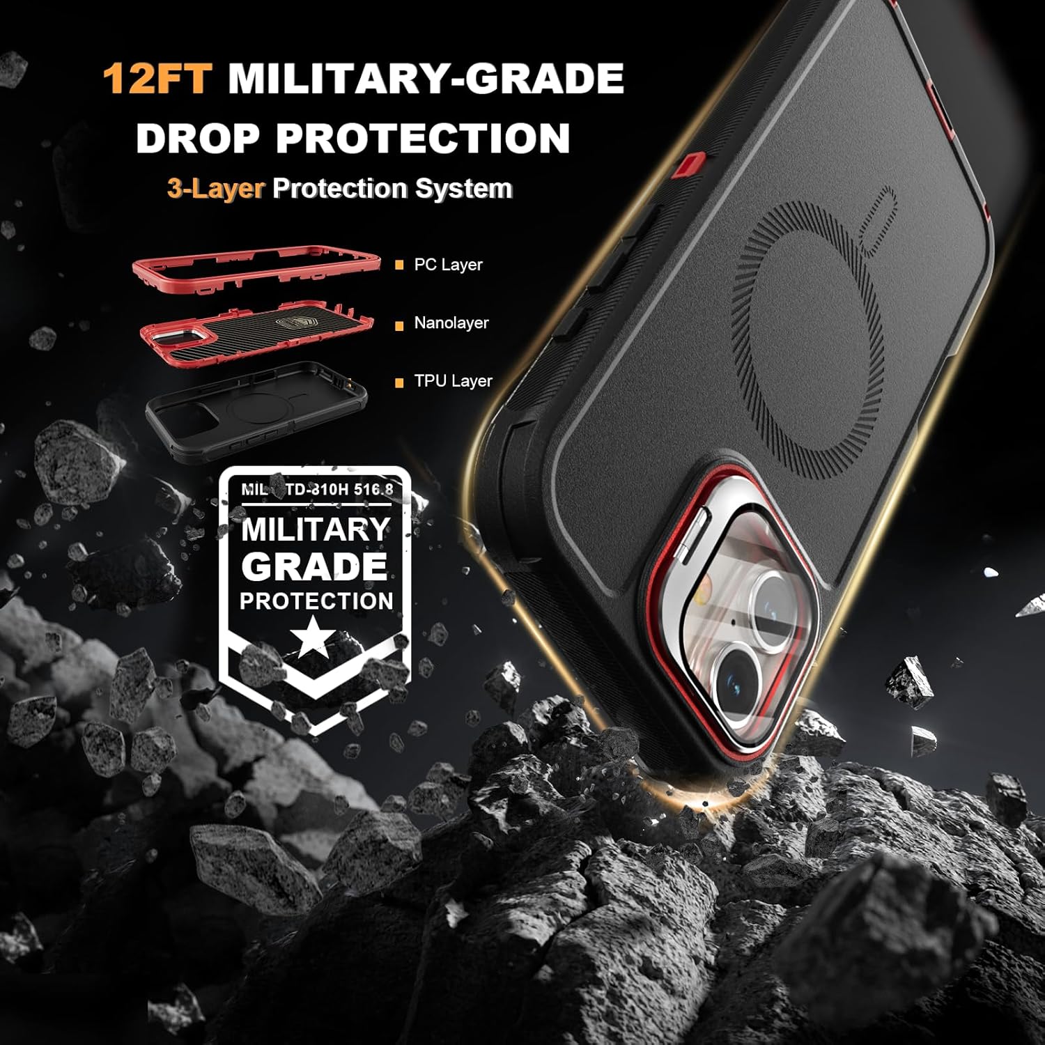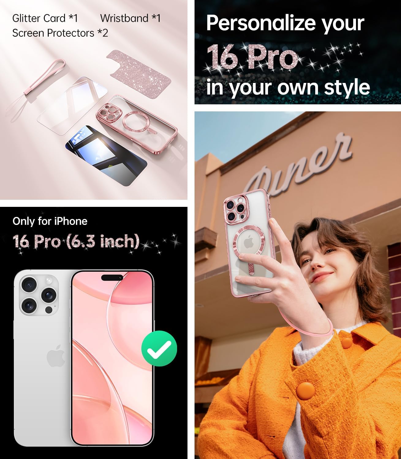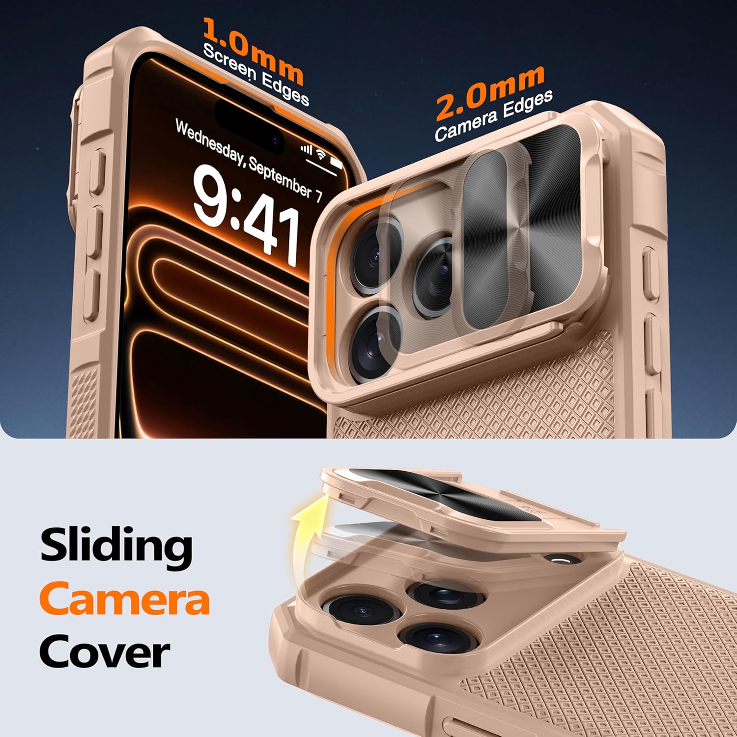 SURITCH 适用于 iPhone 16 Pro 手机壳,带滑动相机盖和可调节支架,兼容 MagSafe,防震防撞保护套,适用于 iPhone 16 Pro 6.3 英寸,黑色