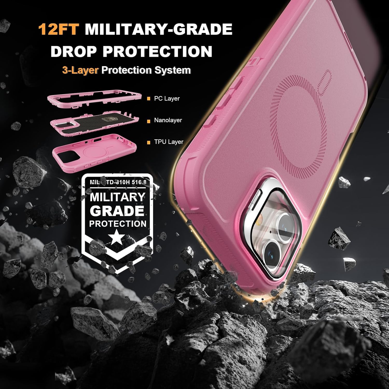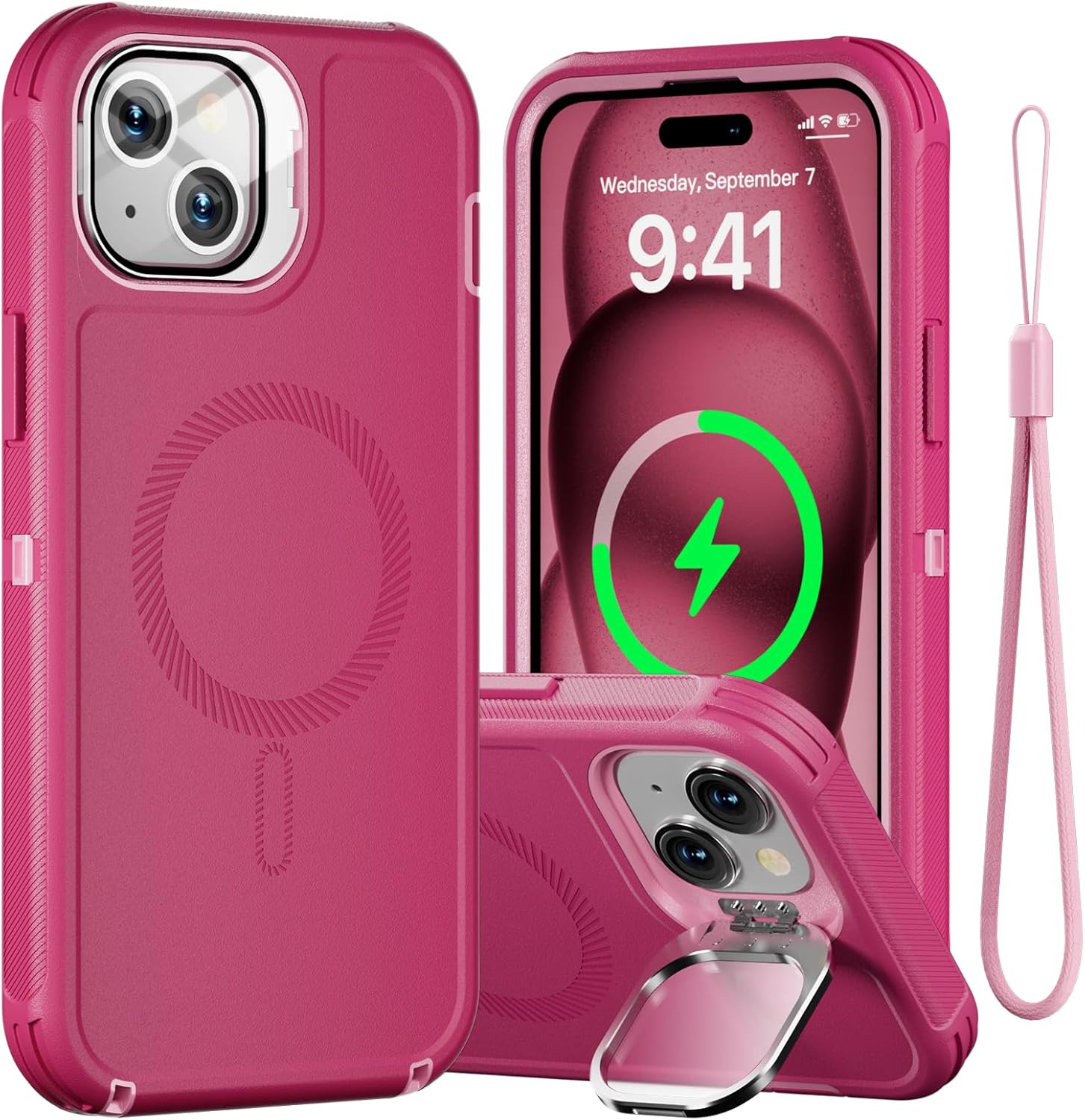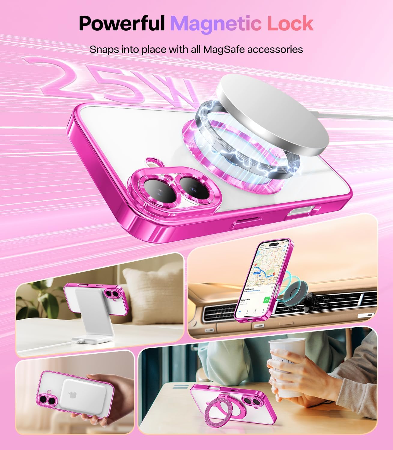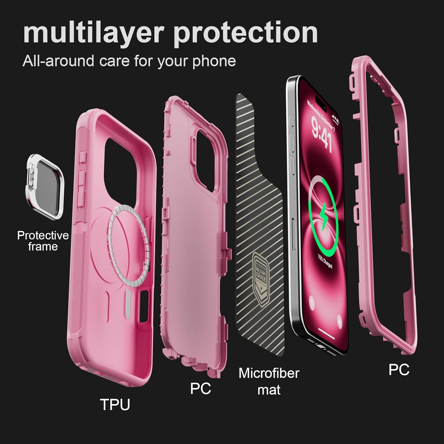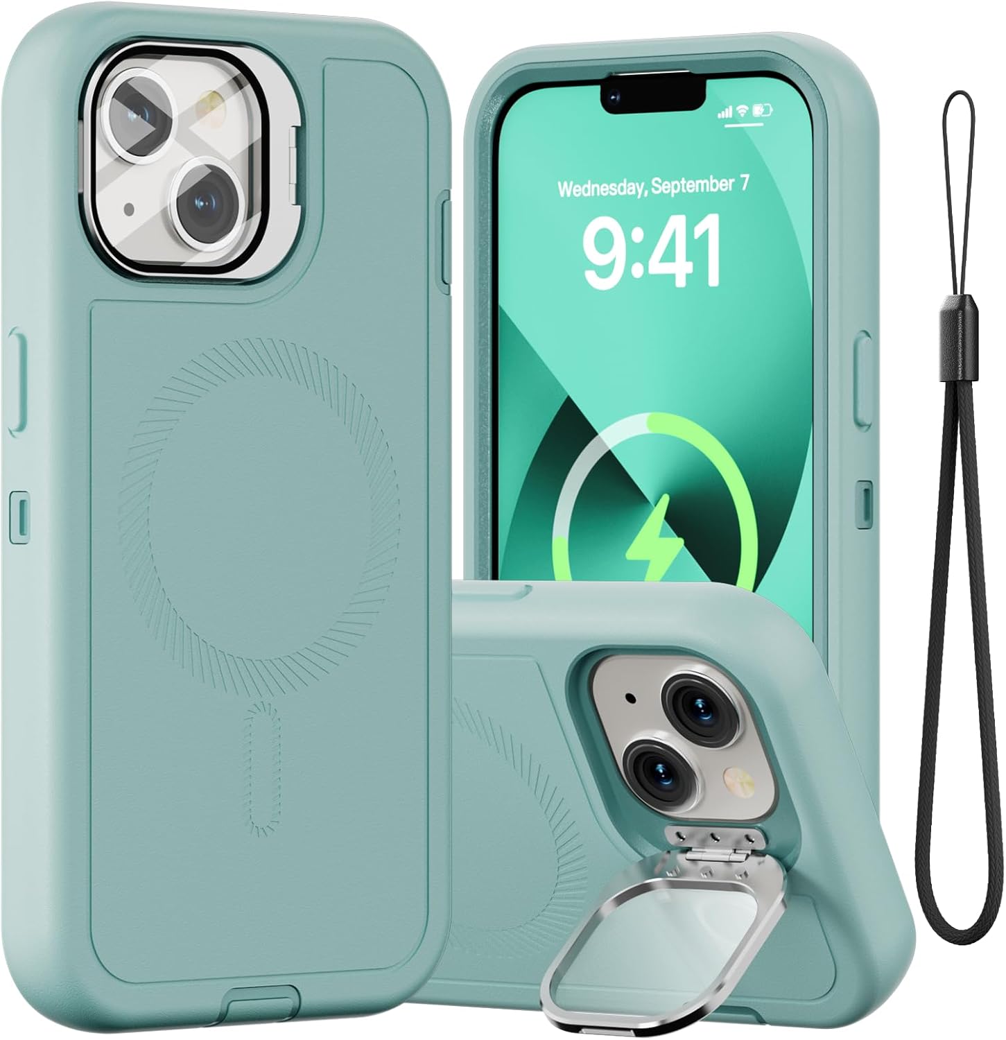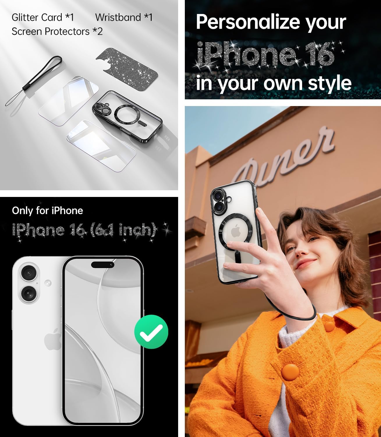 SURITCH 适用于 iPhone 16 Pro 手机壳,带滑动相机盖和可调节支架,兼容 MagSafe,防震防撞保护套,适用于 iPhone 16 Pro 6.3 英寸,黑色