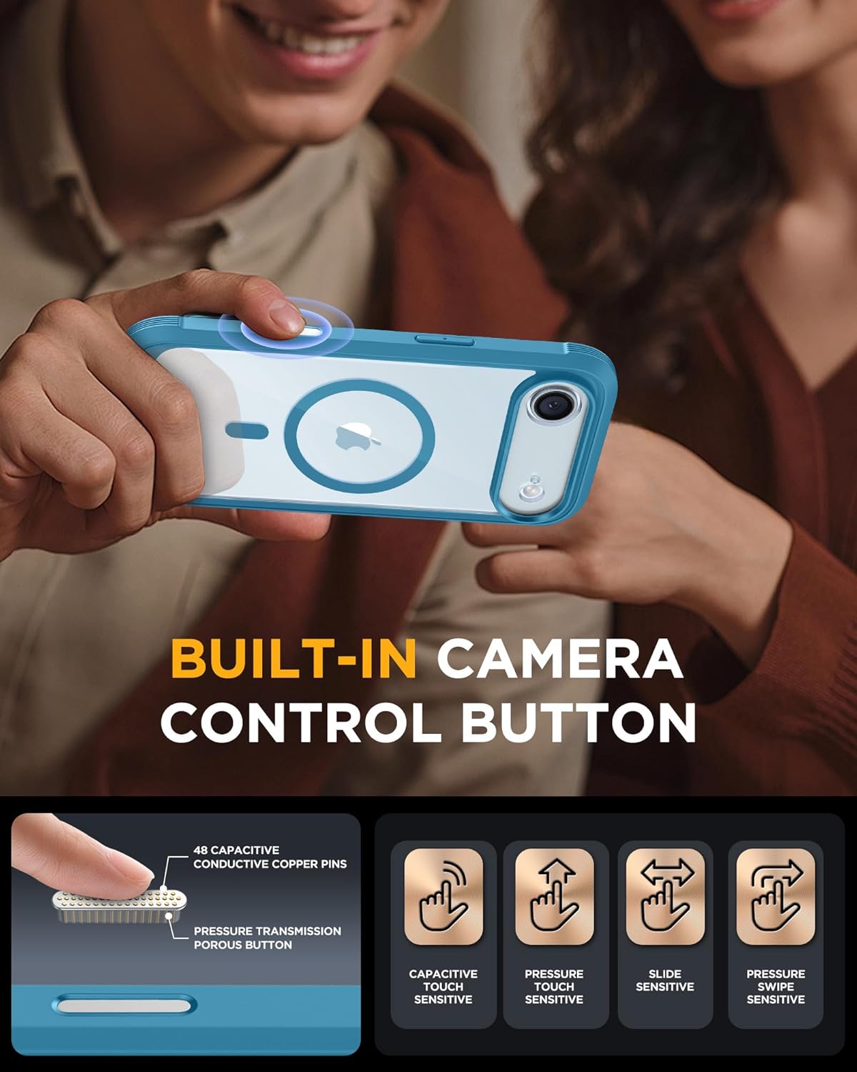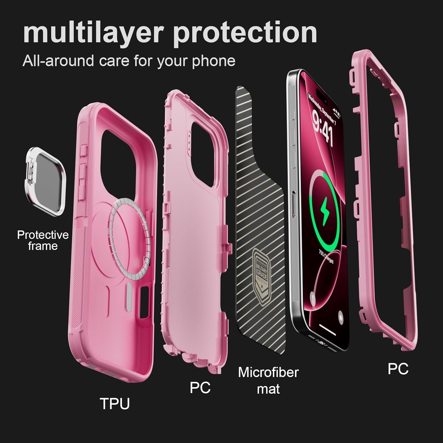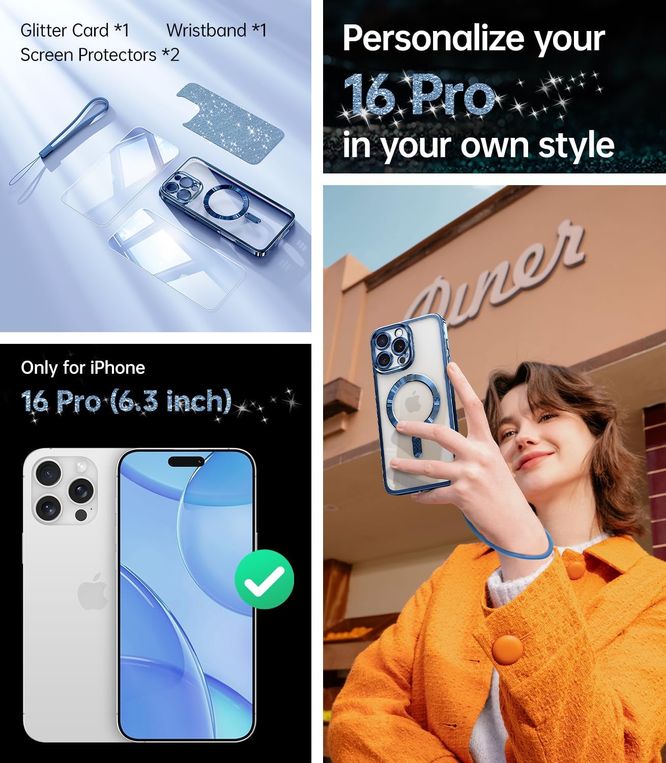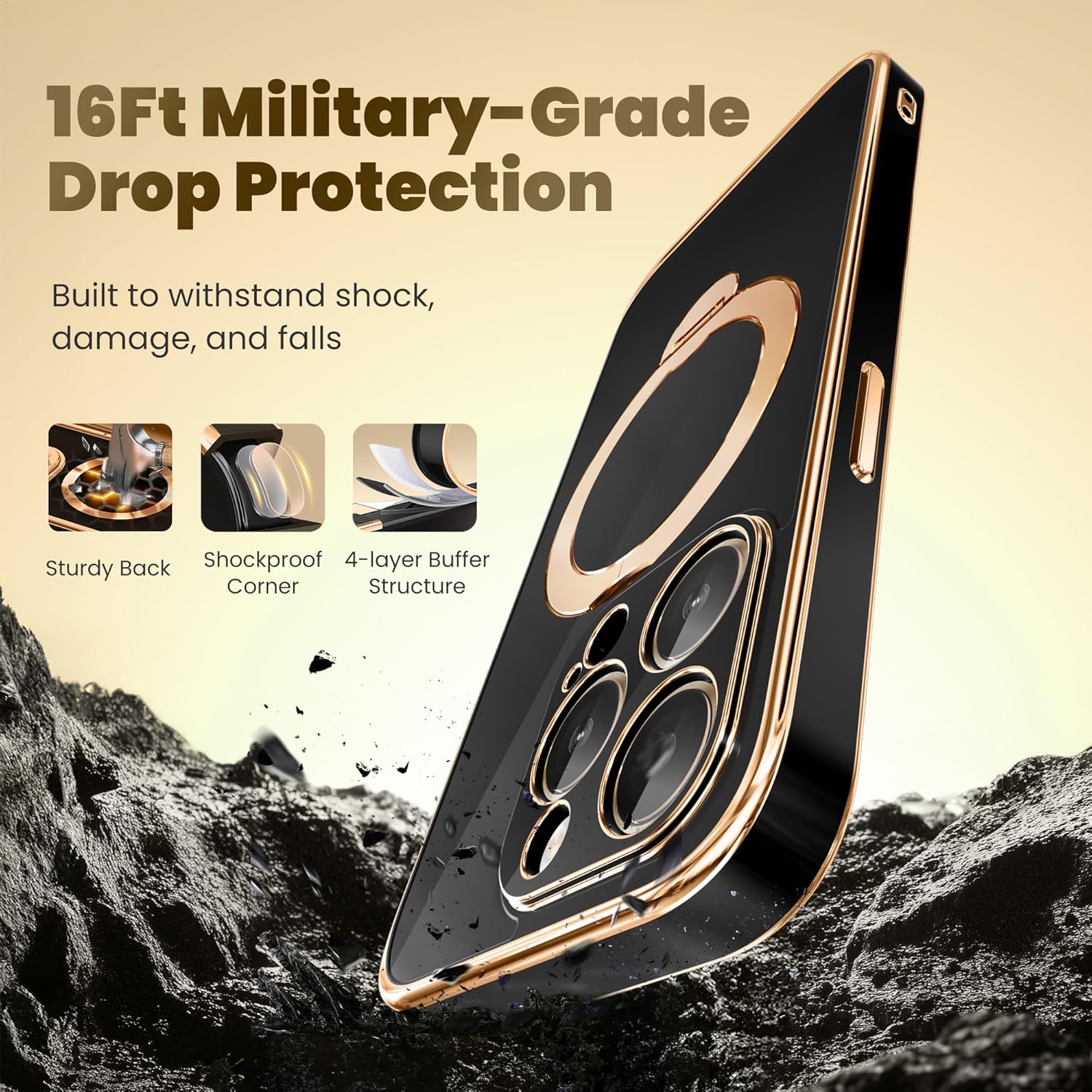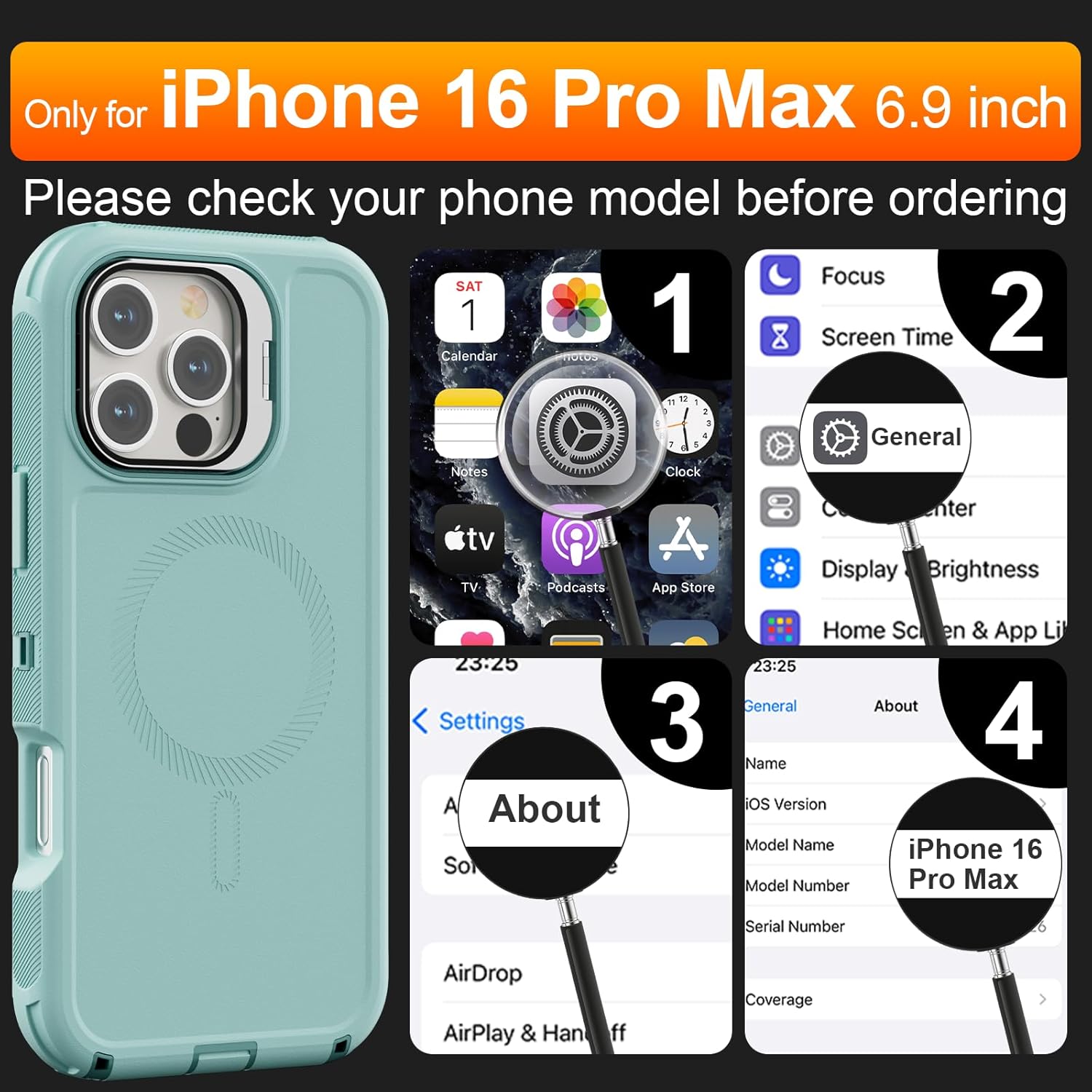 SURITCH 适用于 iPhone 16 Pro 手机壳,带滑动相机盖和可调节支架,兼容 MagSafe,防震防撞保护套,适用于 iPhone 16 Pro 6.3 英寸,黑色