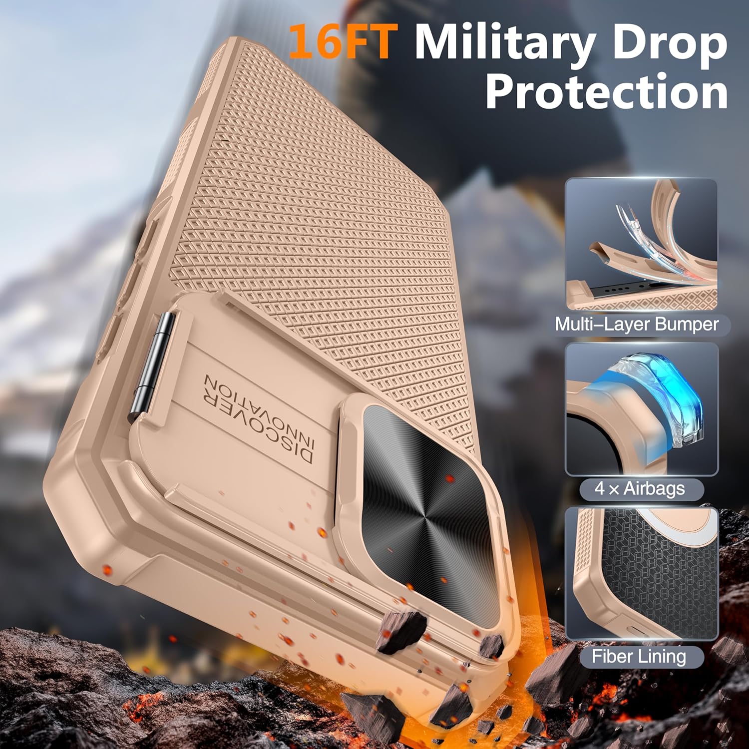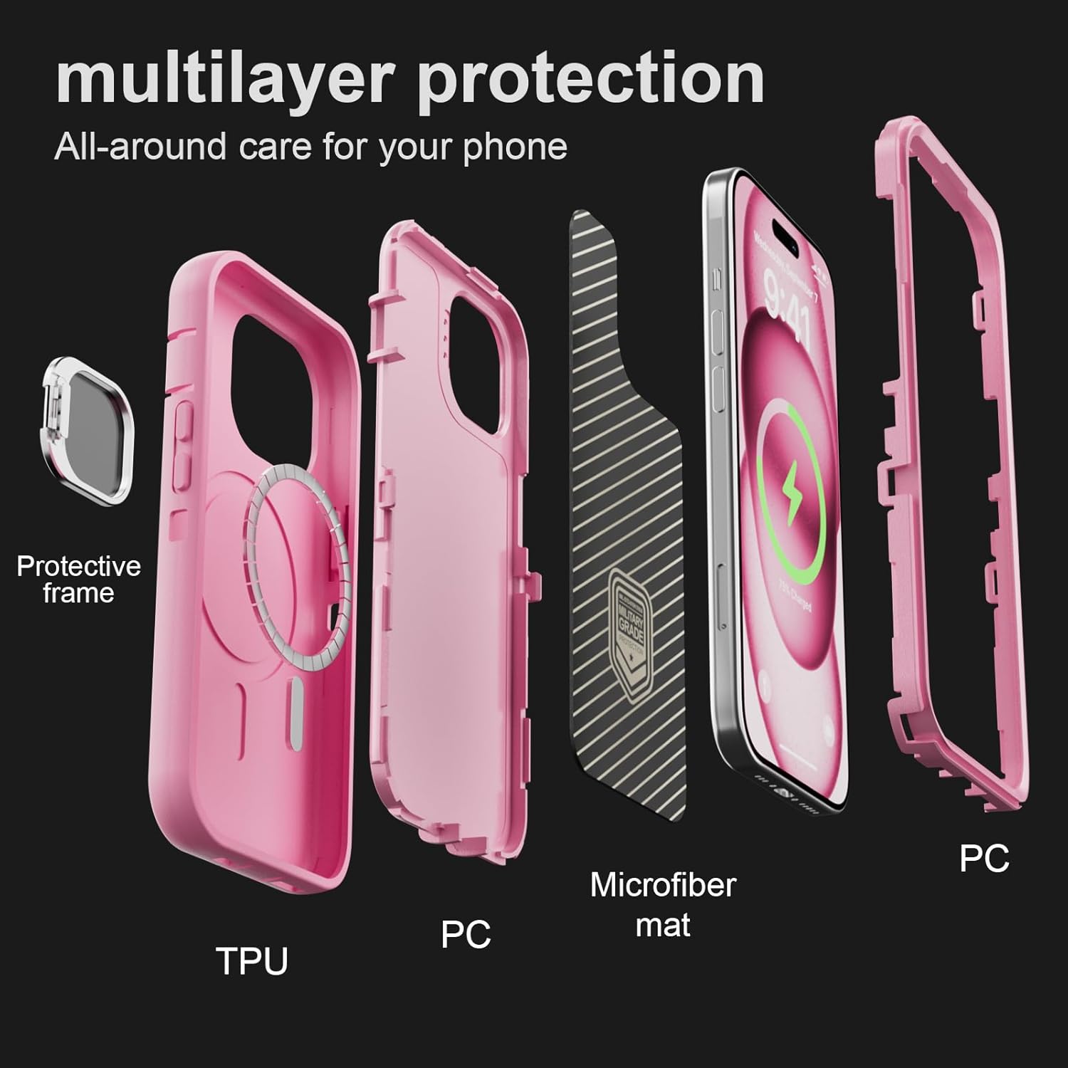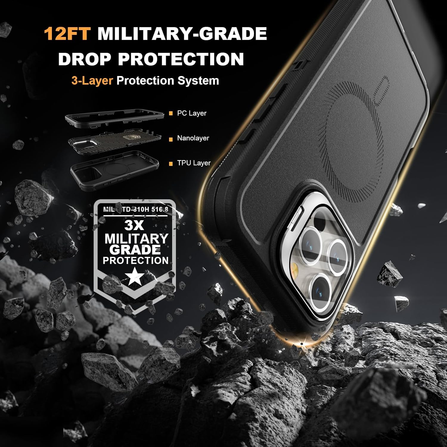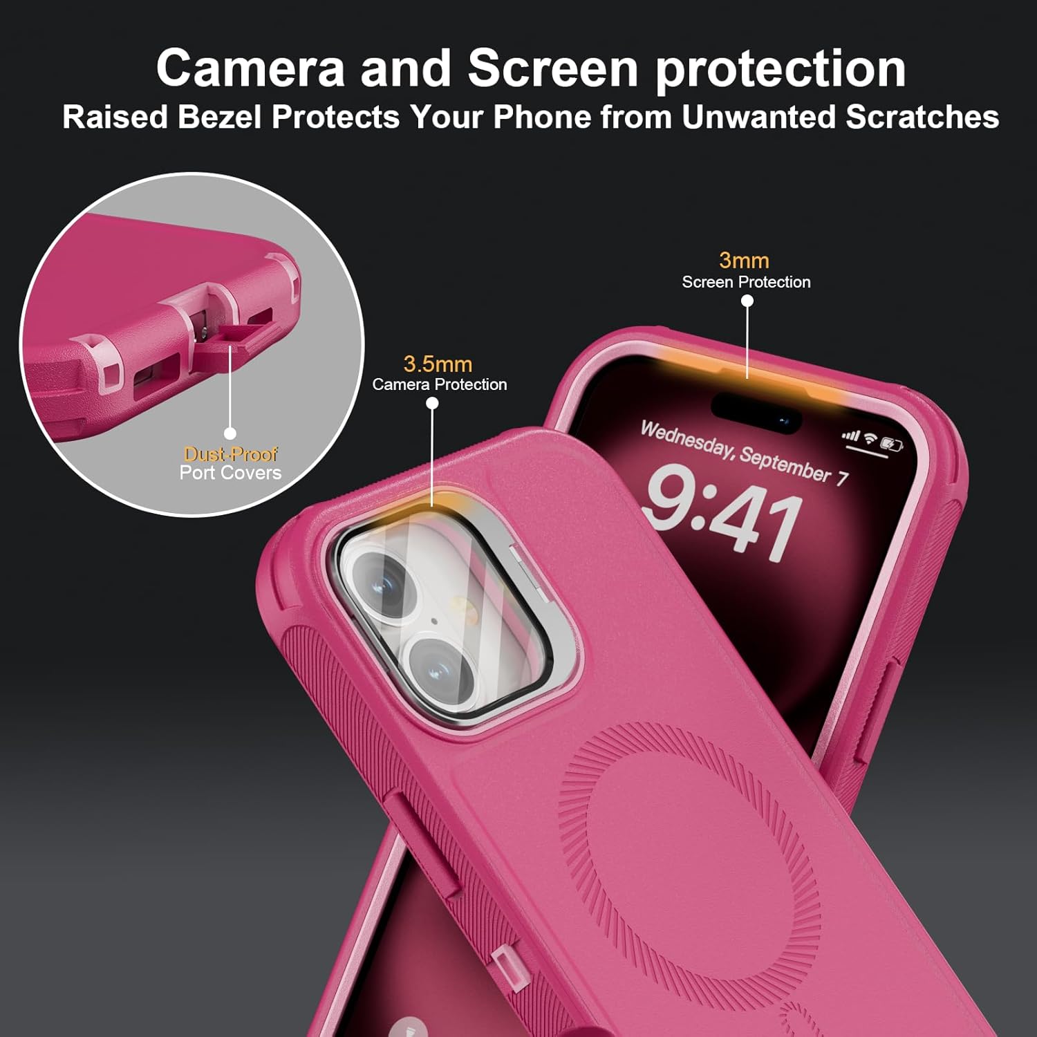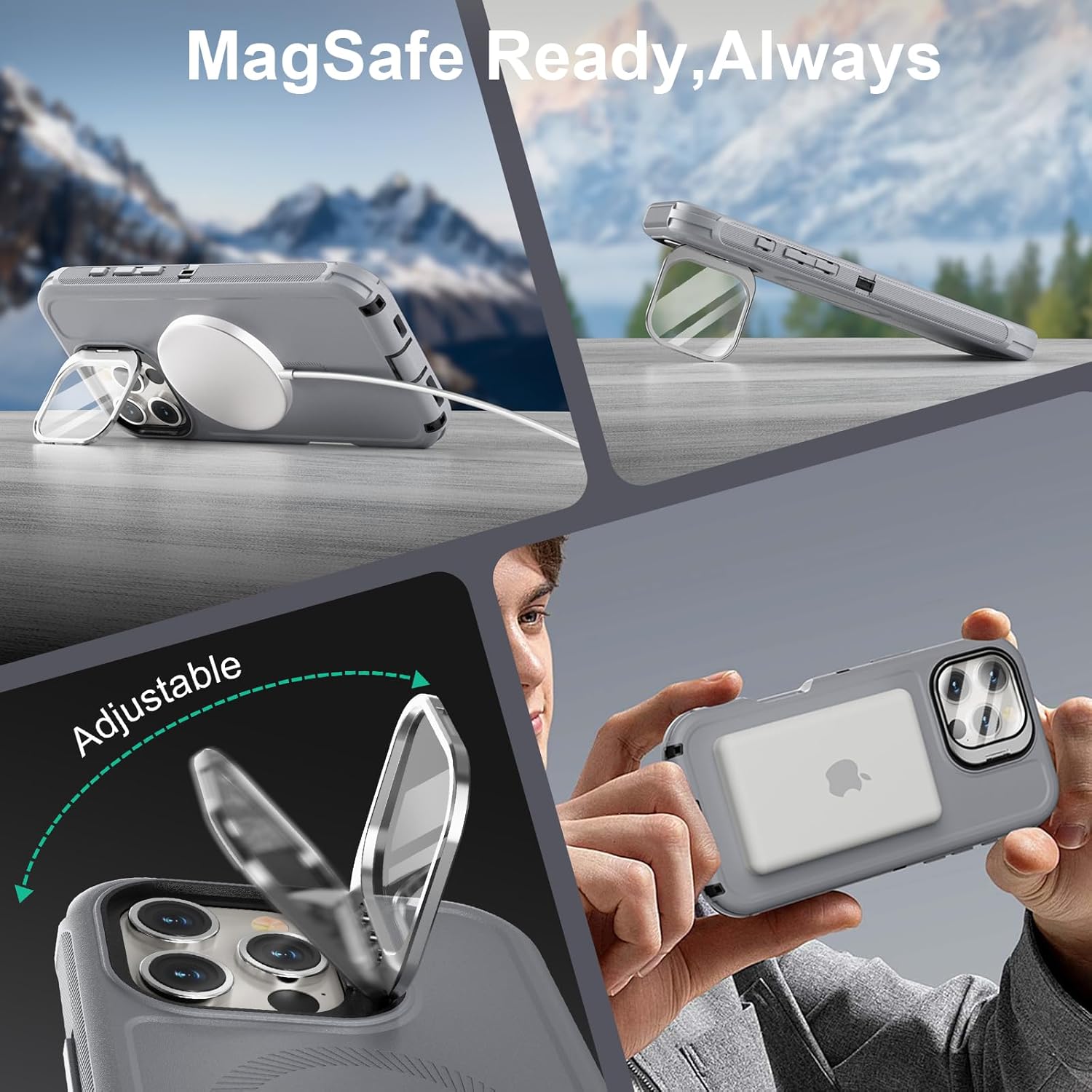 SURITCH 适用于 iPhone 16 Pro 手机壳,带滑动相机盖和可调节支架,兼容 MagSafe,防震防撞保护套,适用于 iPhone 16 Pro 6.3 英寸,黑色
