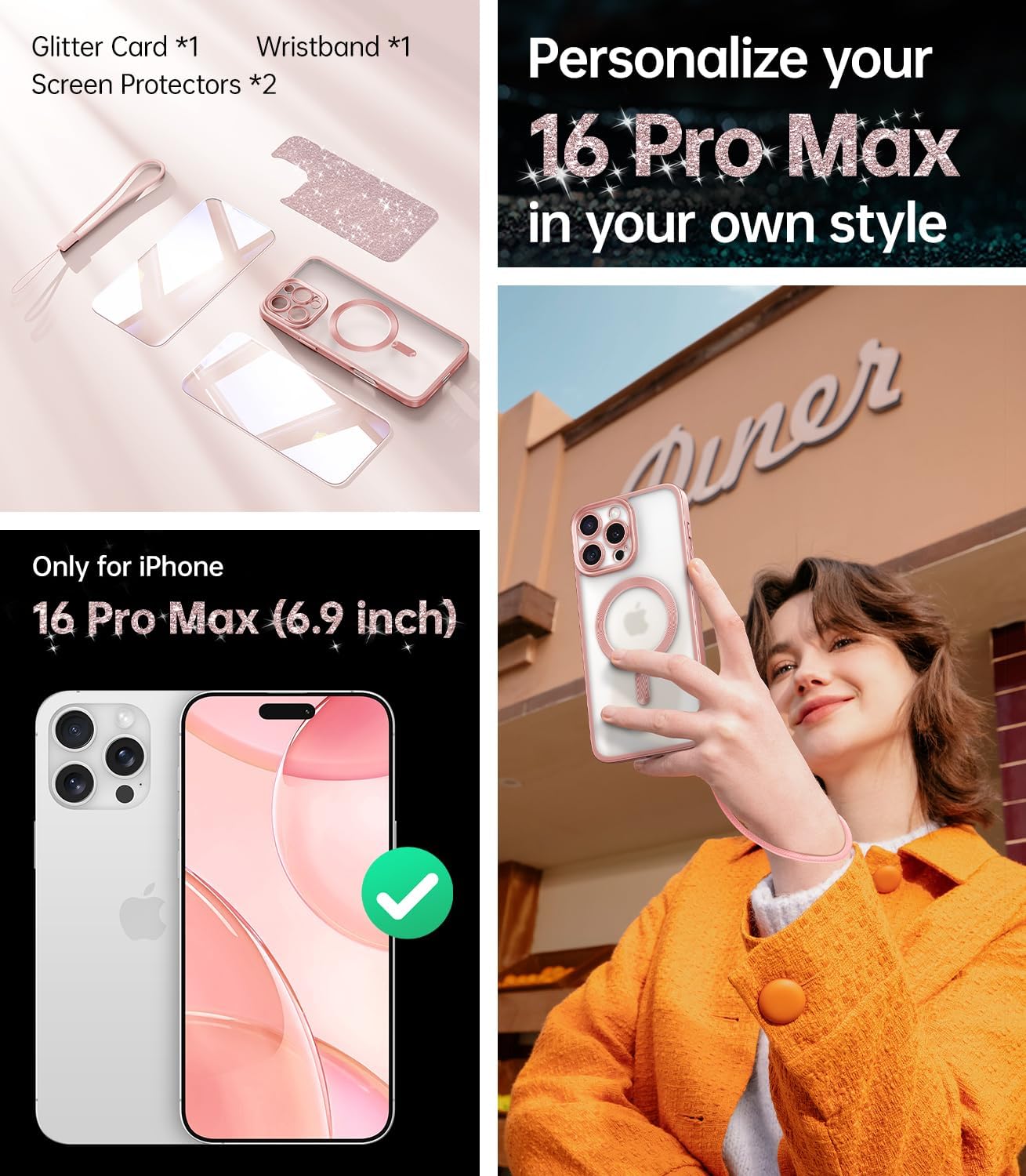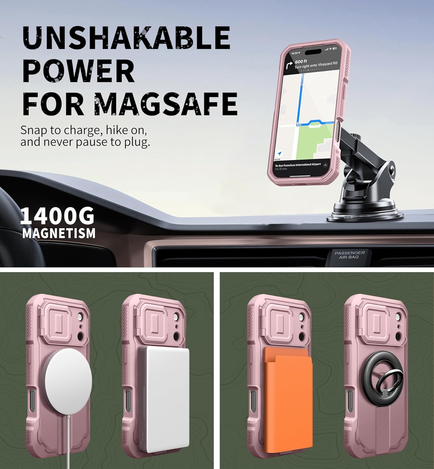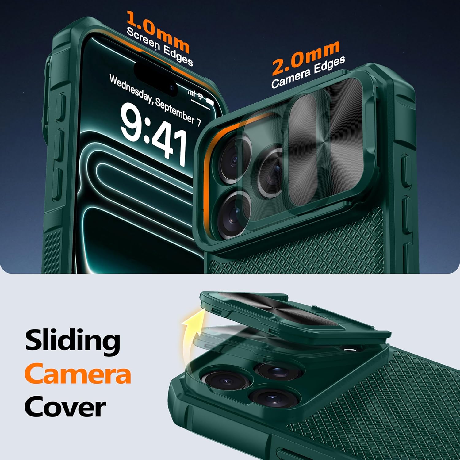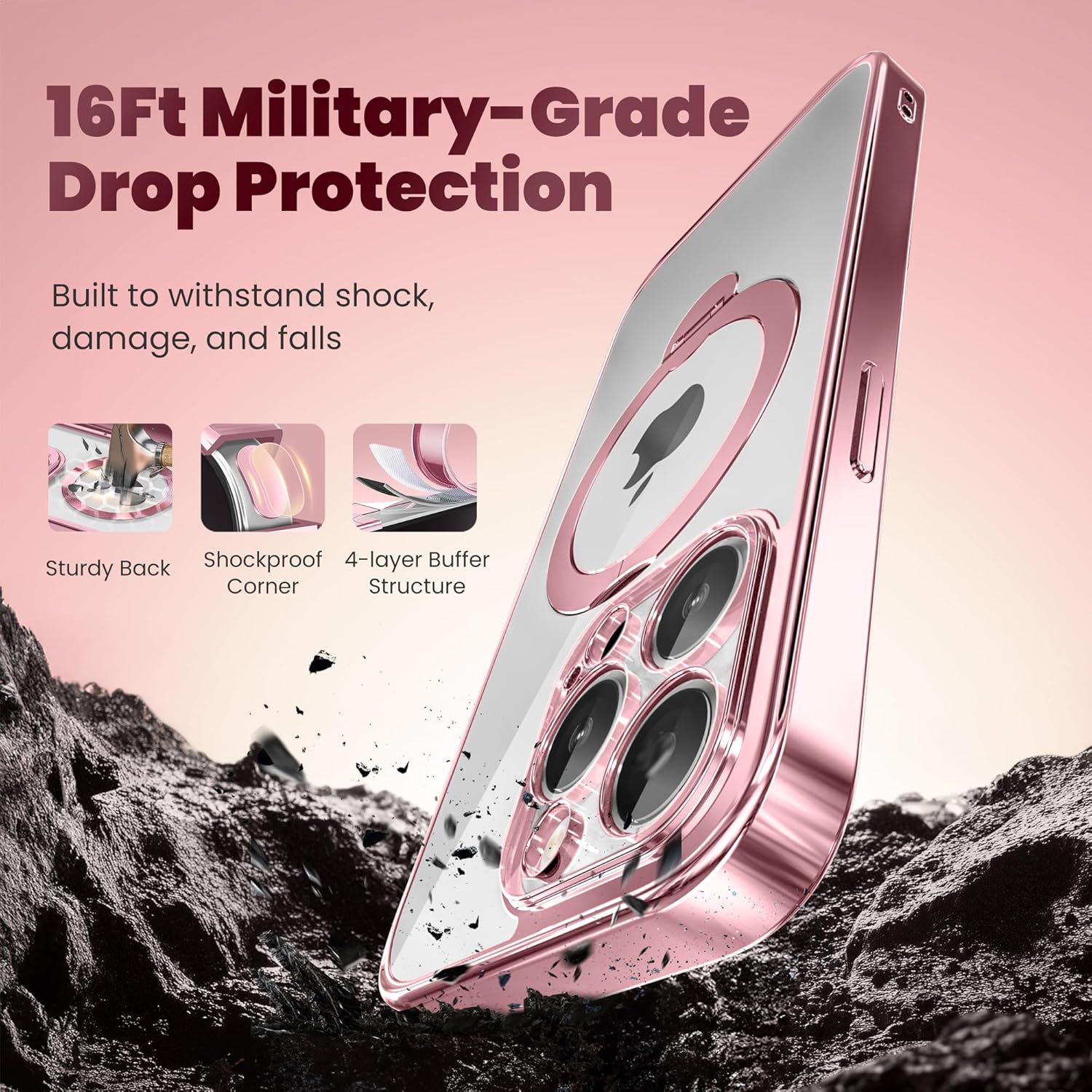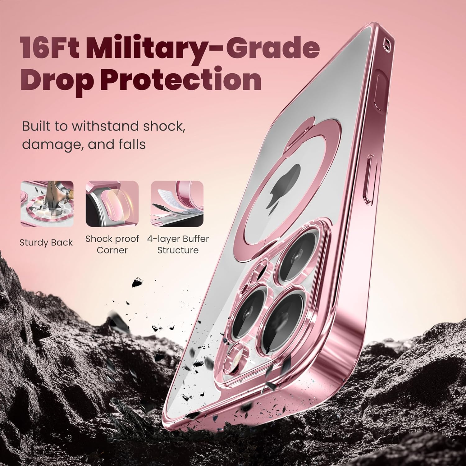 SURITCH 适用于 iPhone 16 Pro 手机壳,带滑动相机盖和可调节支架,兼容 MagSafe,防震防撞保护套,适用于 iPhone 16 Pro 6.3 英寸,黑色