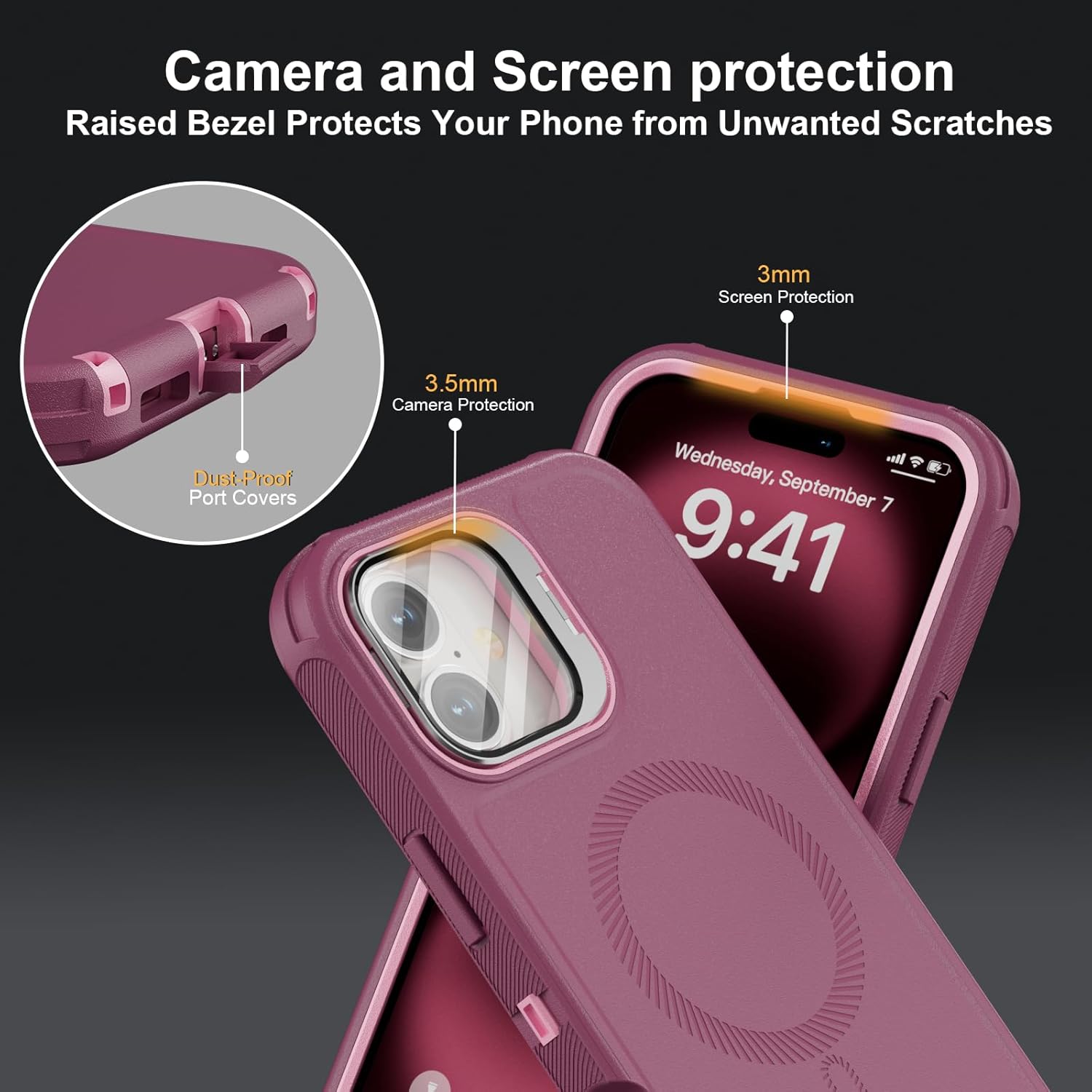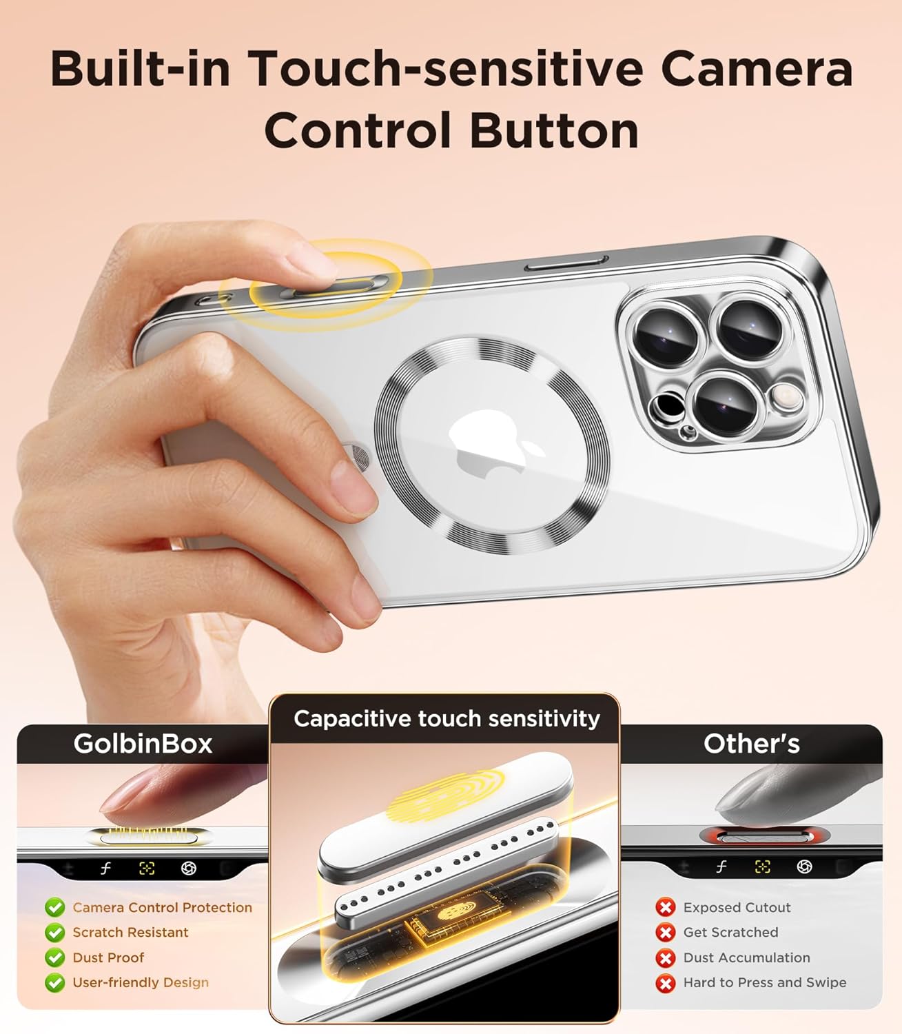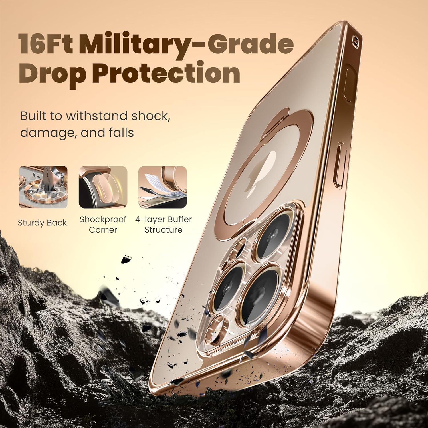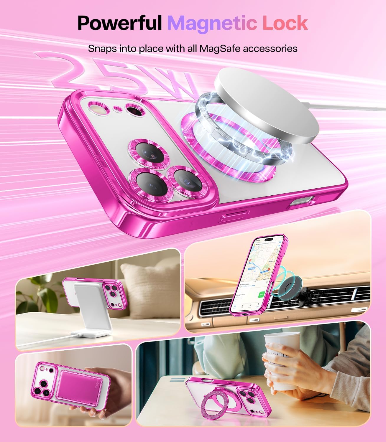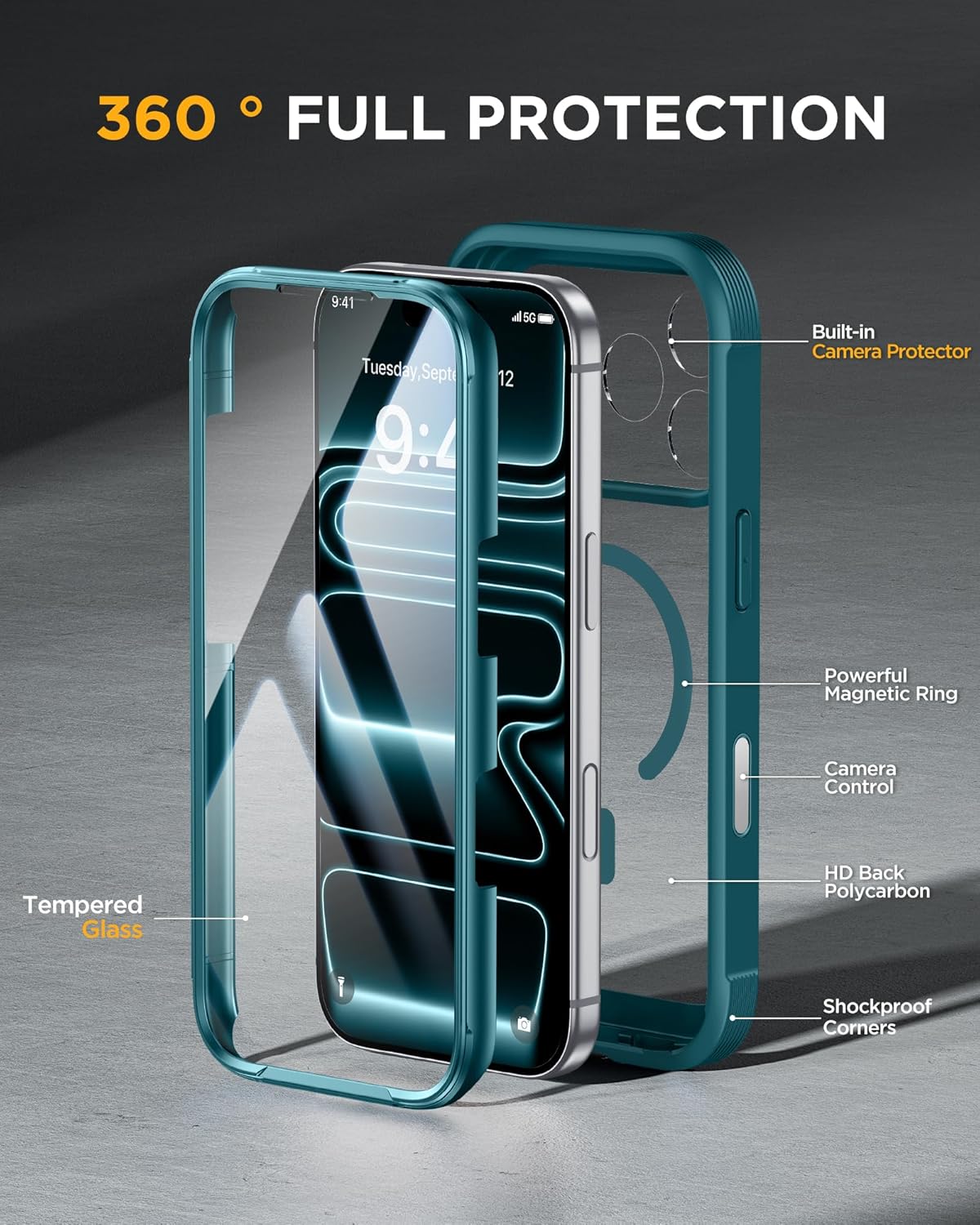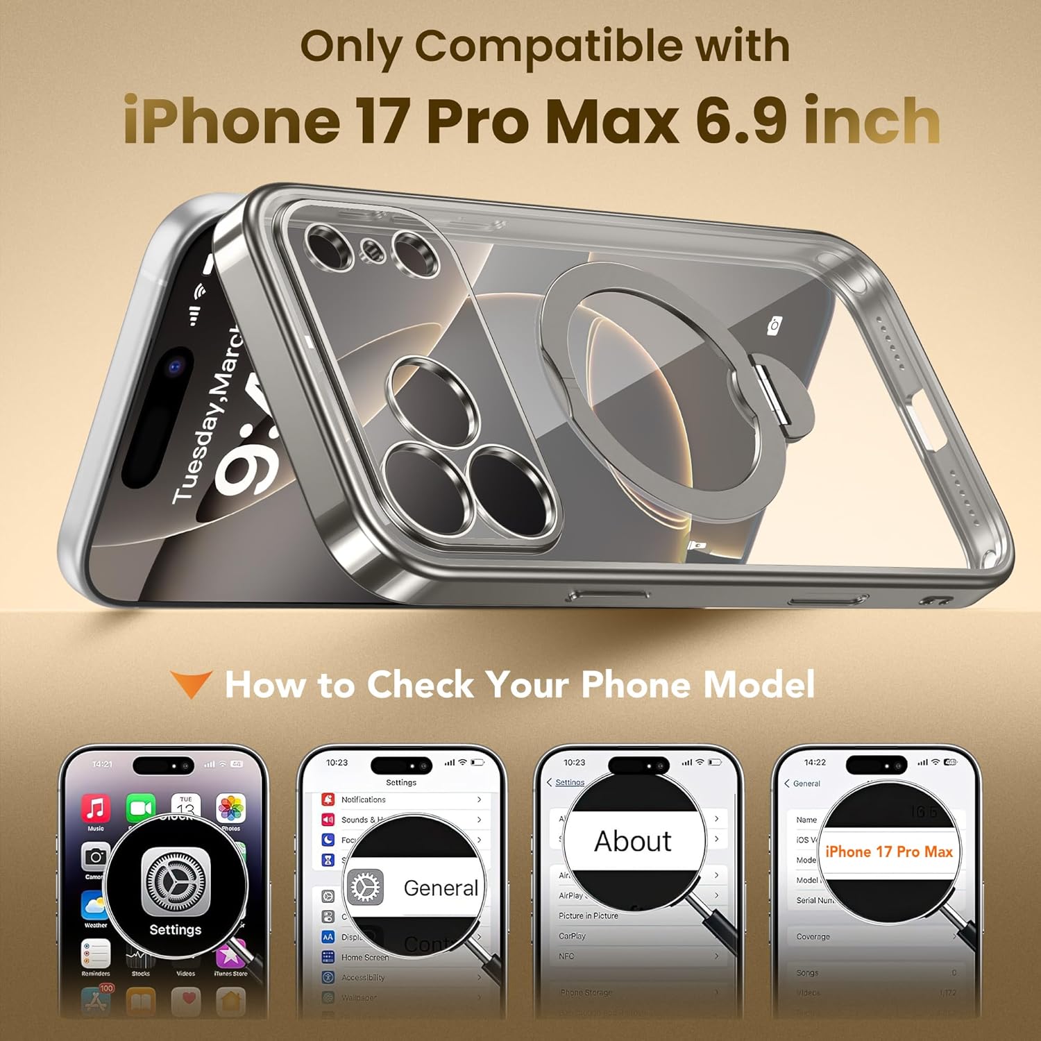 SURITCH 适用于 iPhone 16 Pro 手机壳,带滑动相机盖和可调节支架,兼容 MagSafe,防震防撞保护套,适用于 iPhone 16 Pro 6.3 英寸,黑色