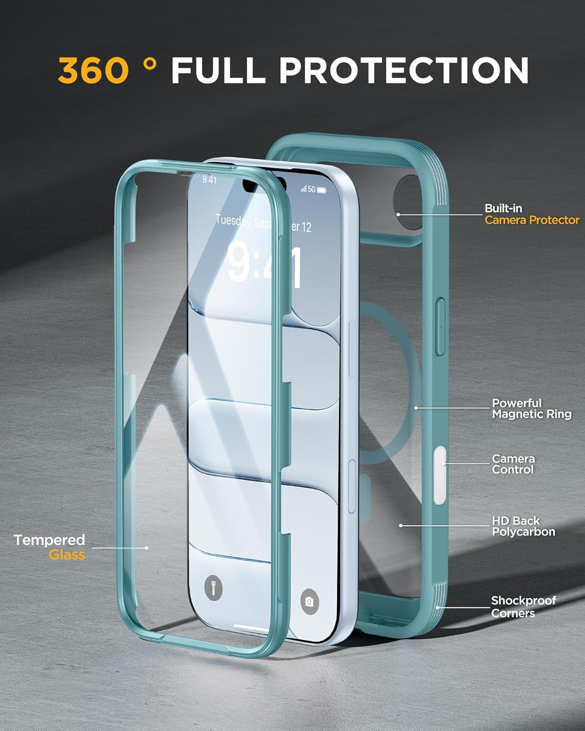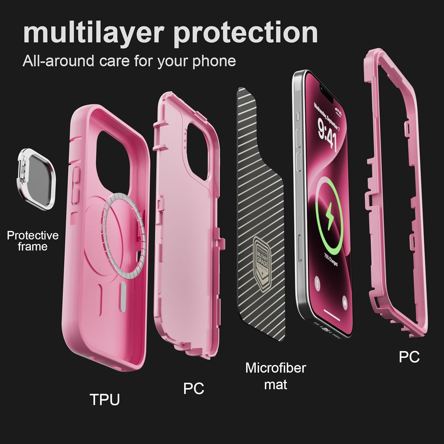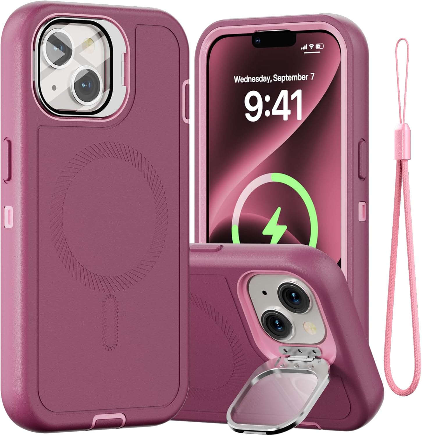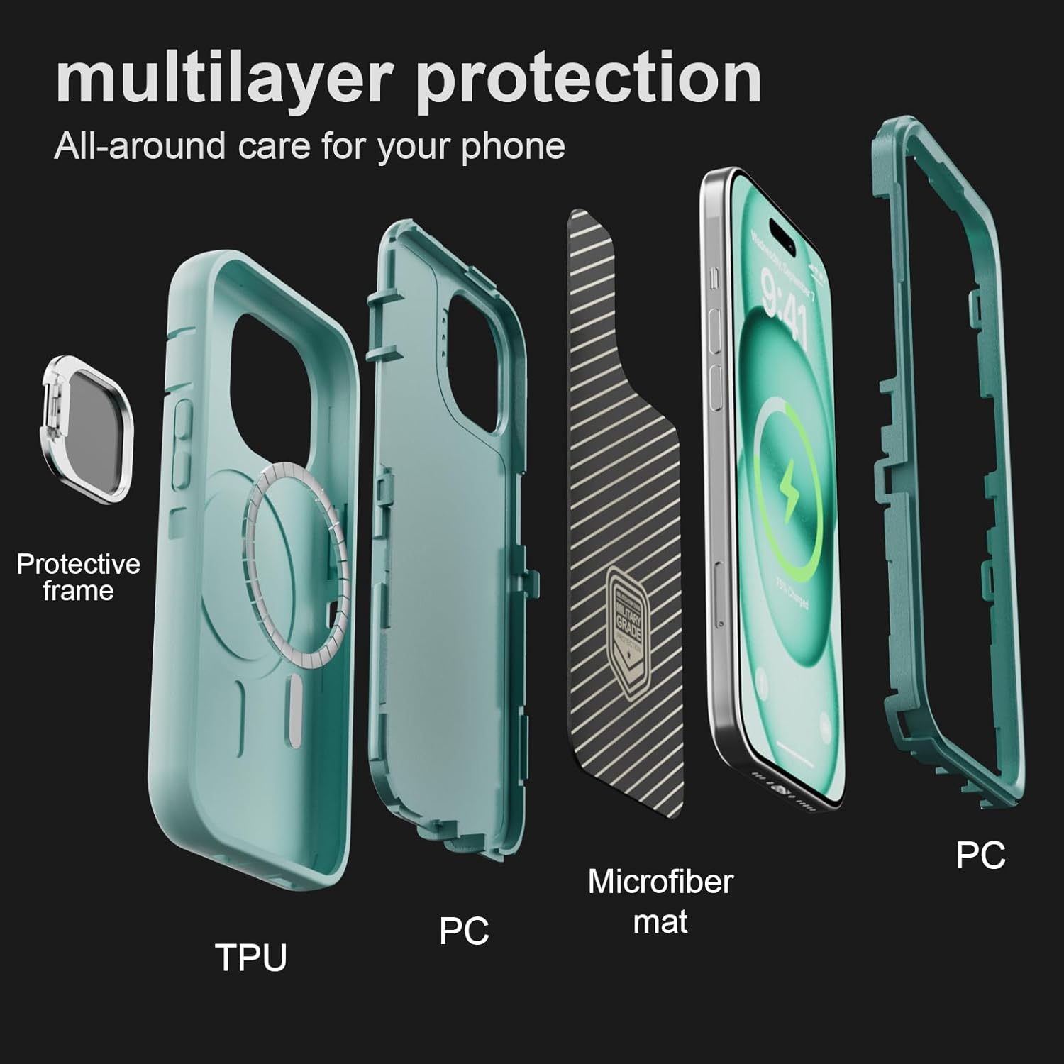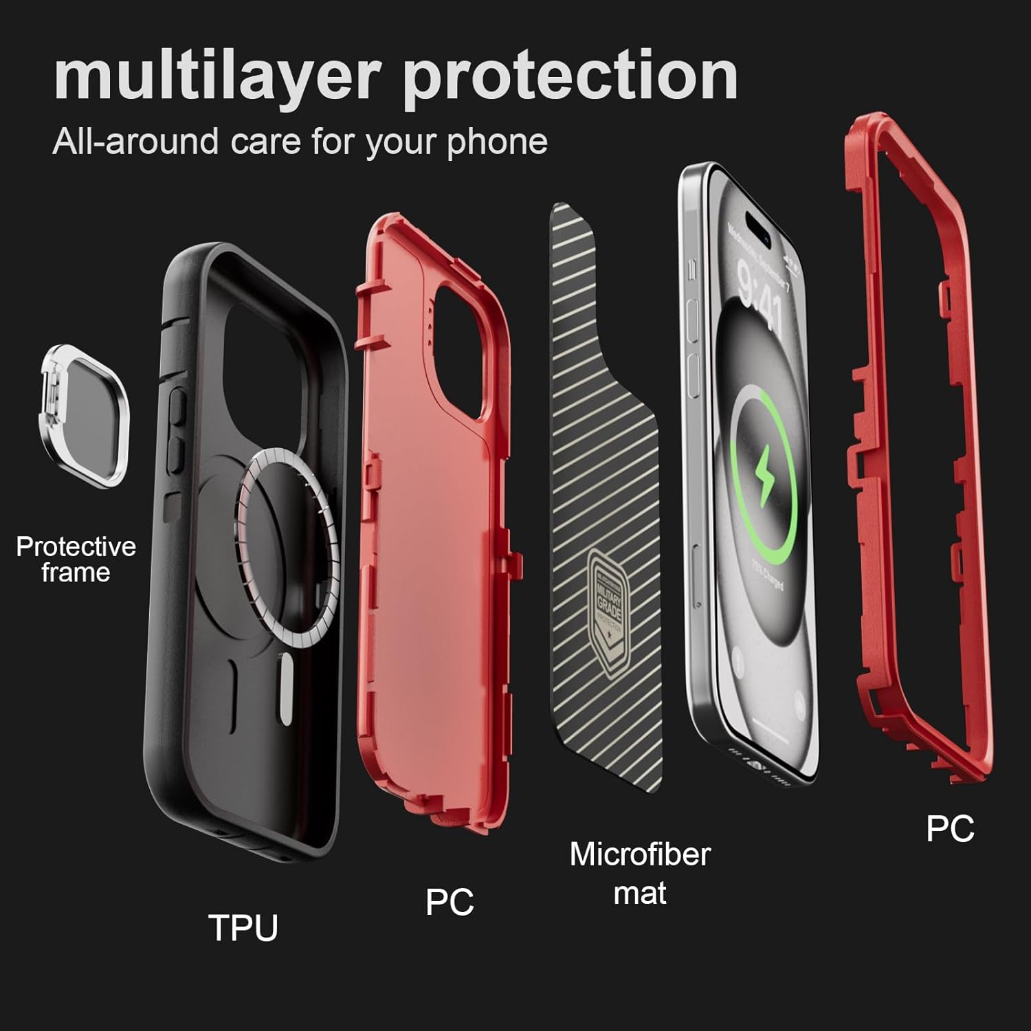 SURITCH 适用于 iPhone 16 Pro 手机壳,带滑动相机盖和可调节支架,兼容 MagSafe,防震防撞保护套,适用于 iPhone 16 Pro 6.3 英寸,黑色