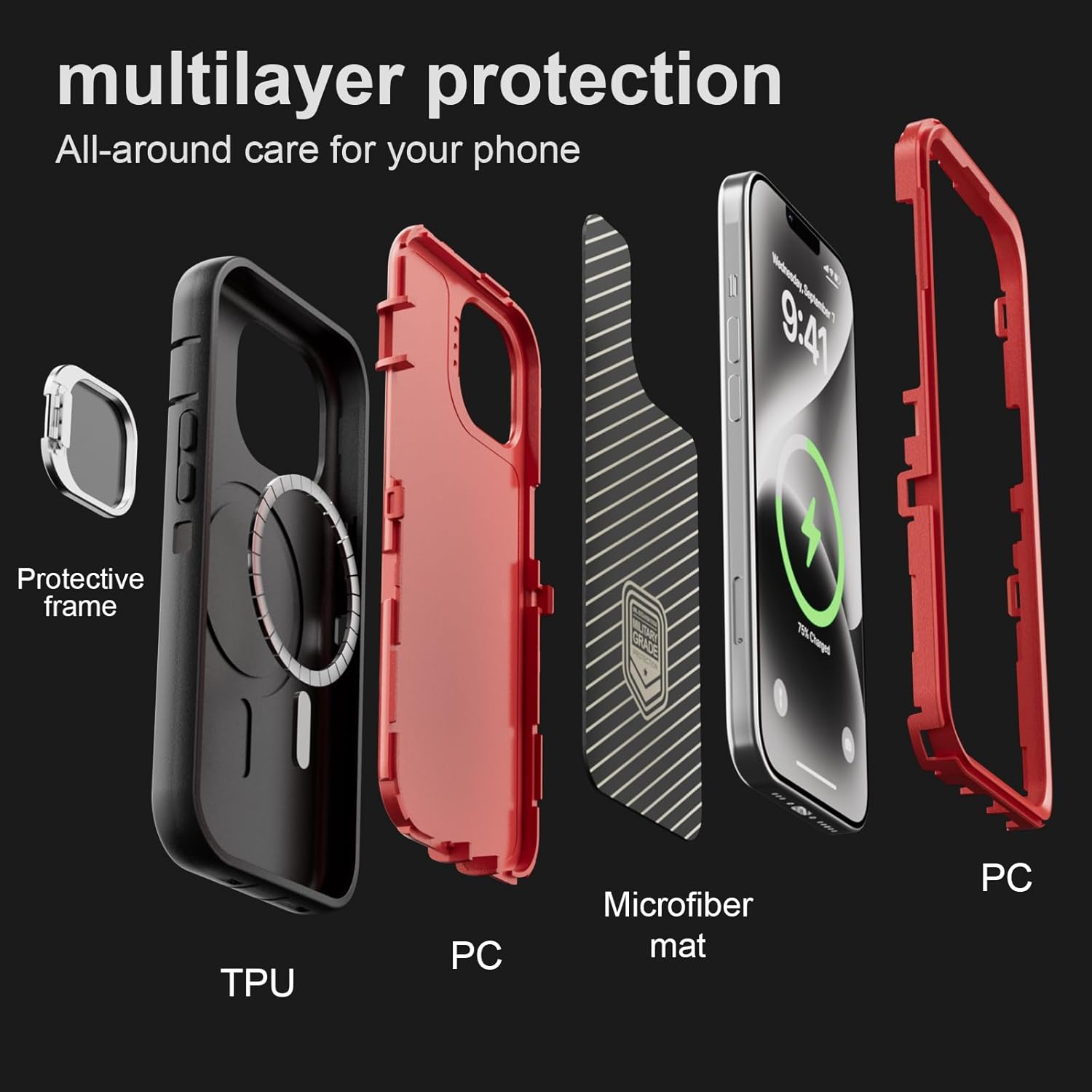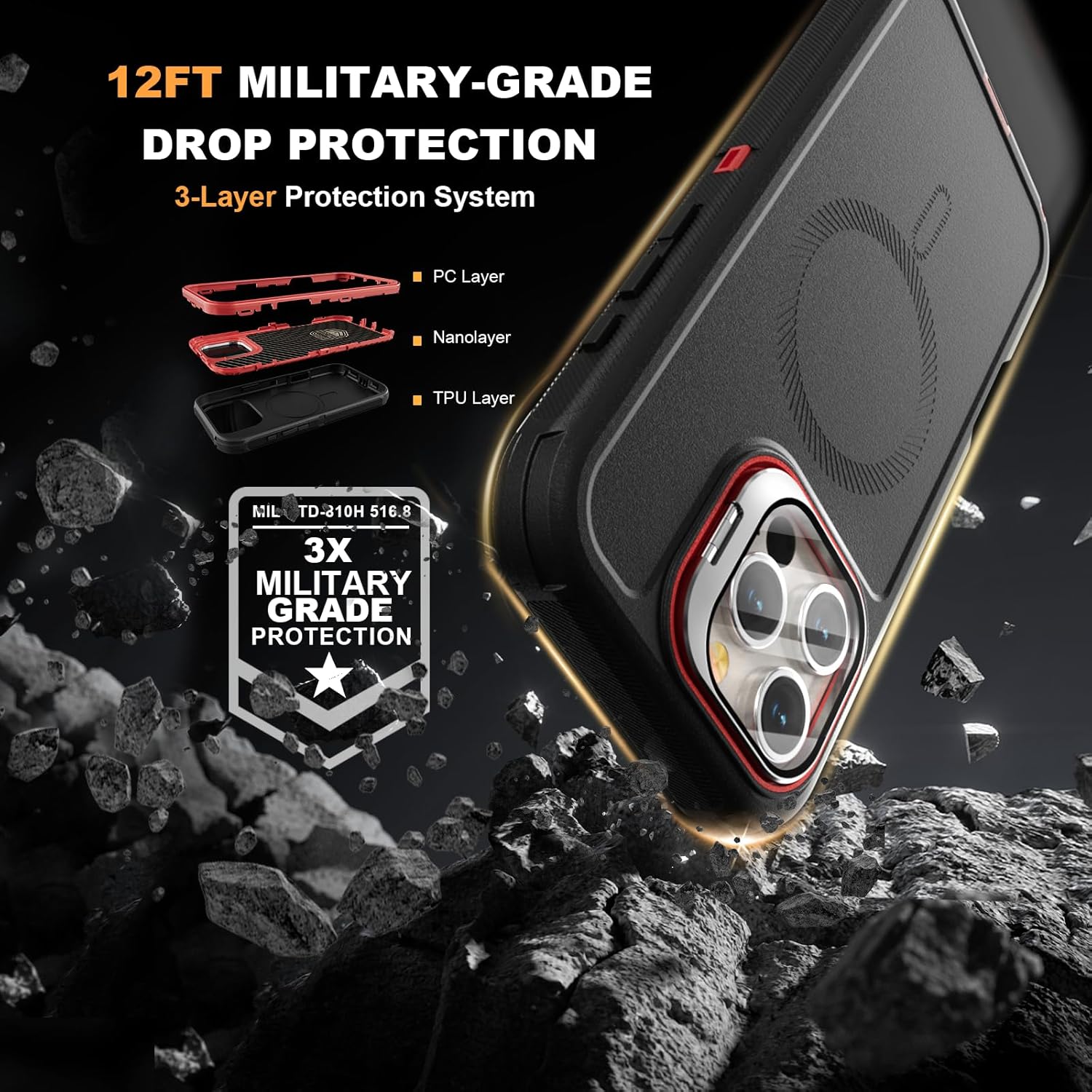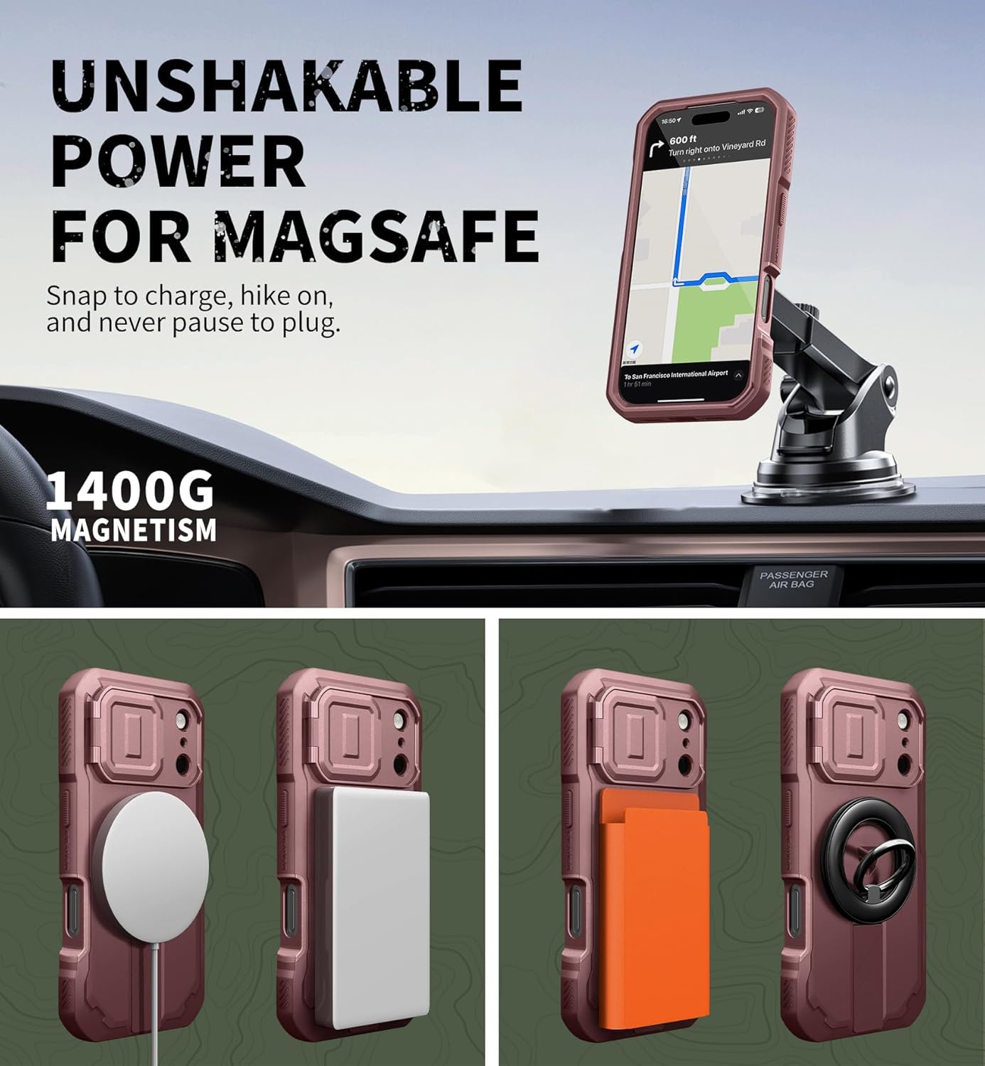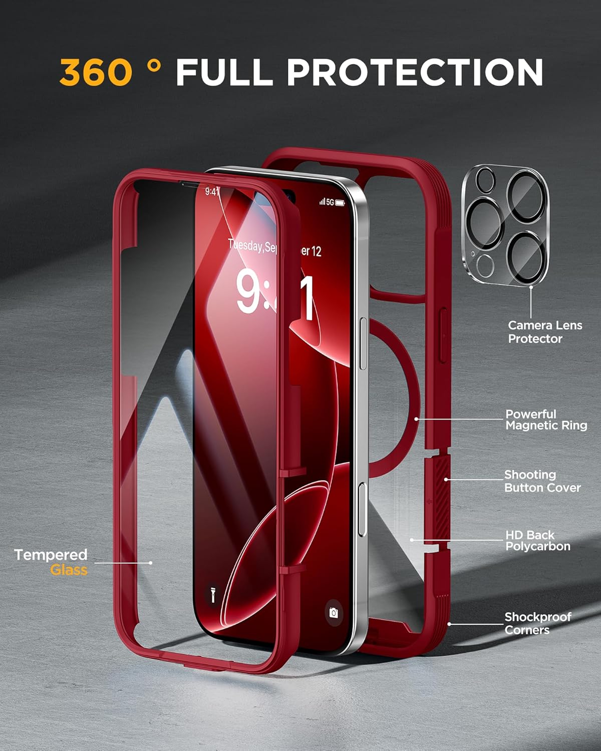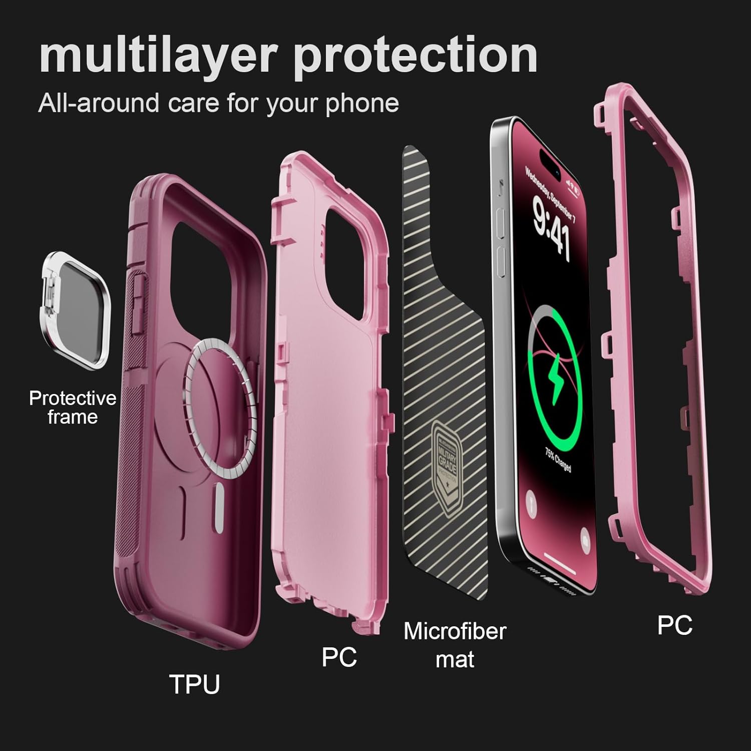 SURITCH 适用于 iPhone 16 Pro 手机壳,带滑动相机盖和可调节支架,兼容 MagSafe,防震防撞保护套,适用于 iPhone 16 Pro 6.3 英寸,黑色
