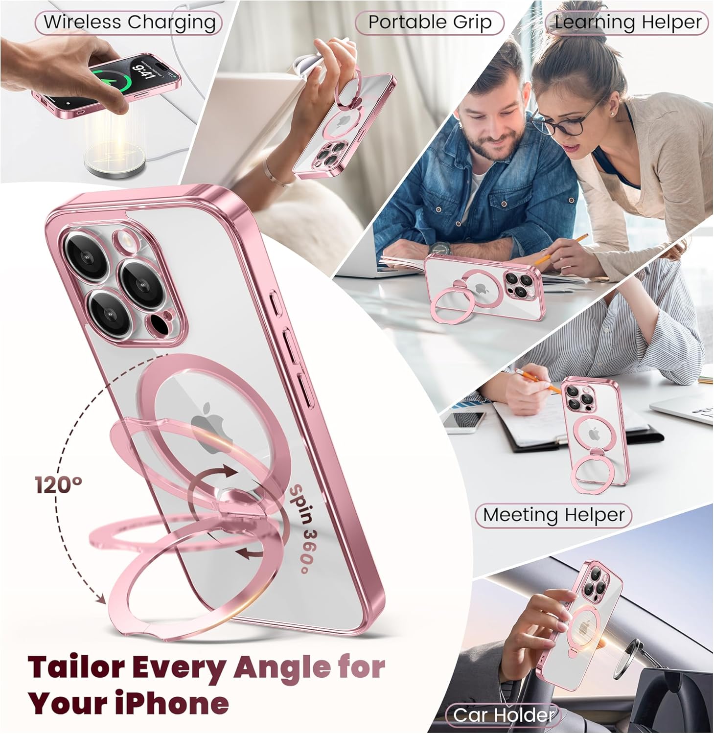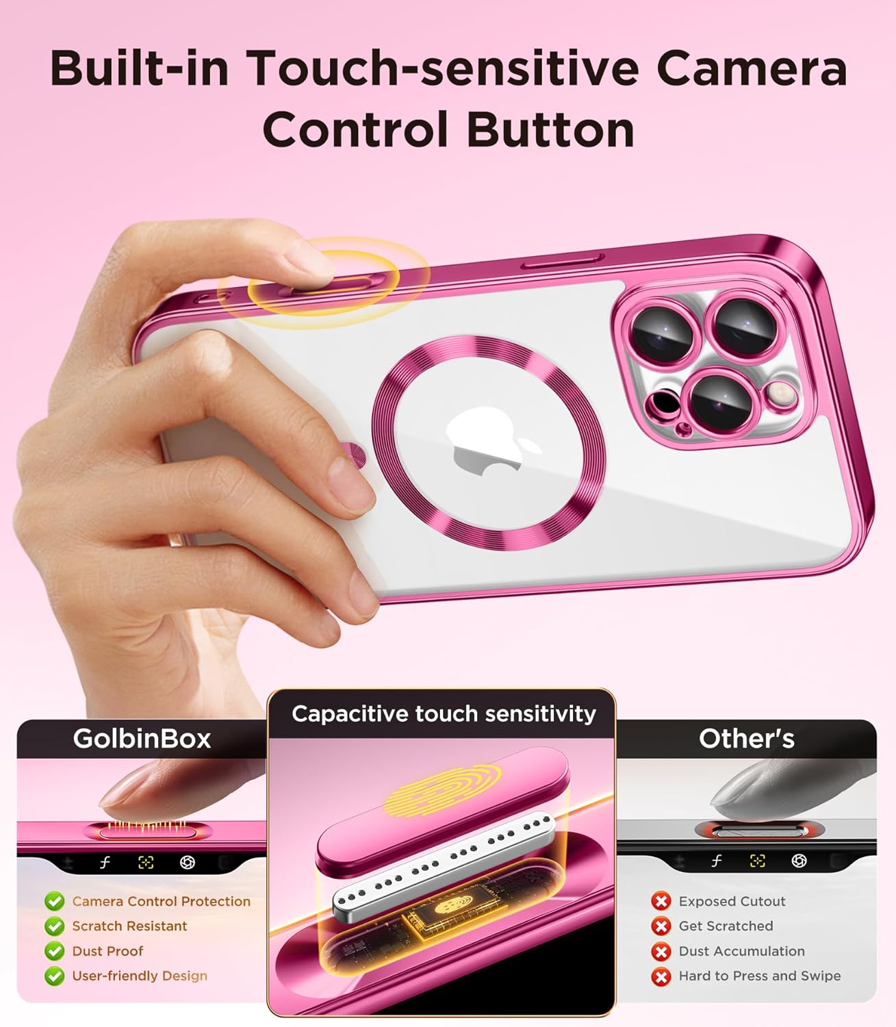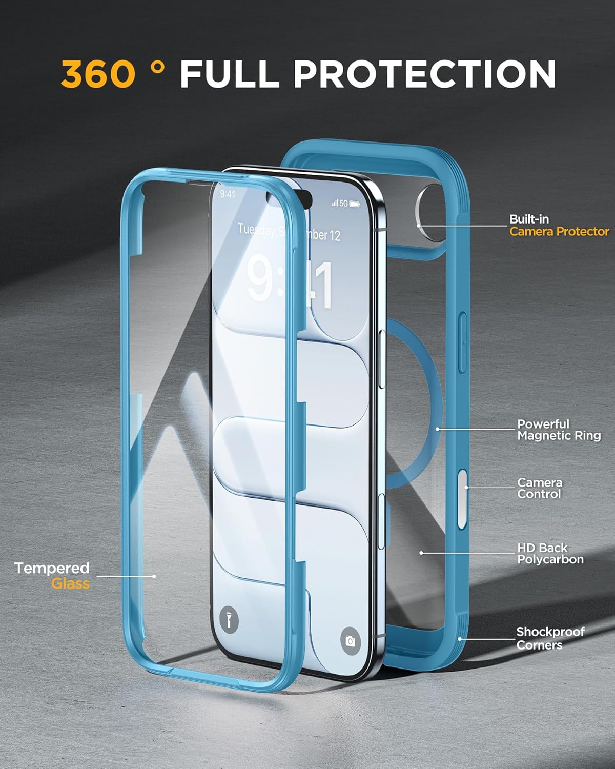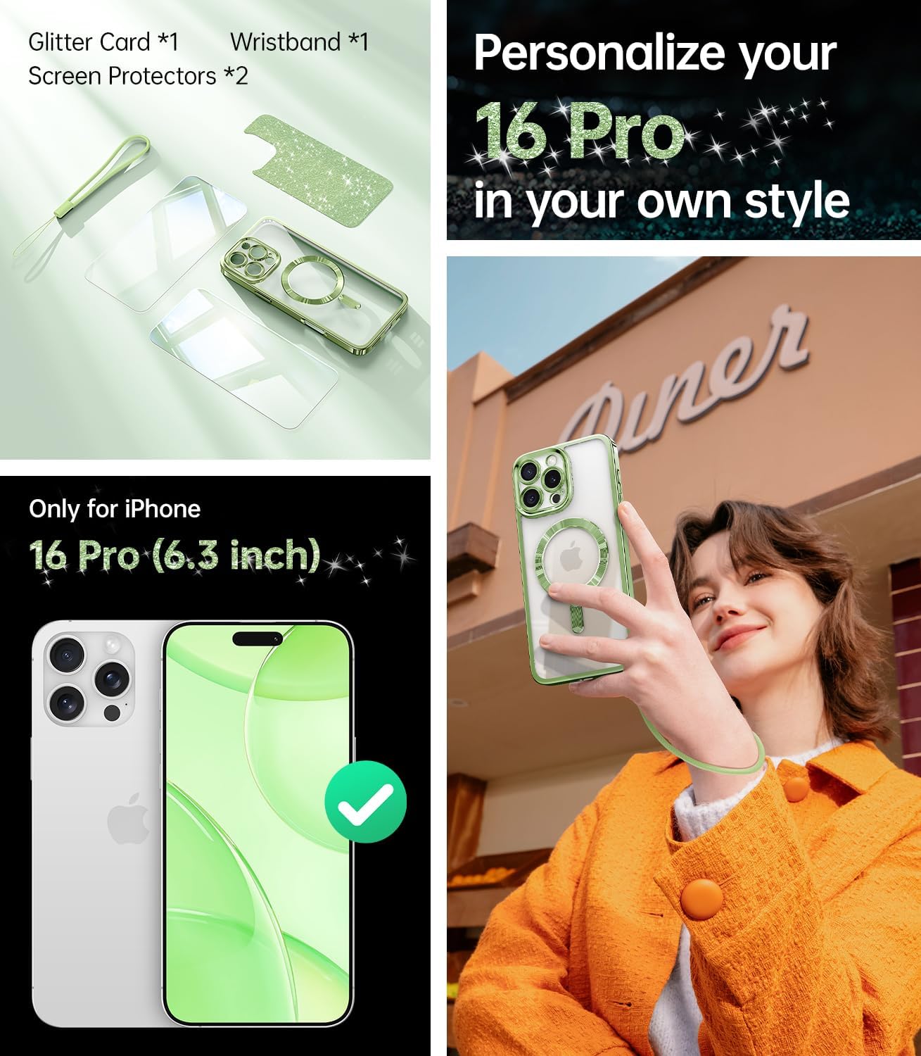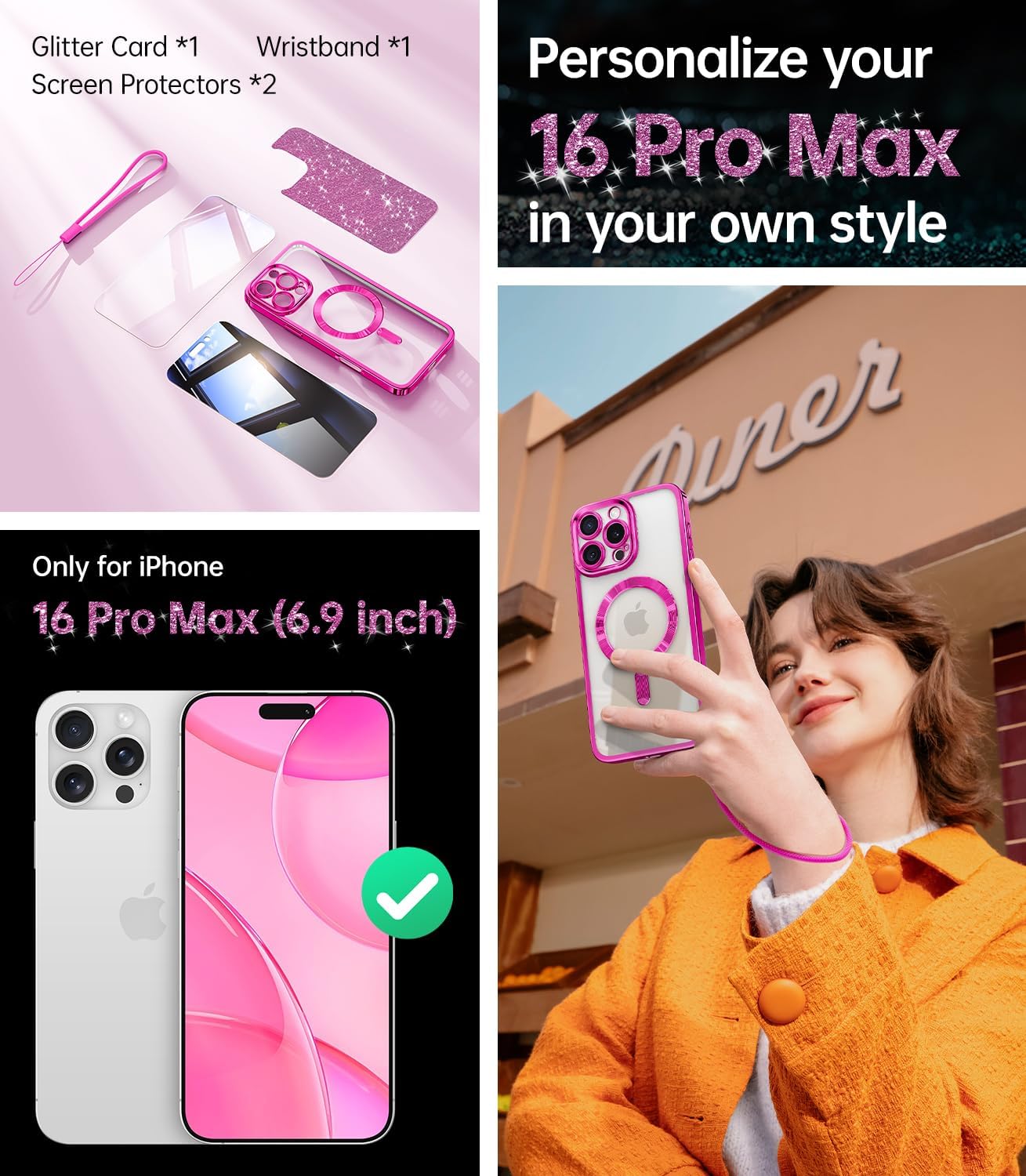 SURITCH 适用于 iPhone 16 Pro 手机壳,带滑动相机盖和可调节支架,兼容 MagSafe,防震防撞保护套,适用于 iPhone 16 Pro 6.3 英寸,黑色