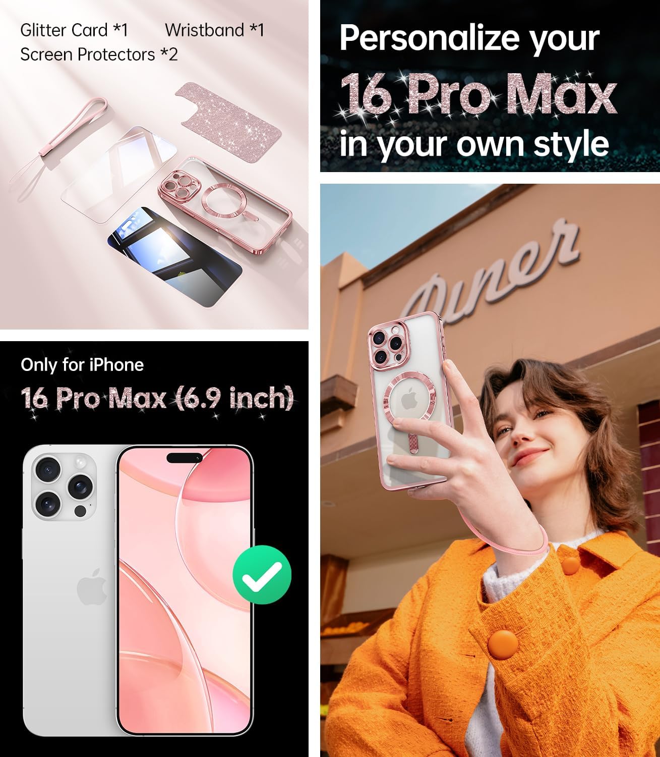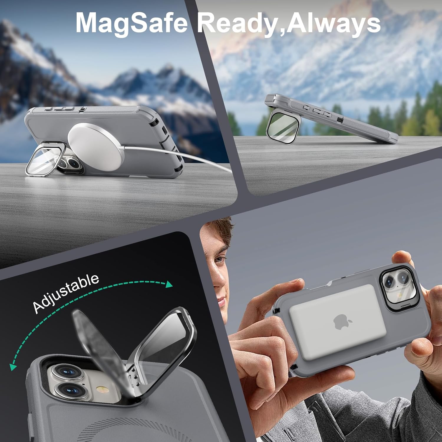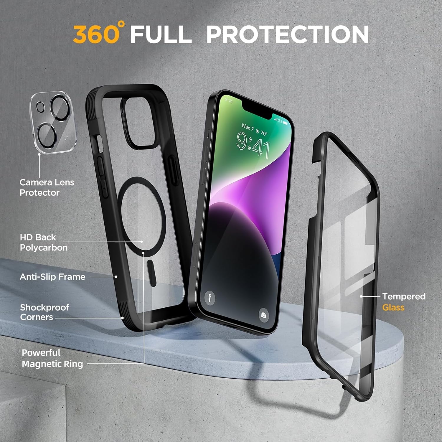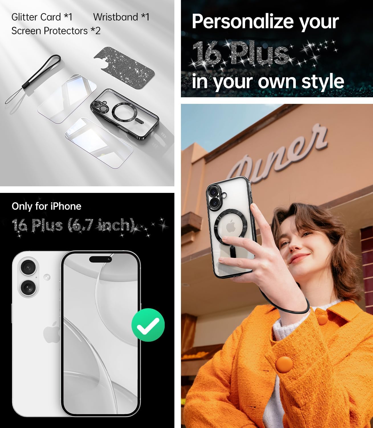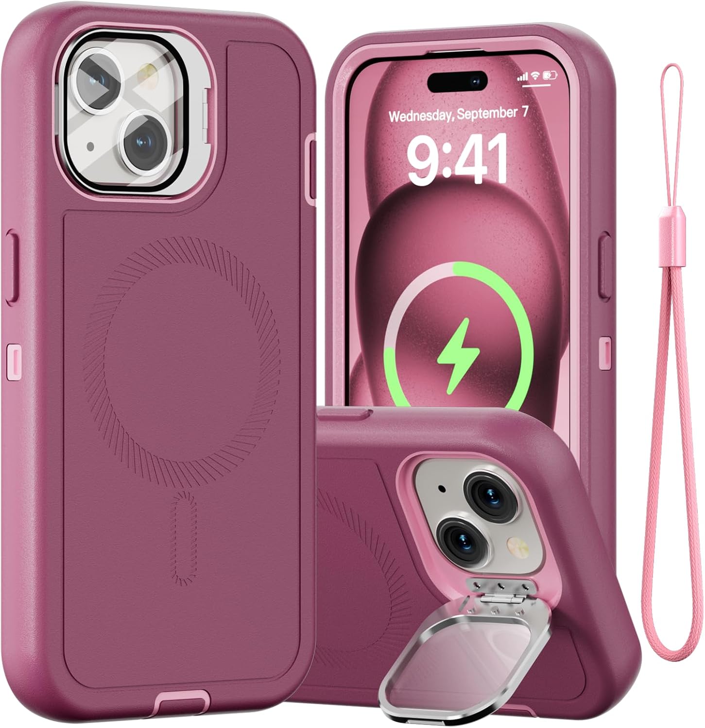 SURITCH 适用于 iPhone 16 Pro 手机壳,带滑动相机盖和可调节支架,兼容 MagSafe,防震防撞保护套,适用于 iPhone 16 Pro 6.3 英寸,黑色