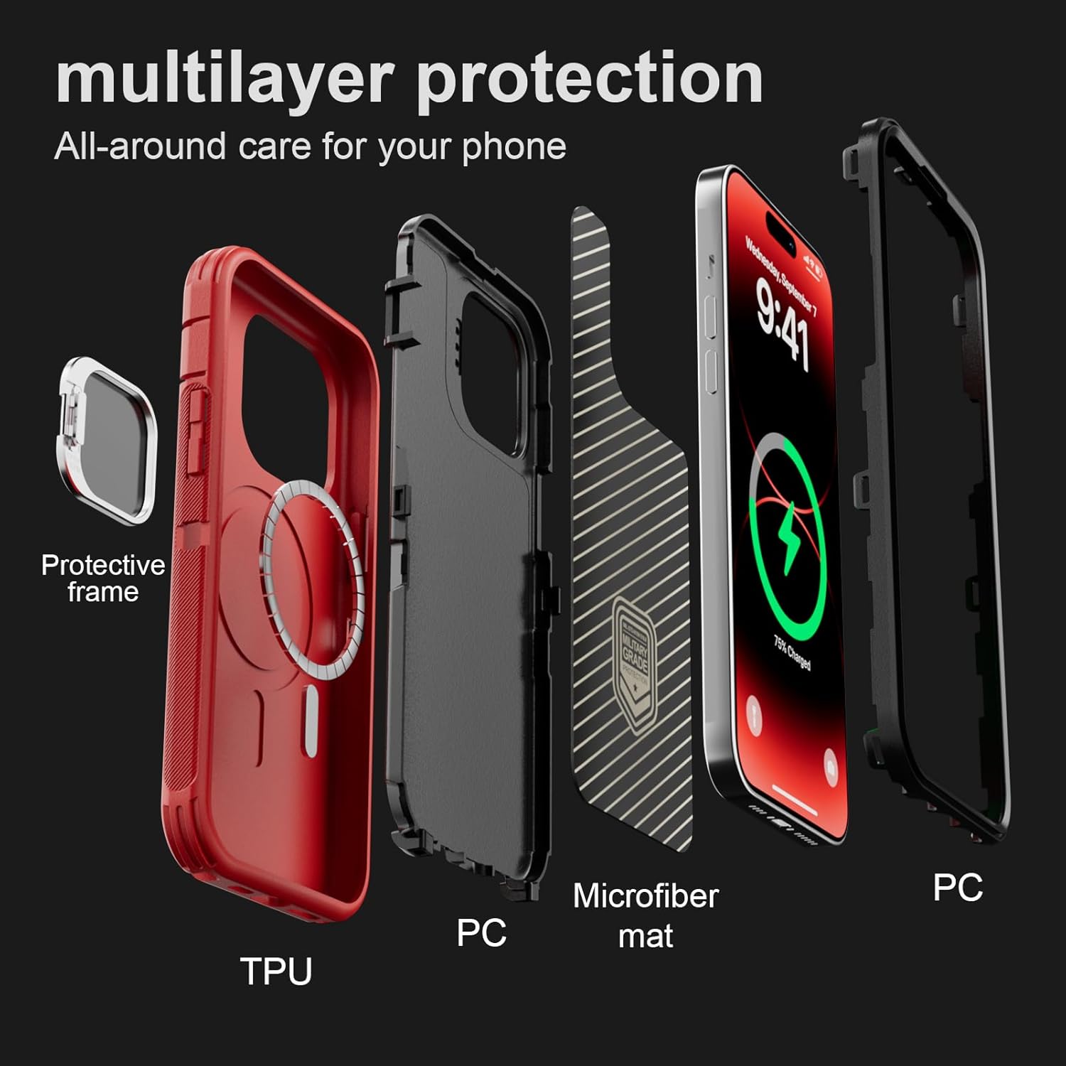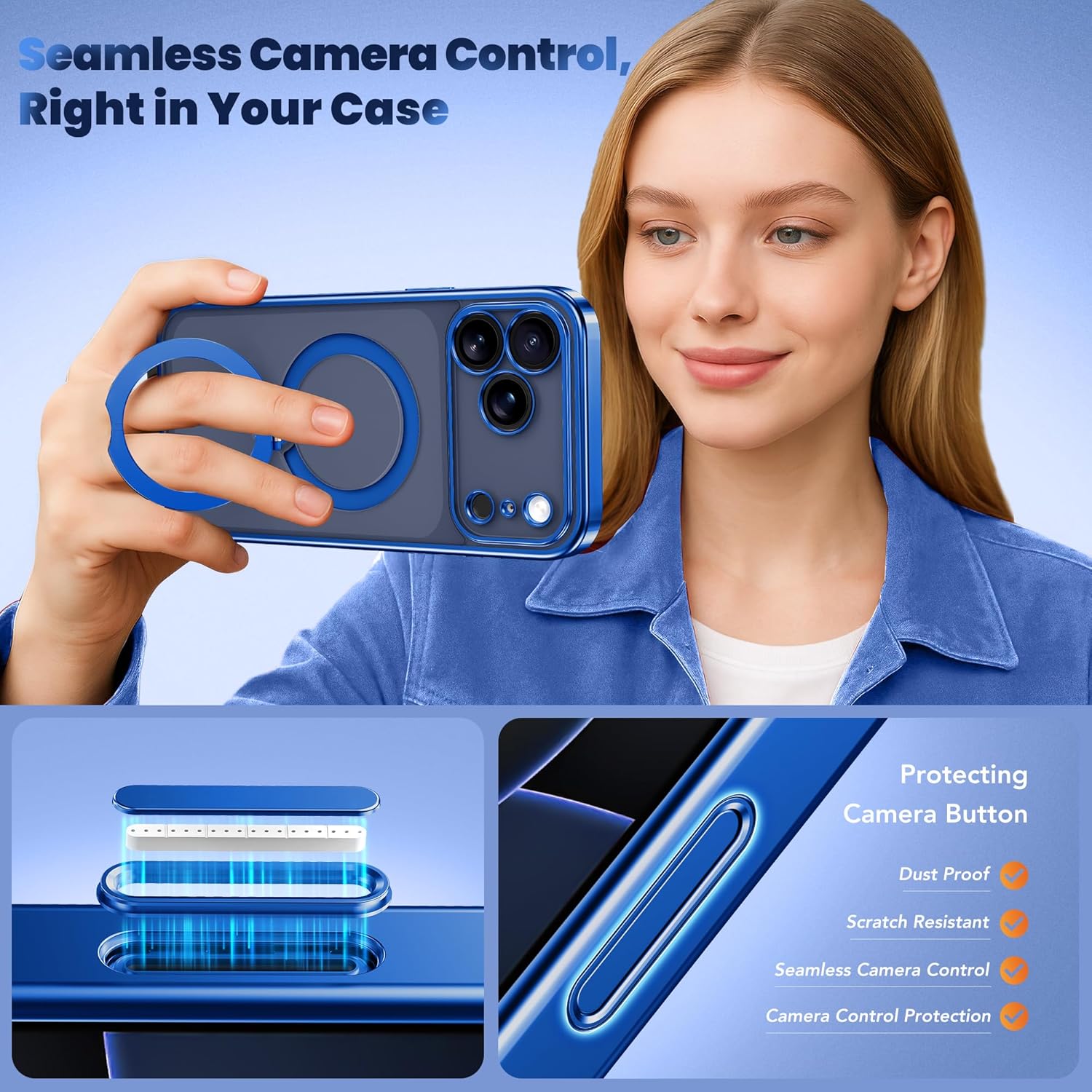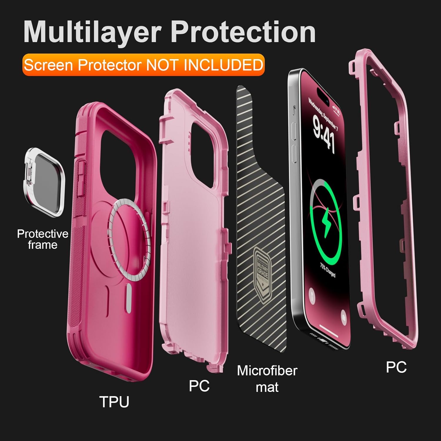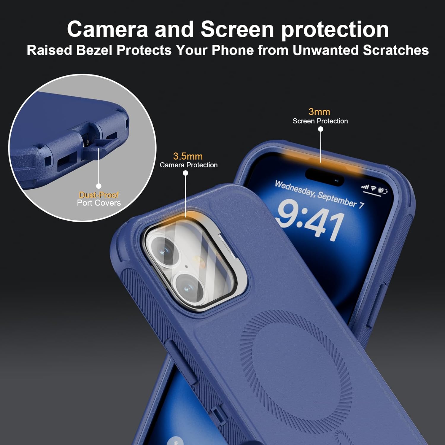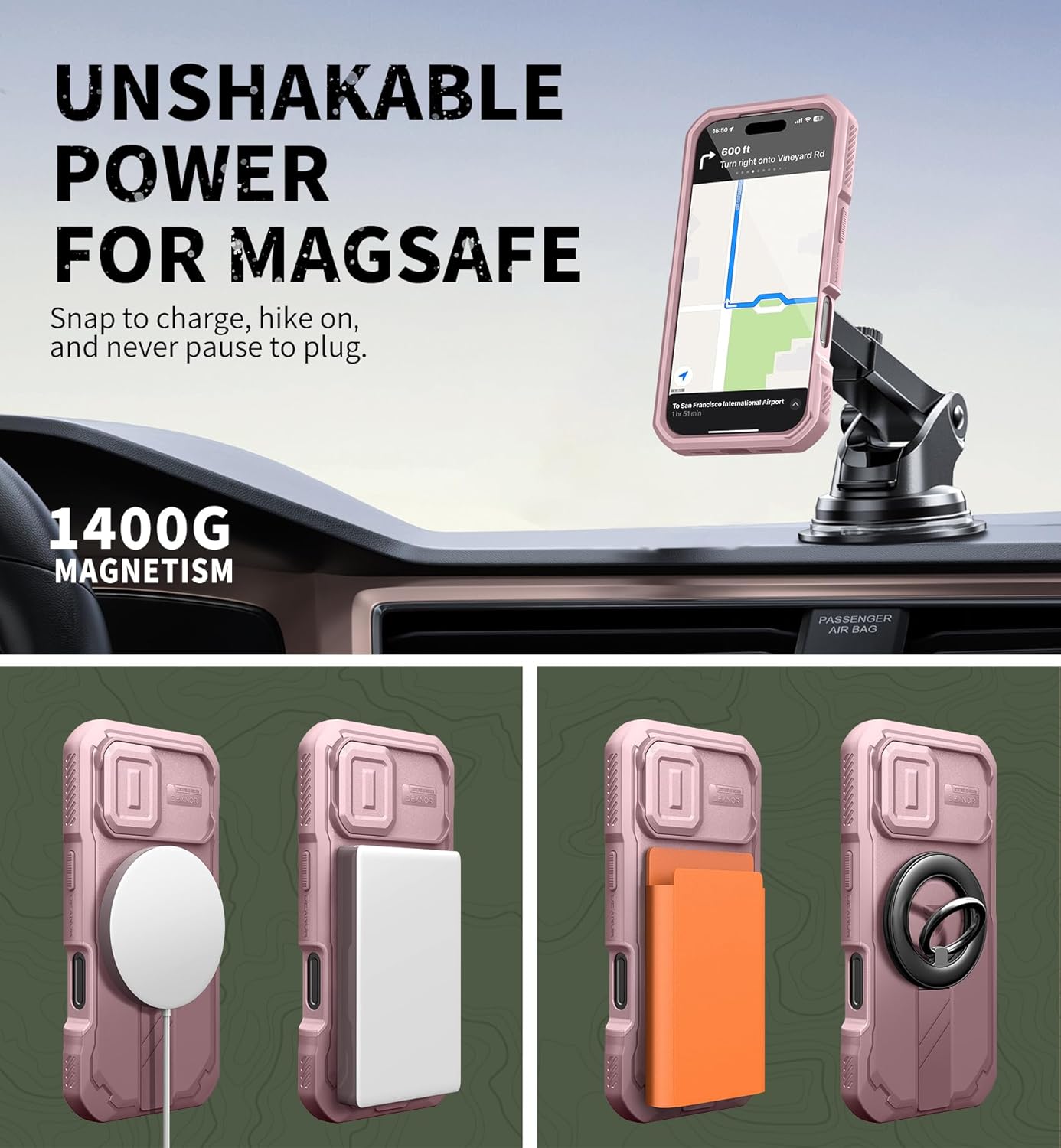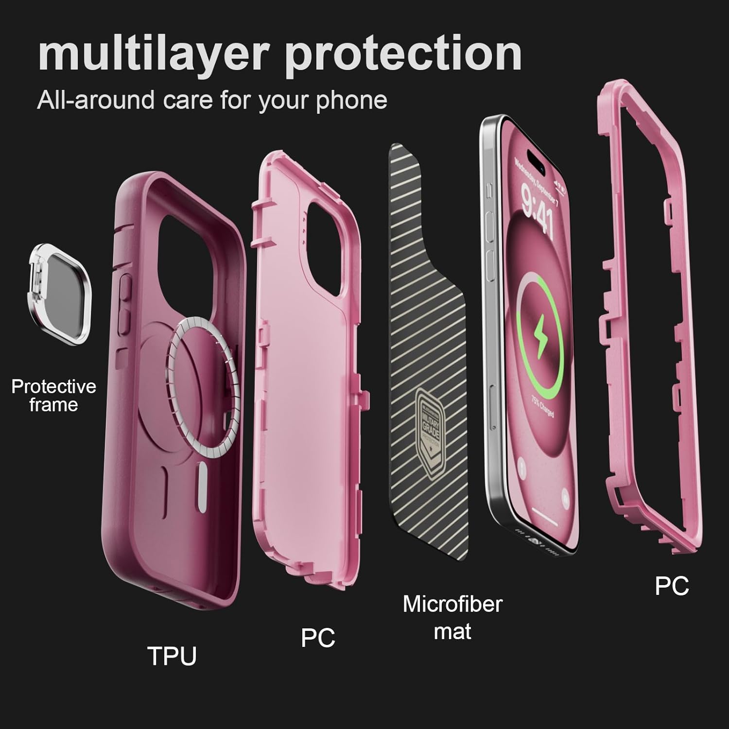 SURITCH 适用于 iPhone 16 Pro 手机壳,带滑动相机盖和可调节支架,兼容 MagSafe,防震防撞保护套,适用于 iPhone 16 Pro 6.3 英寸,黑色
