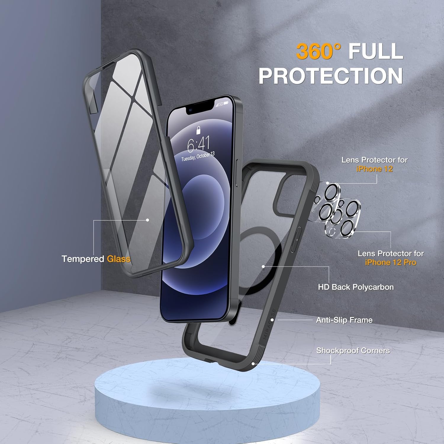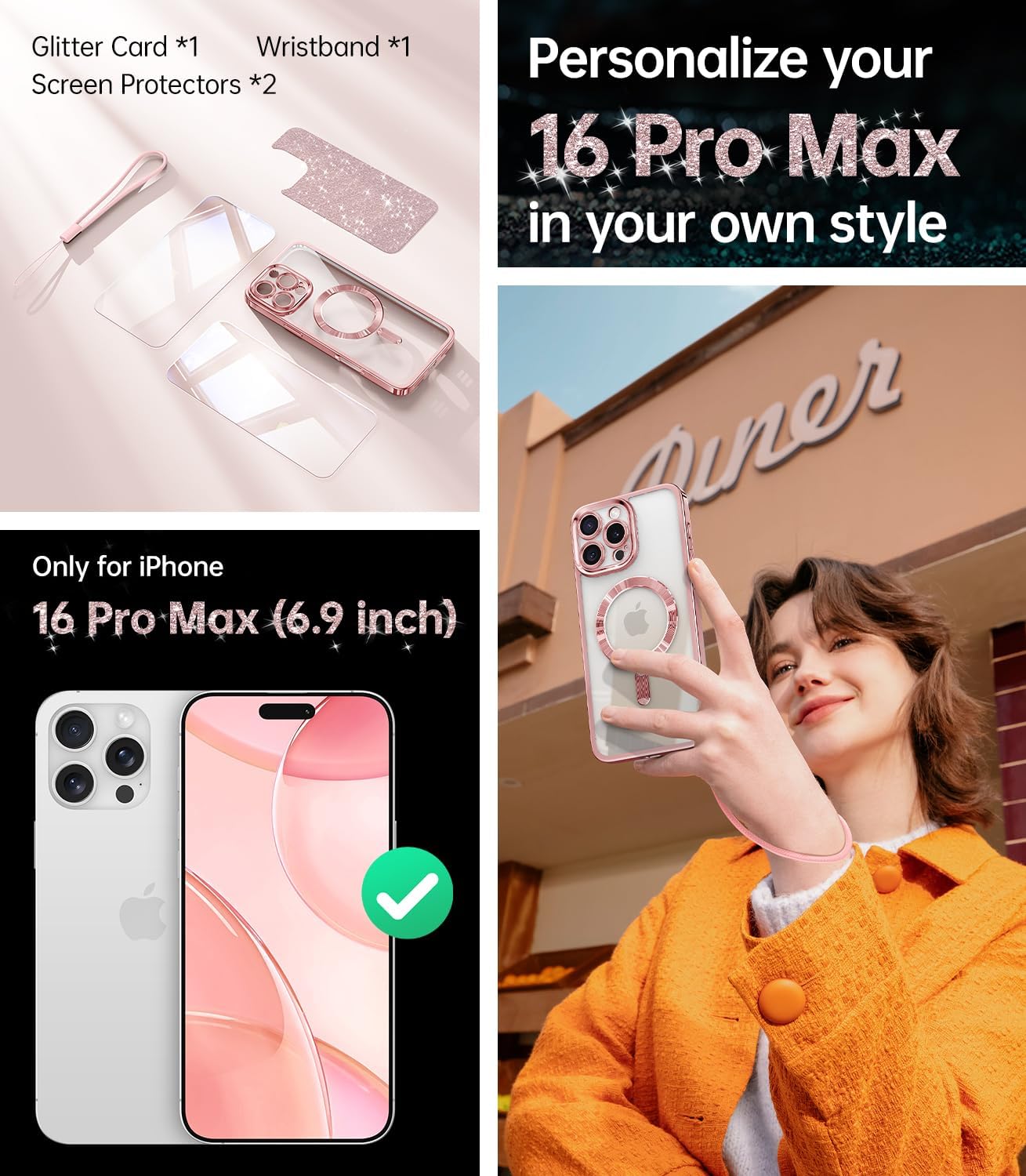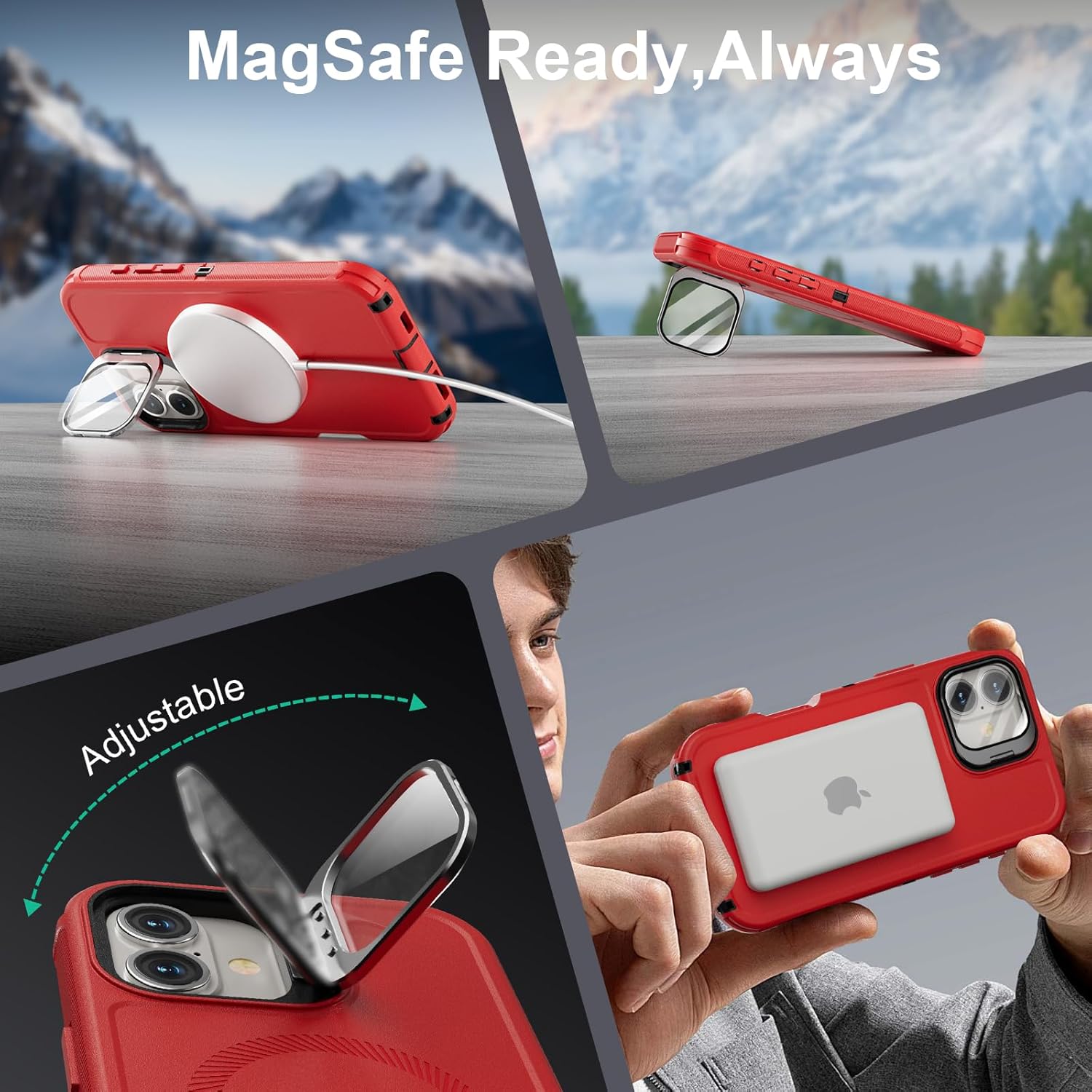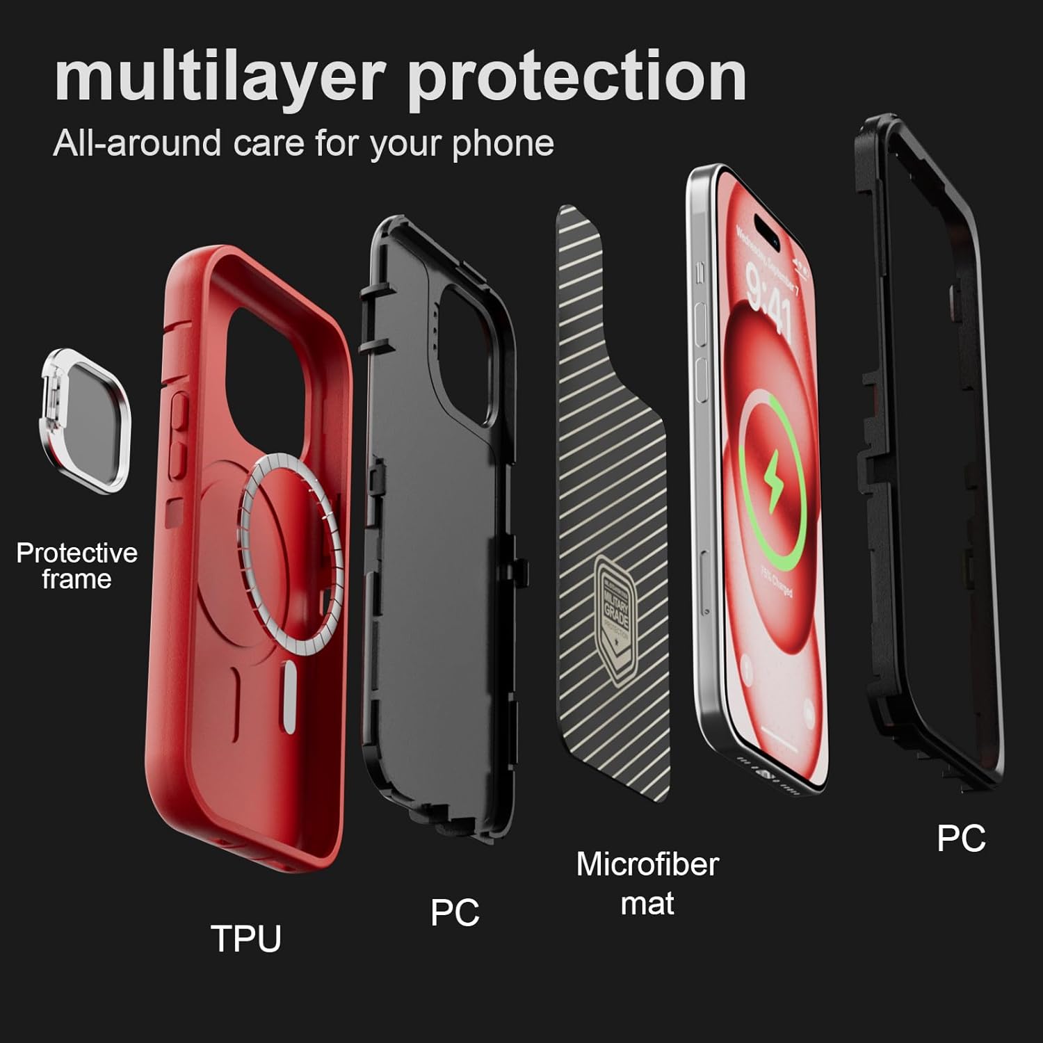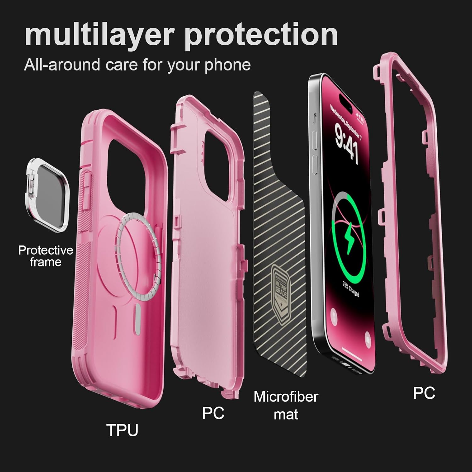 SURITCH 适用于 iPhone 16 Pro 手机壳,带滑动相机盖和可调节支架,兼容 MagSafe,防震防撞保护套,适用于 iPhone 16 Pro 6.3 英寸,黑色