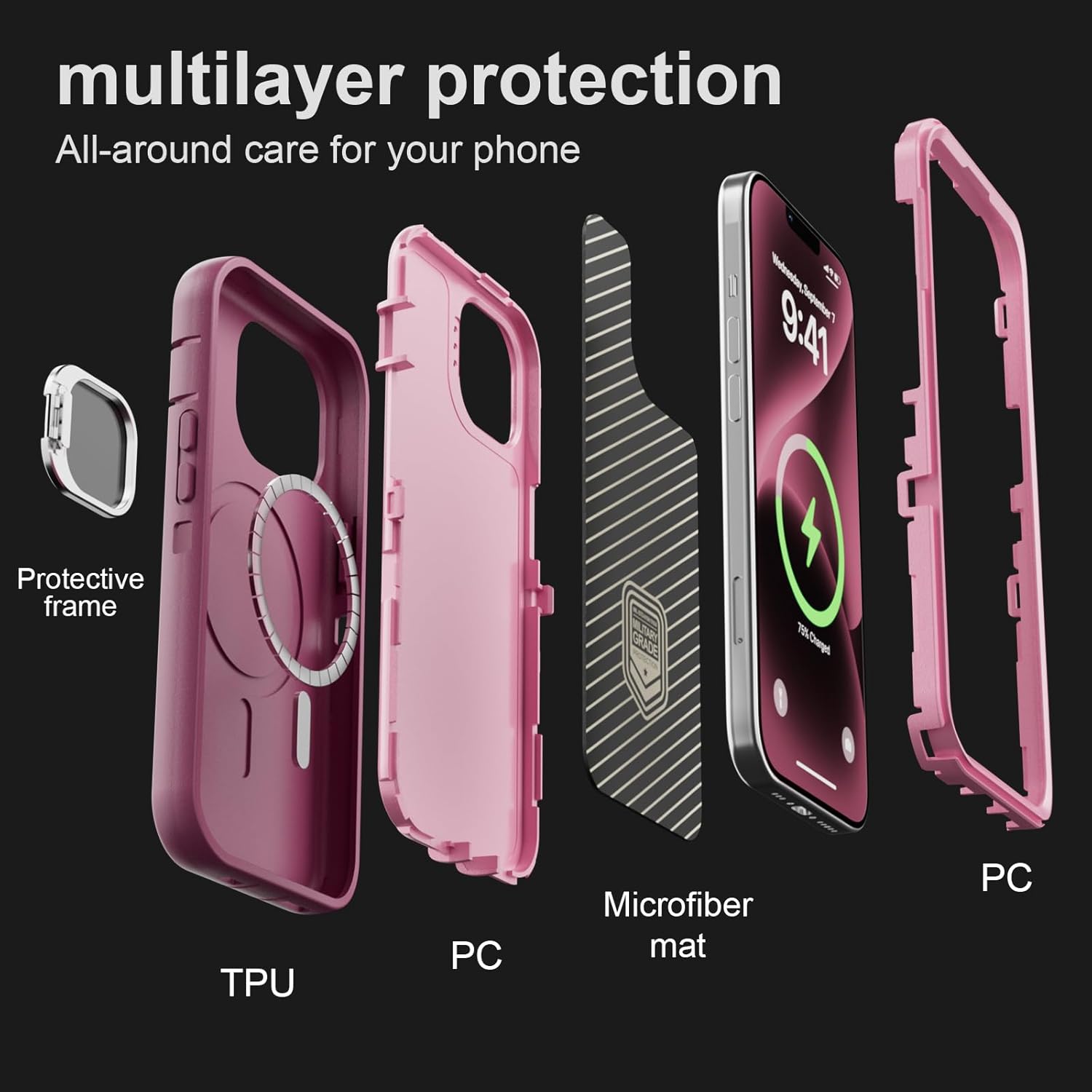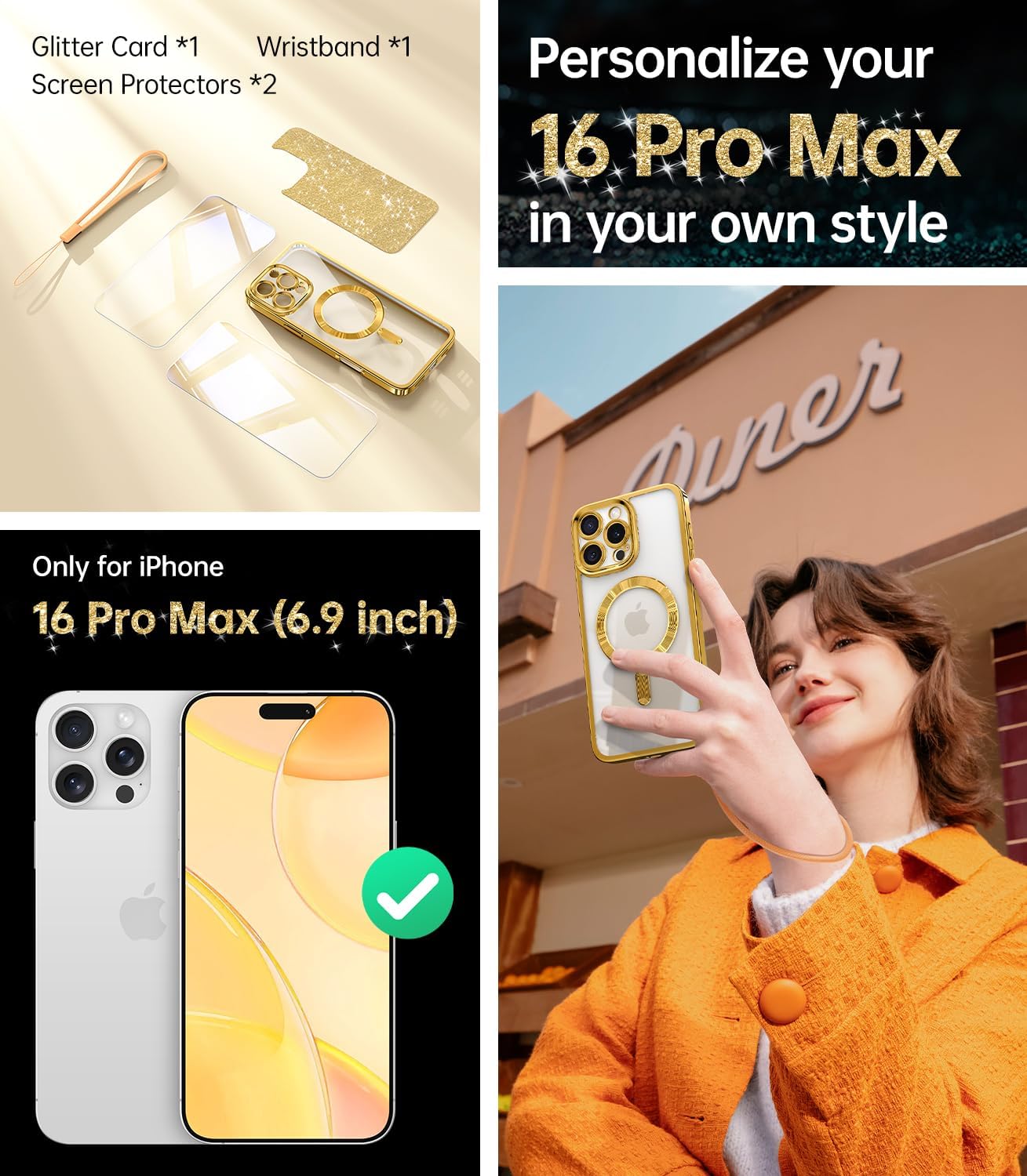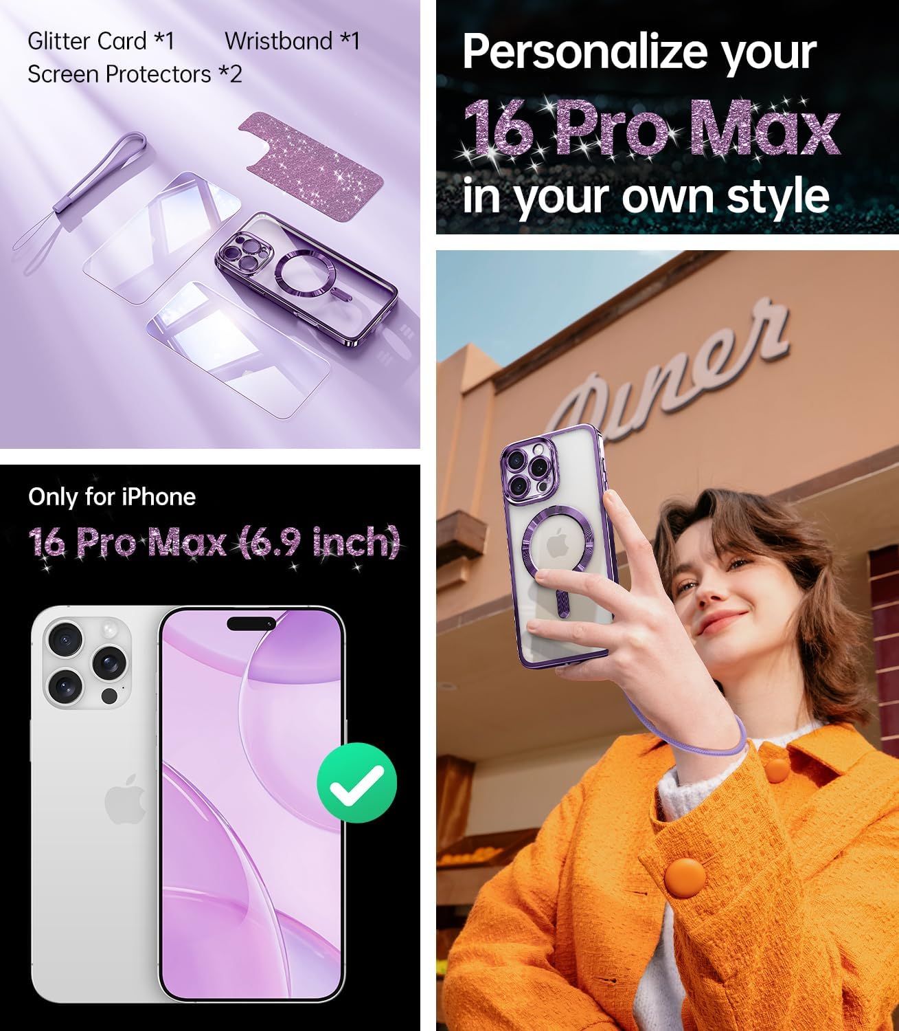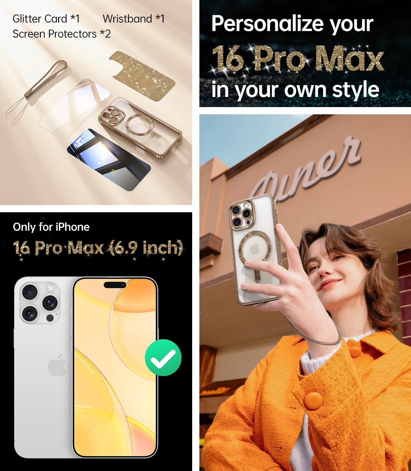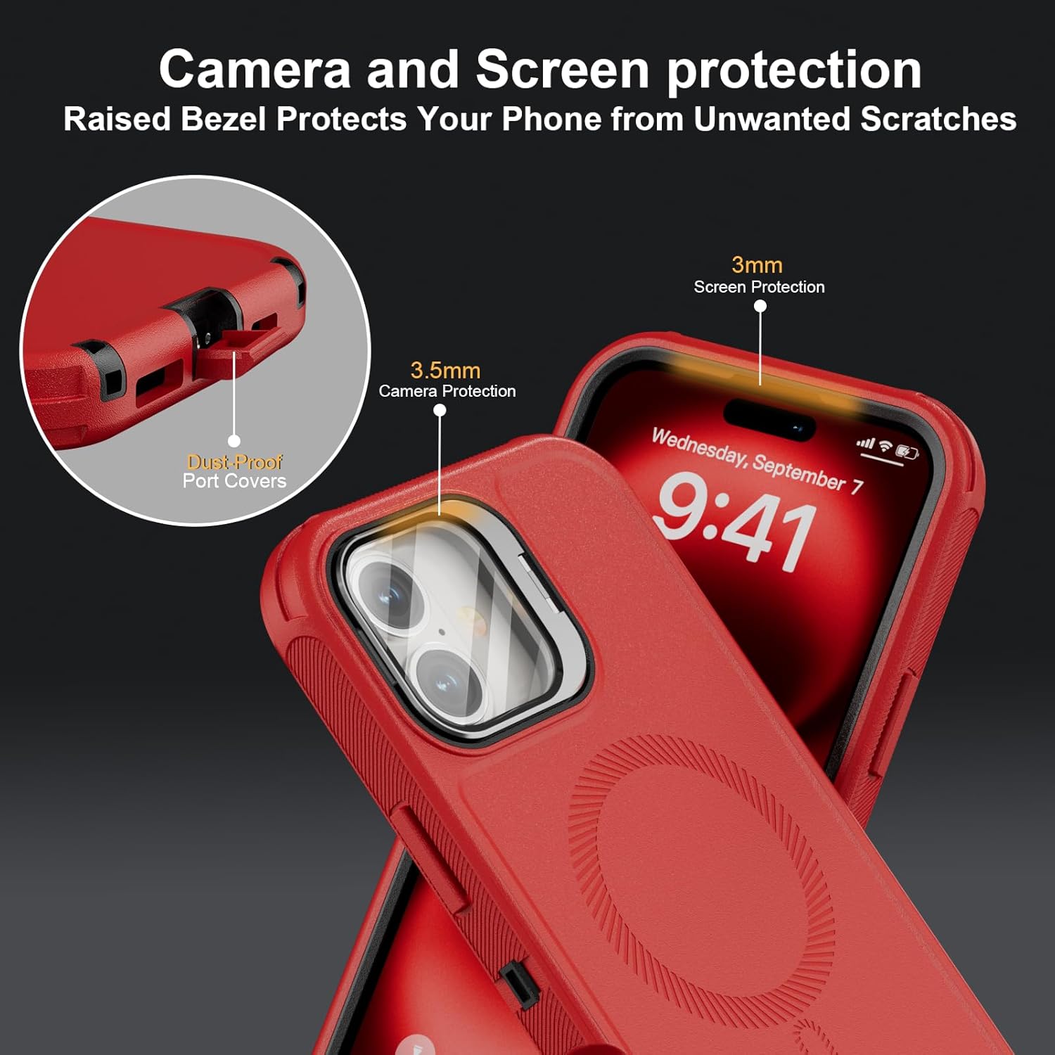 SURITCH 适用于 iPhone 16 Pro 手机壳,带滑动相机盖和可调节支架,兼容 MagSafe,防震防撞保护套,适用于 iPhone 16 Pro 6.3 英寸,黑色