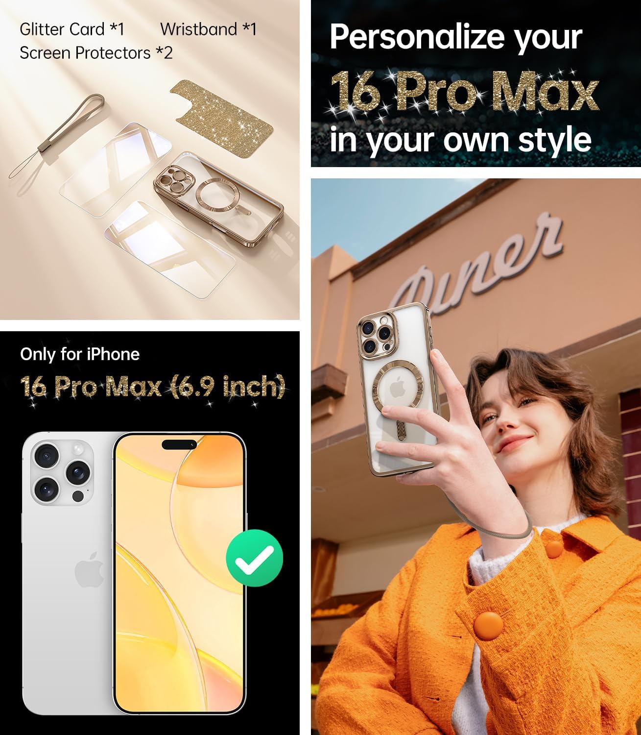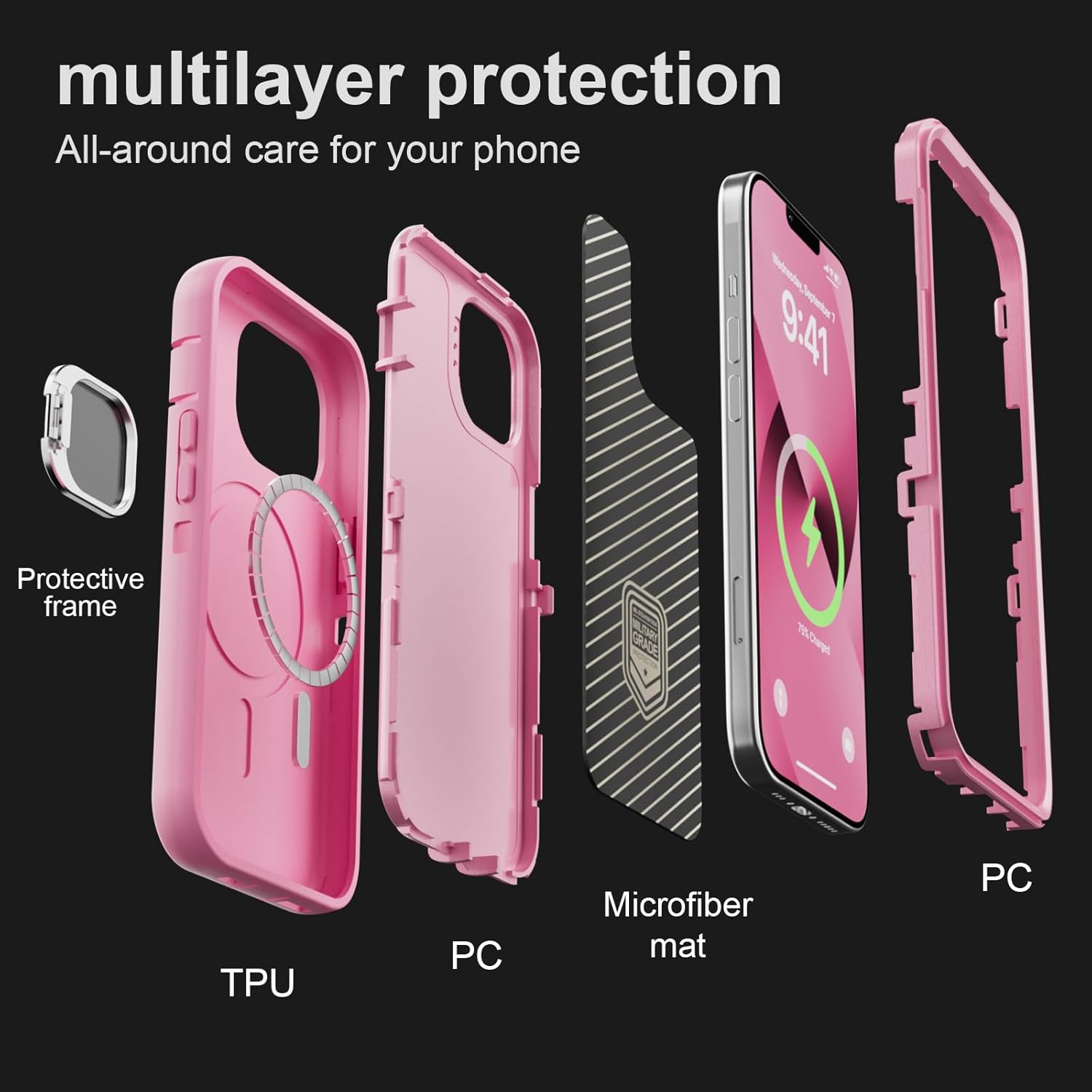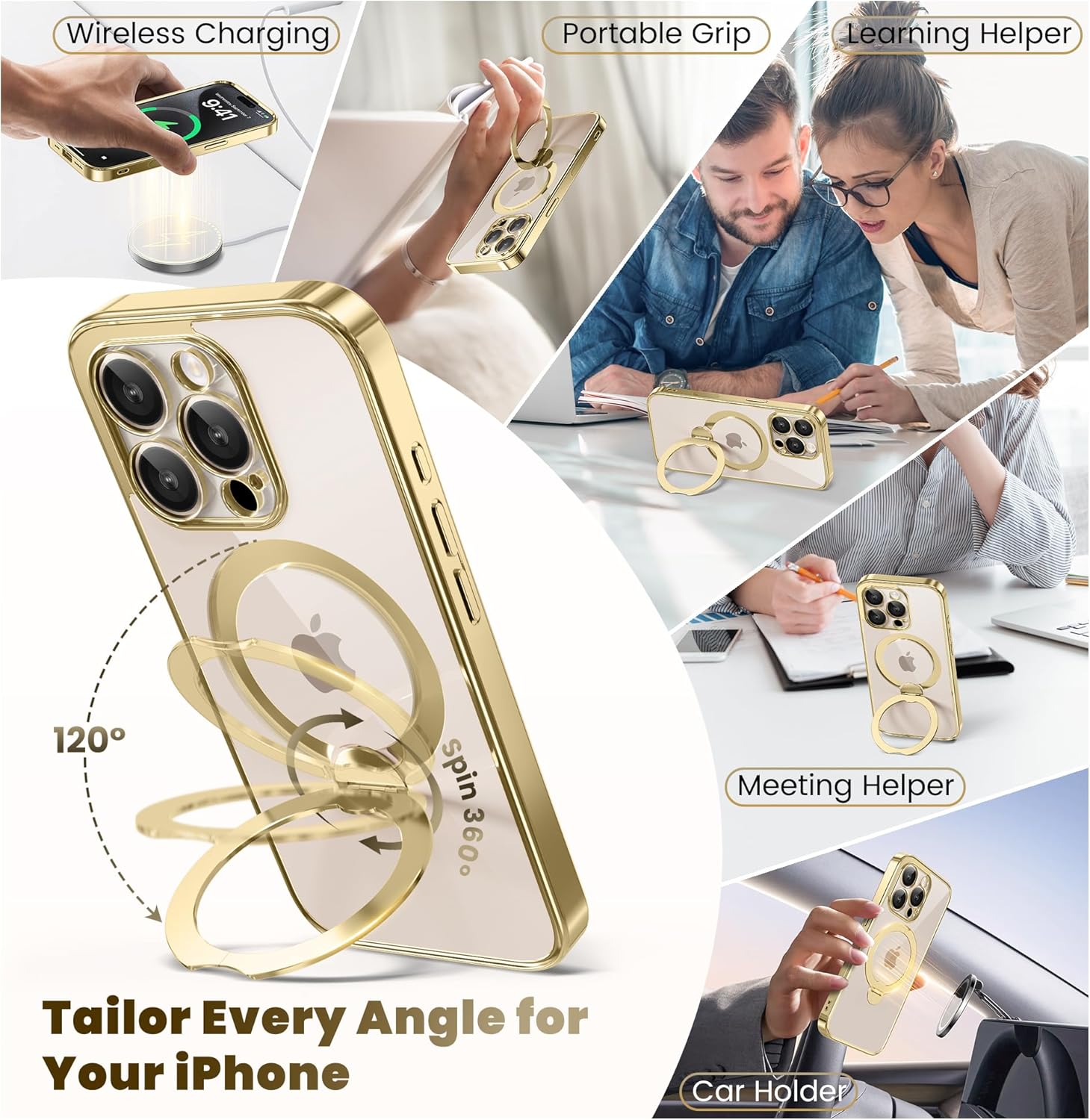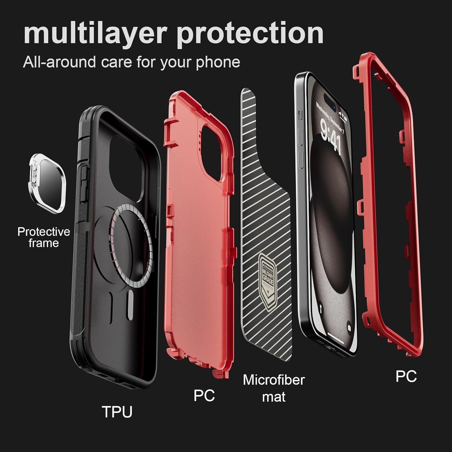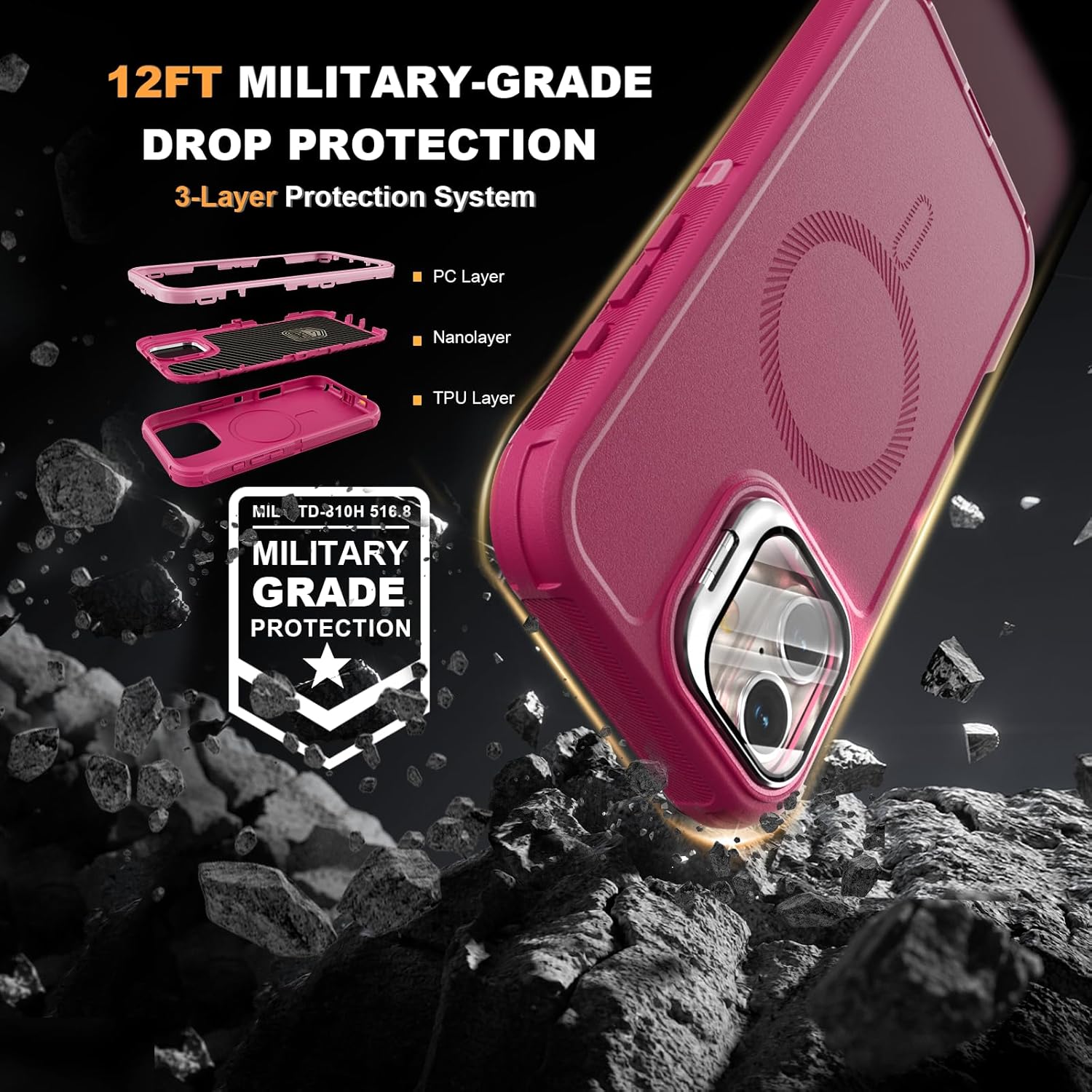 SURITCH 适用于 iPhone 16 Pro 手机壳,带滑动相机盖和可调节支架,兼容 MagSafe,防震防撞保护套,适用于 iPhone 16 Pro 6.3 英寸,黑色