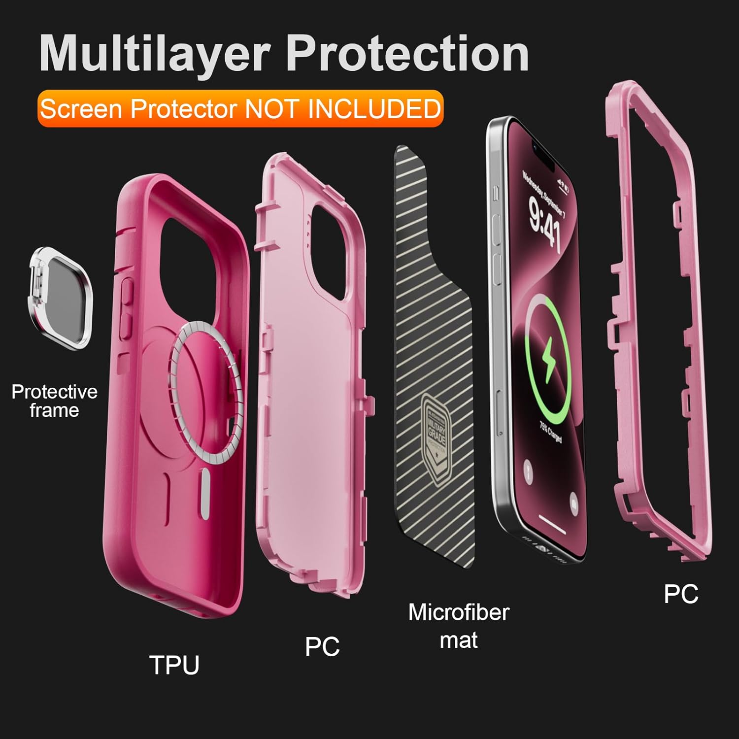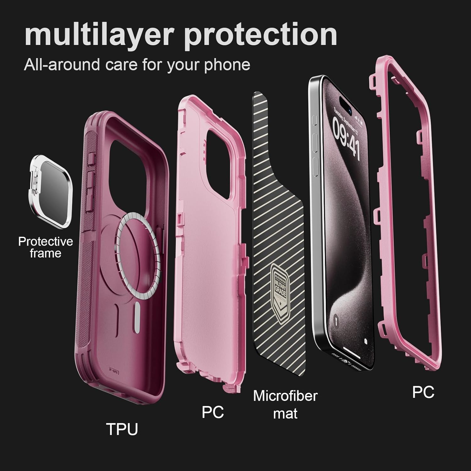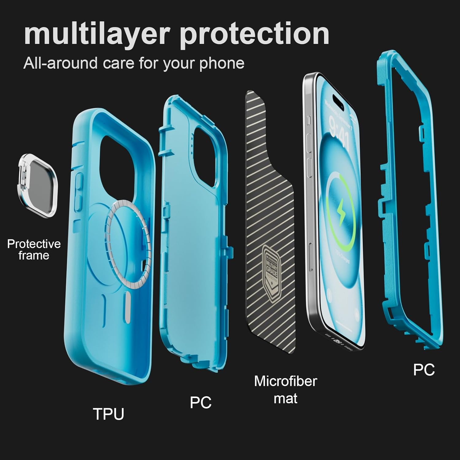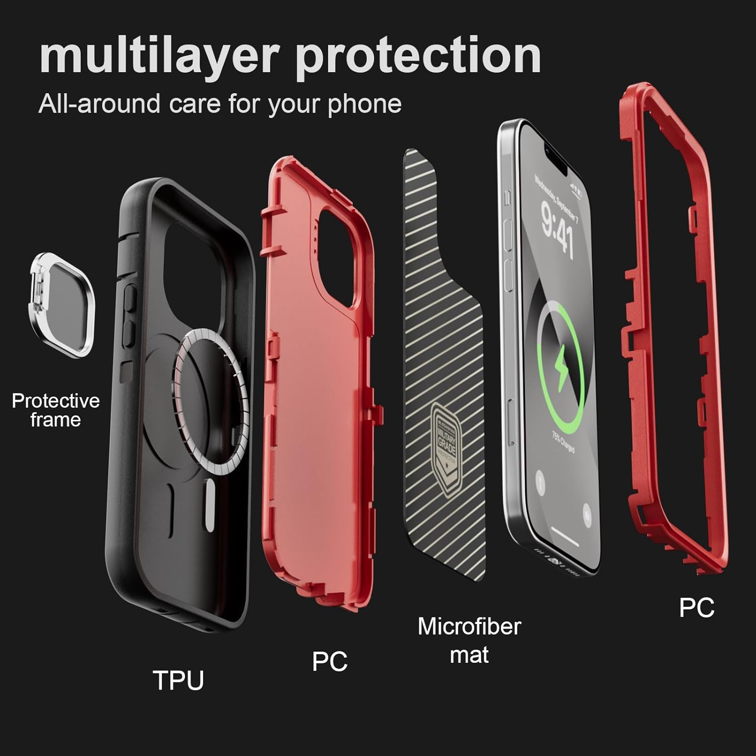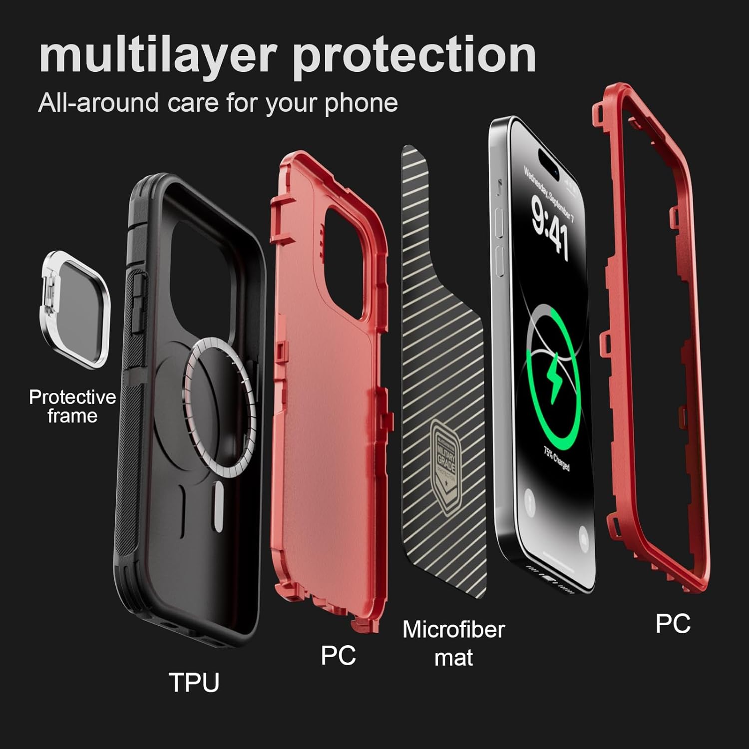 SURITCH 适用于 iPhone 16 Pro 手机壳,带滑动相机盖和可调节支架,兼容 MagSafe,防震防撞保护套,适用于 iPhone 16 Pro 6.3 英寸,黑色