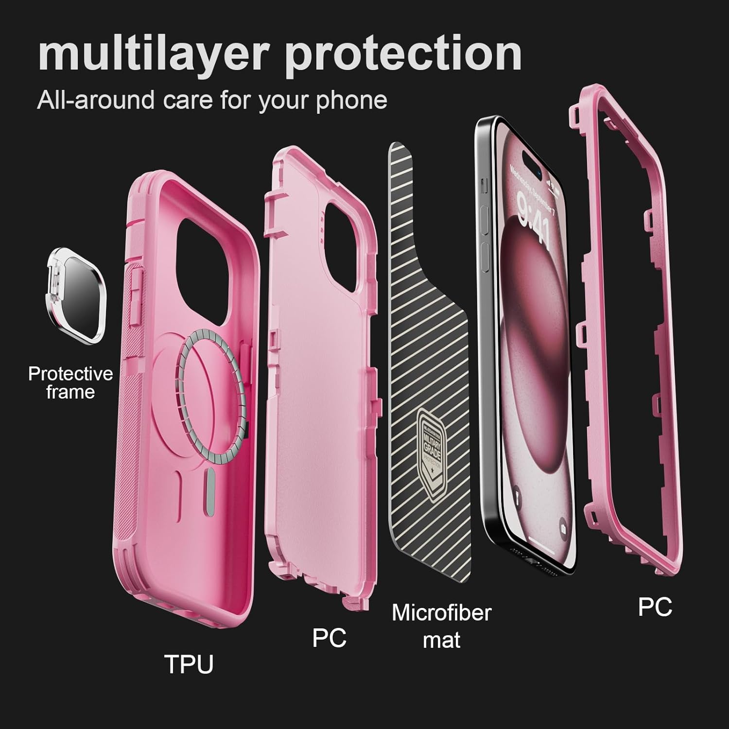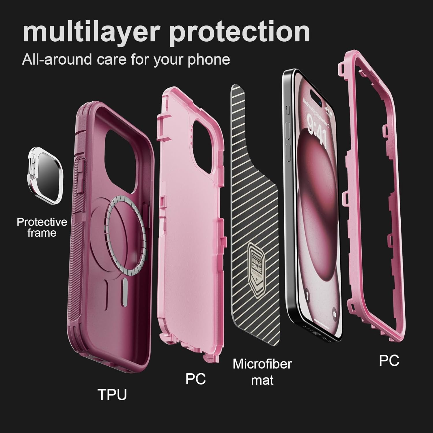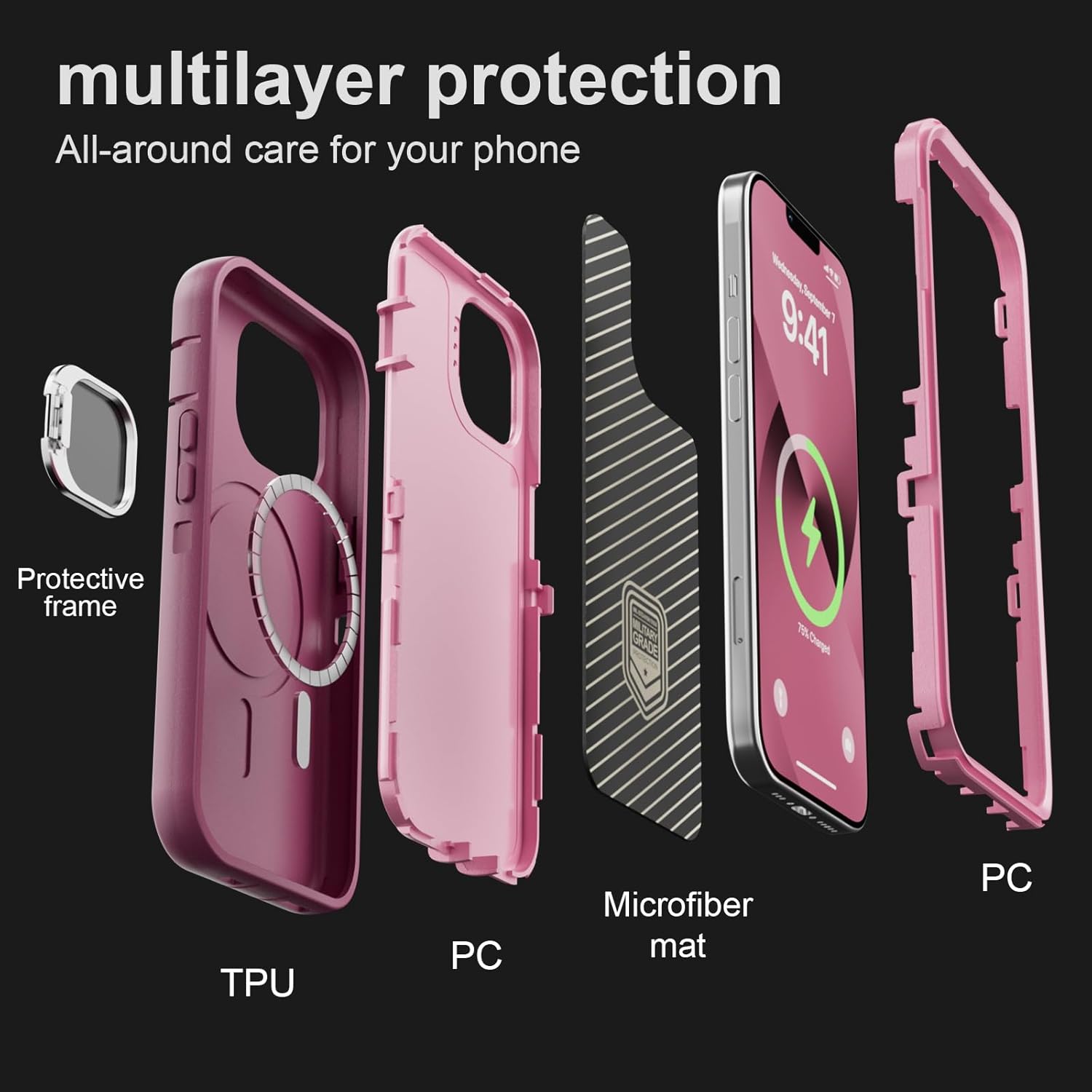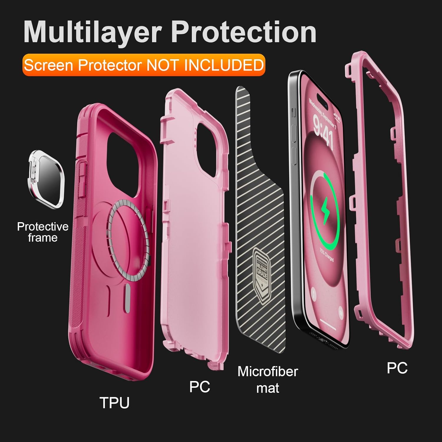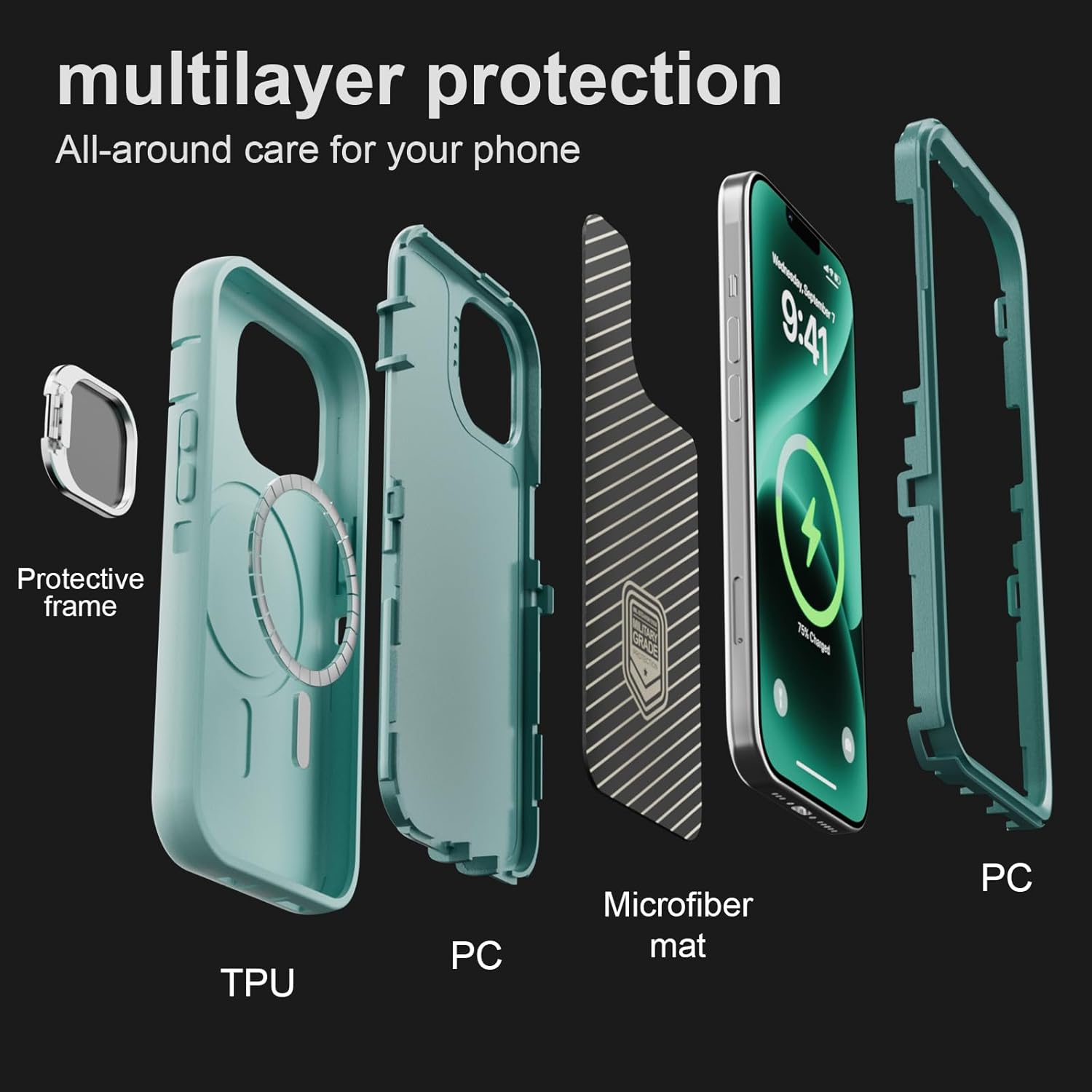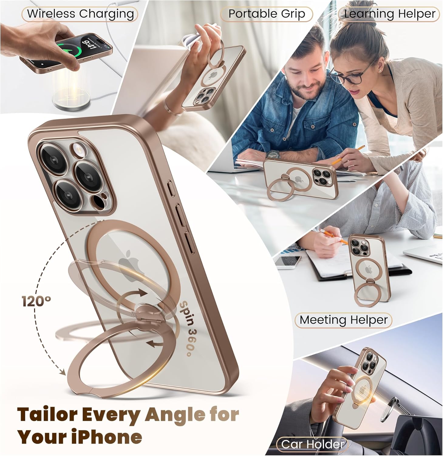SURITCH 适用于 iPhone 16 Pro 手机壳,带滑动相机盖和可调节支架,兼容 MagSafe,防震防撞保护套,适用于 iPhone 16 Pro 6.3 英寸,黑色