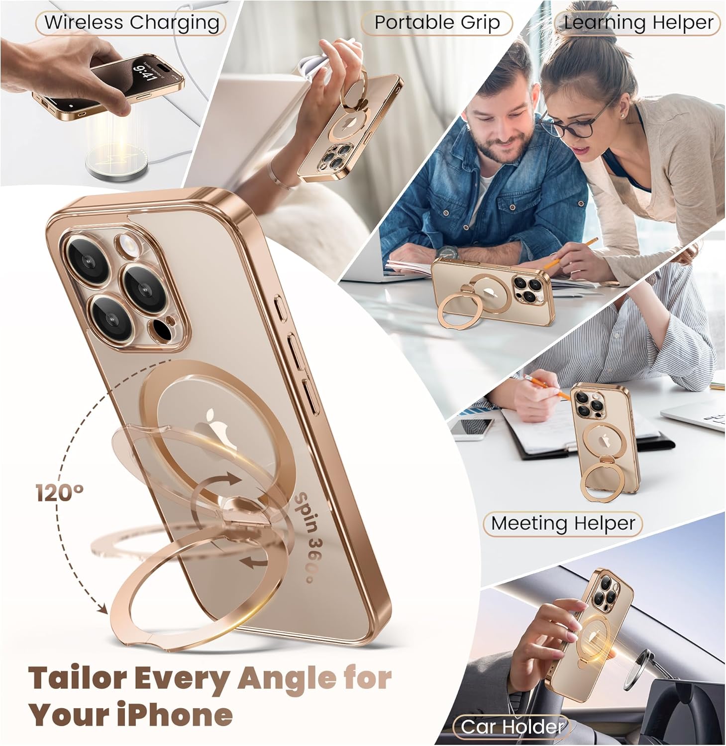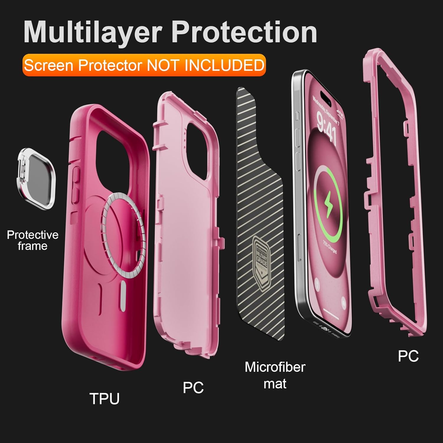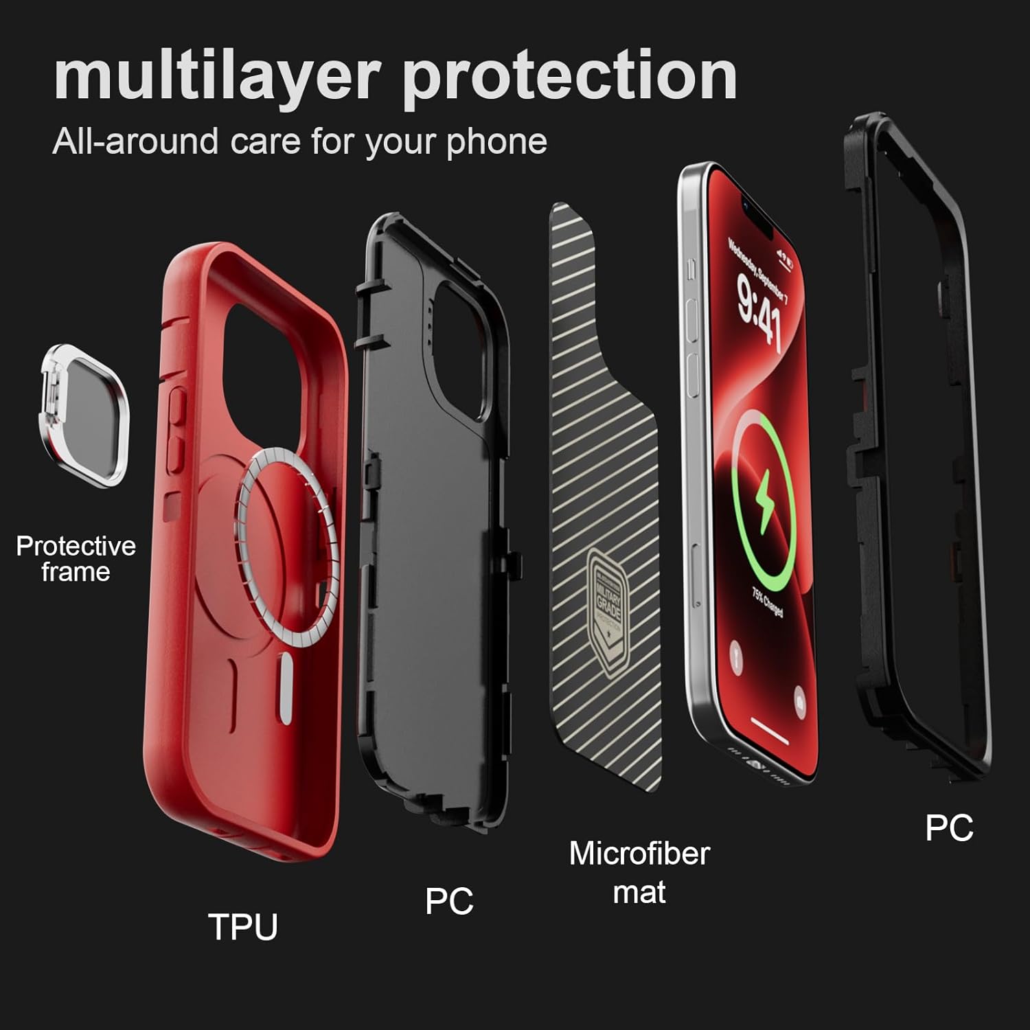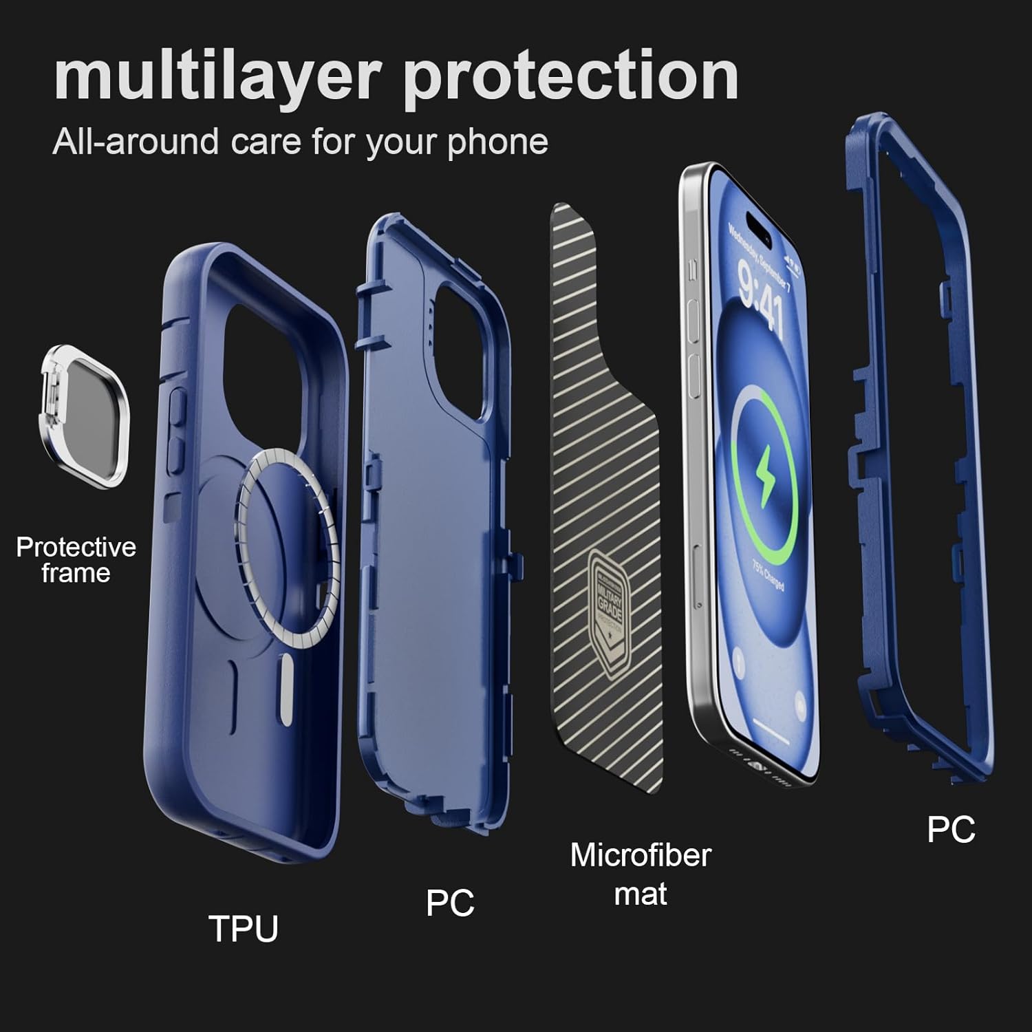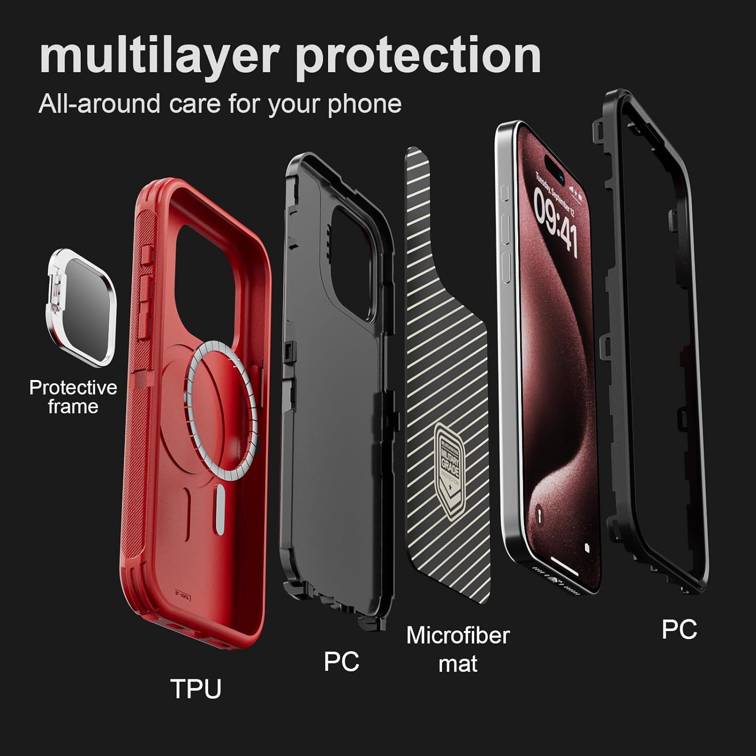 SURITCH 适用于 iPhone 16 Pro 手机壳,带滑动相机盖和可调节支架,兼容 MagSafe,防震防撞保护套,适用于 iPhone 16 Pro 6.3 英寸,黑色