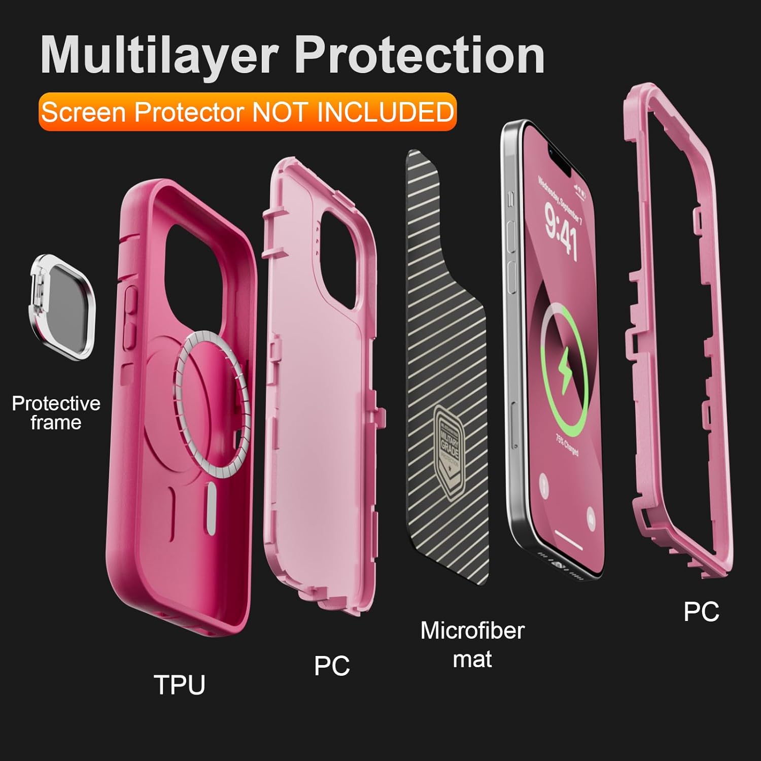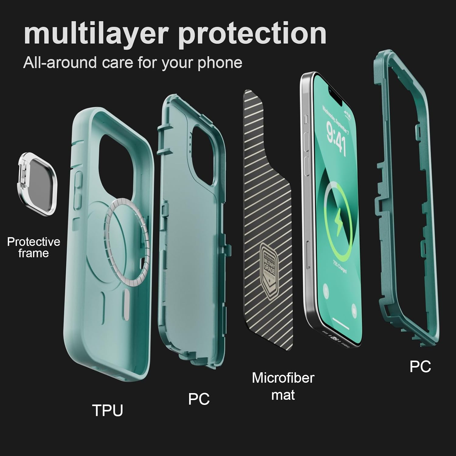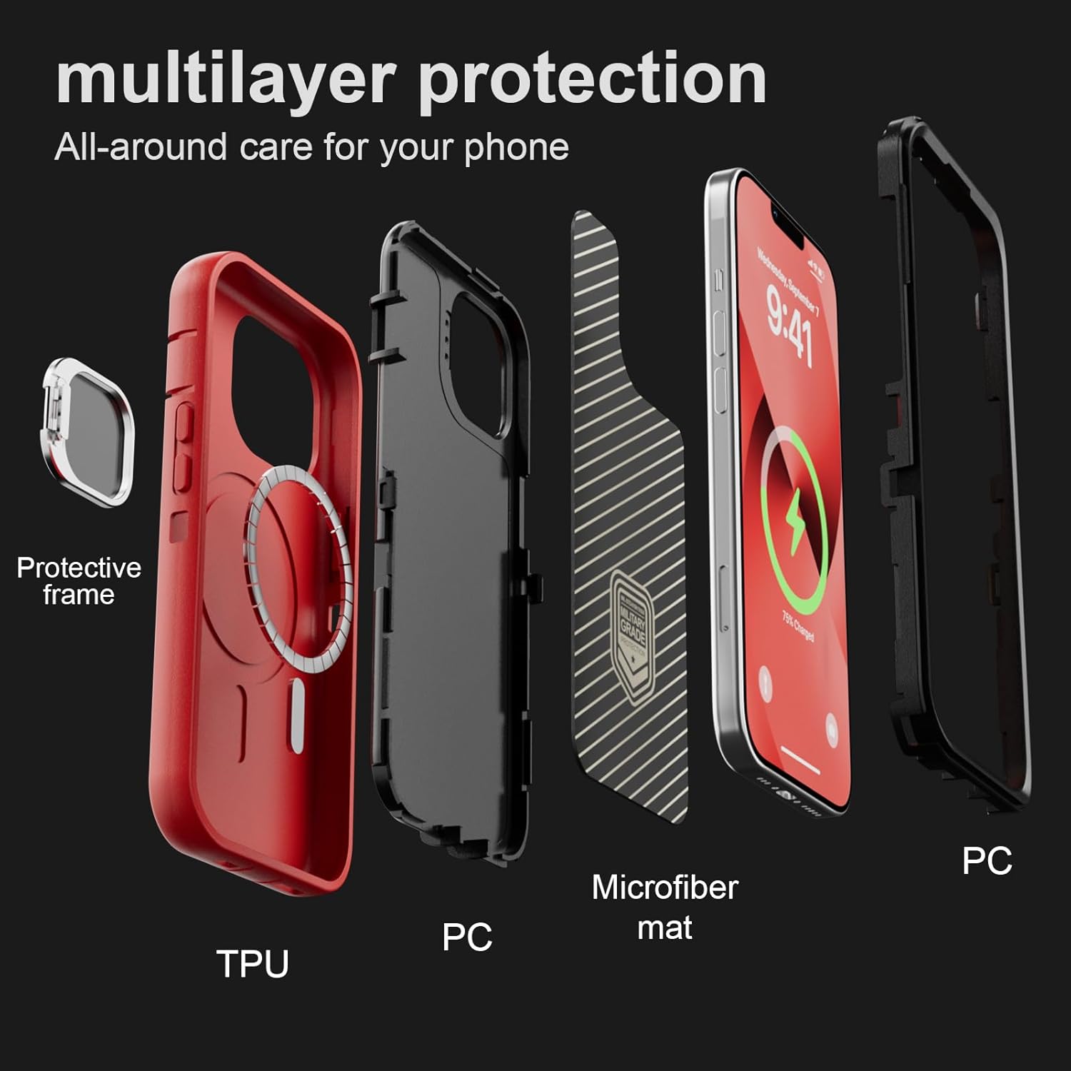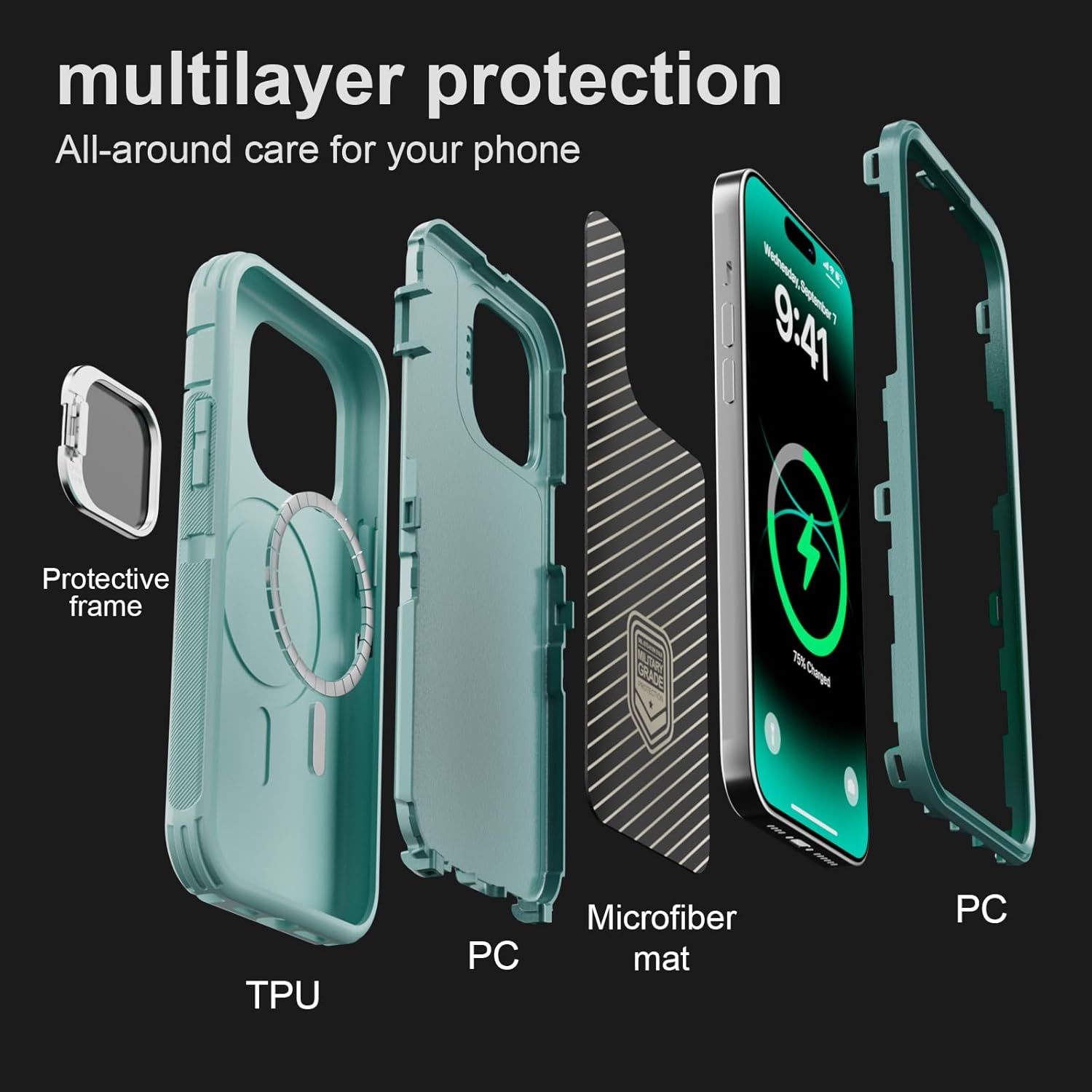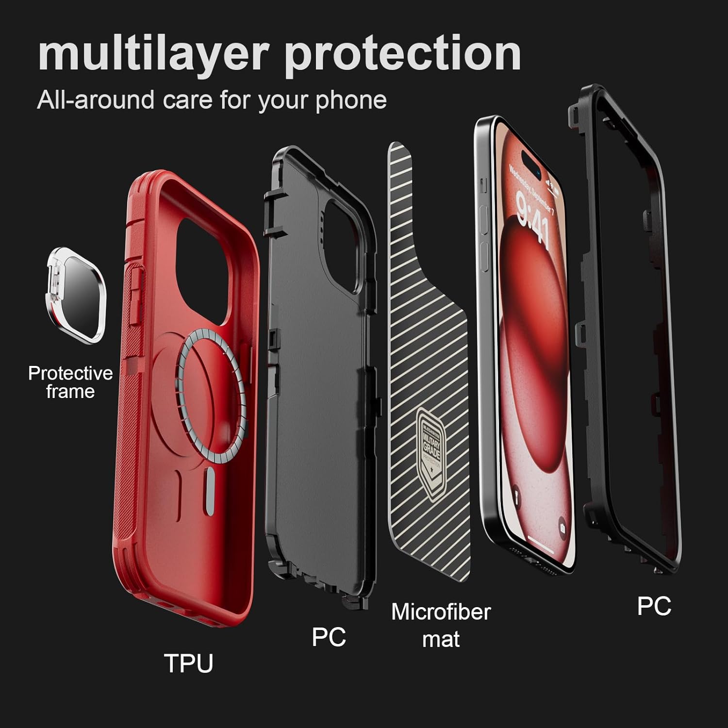 SURITCH 适用于 iPhone 16 Pro 手机壳,带滑动相机盖和可调节支架,兼容 MagSafe,防震防撞保护套,适用于 iPhone 16 Pro 6.3 英寸,黑色