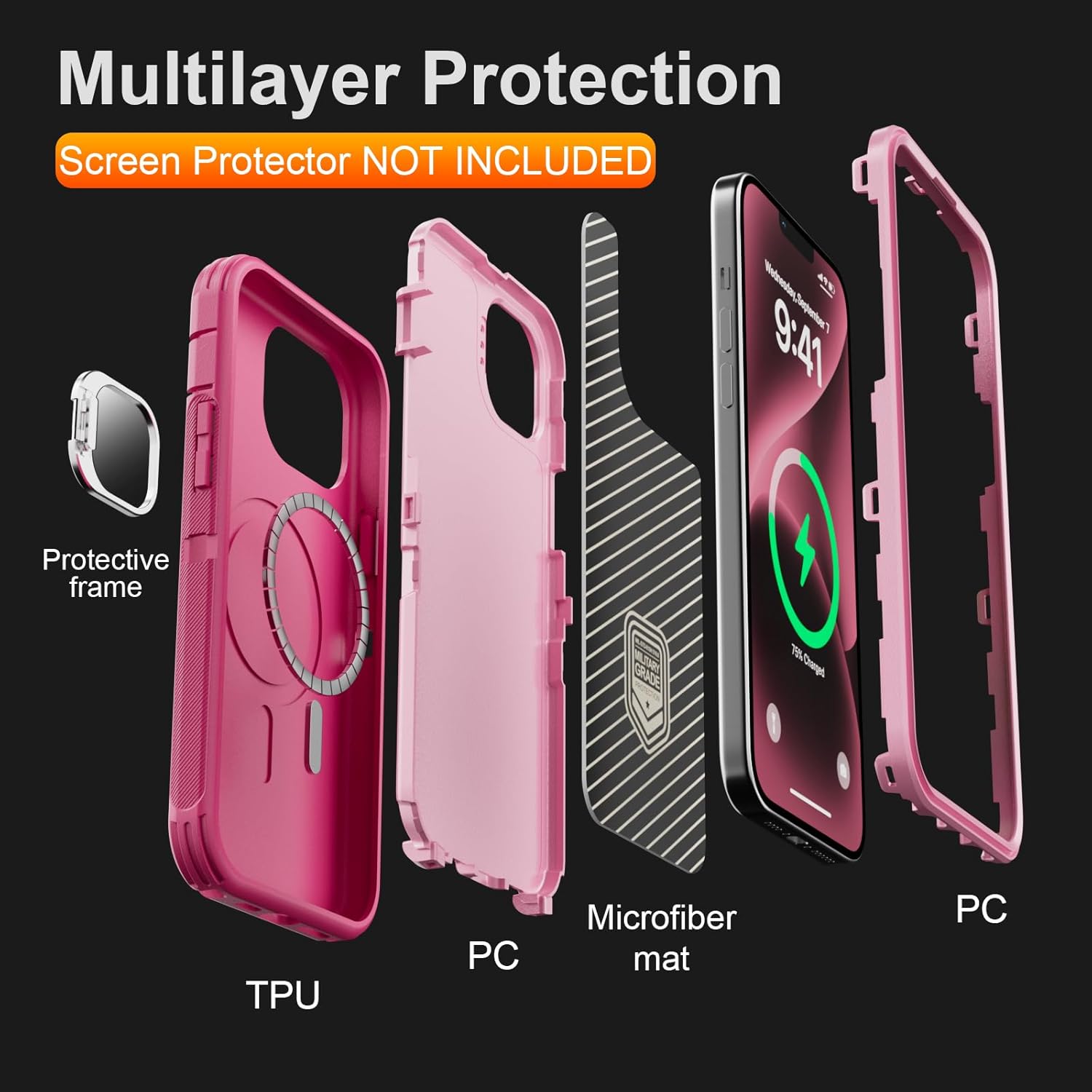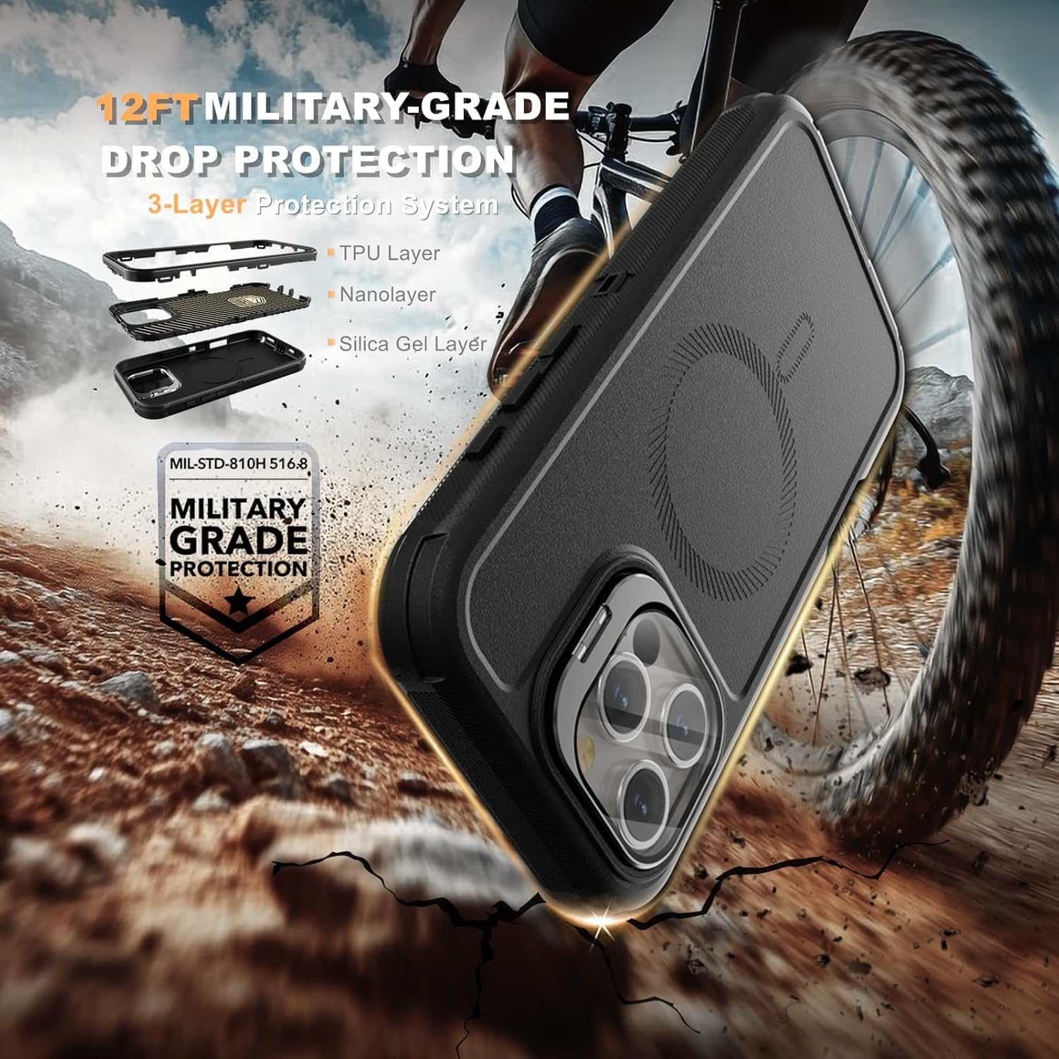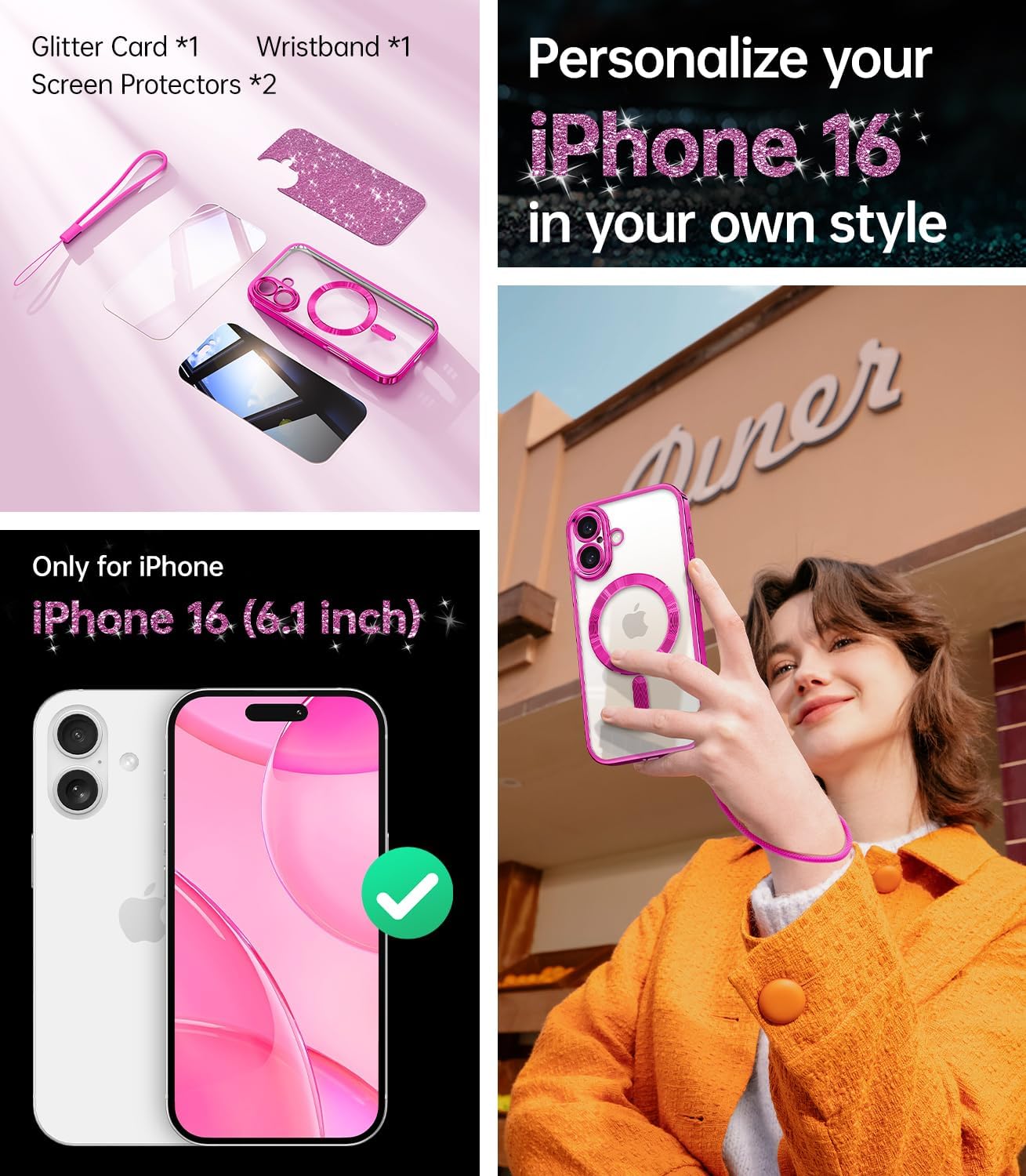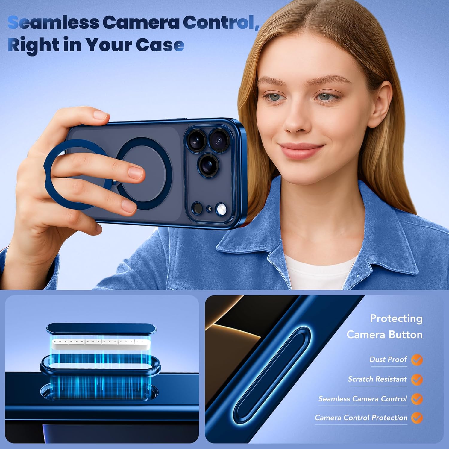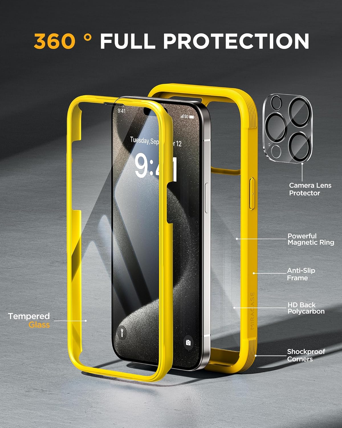 SURITCH 适用于 iPhone 16 Pro 手机壳,带滑动相机盖和可调节支架,兼容 MagSafe,防震防撞保护套,适用于 iPhone 16 Pro 6.3 英寸,黑色