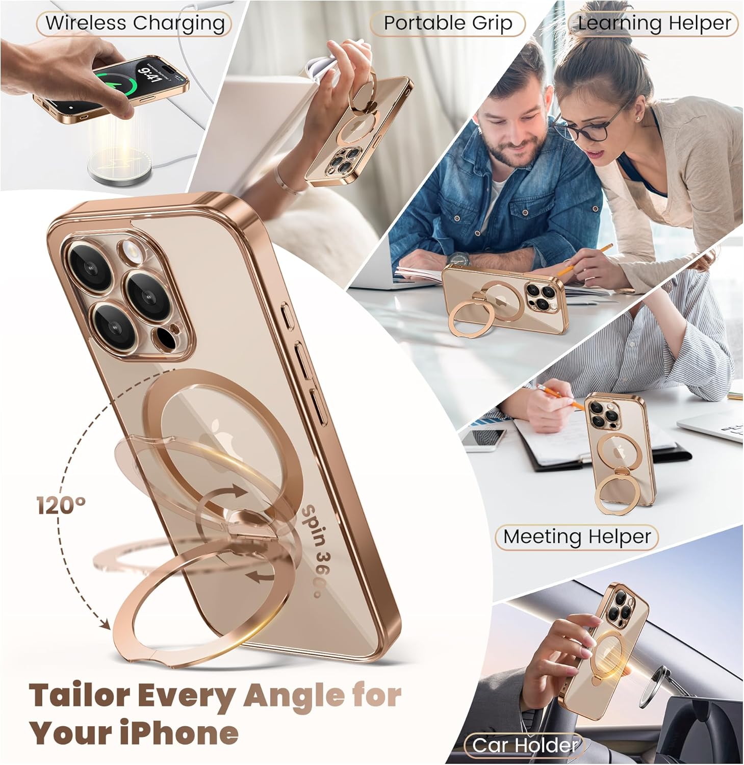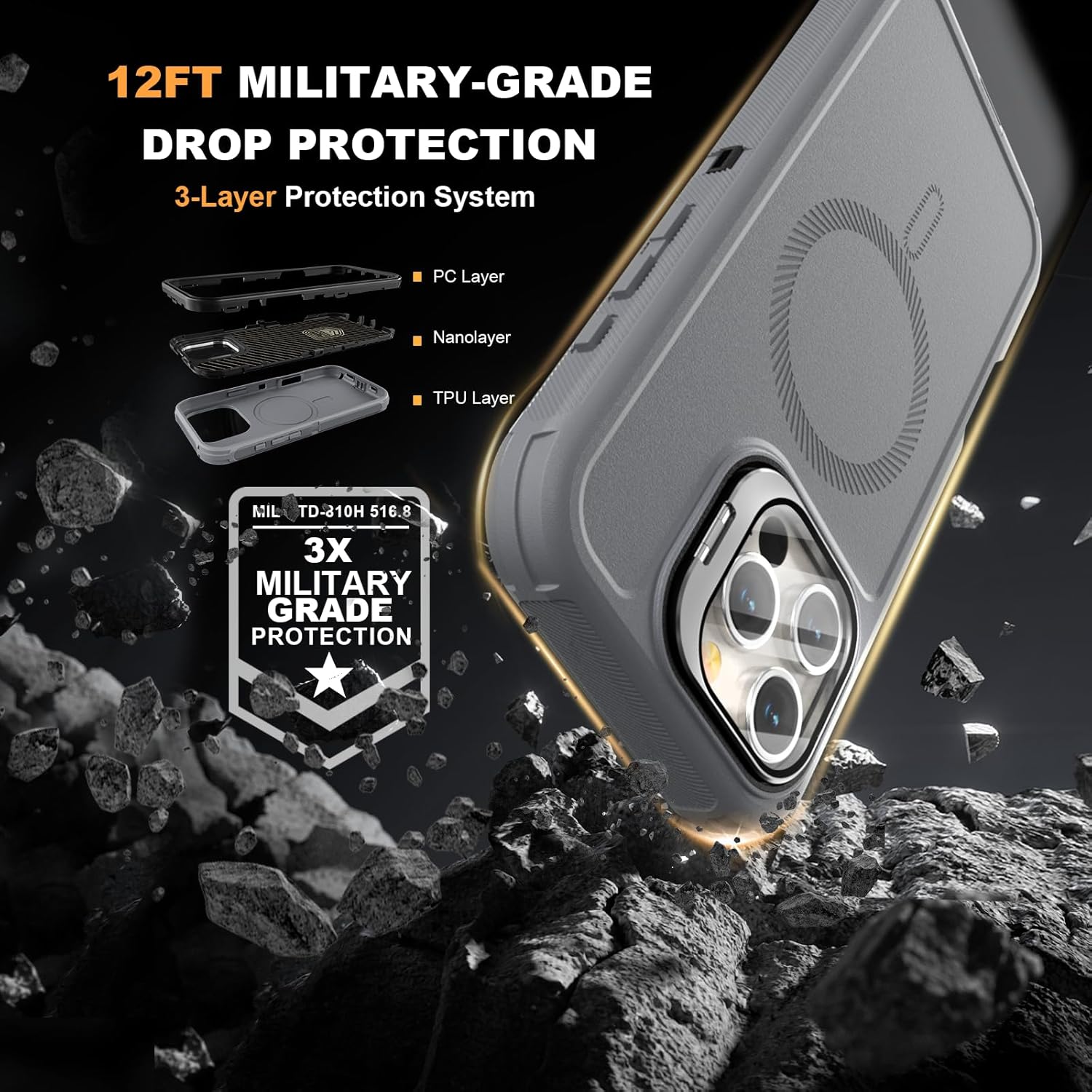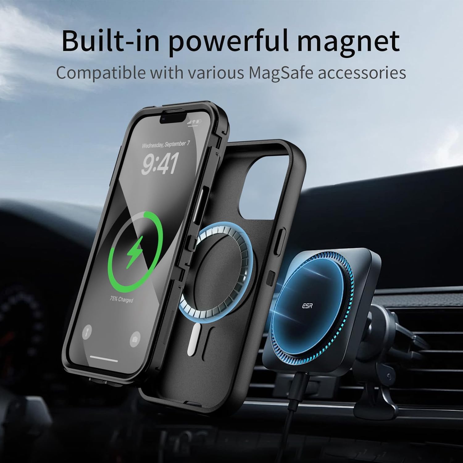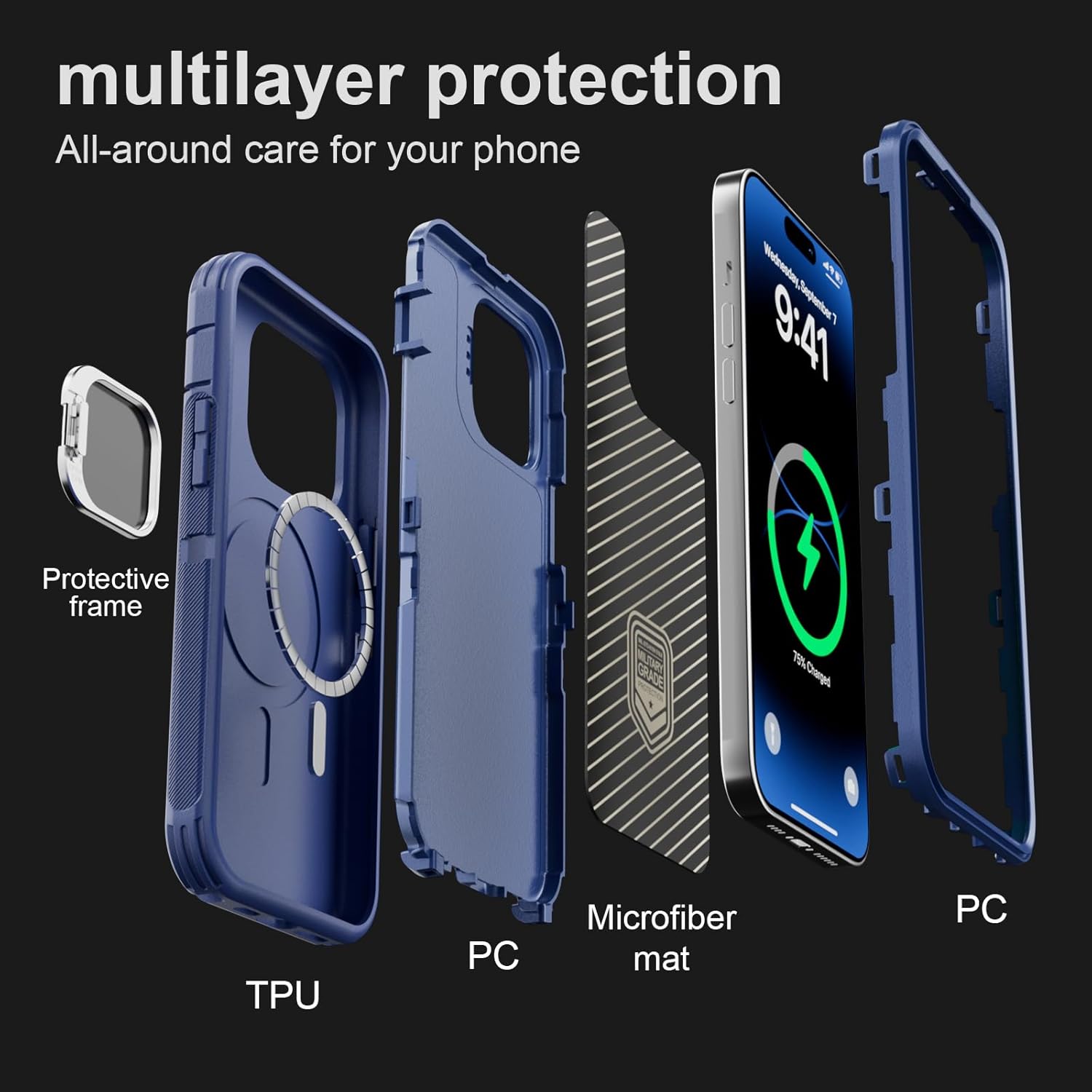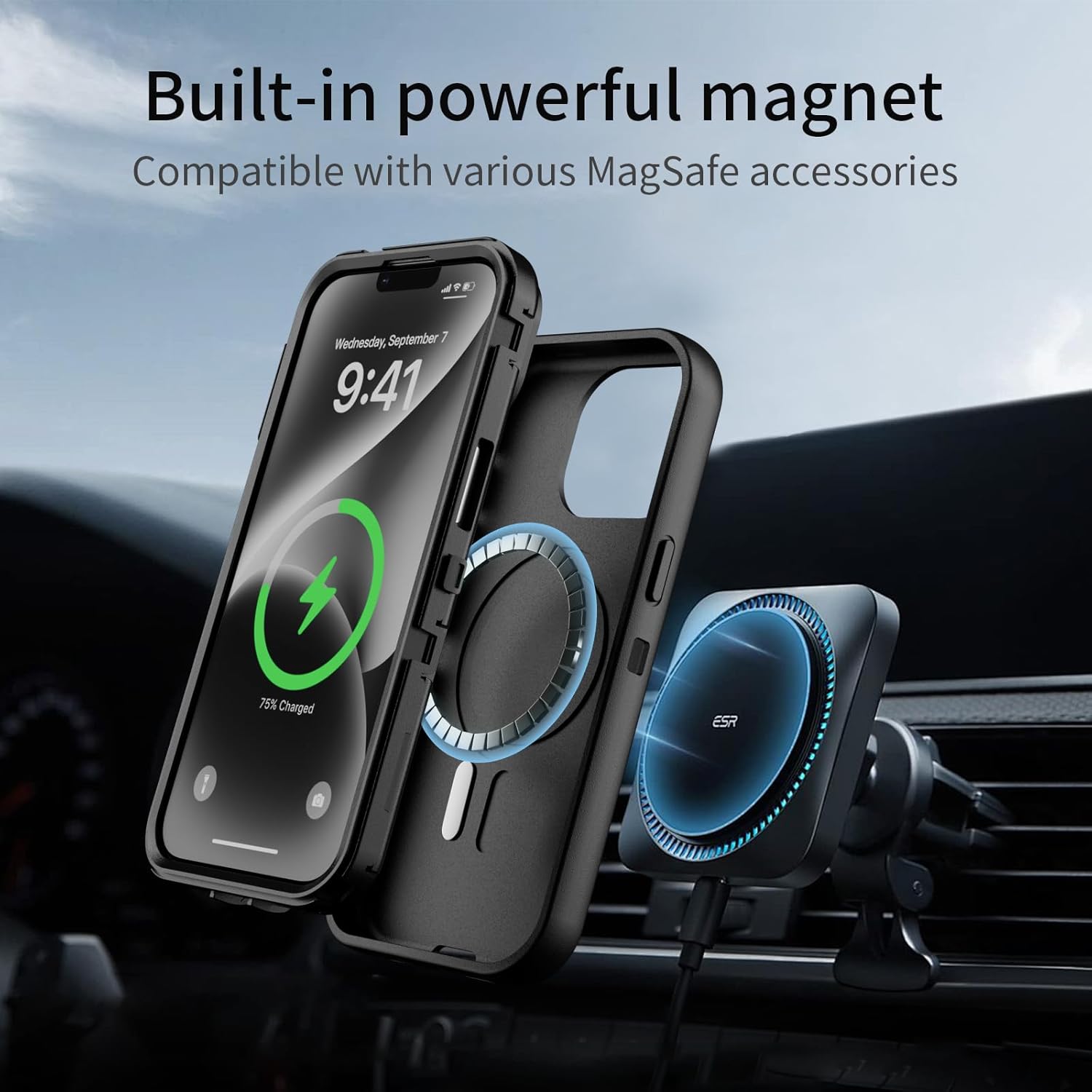 SURITCH 适用于 iPhone 16 Pro 手机壳,带滑动相机盖和可调节支架,兼容 MagSafe,防震防撞保护套,适用于 iPhone 16 Pro 6.3 英寸,黑色