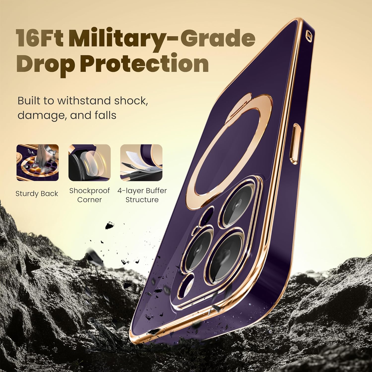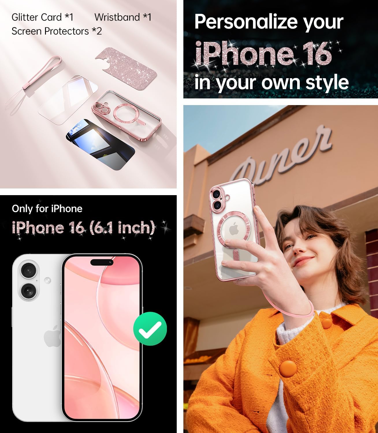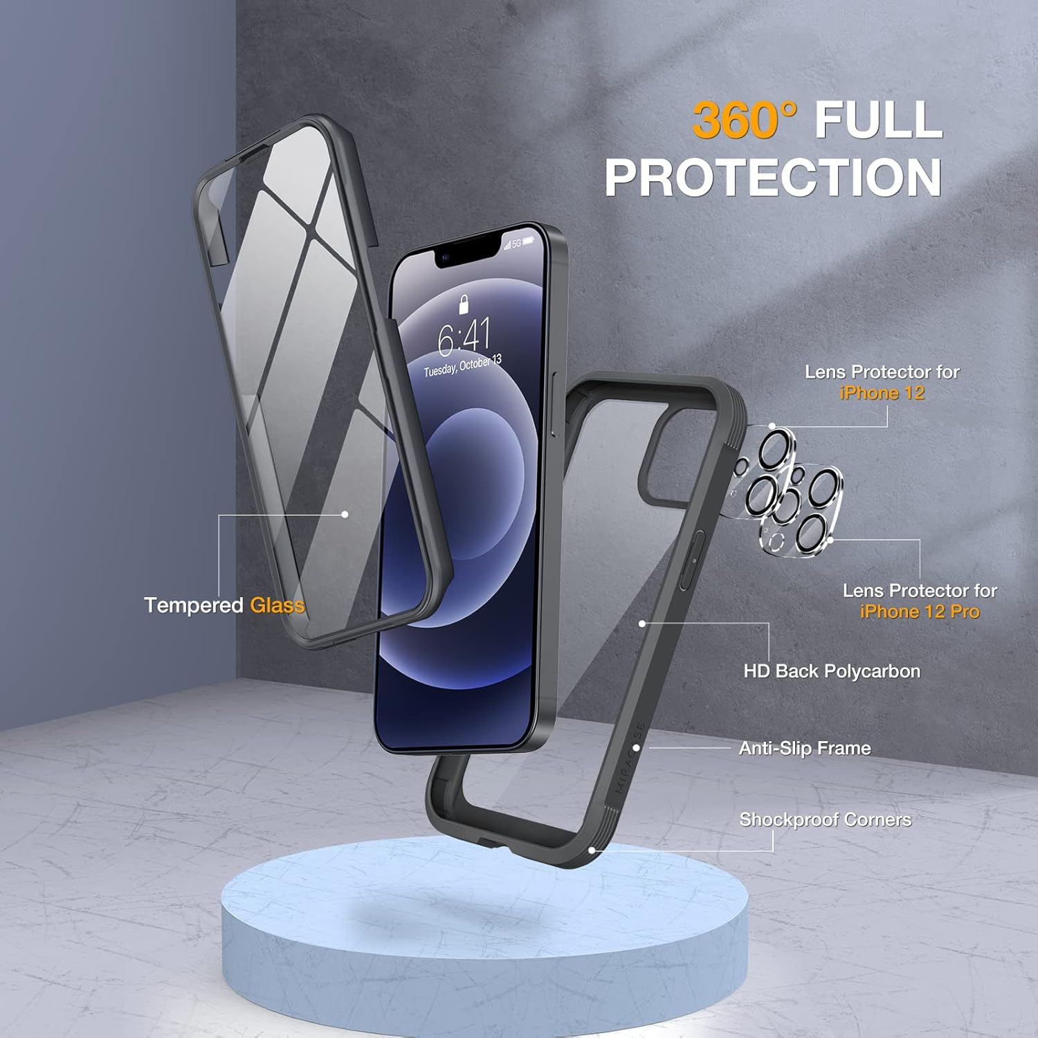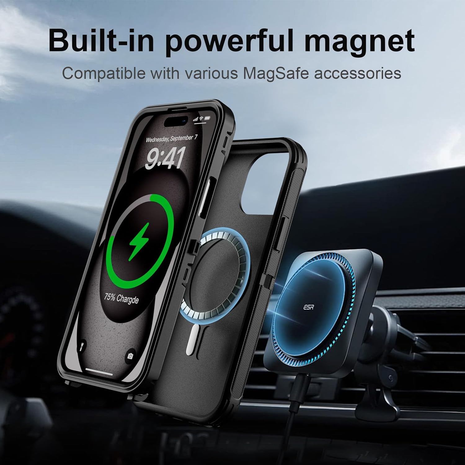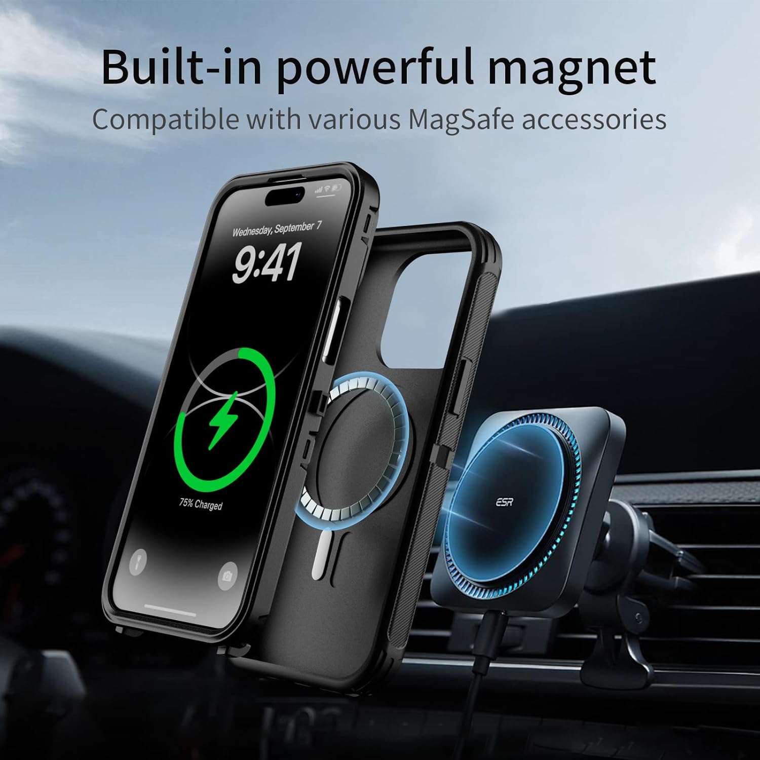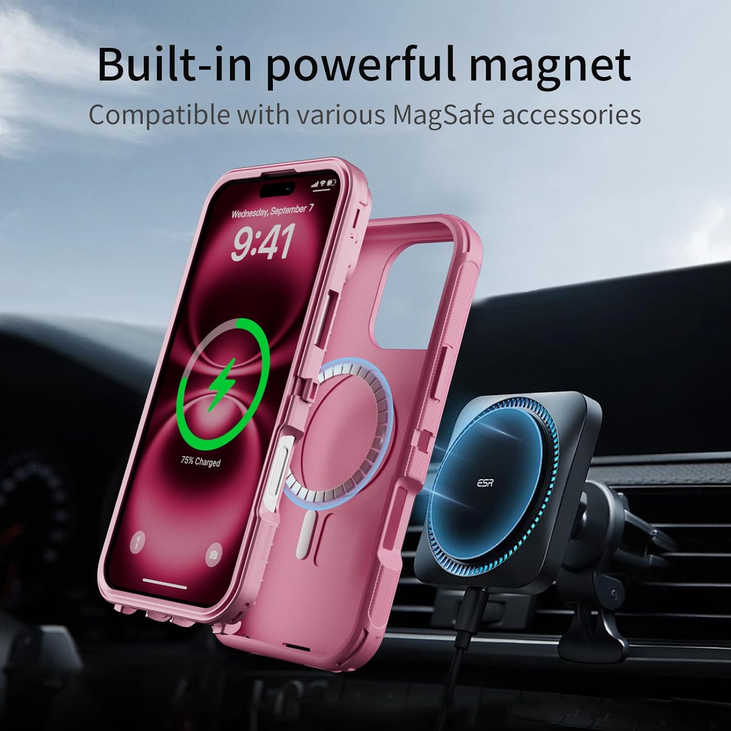 SURITCH 适用于 iPhone 16 Pro 手机壳,带滑动相机盖和可调节支架,兼容 MagSafe,防震防撞保护套,适用于 iPhone 16 Pro 6.3 英寸,黑色