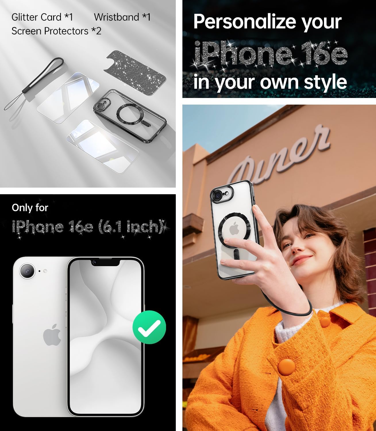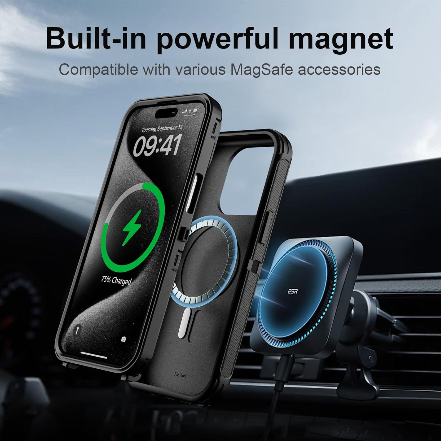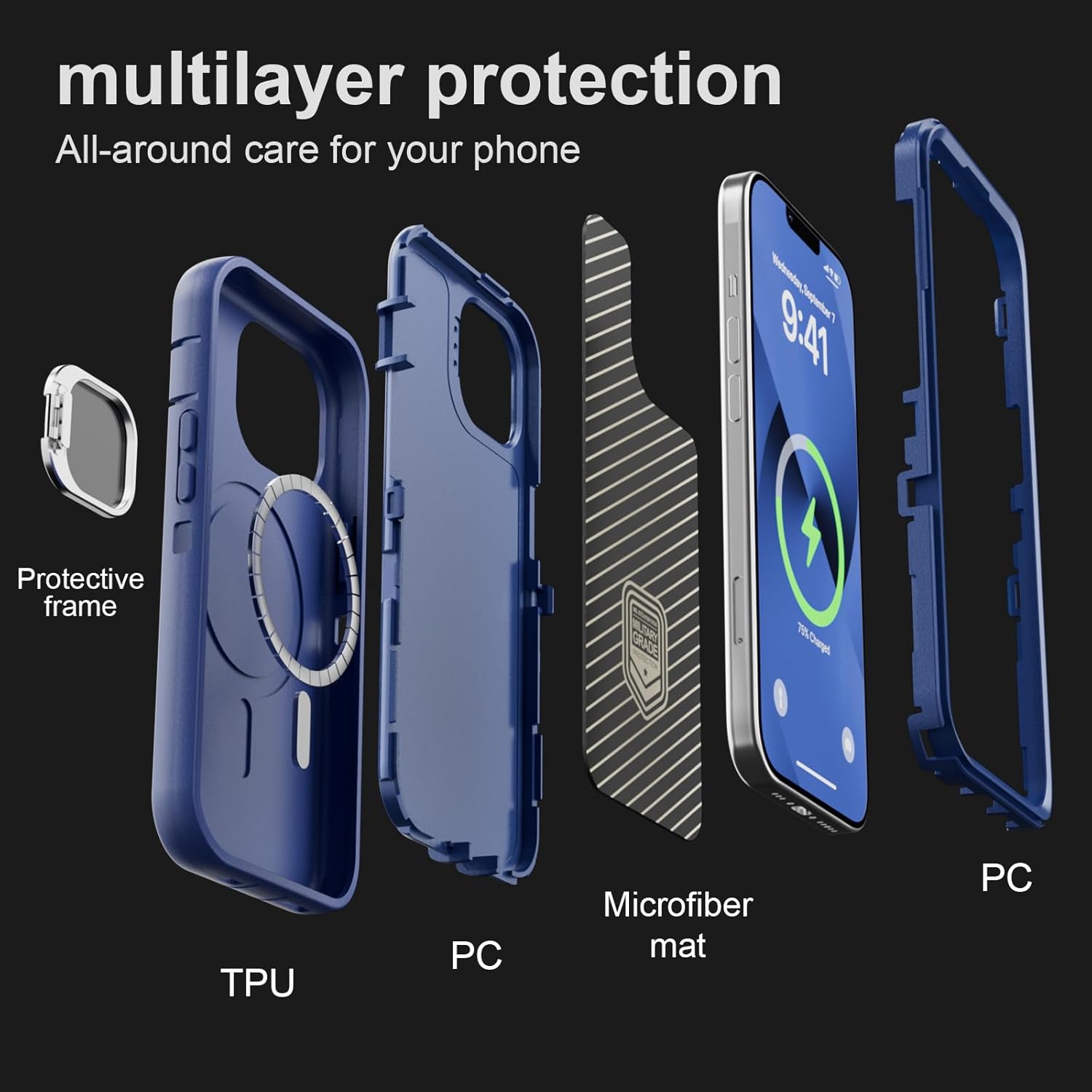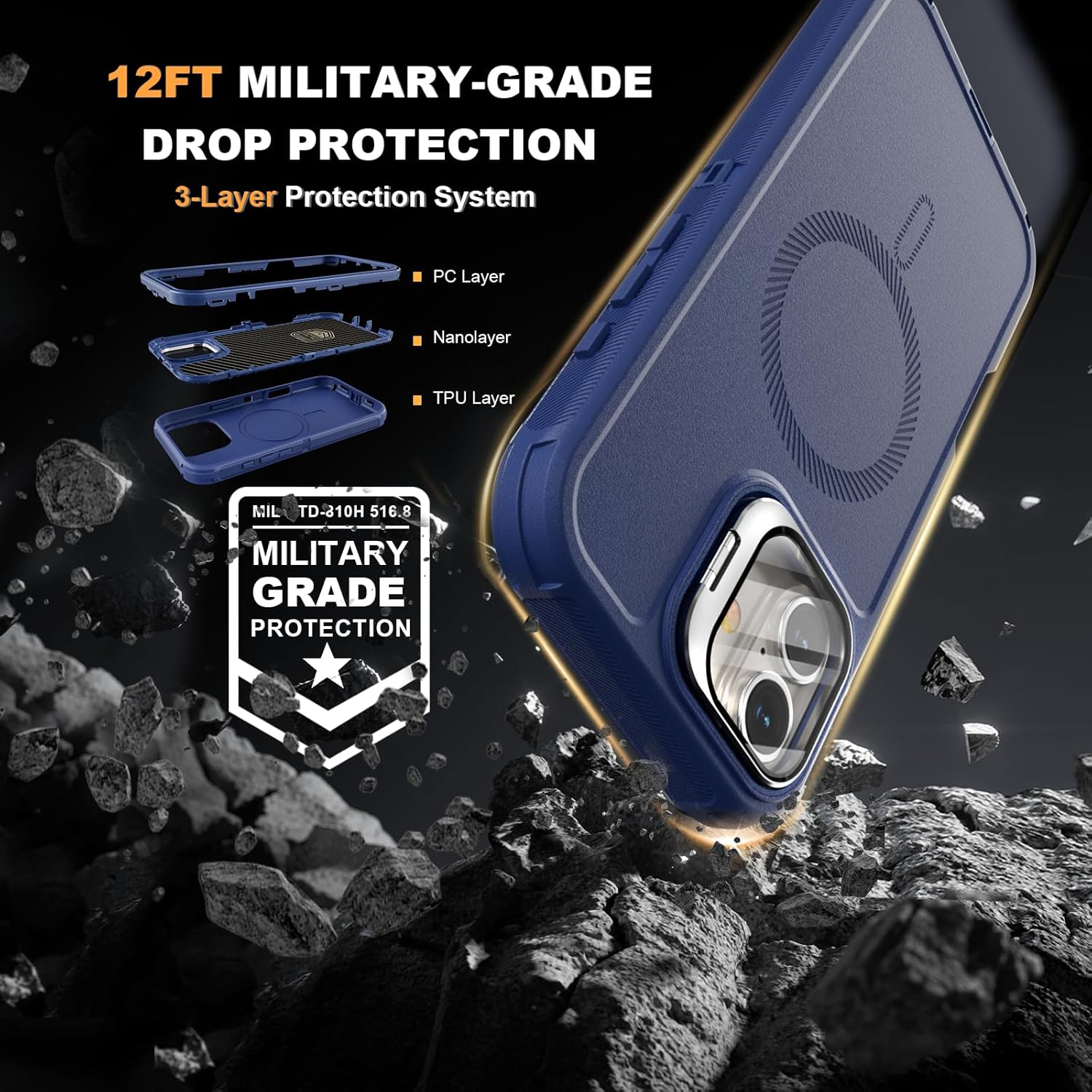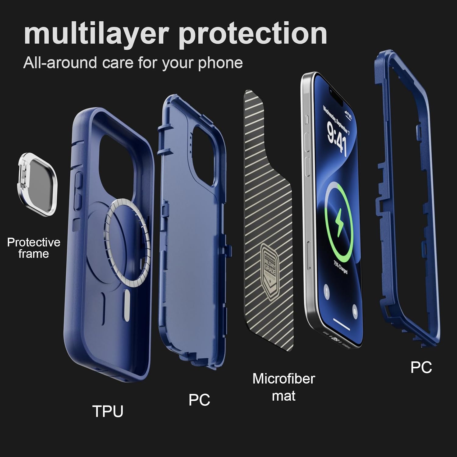 SURITCH 适用于 iPhone 16 Pro 手机壳,带滑动相机盖和可调节支架,兼容 MagSafe,防震防撞保护套,适用于 iPhone 16 Pro 6.3 英寸,黑色