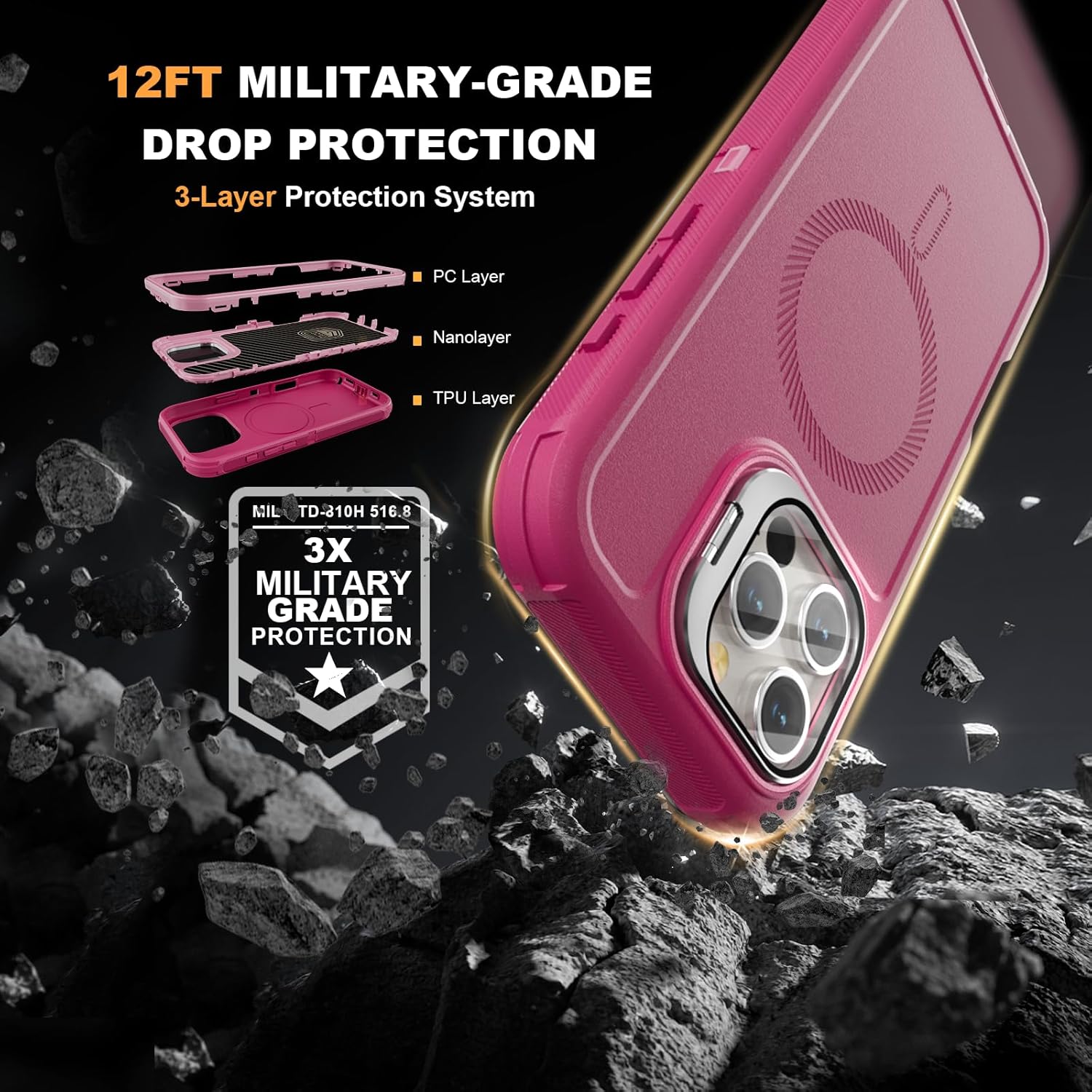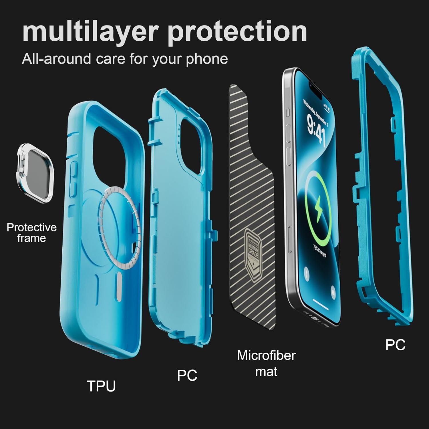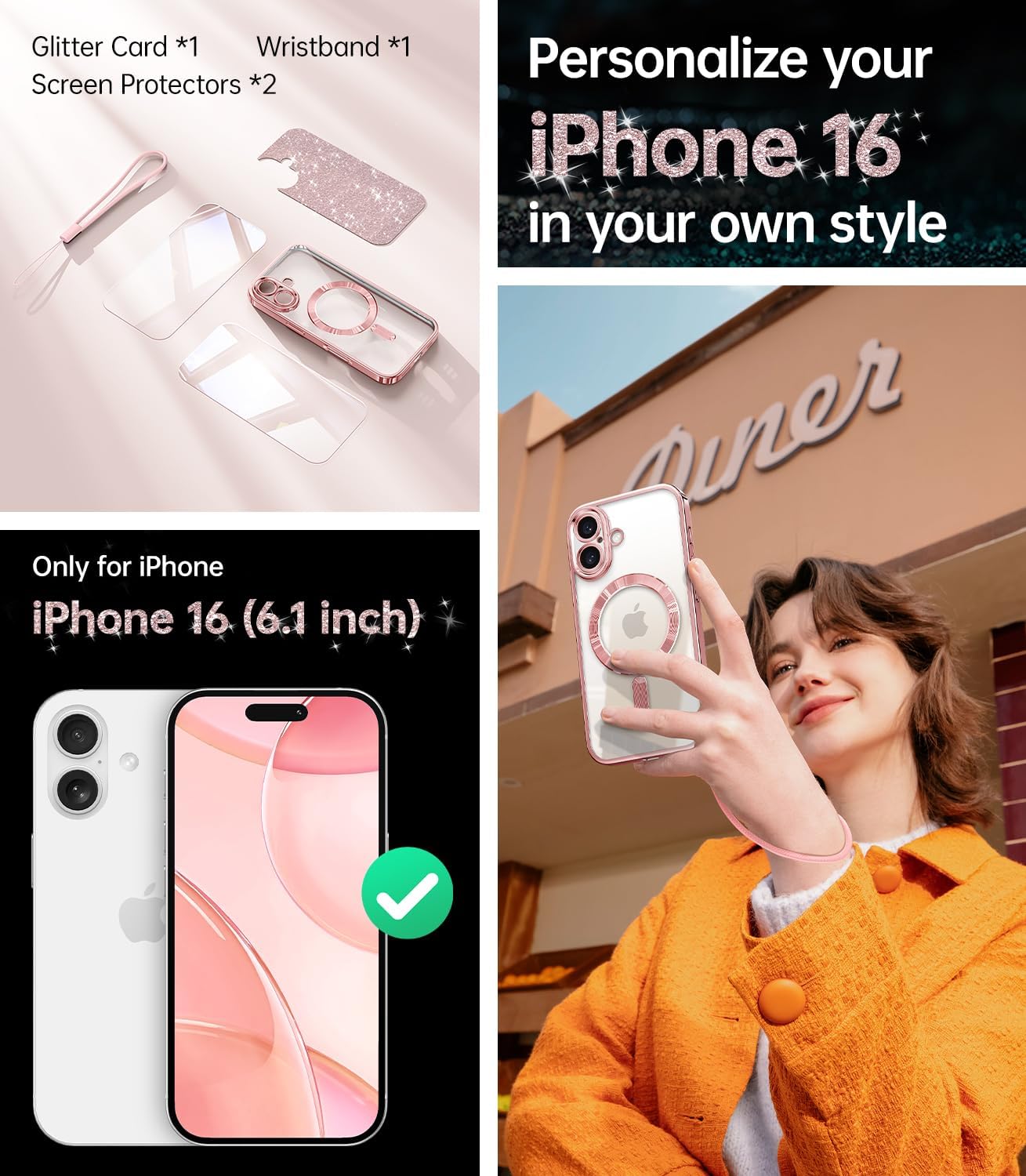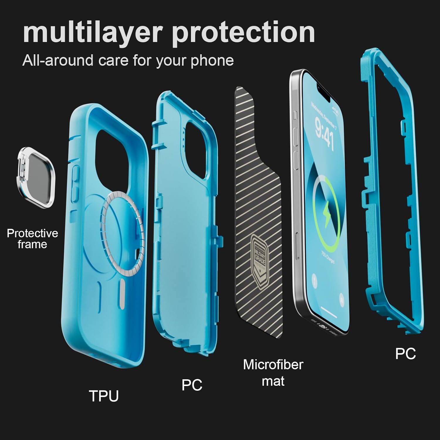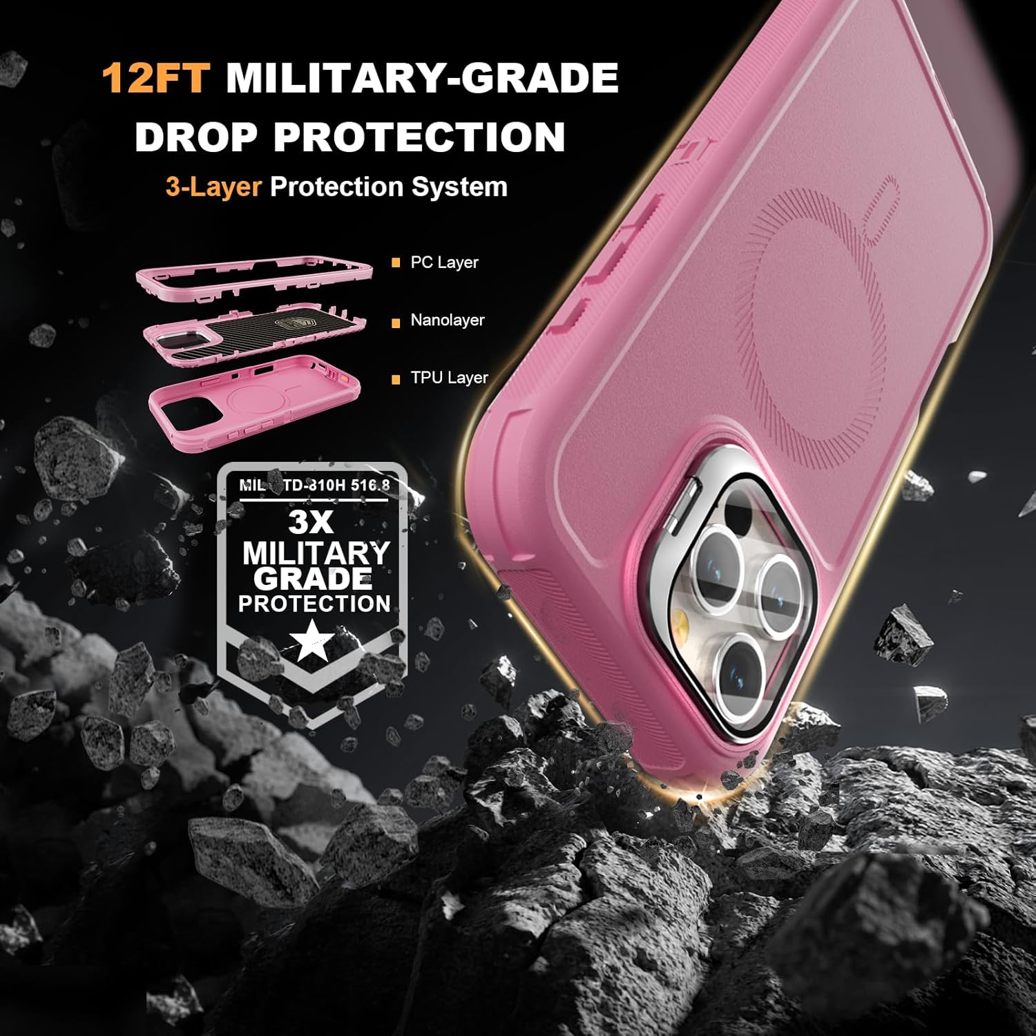 SURITCH 适用于 iPhone 16 Pro 手机壳,带滑动相机盖和可调节支架,兼容 MagSafe,防震防撞保护套,适用于 iPhone 16 Pro 6.3 英寸,黑色