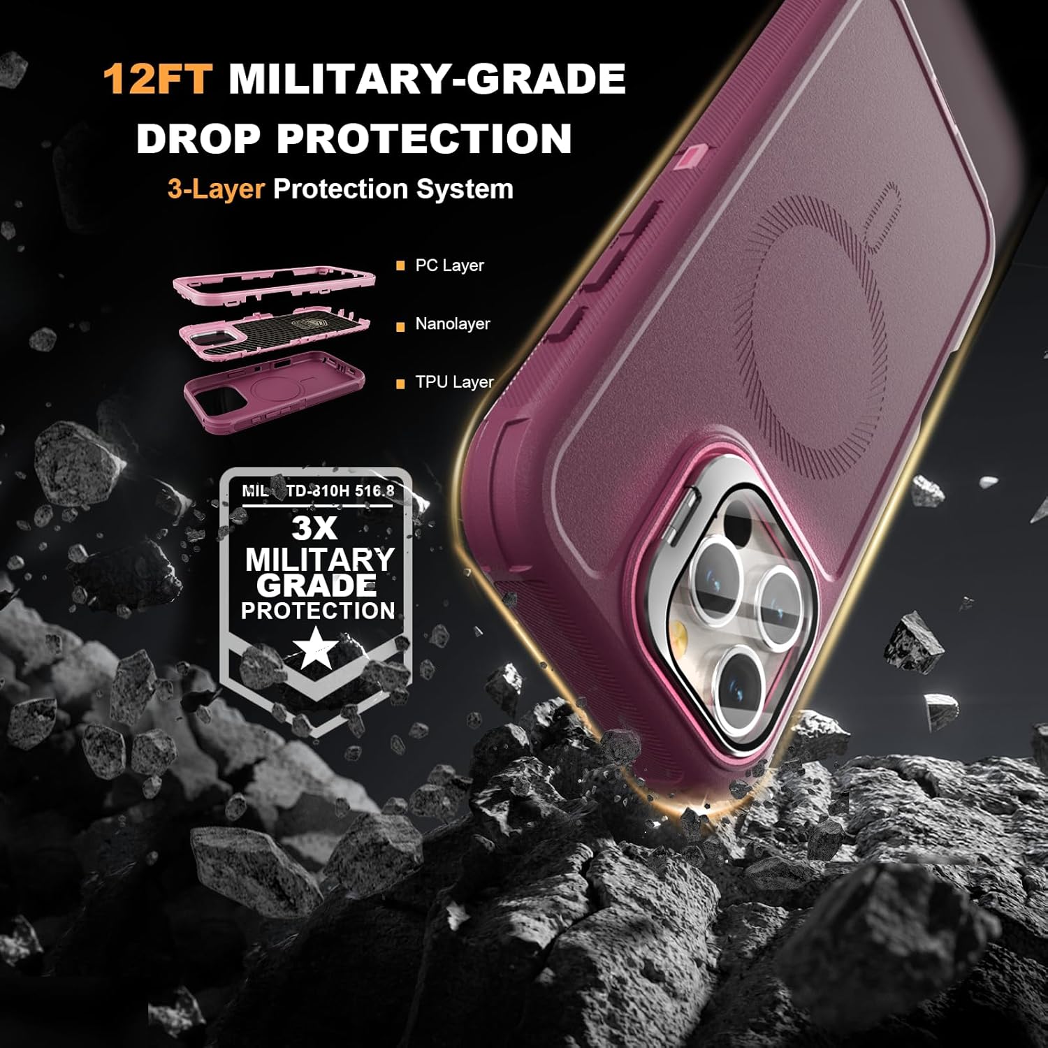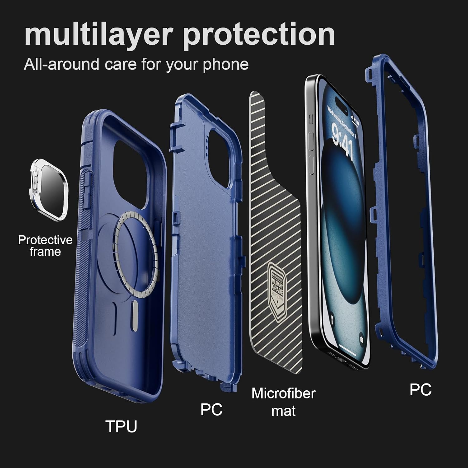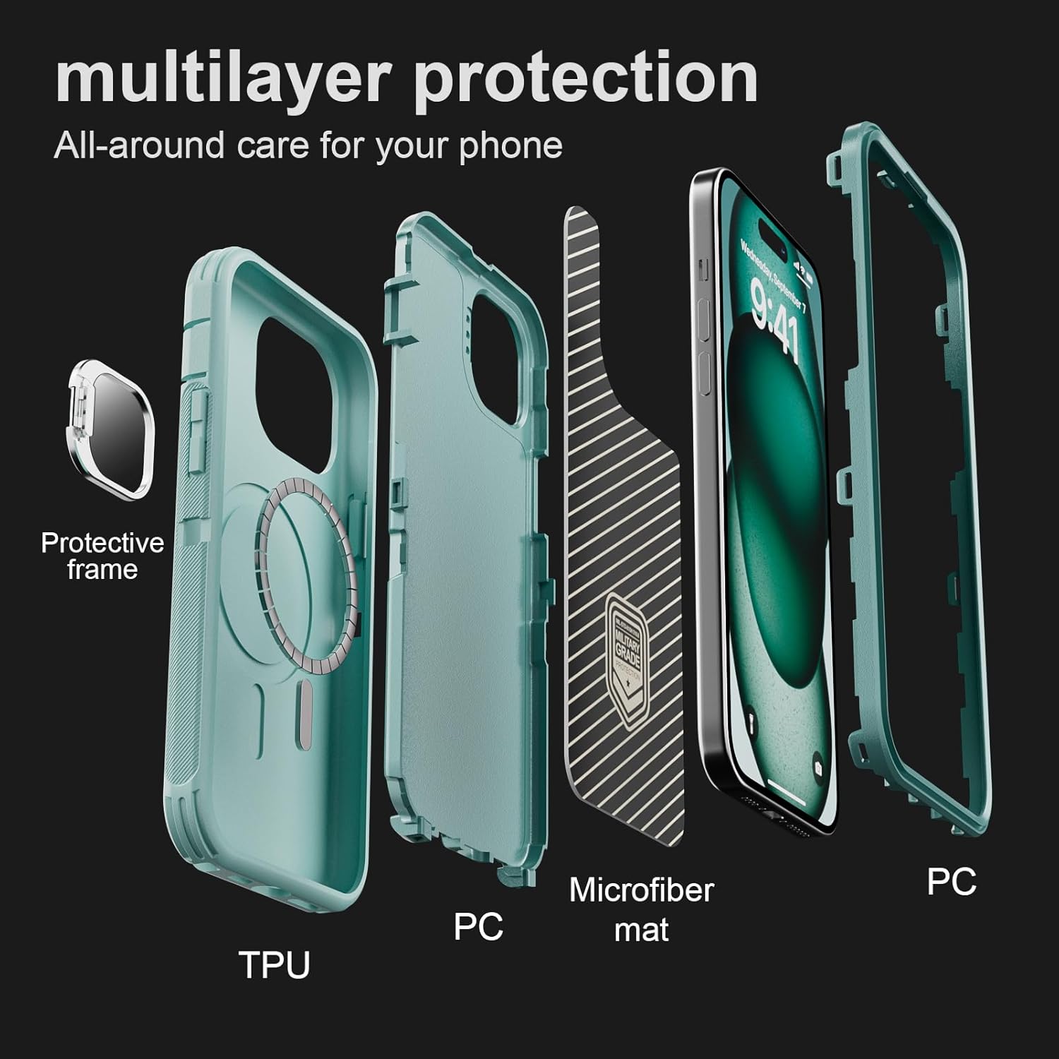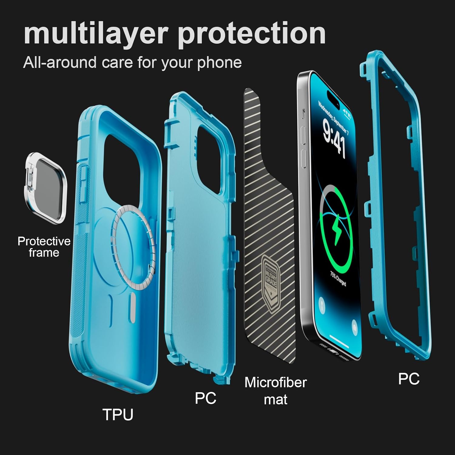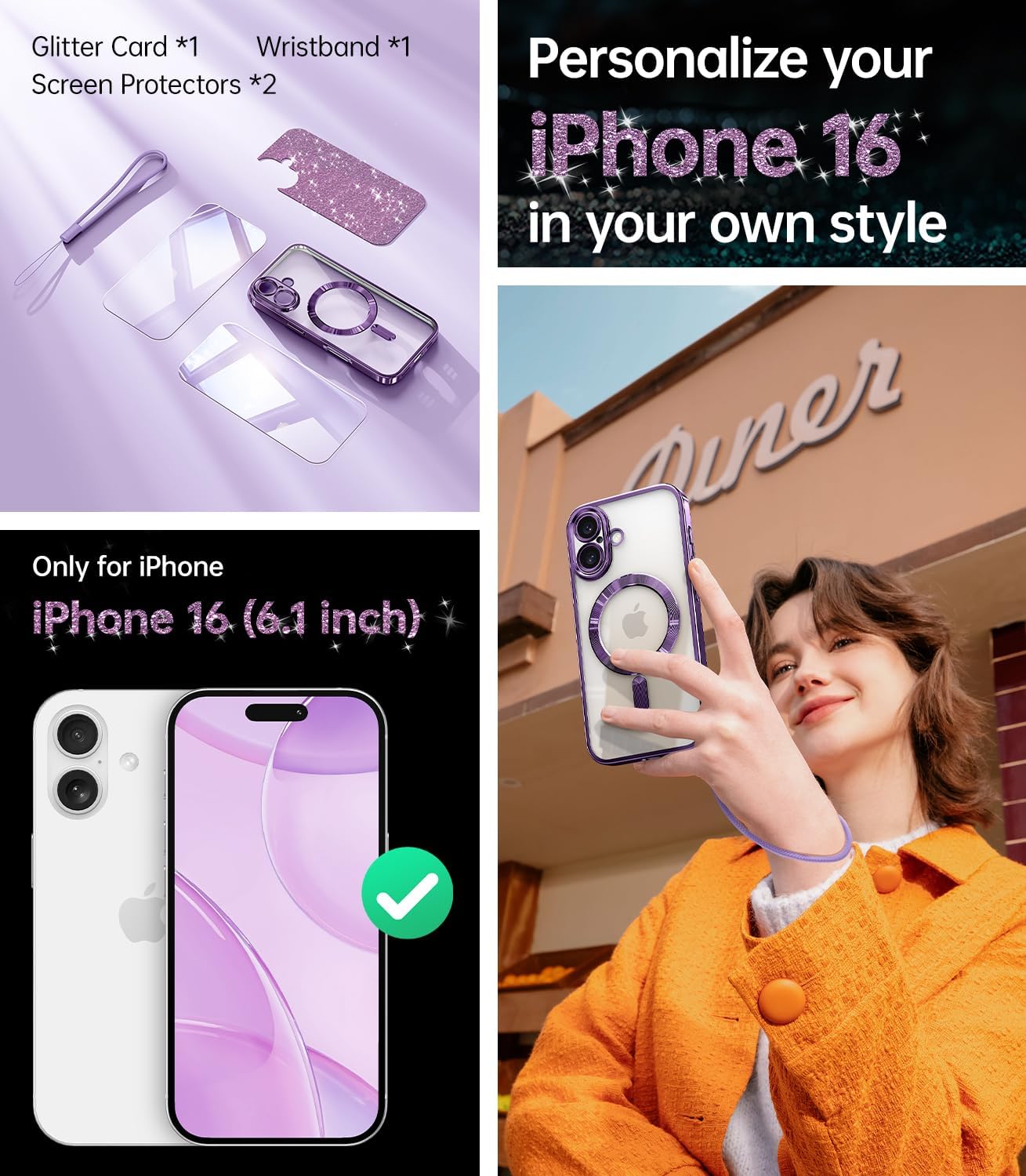 SURITCH 适用于 iPhone 16 Pro 手机壳,带滑动相机盖和可调节支架,兼容 MagSafe,防震防撞保护套,适用于 iPhone 16 Pro 6.3 英寸,黑色