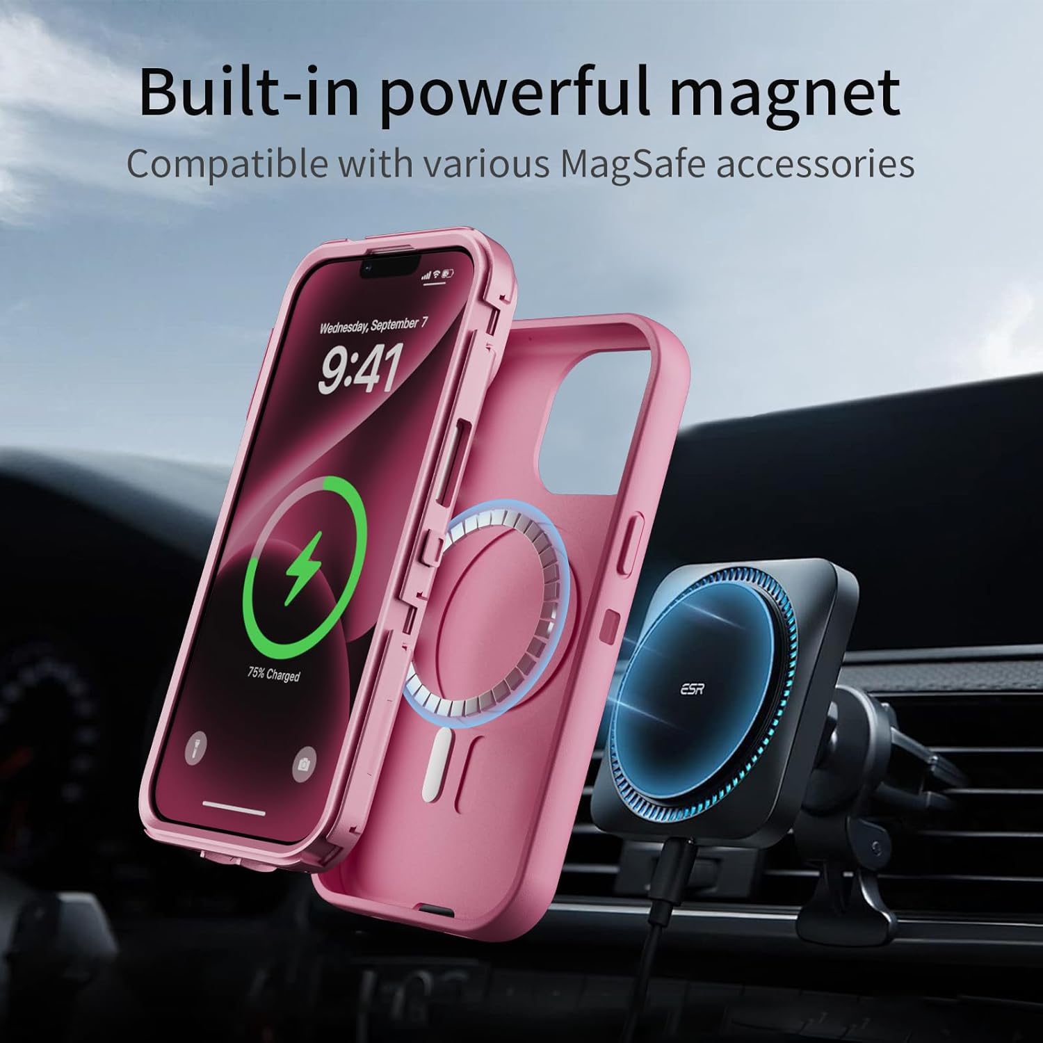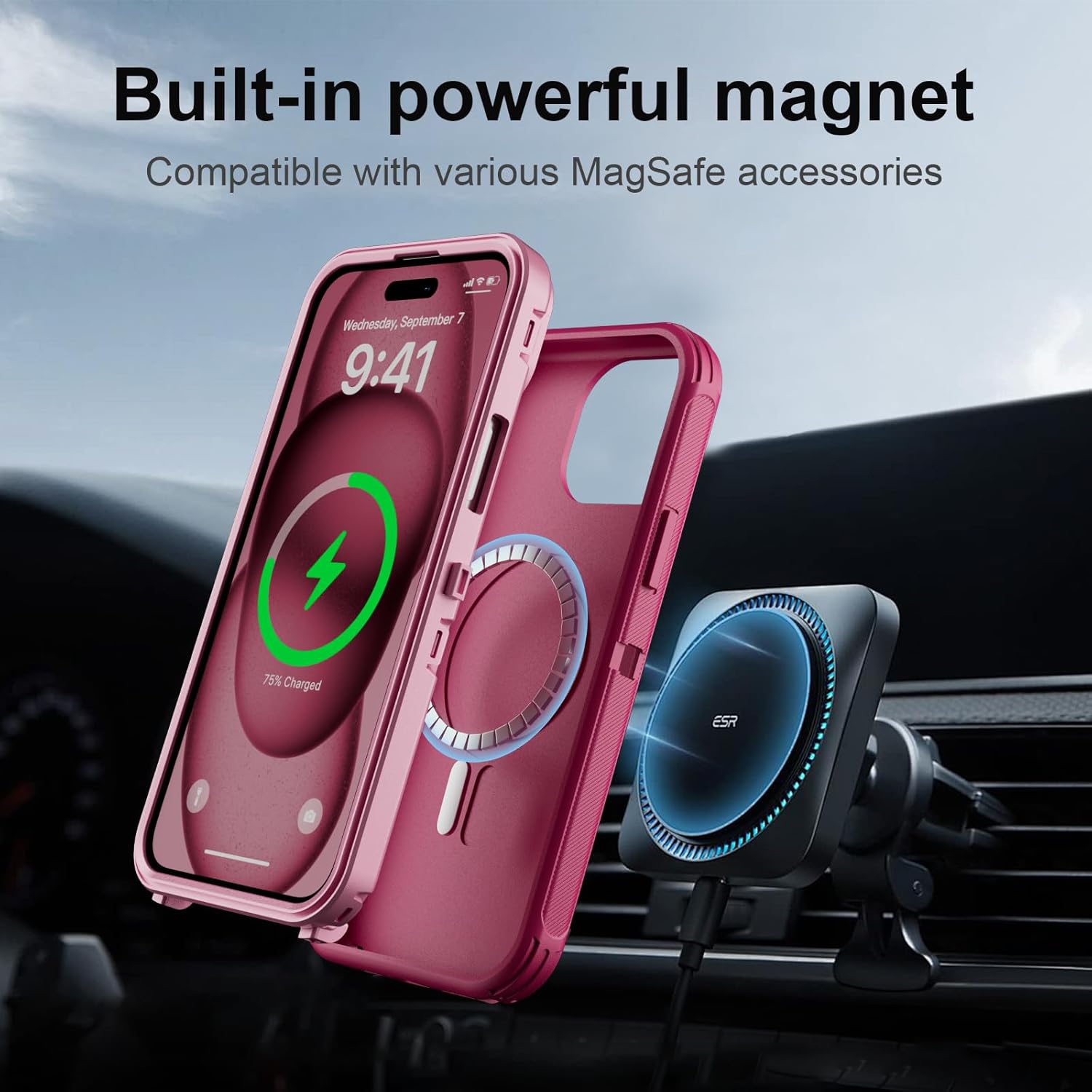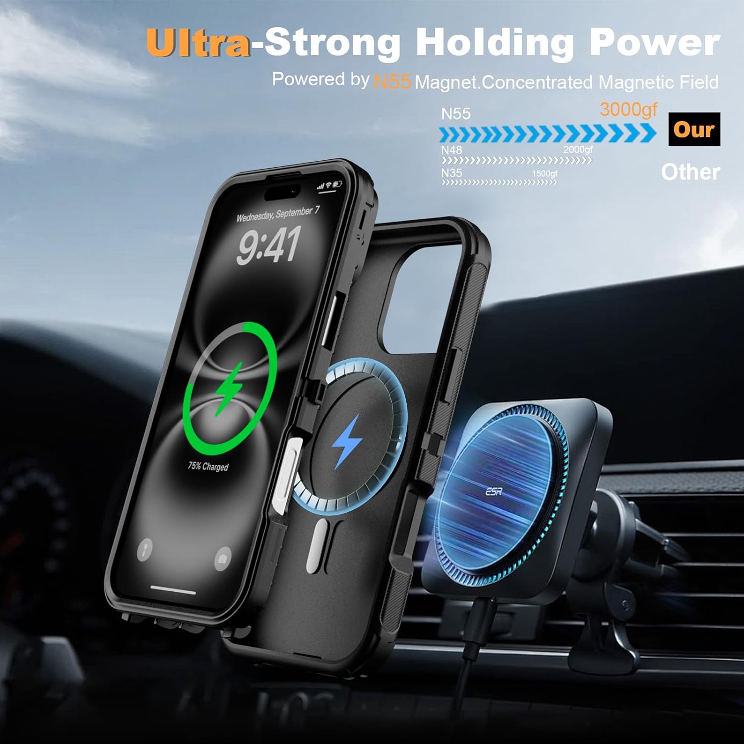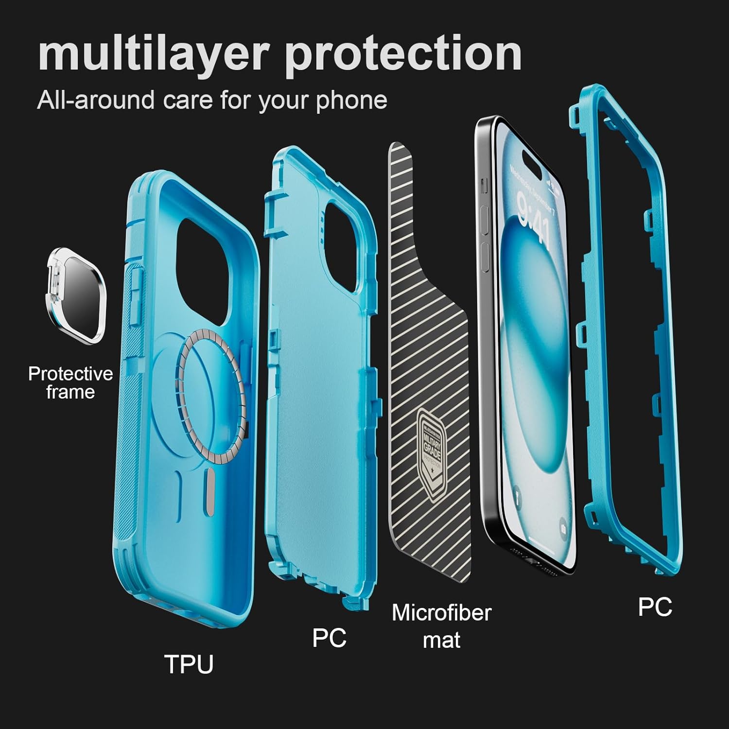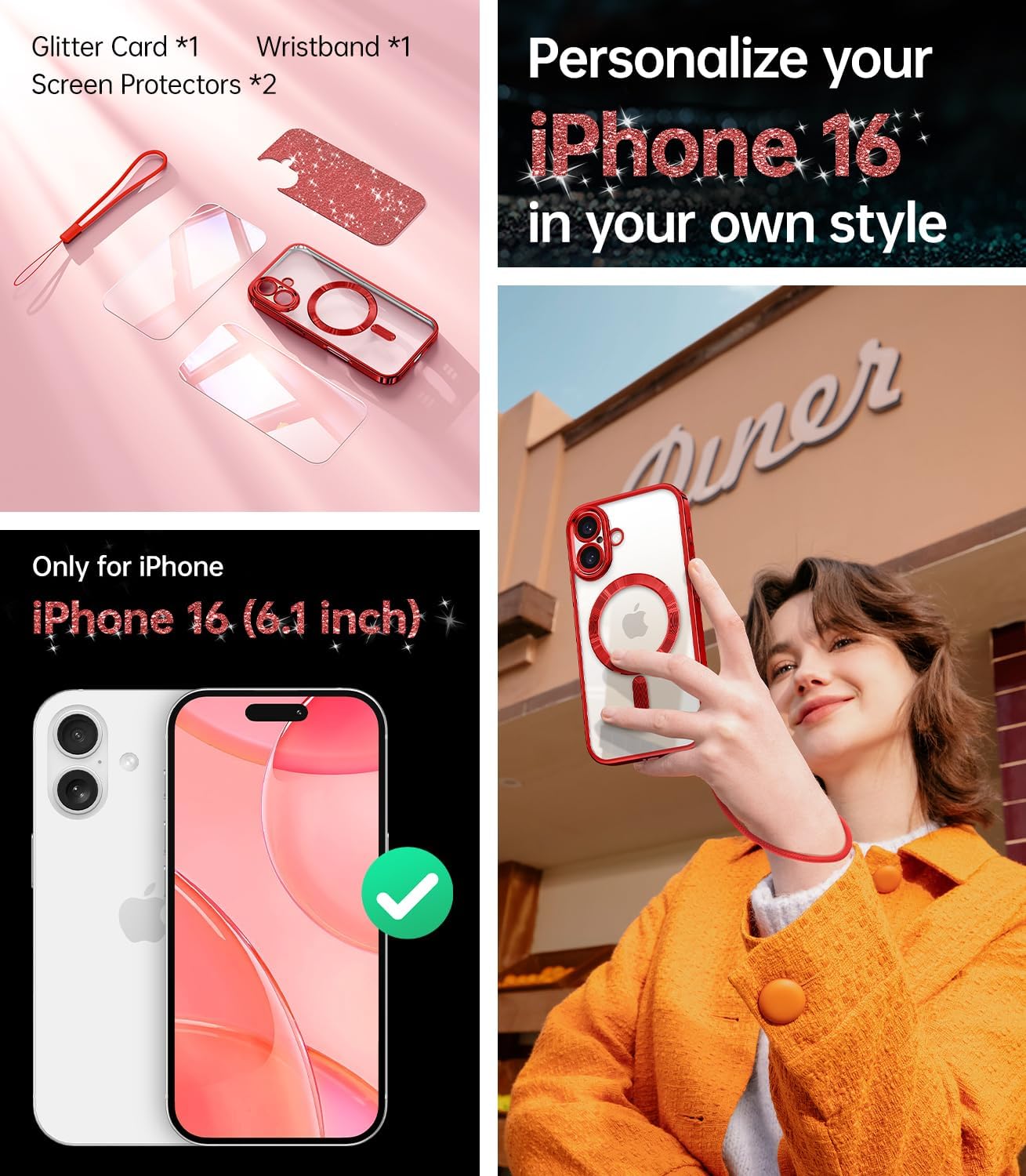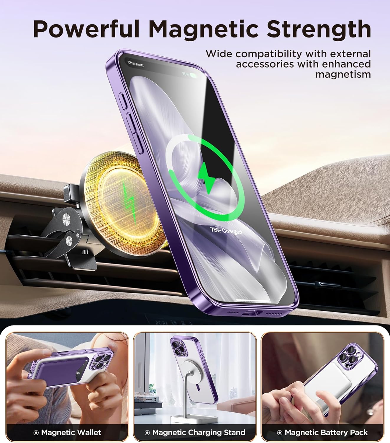 SURITCH 适用于 iPhone 16 Pro 手机壳,带滑动相机盖和可调节支架,兼容 MagSafe,防震防撞保护套,适用于 iPhone 16 Pro 6.3 英寸,黑色