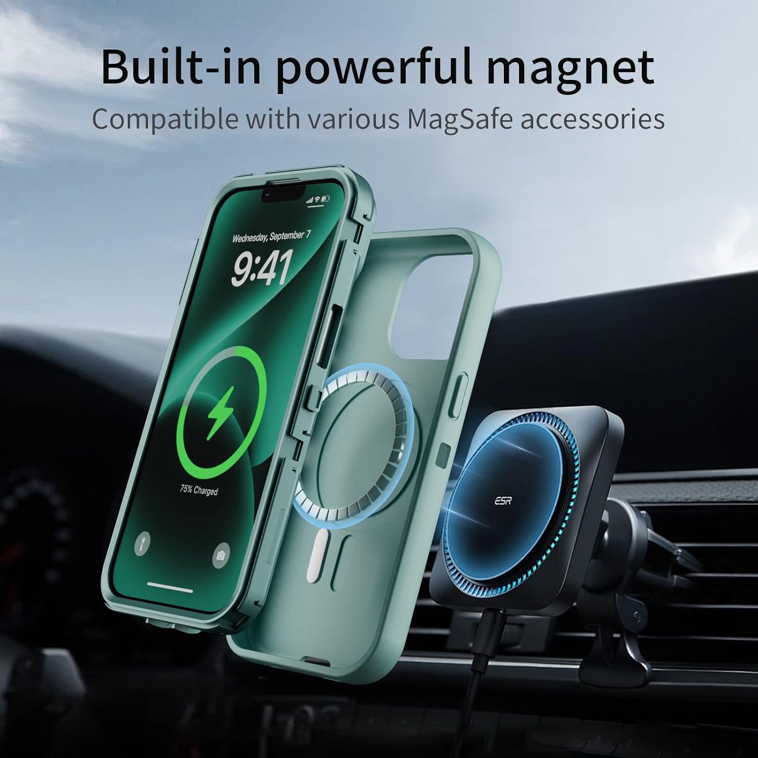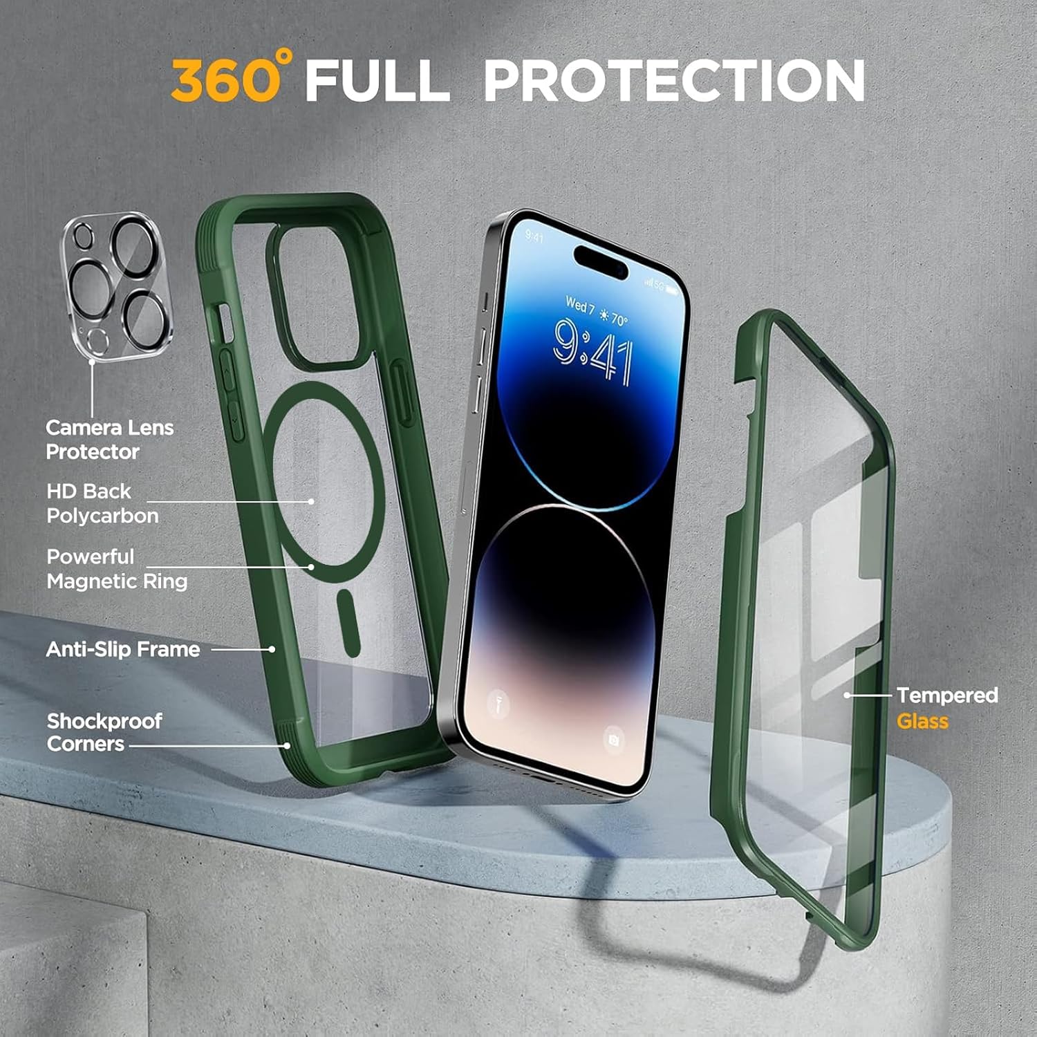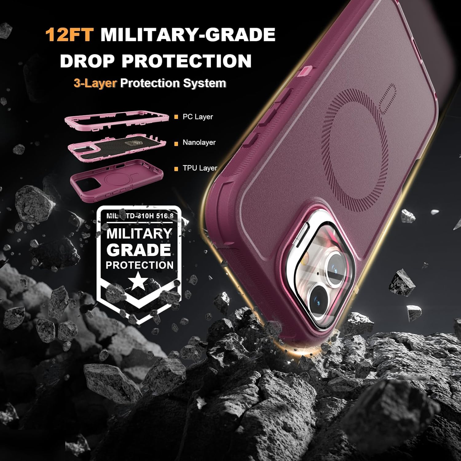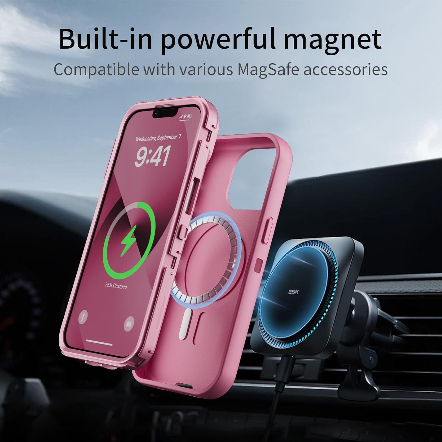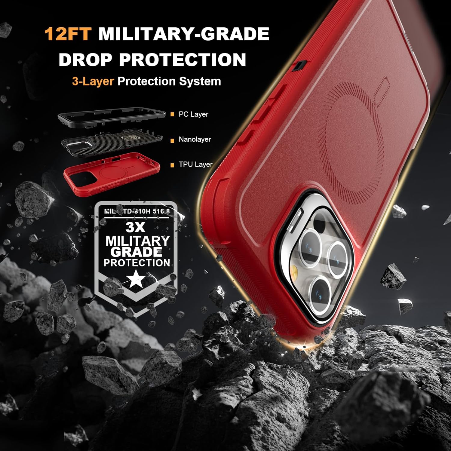 SURITCH 适用于 iPhone 16 Pro 手机壳,带滑动相机盖和可调节支架,兼容 MagSafe,防震防撞保护套,适用于 iPhone 16 Pro 6.3 英寸,黑色