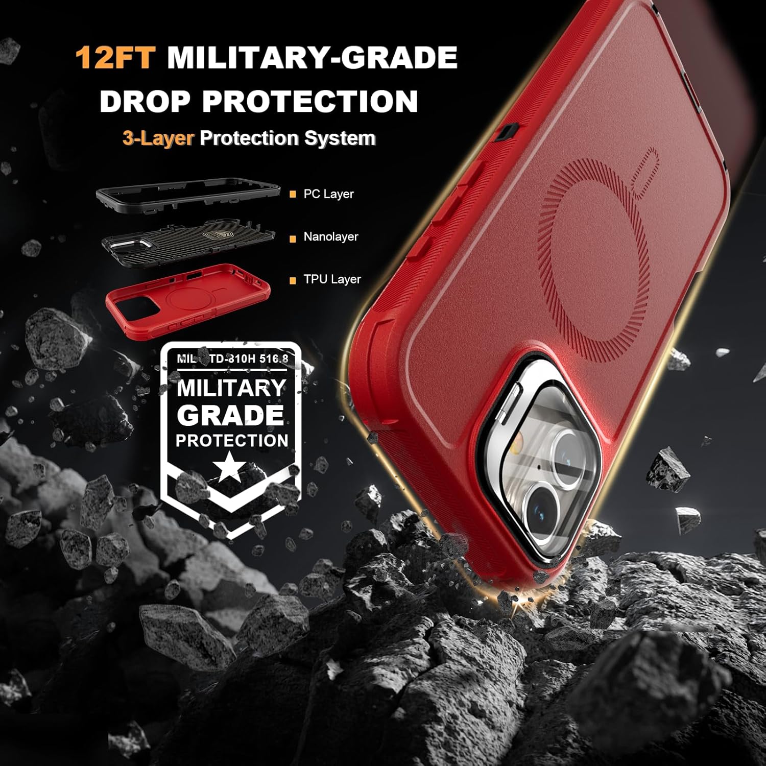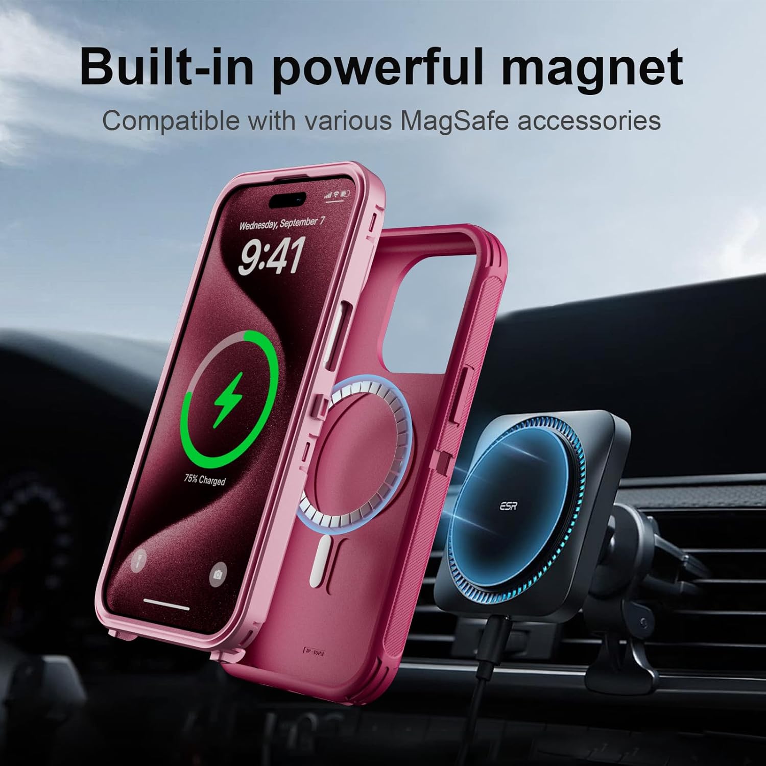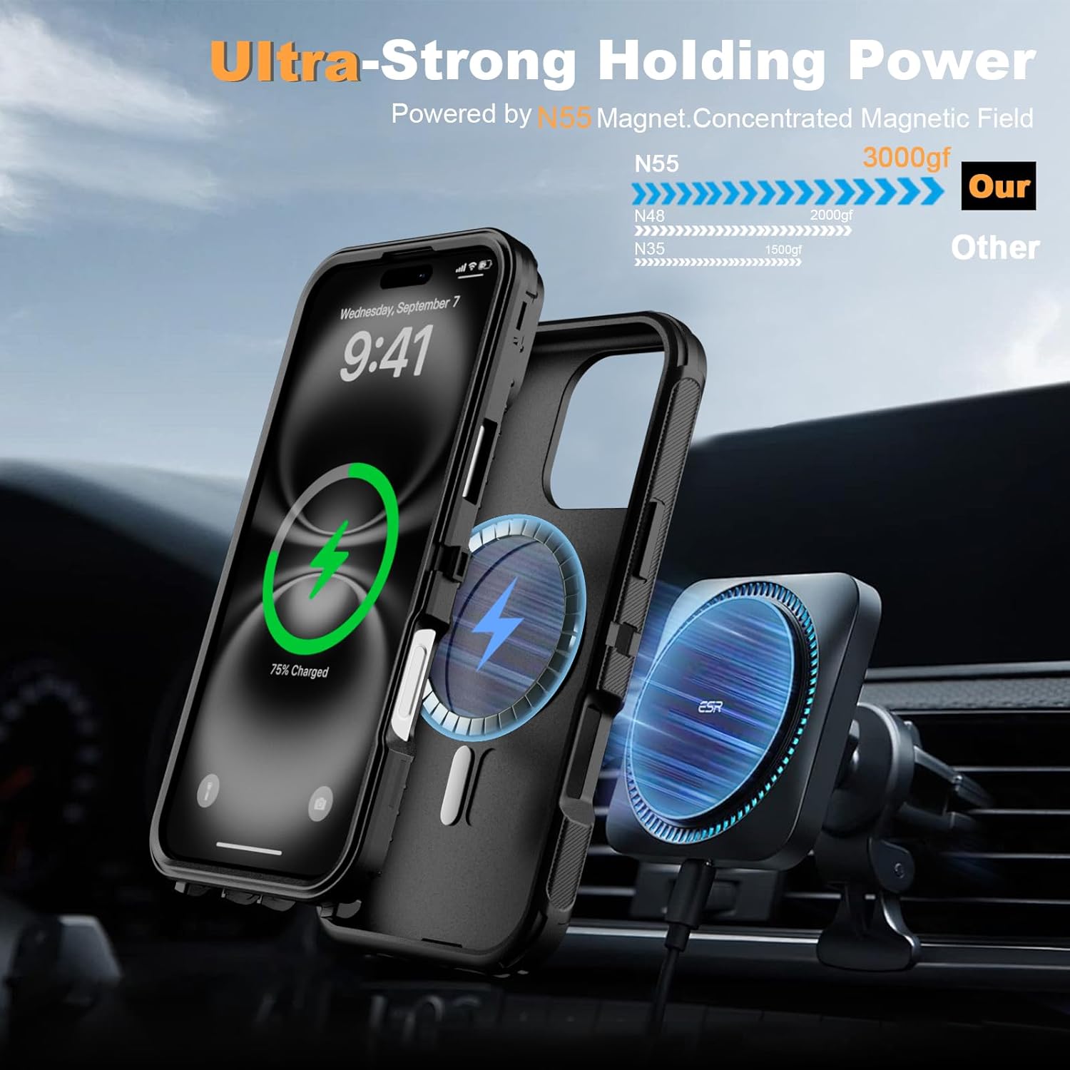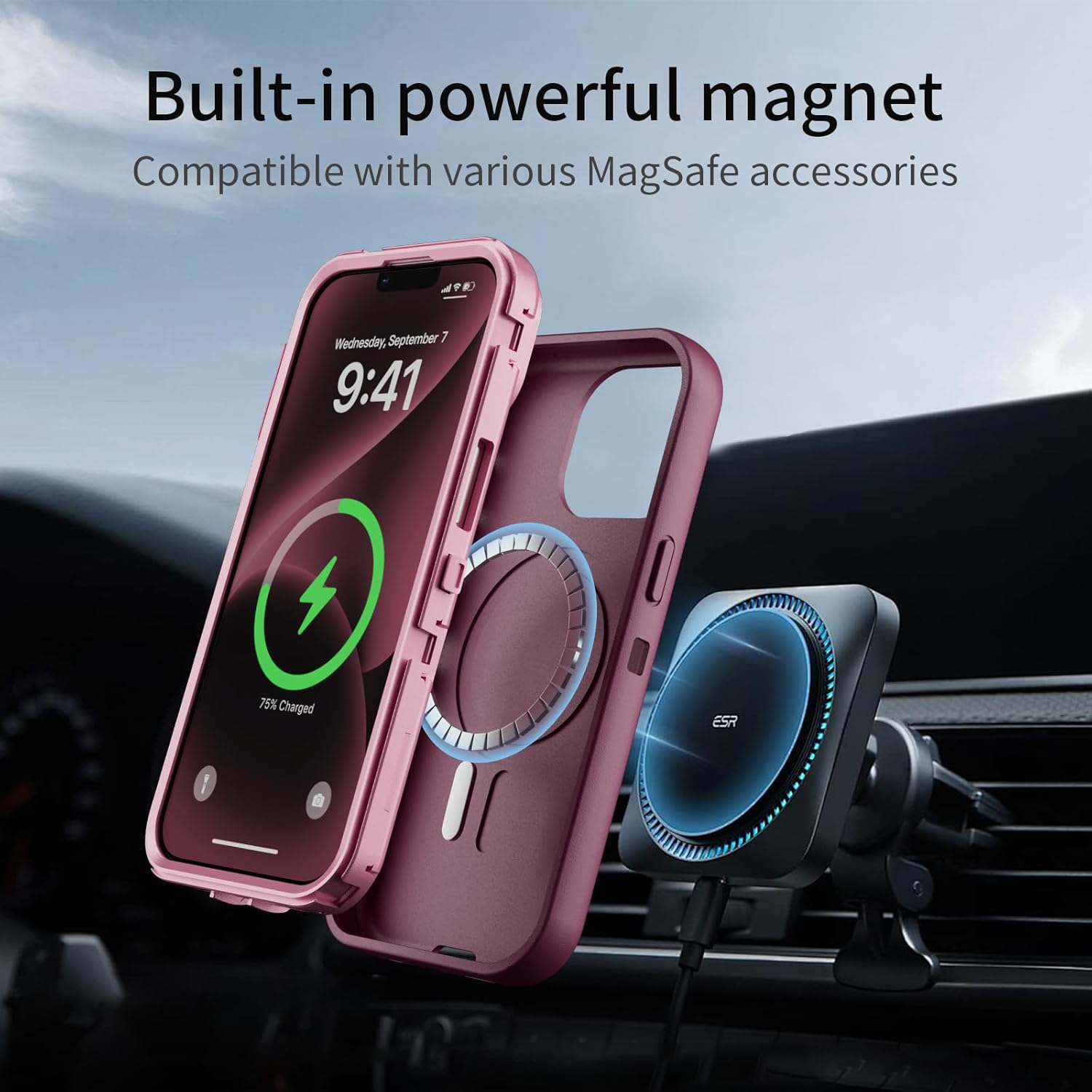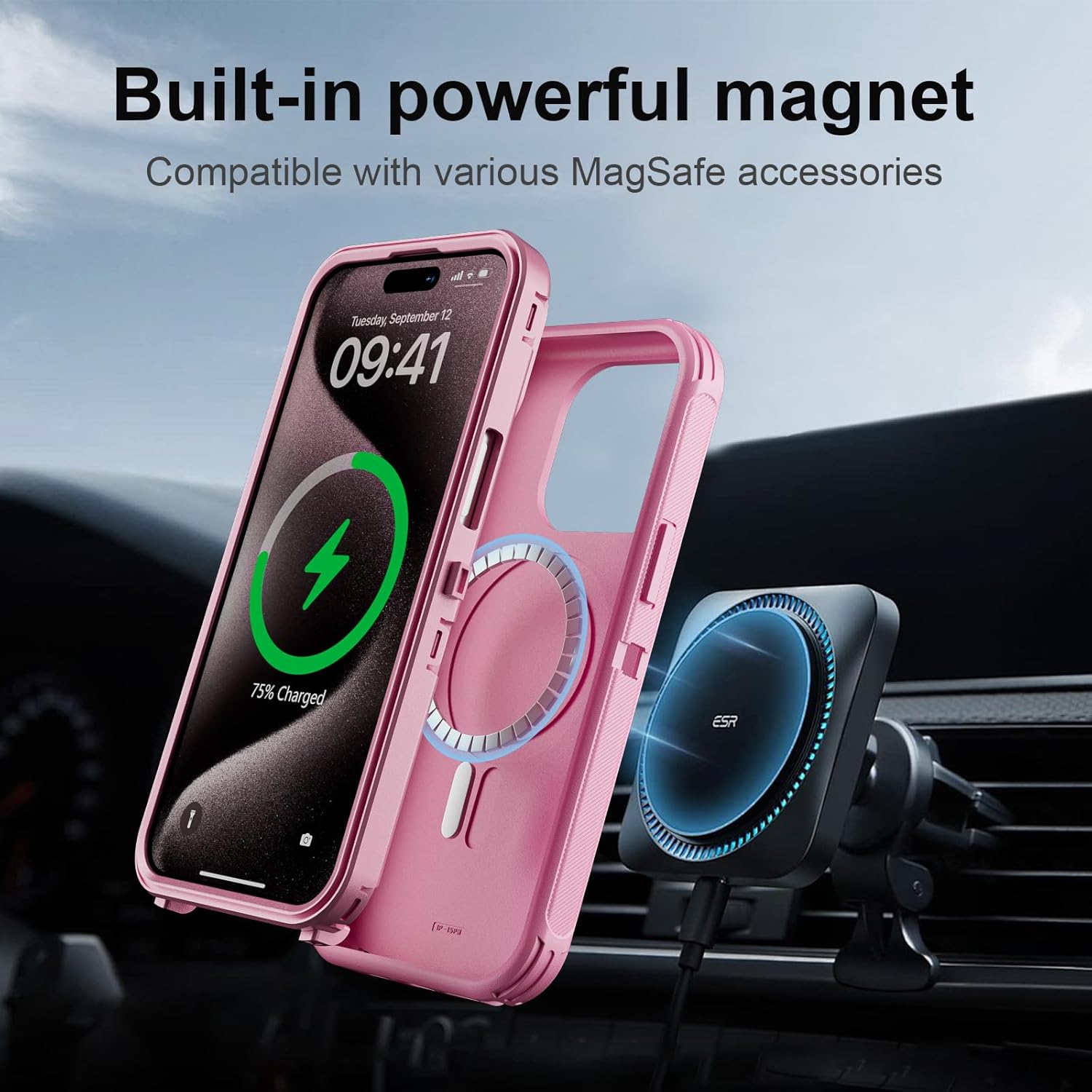SURITCH 适用于 iPhone 16 Pro 手机壳,带滑动相机盖和可调节支架,兼容 MagSafe,防震防撞保护套,适用于 iPhone 16 Pro 6.3 英寸,黑色