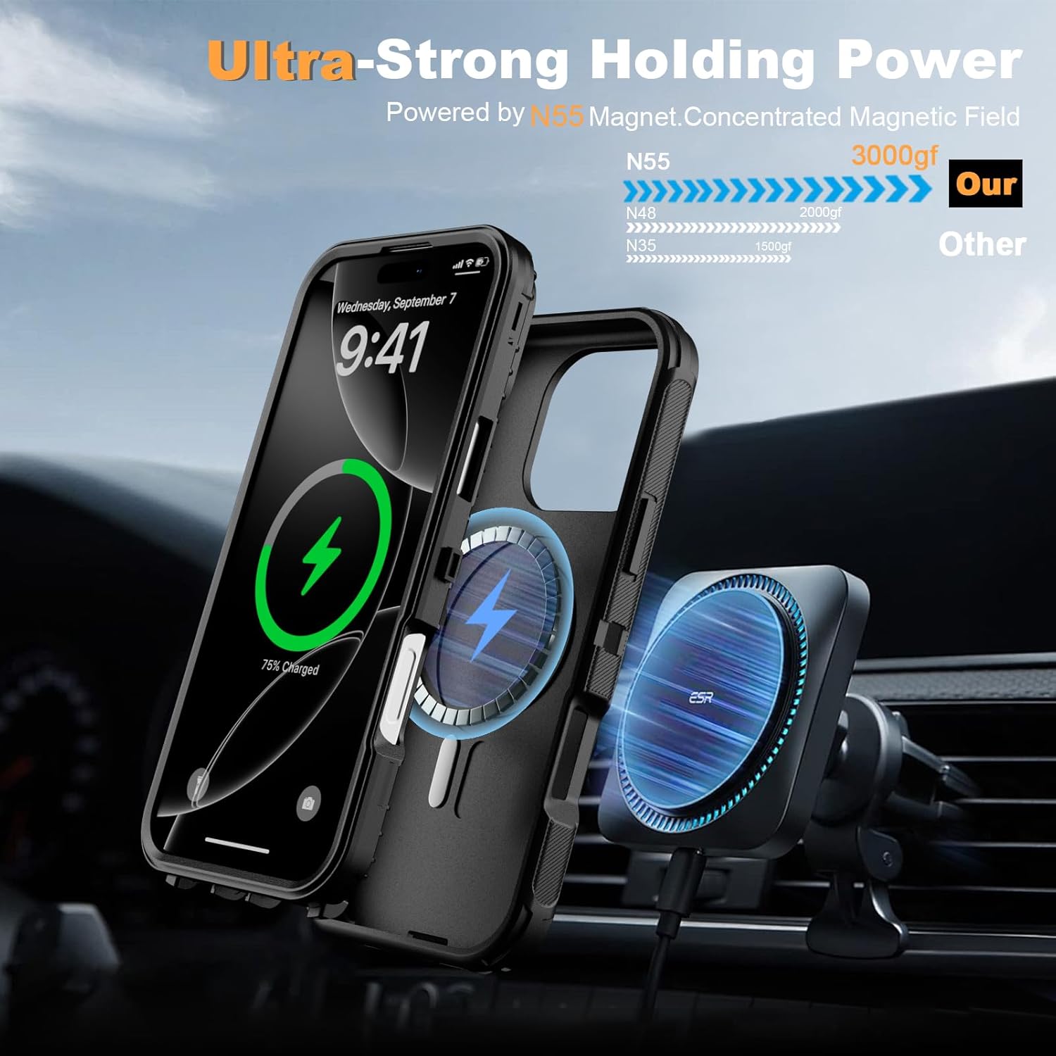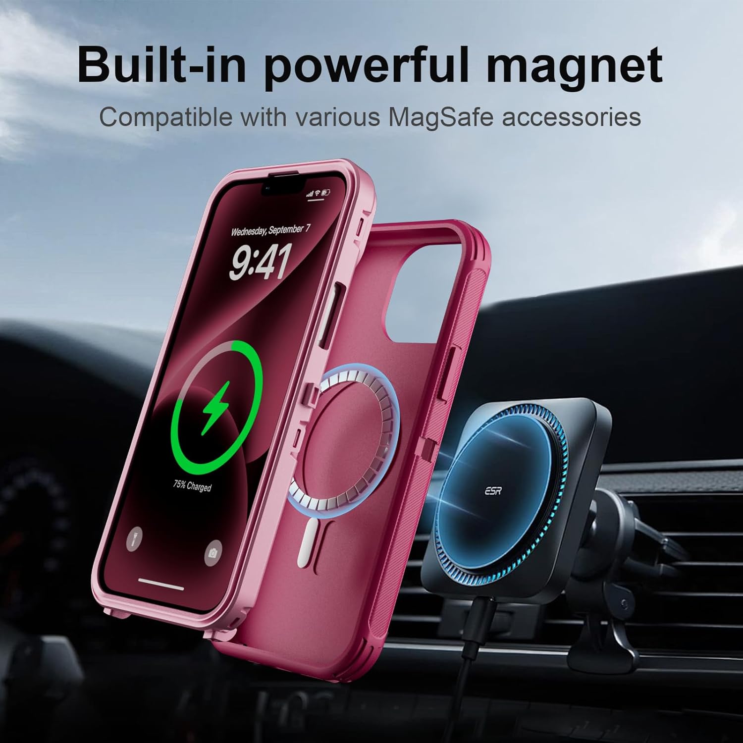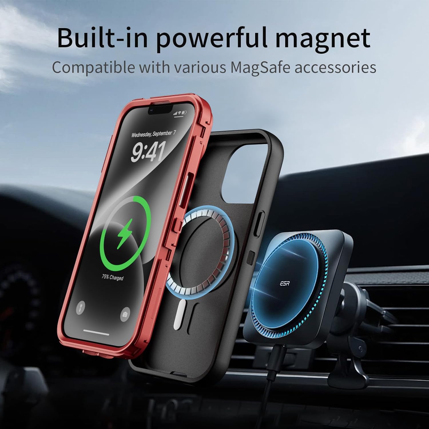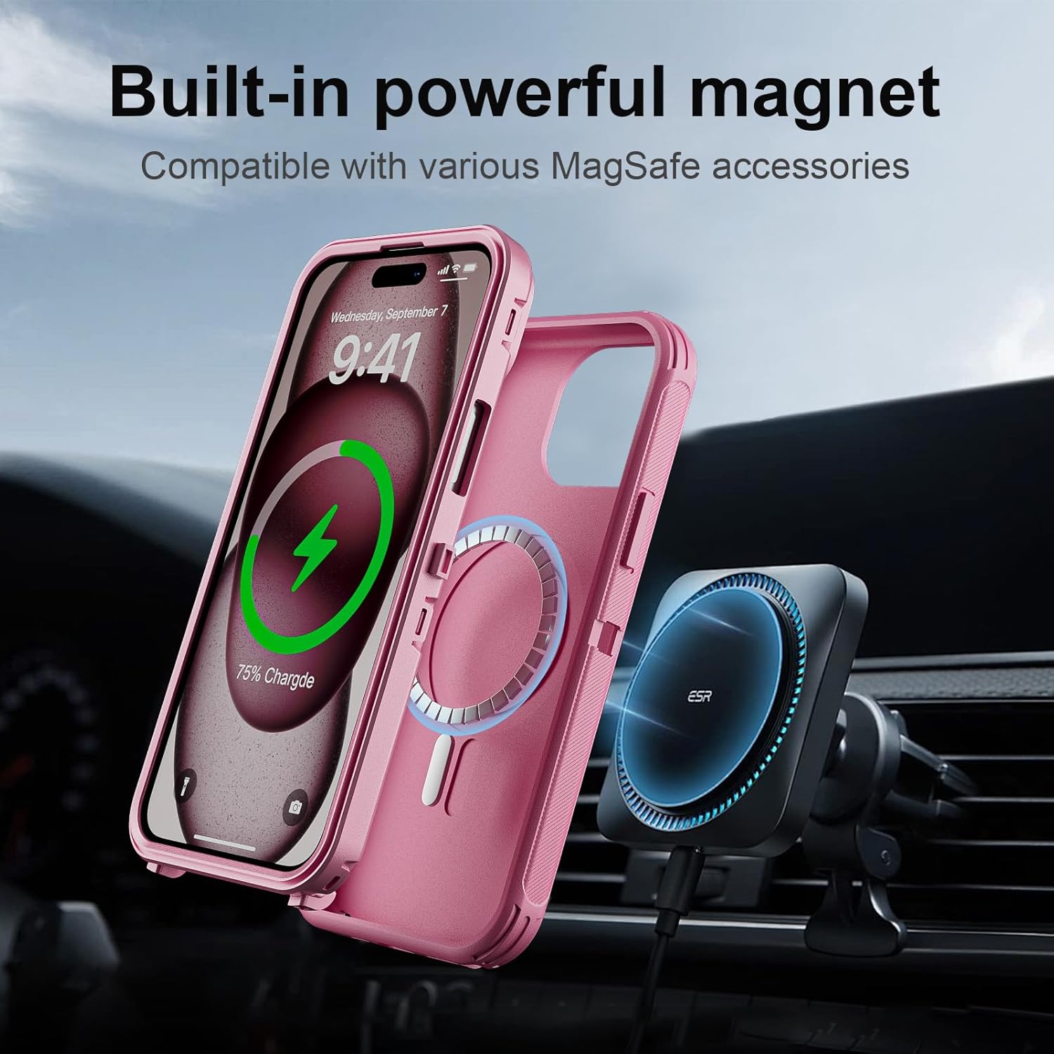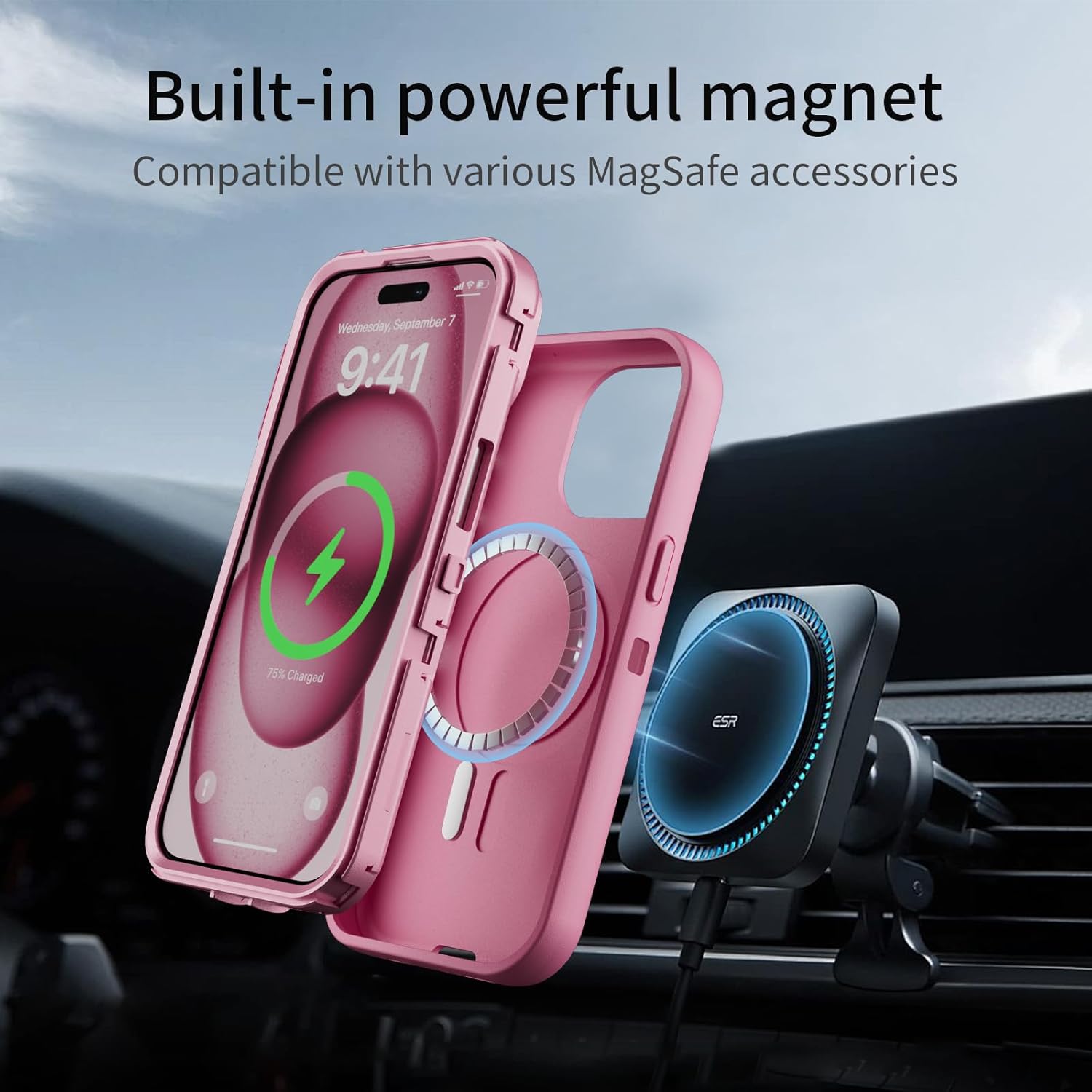 SURITCH 适用于 iPhone 16 Pro 手机壳,带滑动相机盖和可调节支架,兼容 MagSafe,防震防撞保护套,适用于 iPhone 16 Pro 6.3 英寸,黑色