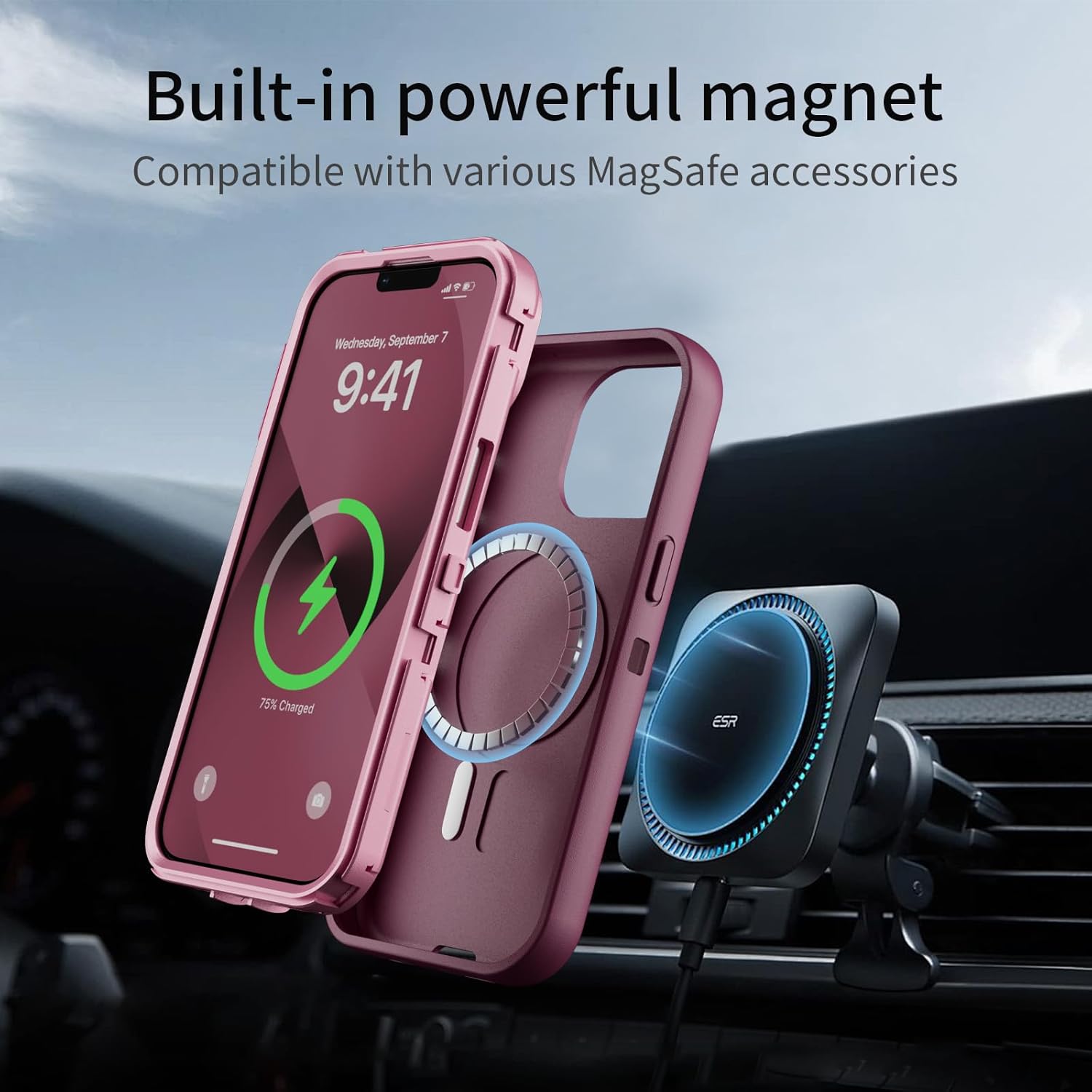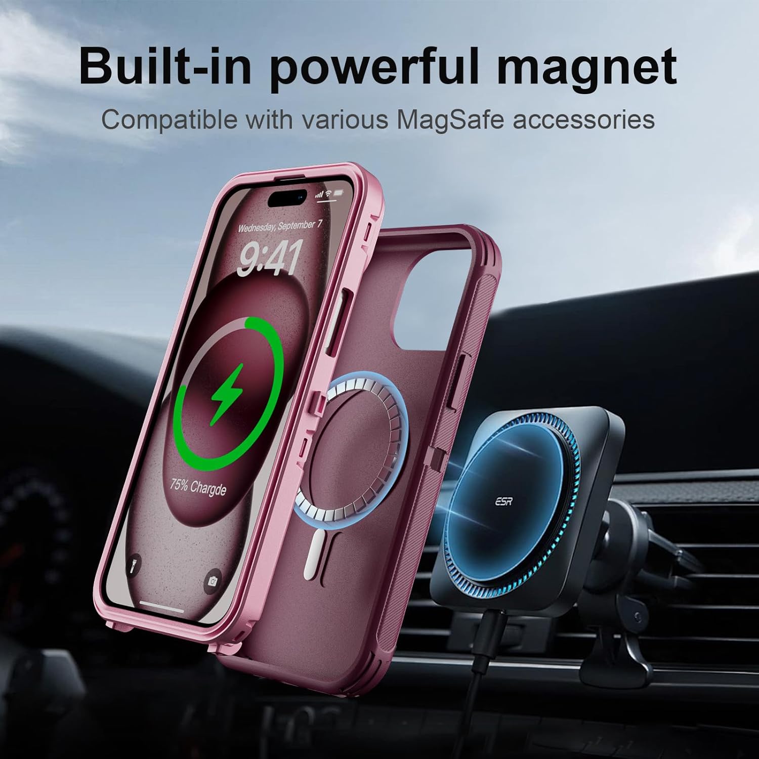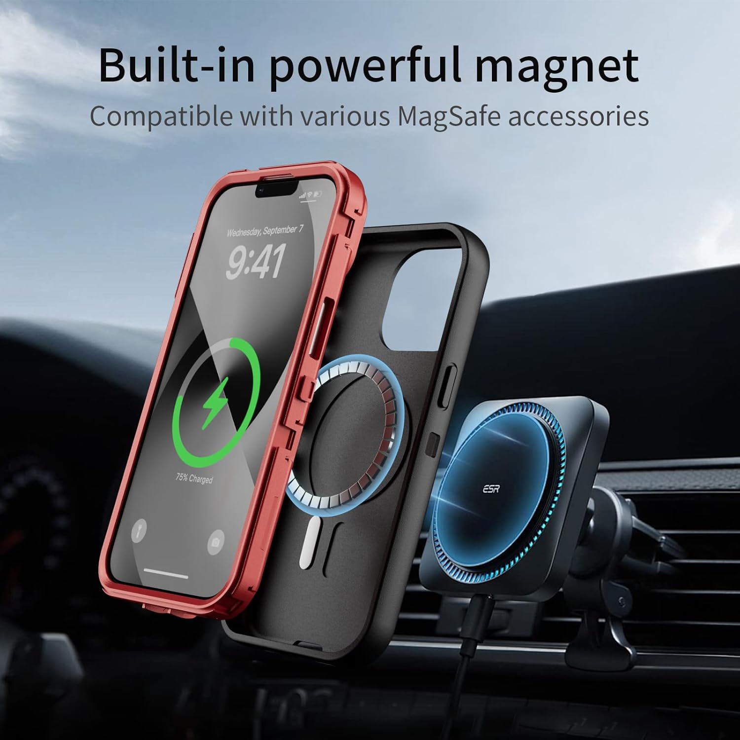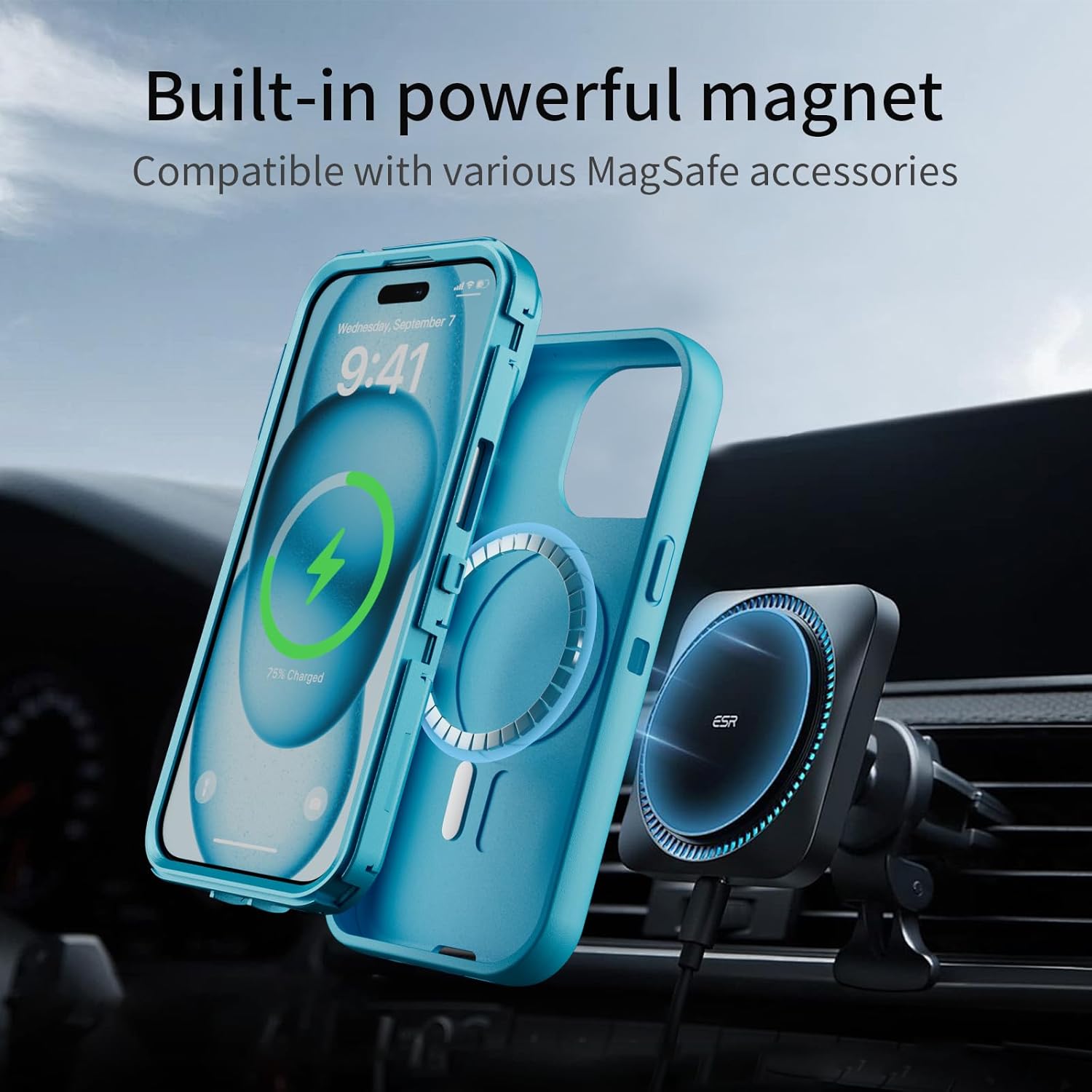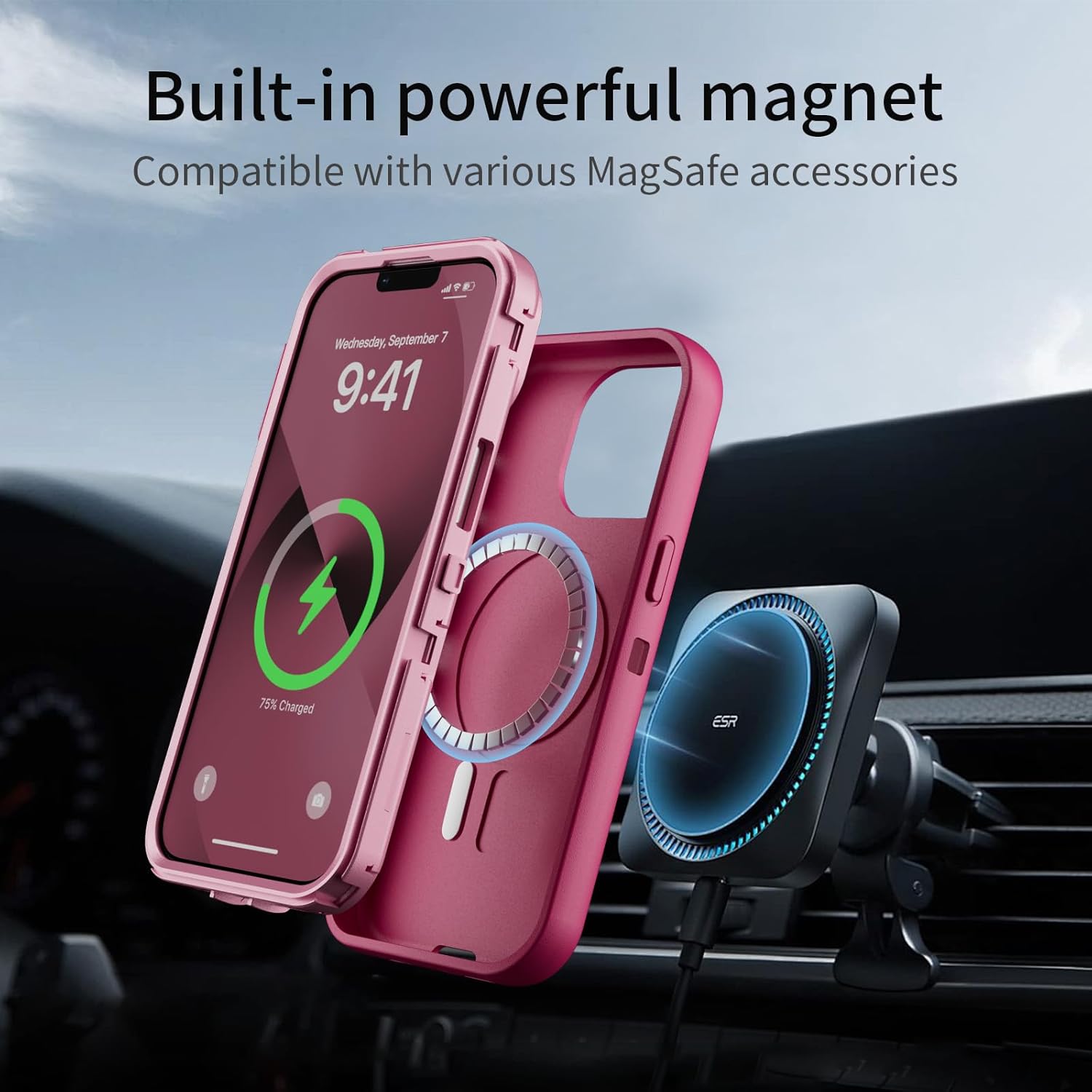 SURITCH 适用于 iPhone 16 Pro 手机壳,带滑动相机盖和可调节支架,兼容 MagSafe,防震防撞保护套,适用于 iPhone 16 Pro 6.3 英寸,黑色