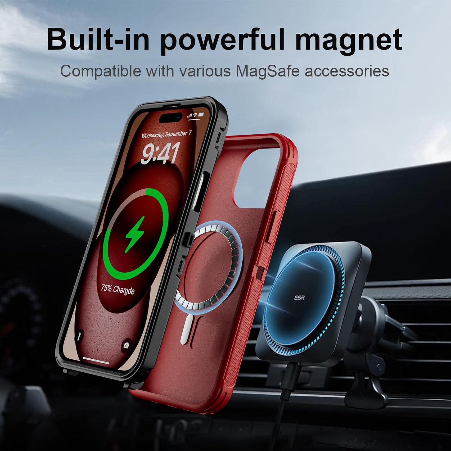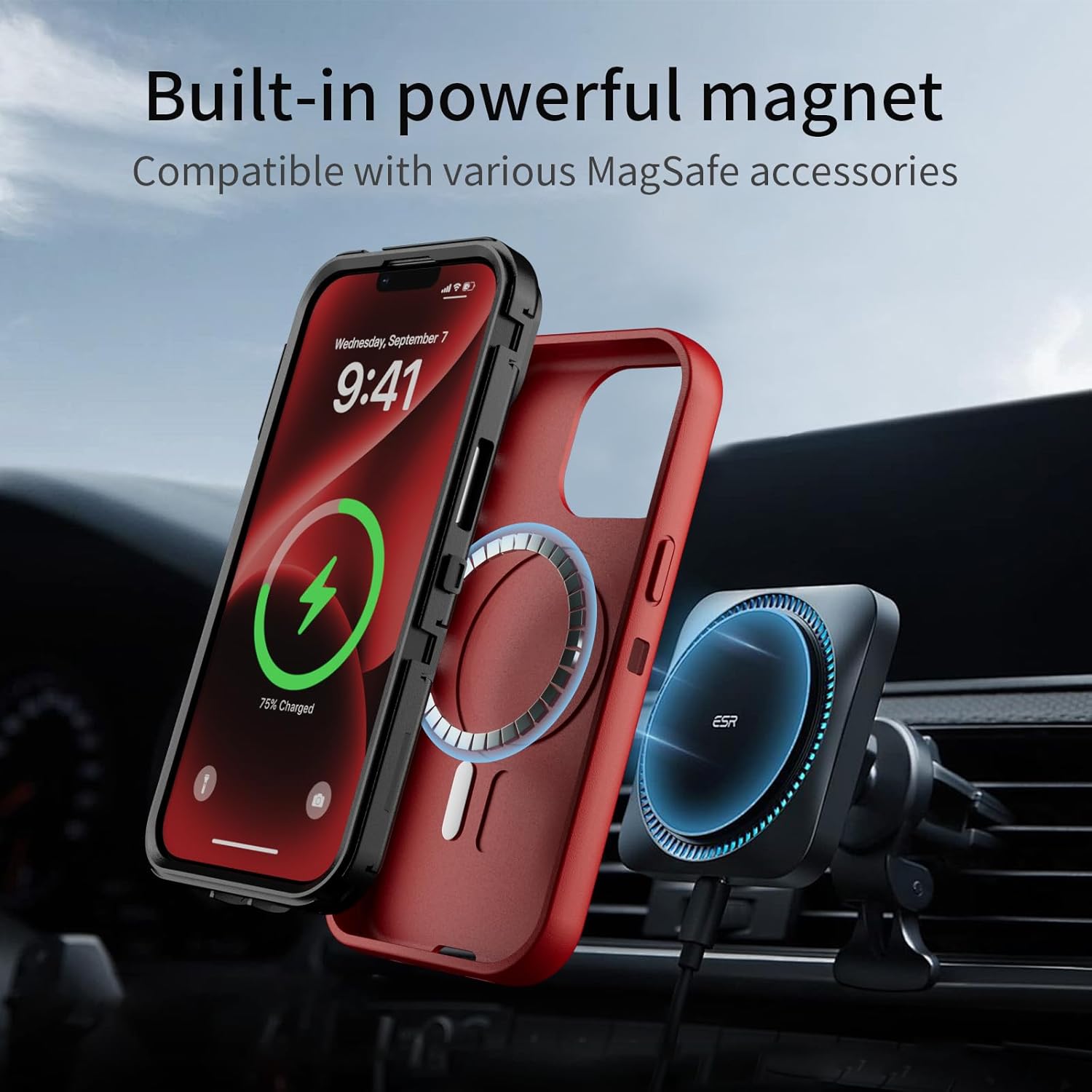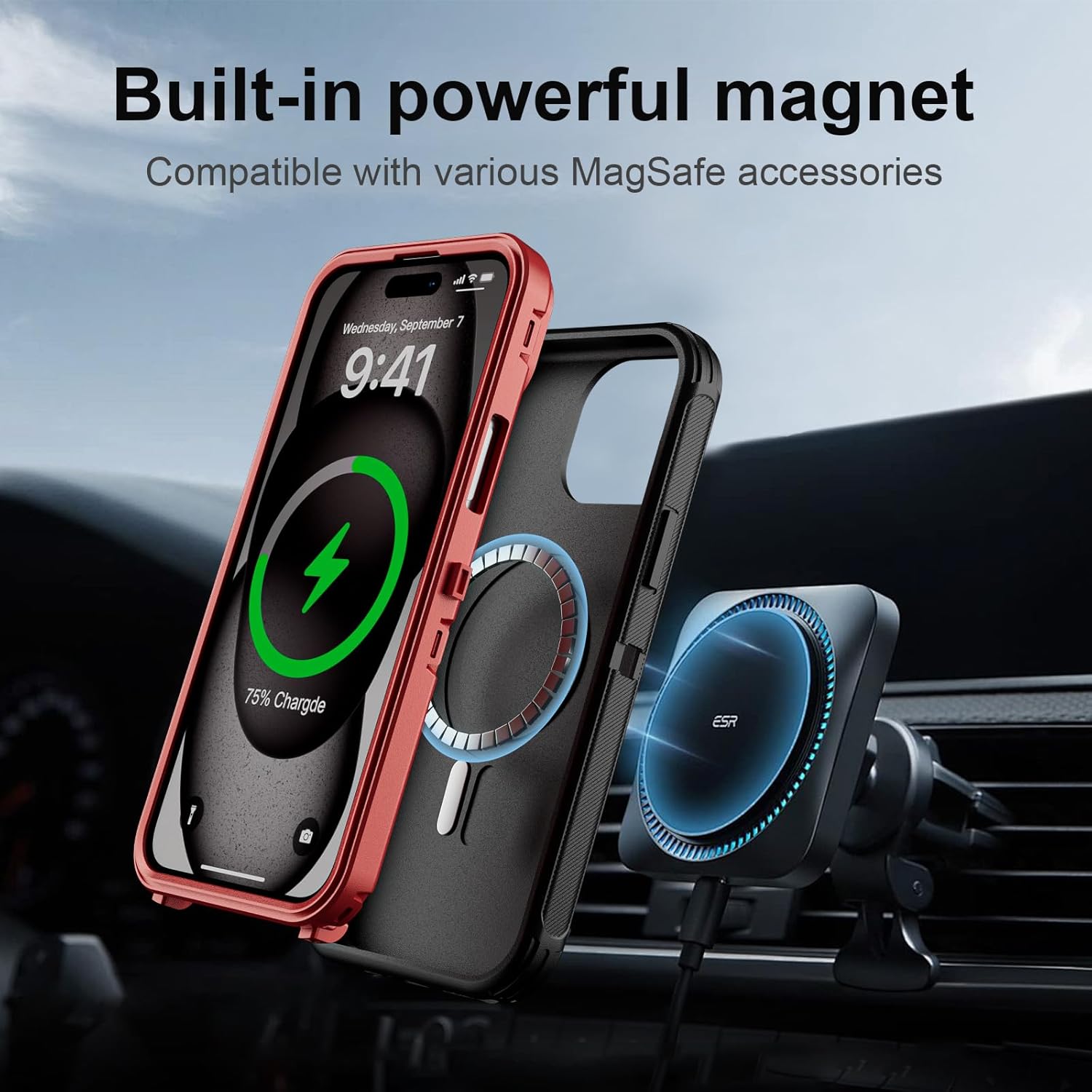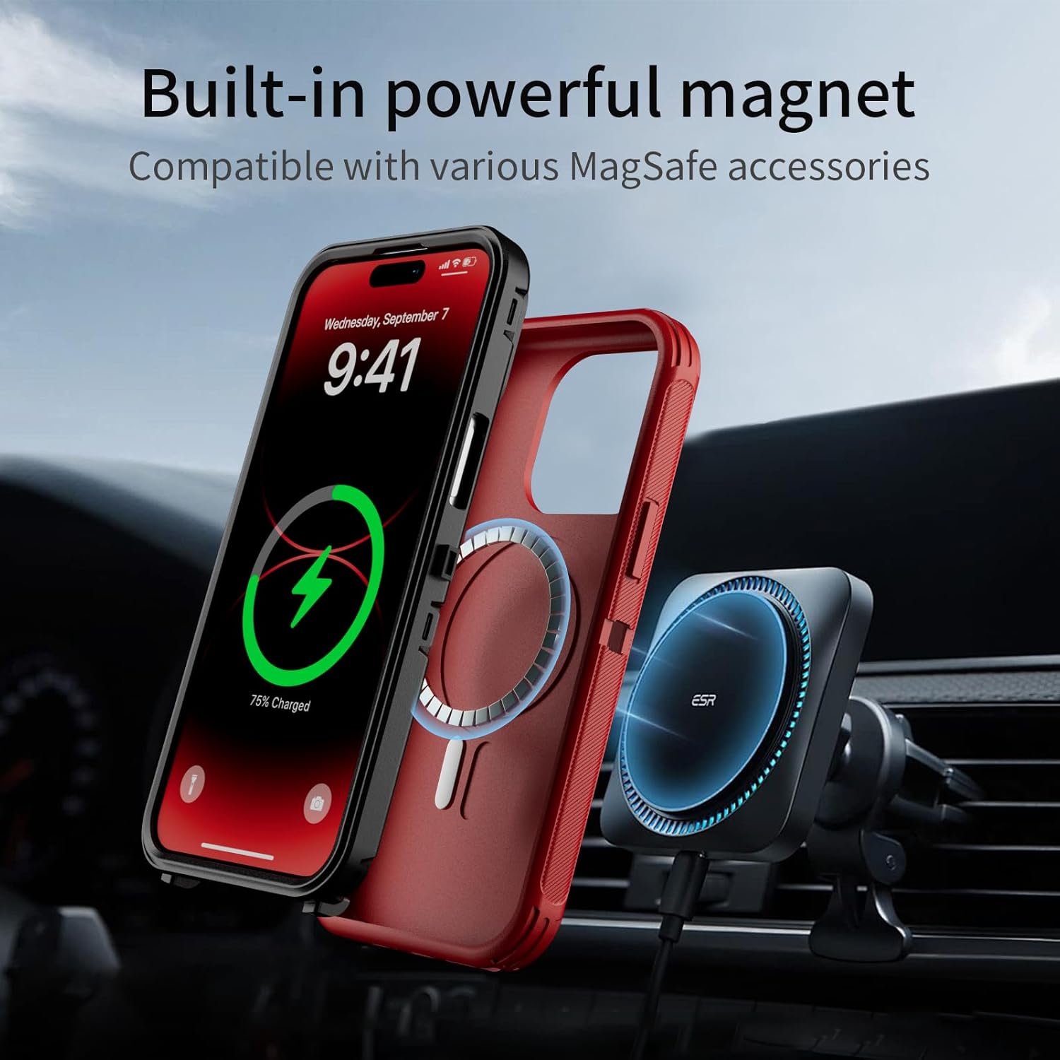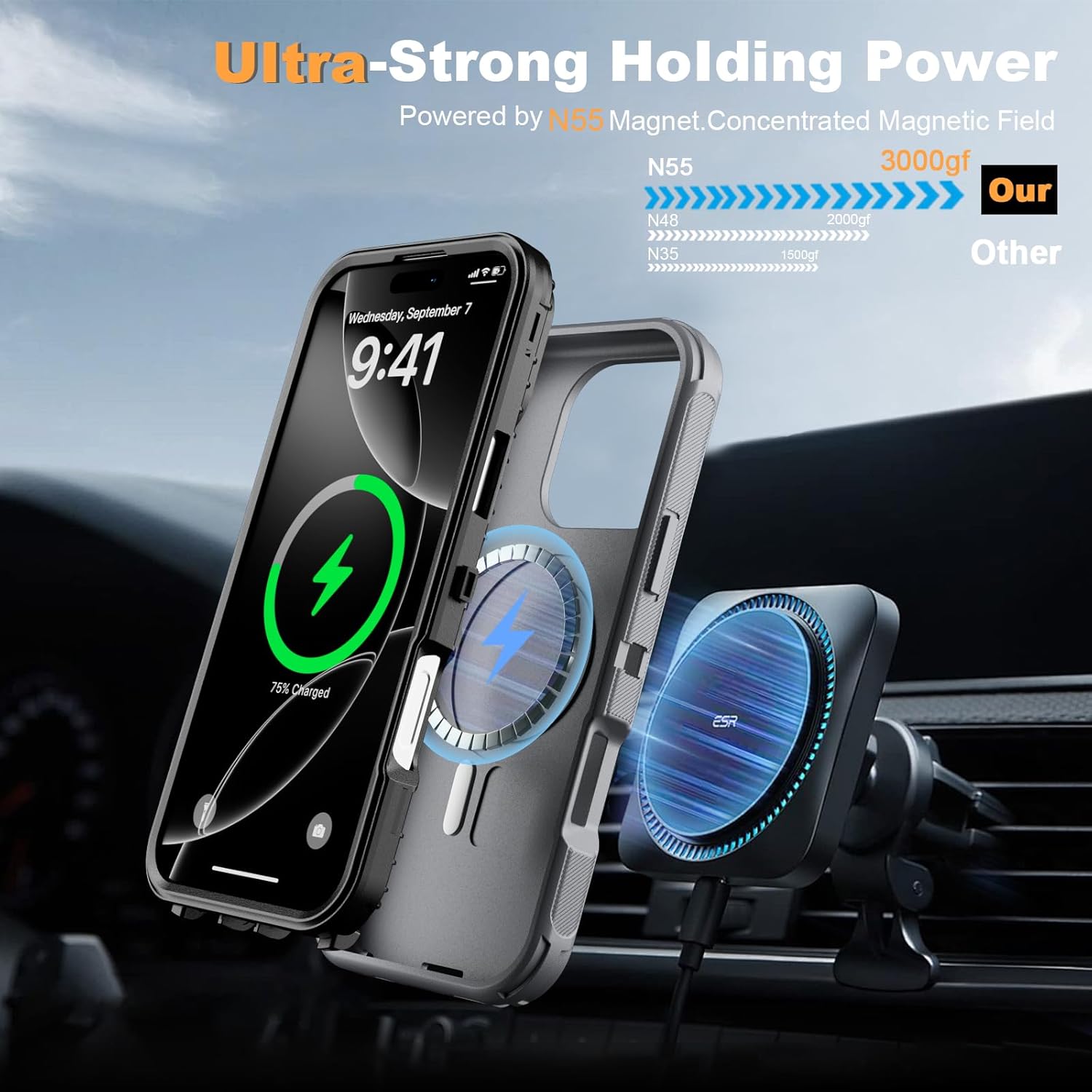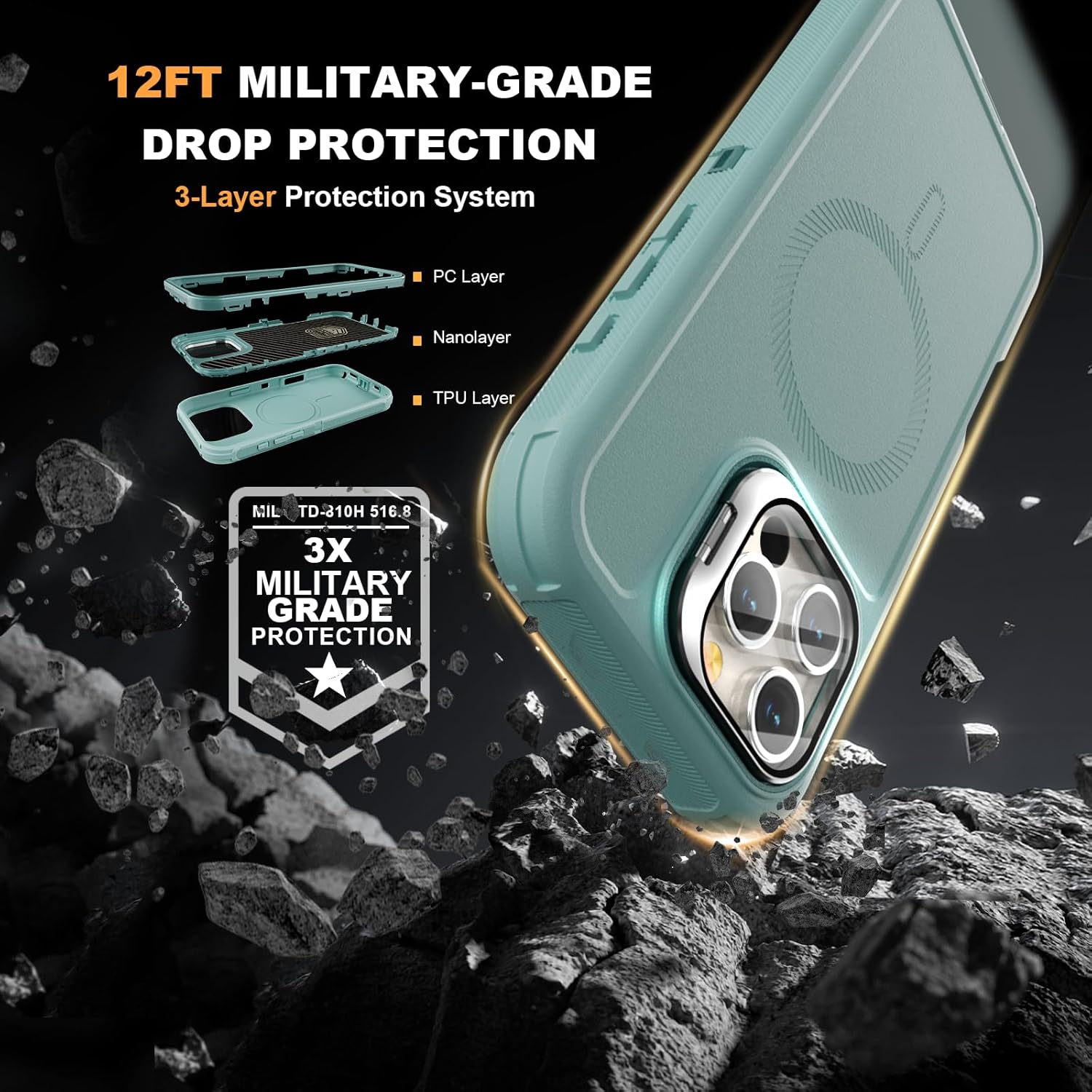 SURITCH 适用于 iPhone 16 Pro 手机壳,带滑动相机盖和可调节支架,兼容 MagSafe,防震防撞保护套,适用于 iPhone 16 Pro 6.3 英寸,黑色