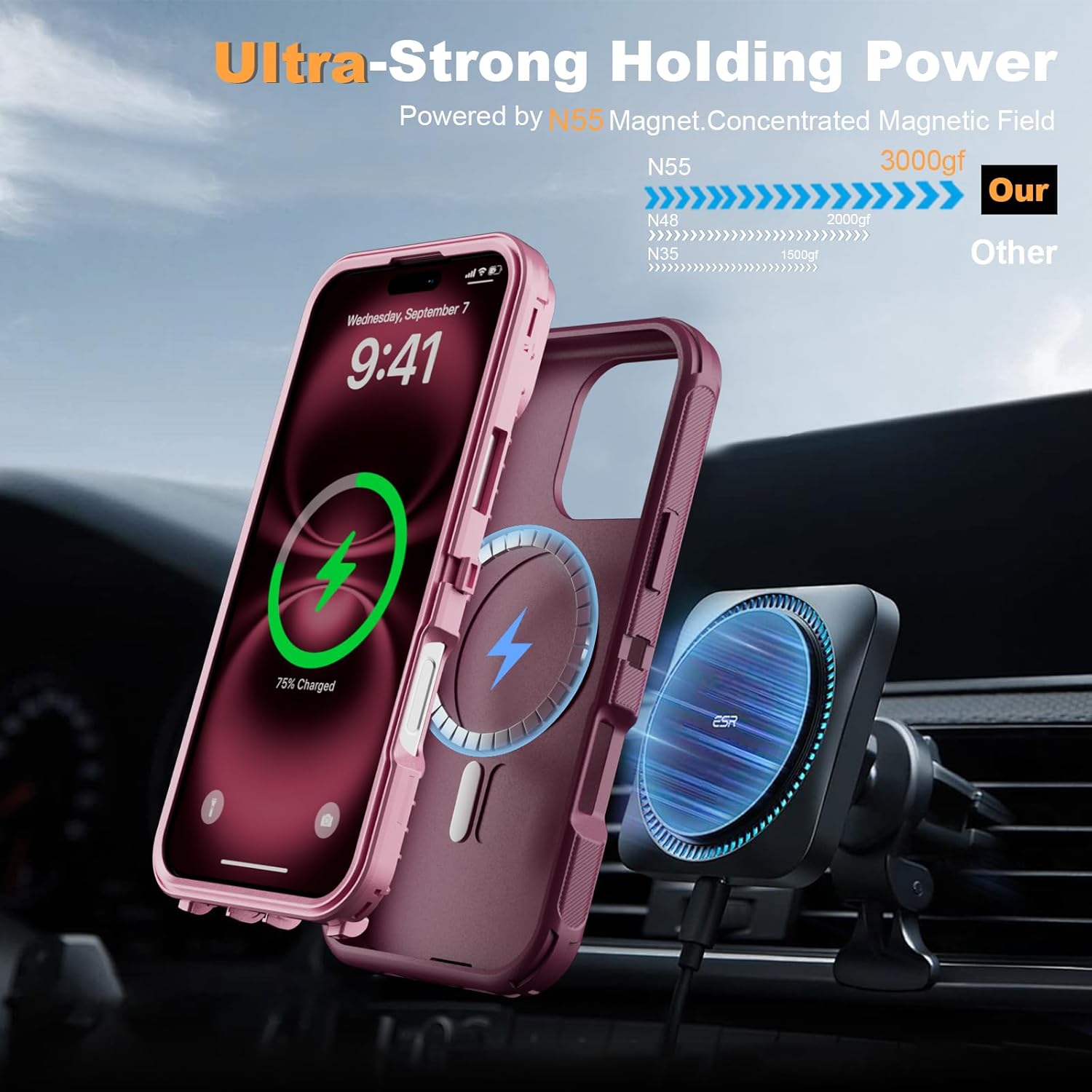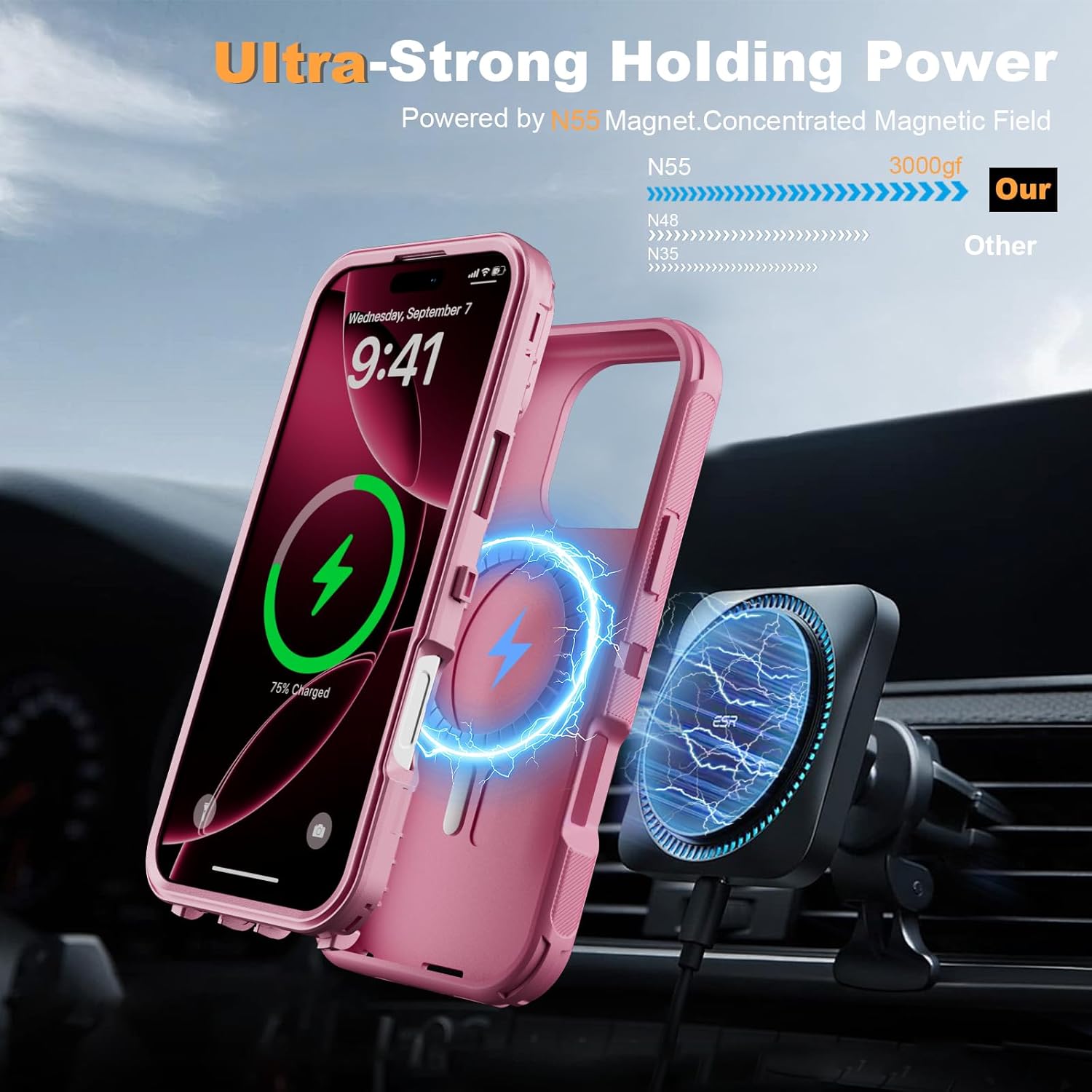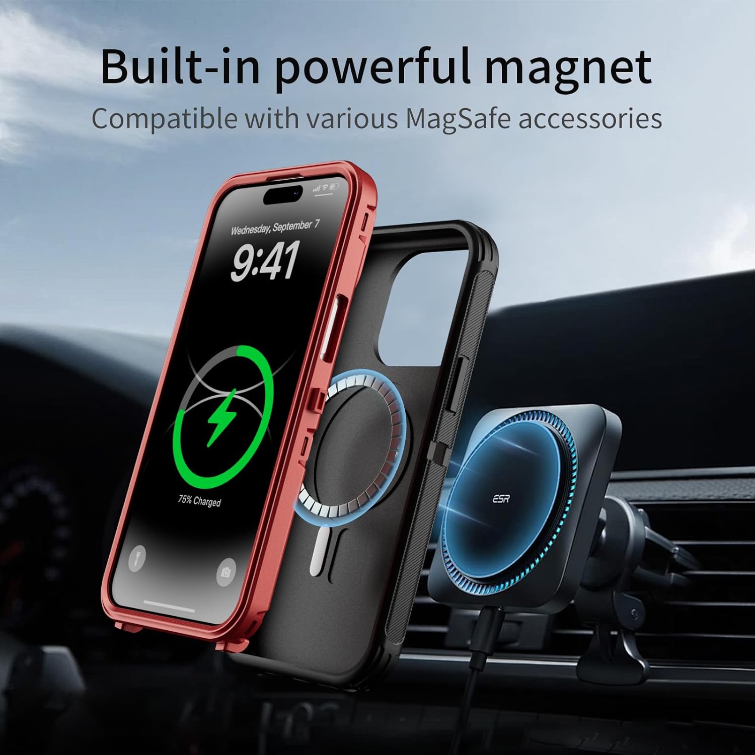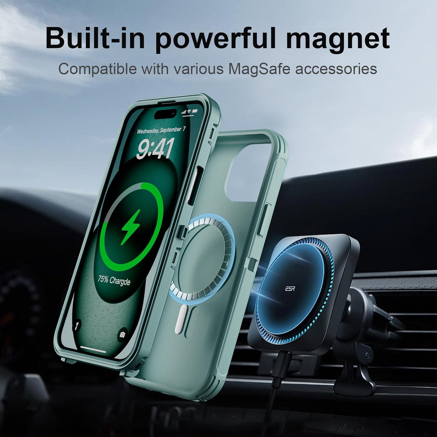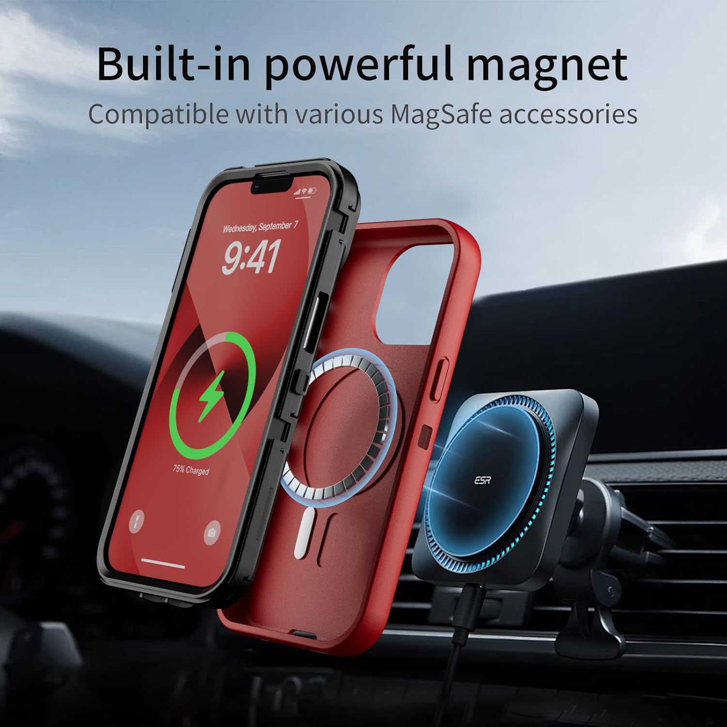 SURITCH 适用于 iPhone 16 Pro 手机壳,带滑动相机盖和可调节支架,兼容 MagSafe,防震防撞保护套,适用于 iPhone 16 Pro 6.3 英寸,黑色