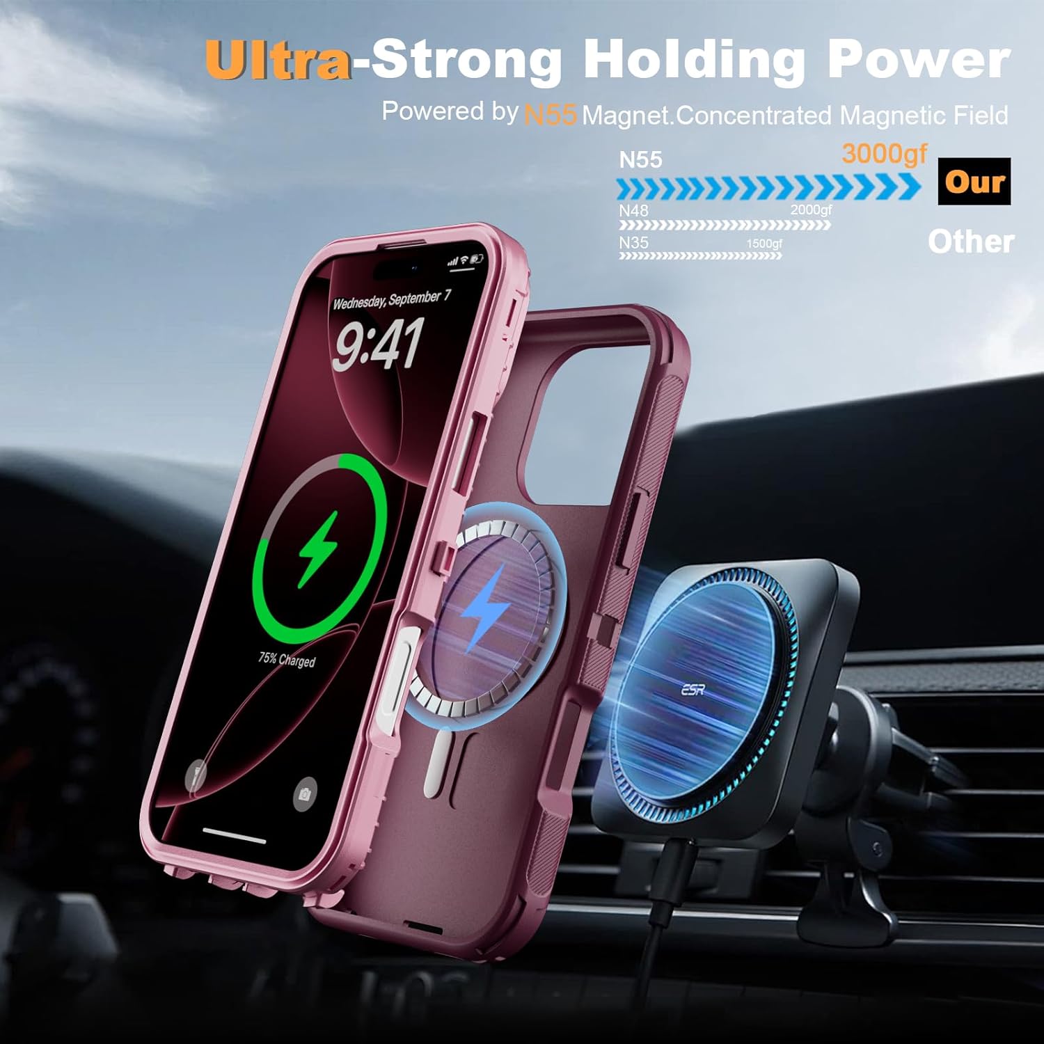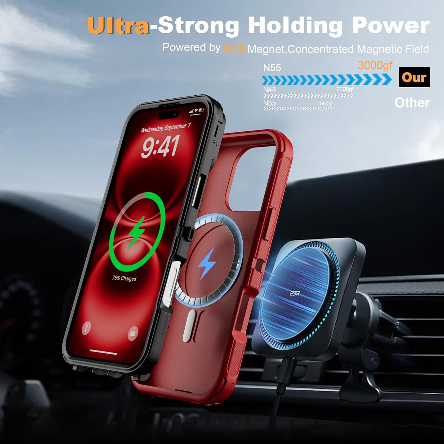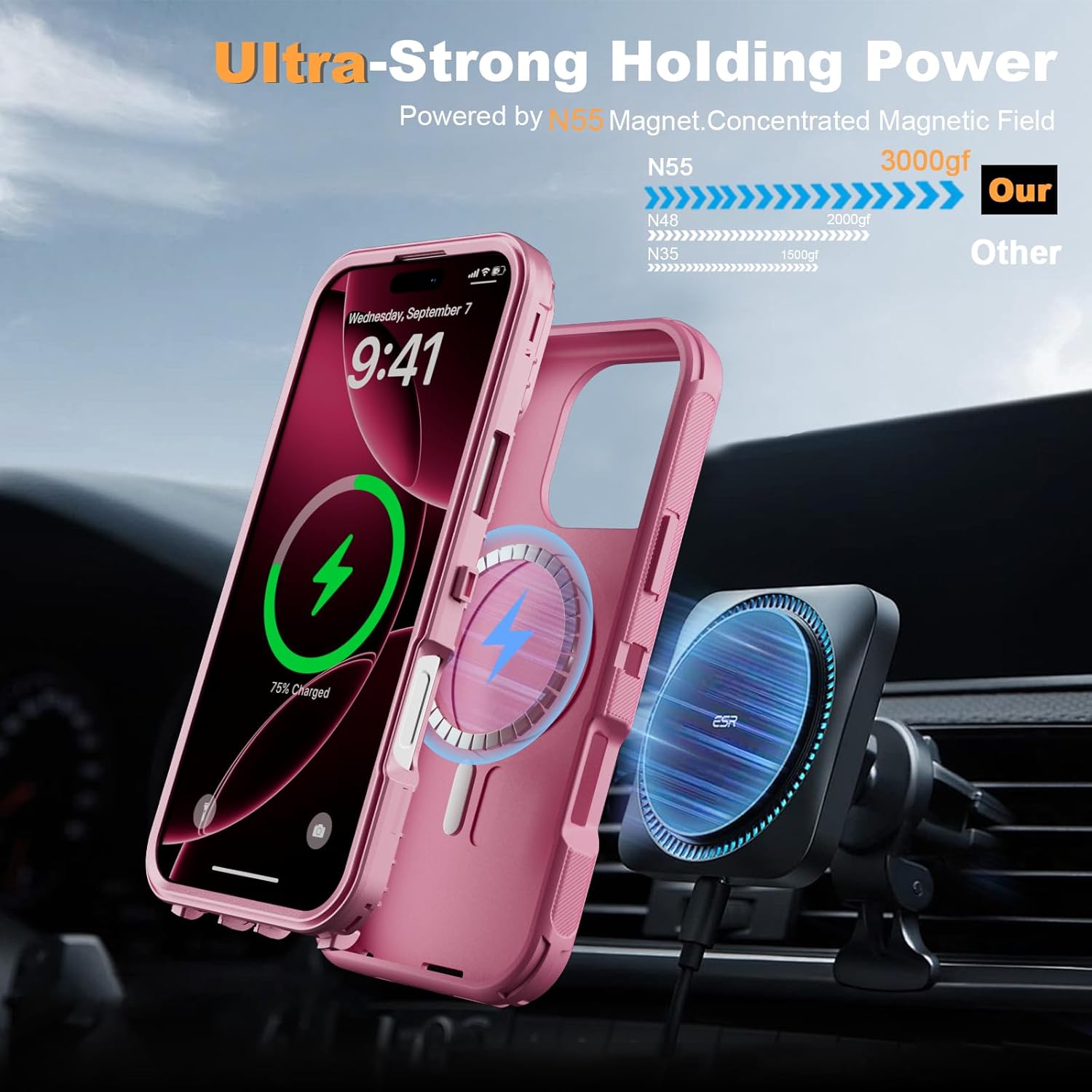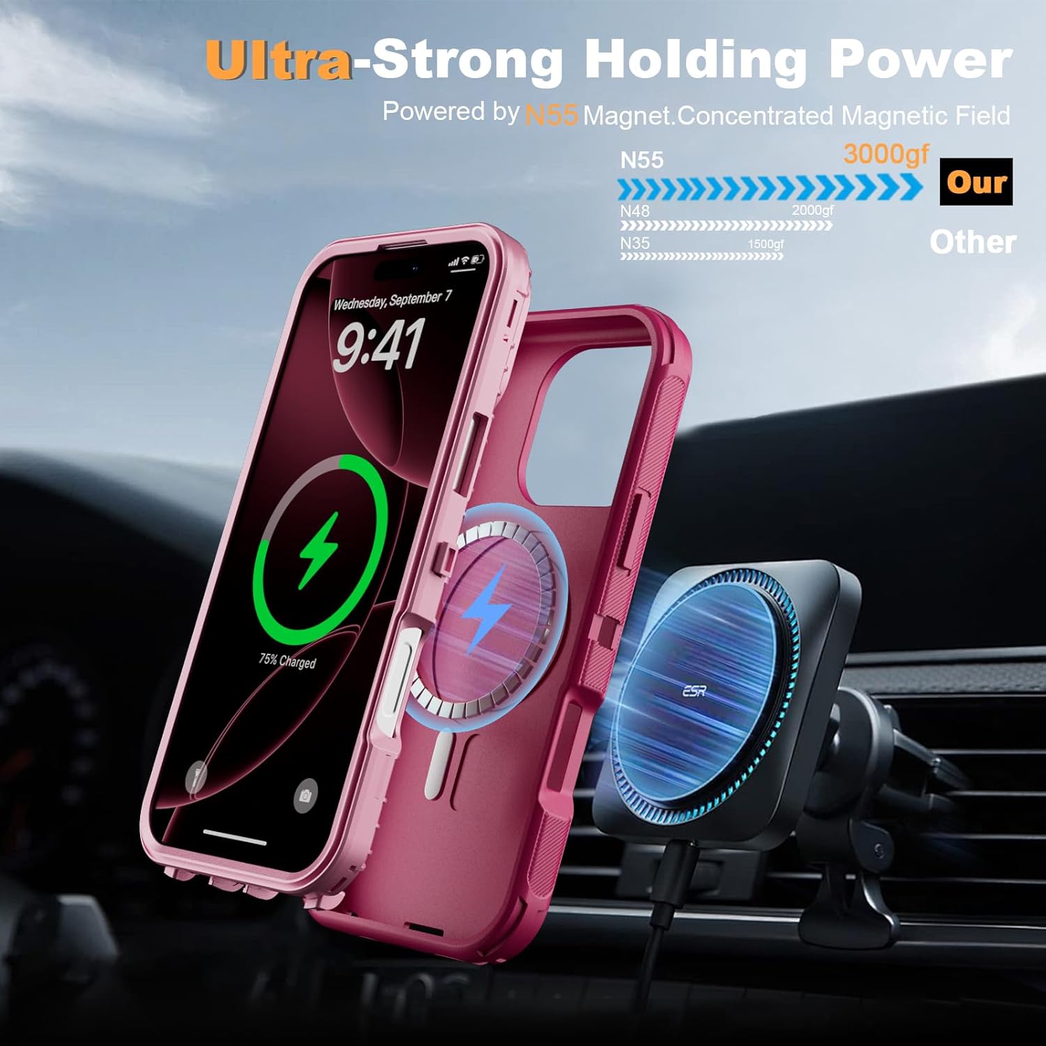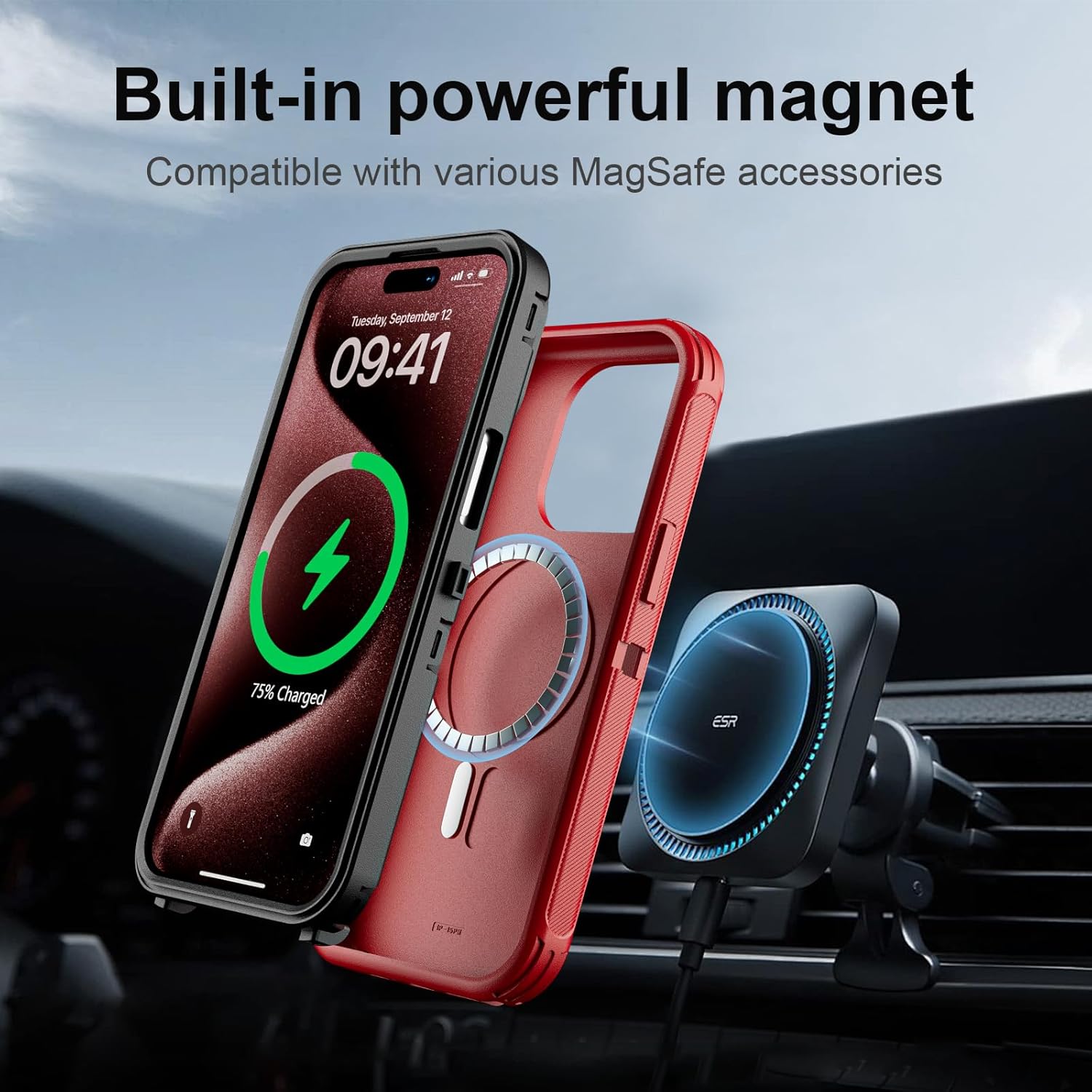 SURITCH 适用于 iPhone 16 Pro 手机壳,带滑动相机盖和可调节支架,兼容 MagSafe,防震防撞保护套,适用于 iPhone 16 Pro 6.3 英寸,黑色