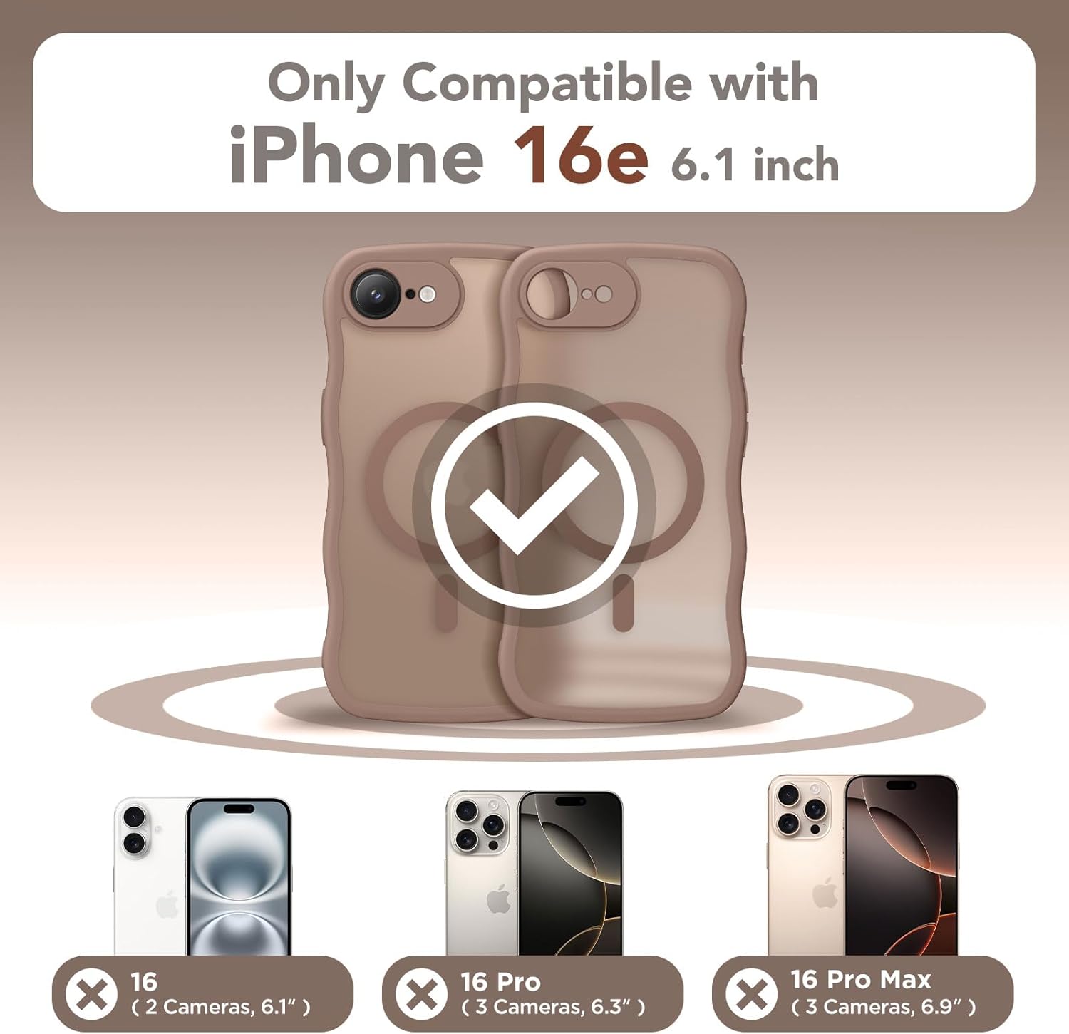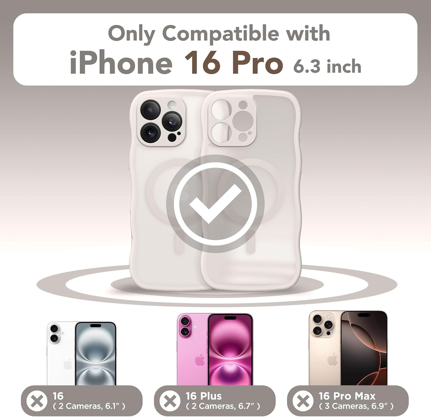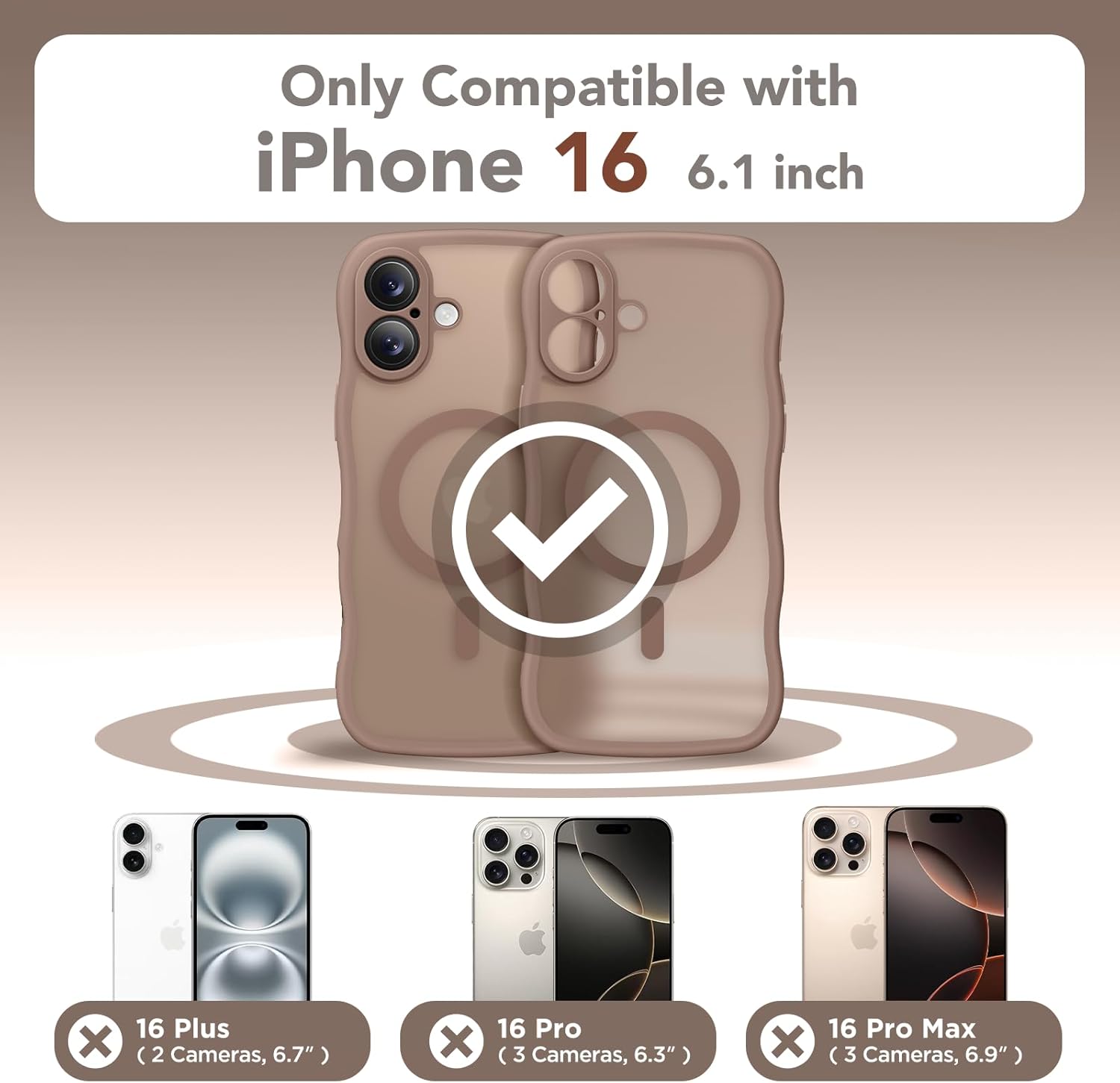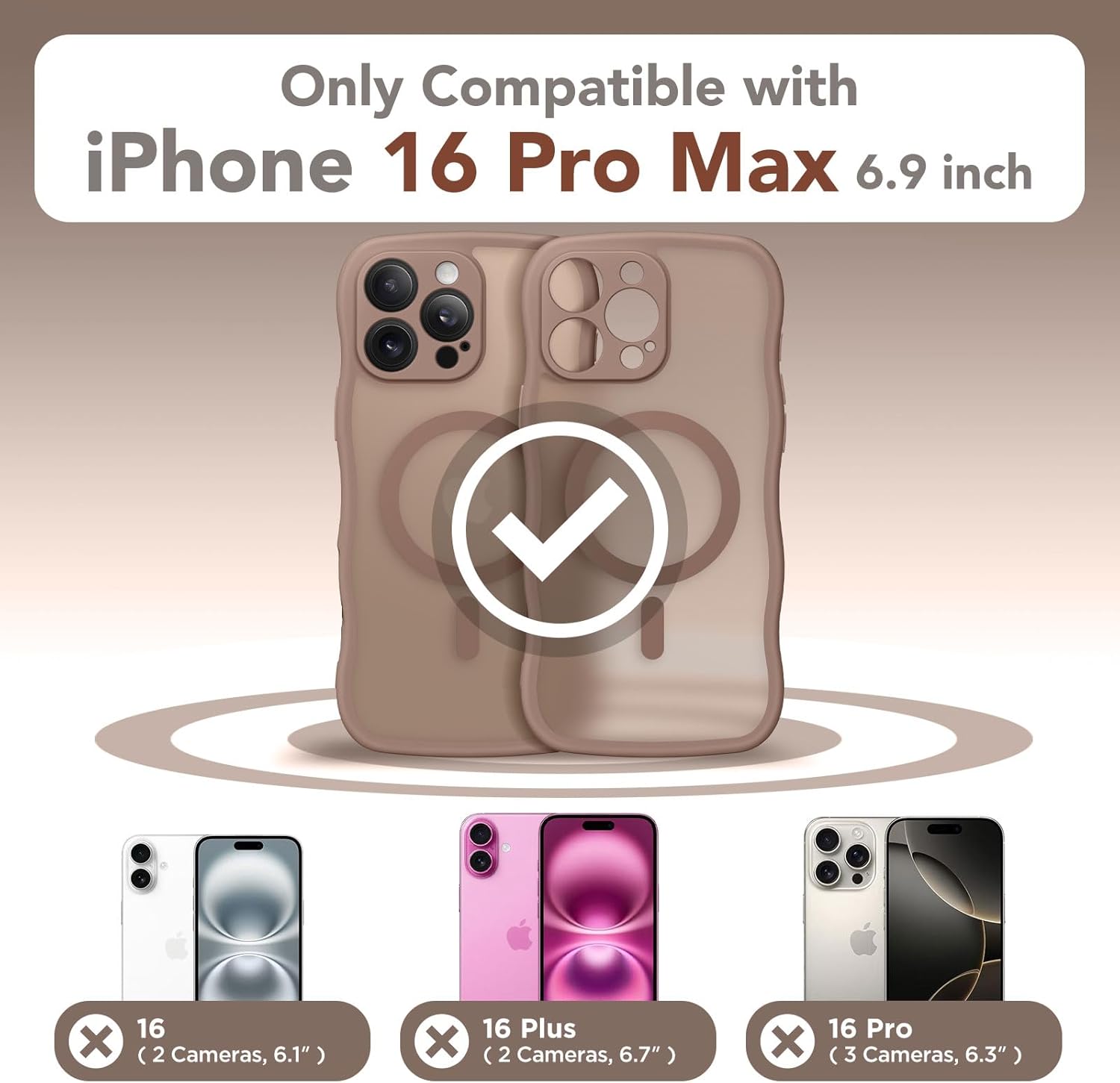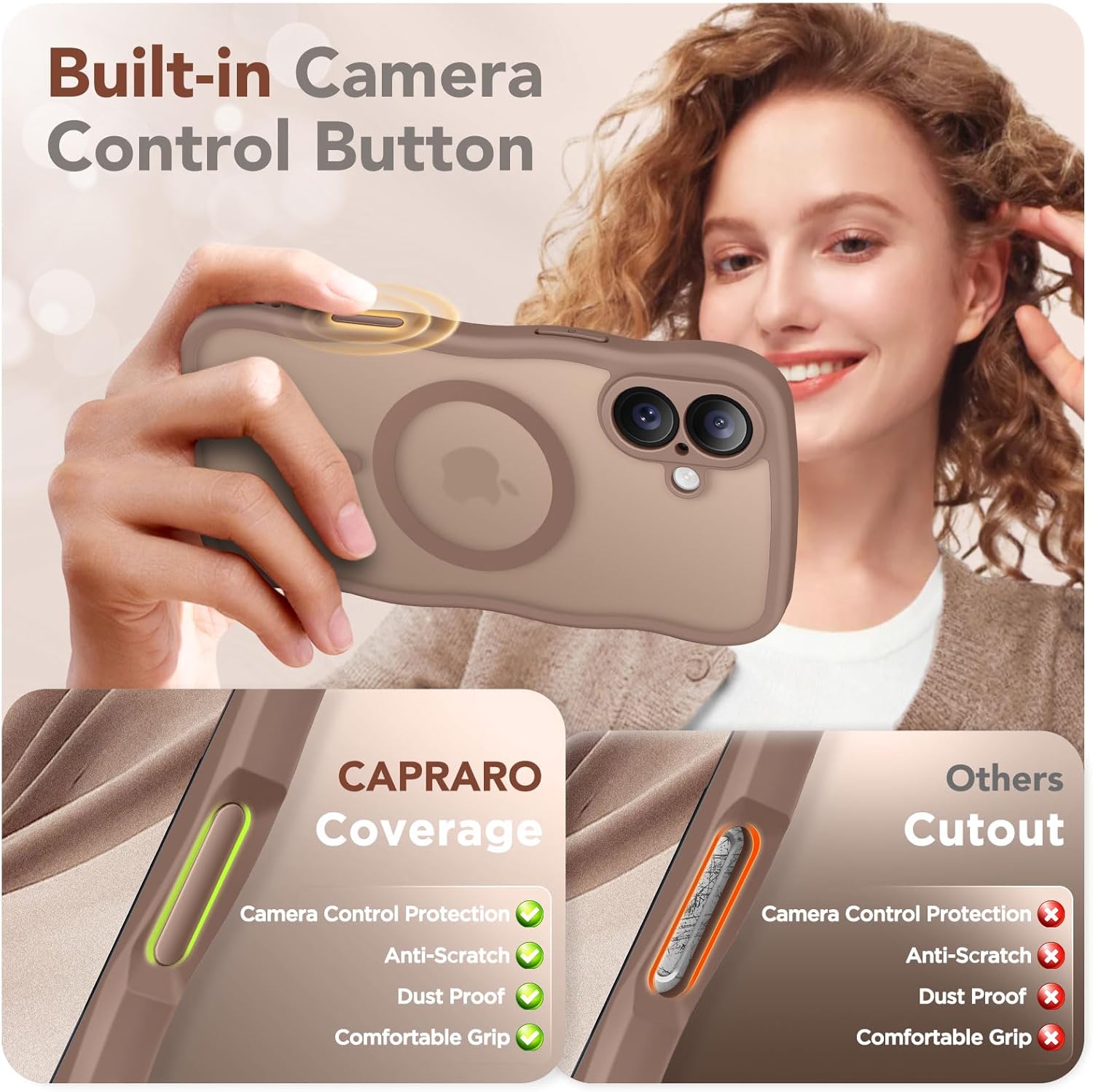 CAPRARO 适用于 iPhone 16 Pro 女士女孩手机壳,升级 [全摄像头保护] [兼容 MagSafe] 可爱波浪半透明哑光手机壳适用于 iPhone 16 Pro,棕色