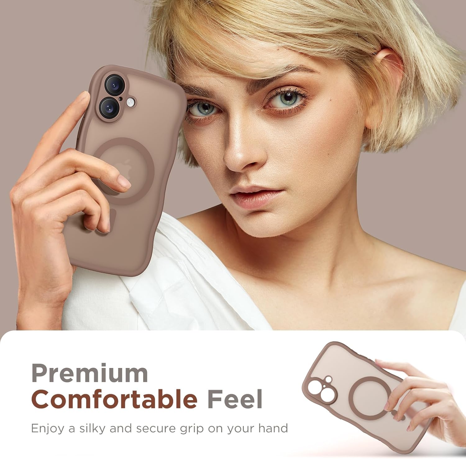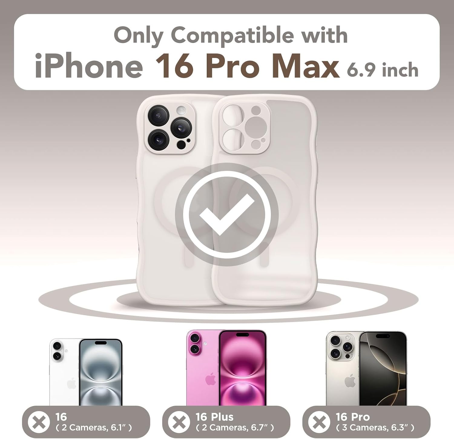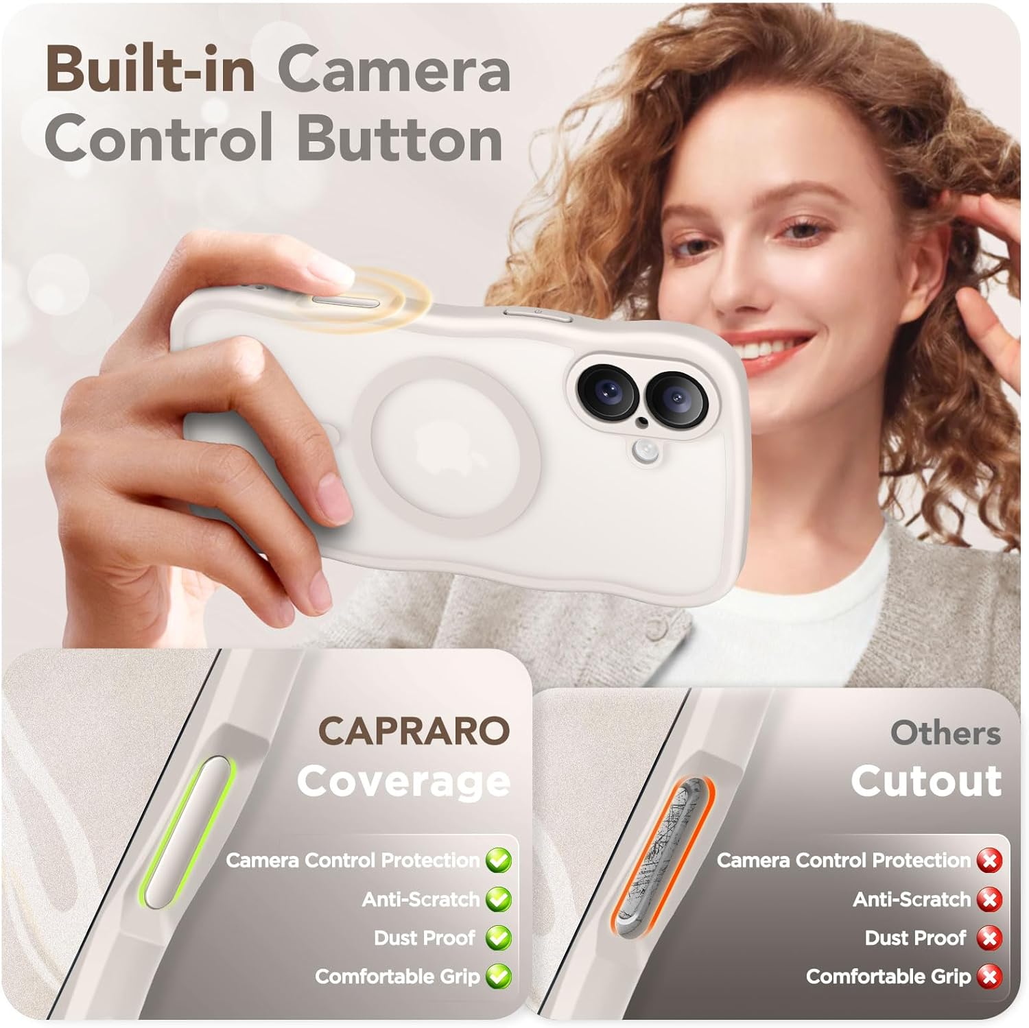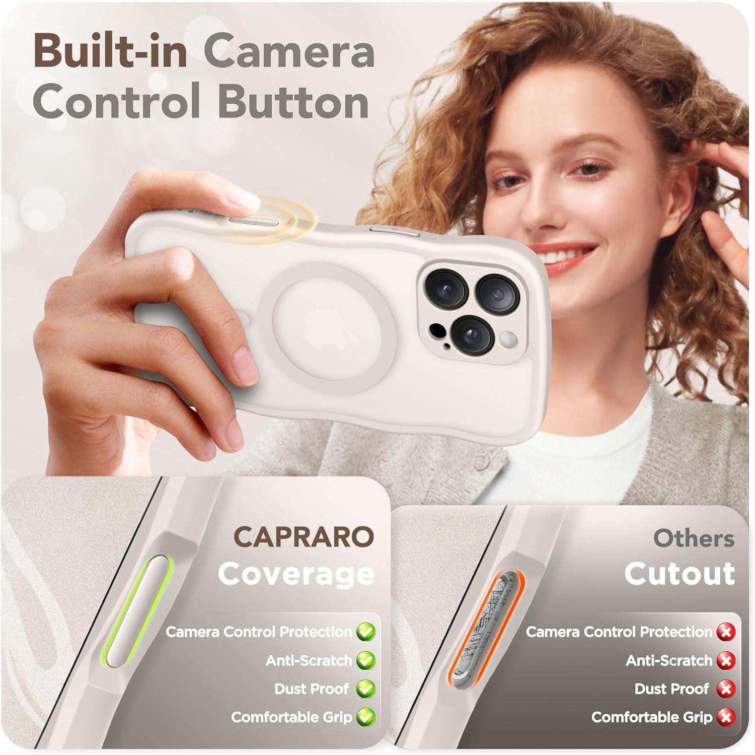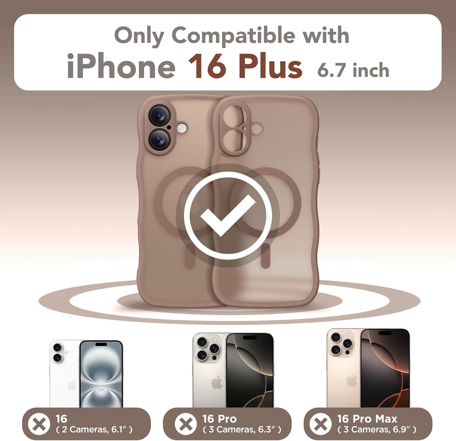 CAPRARO 适用于 iPhone 16 Pro 女士女孩手机壳,升级 [全摄像头保护] [兼容 MagSafe] 可爱波浪半透明哑光手机壳适用于 iPhone 16 Pro,棕色